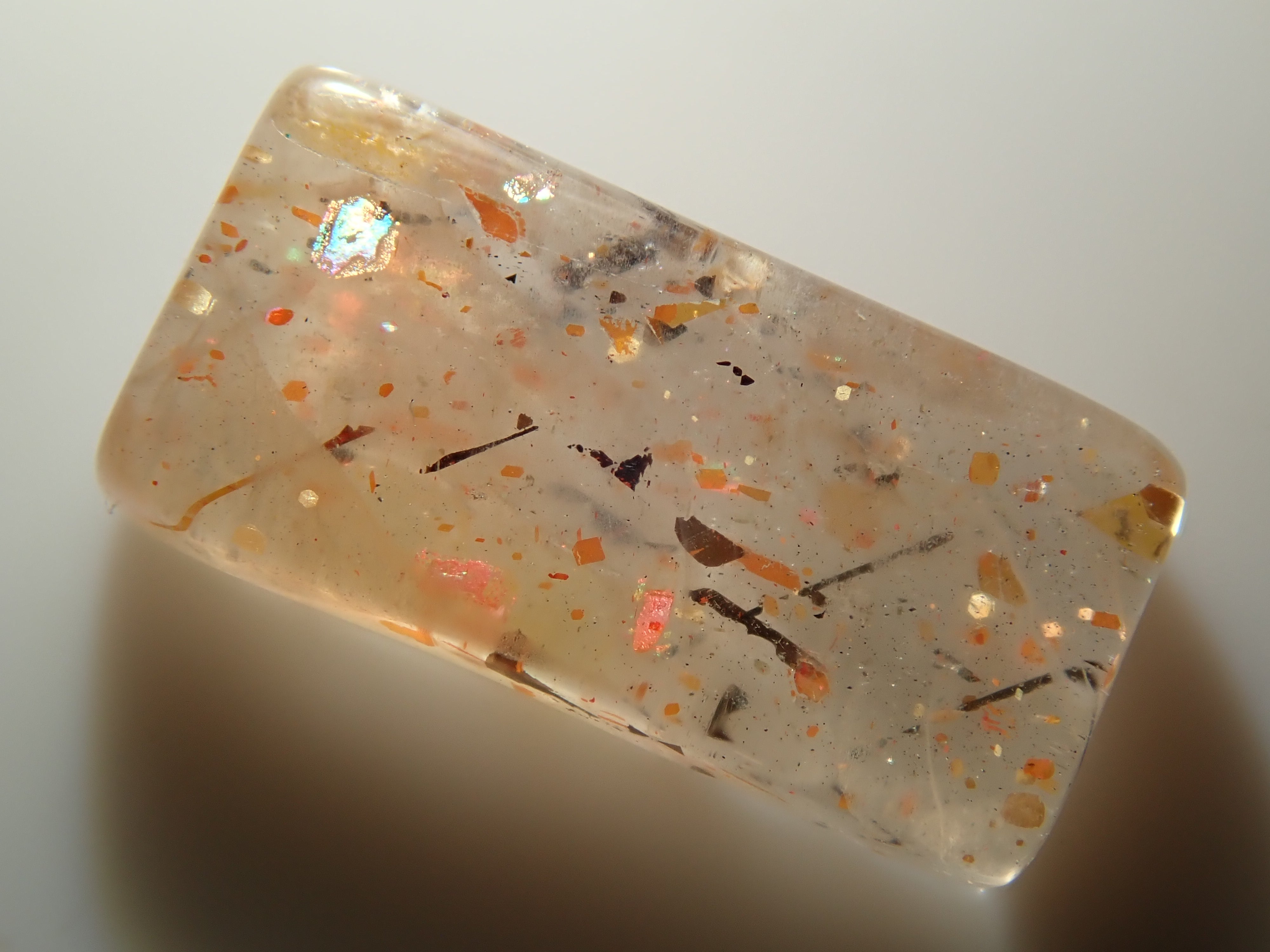 據說彩虹格子日光石是所有日光石中最稀有的。月光石的虹彩效果與彩虹晶格的結合極為罕見,據說是最稀有的日光石。它是屬於長石族的正長石類型,稱為彩虹晶格日光石(分佈名稱)。