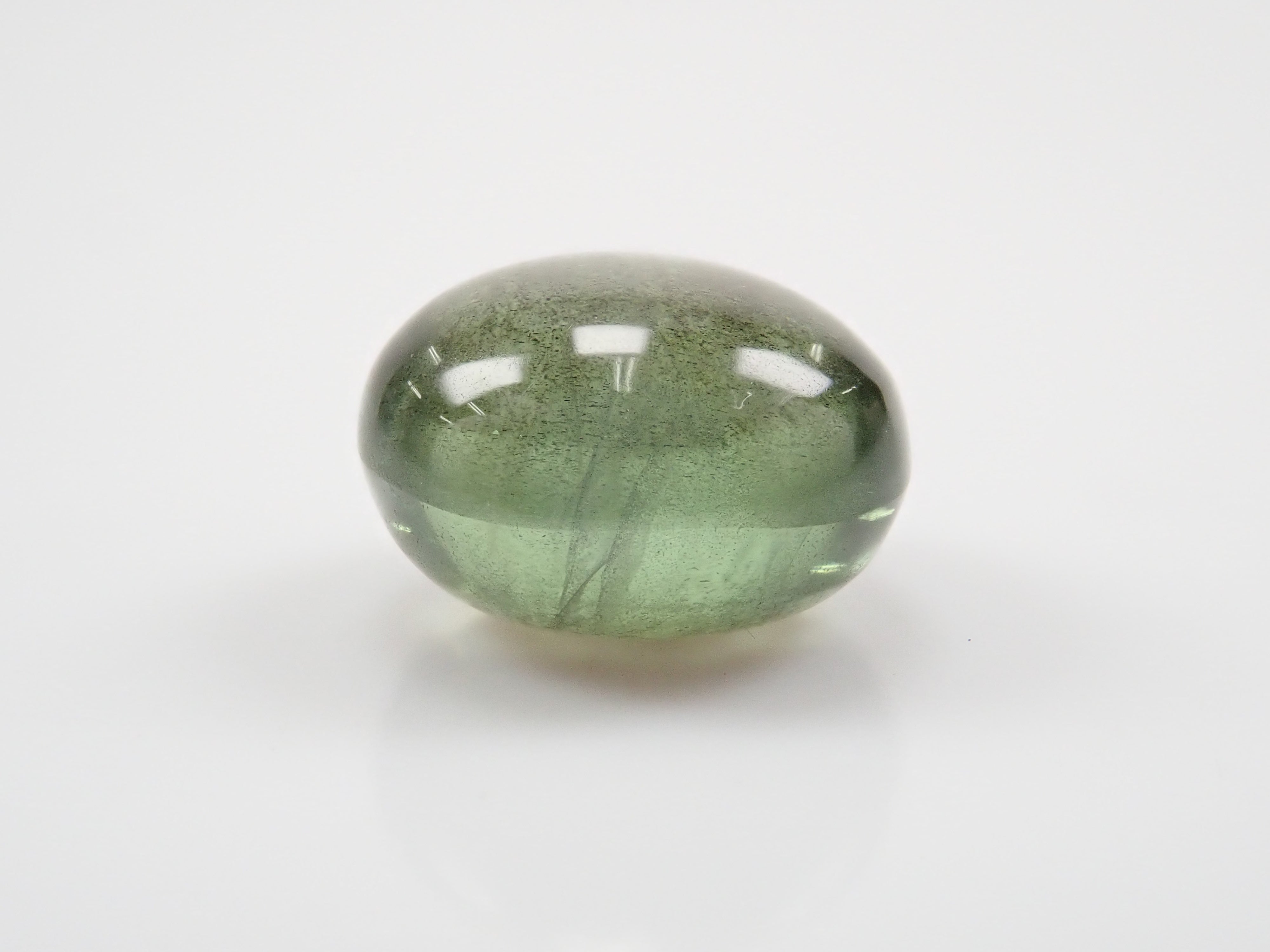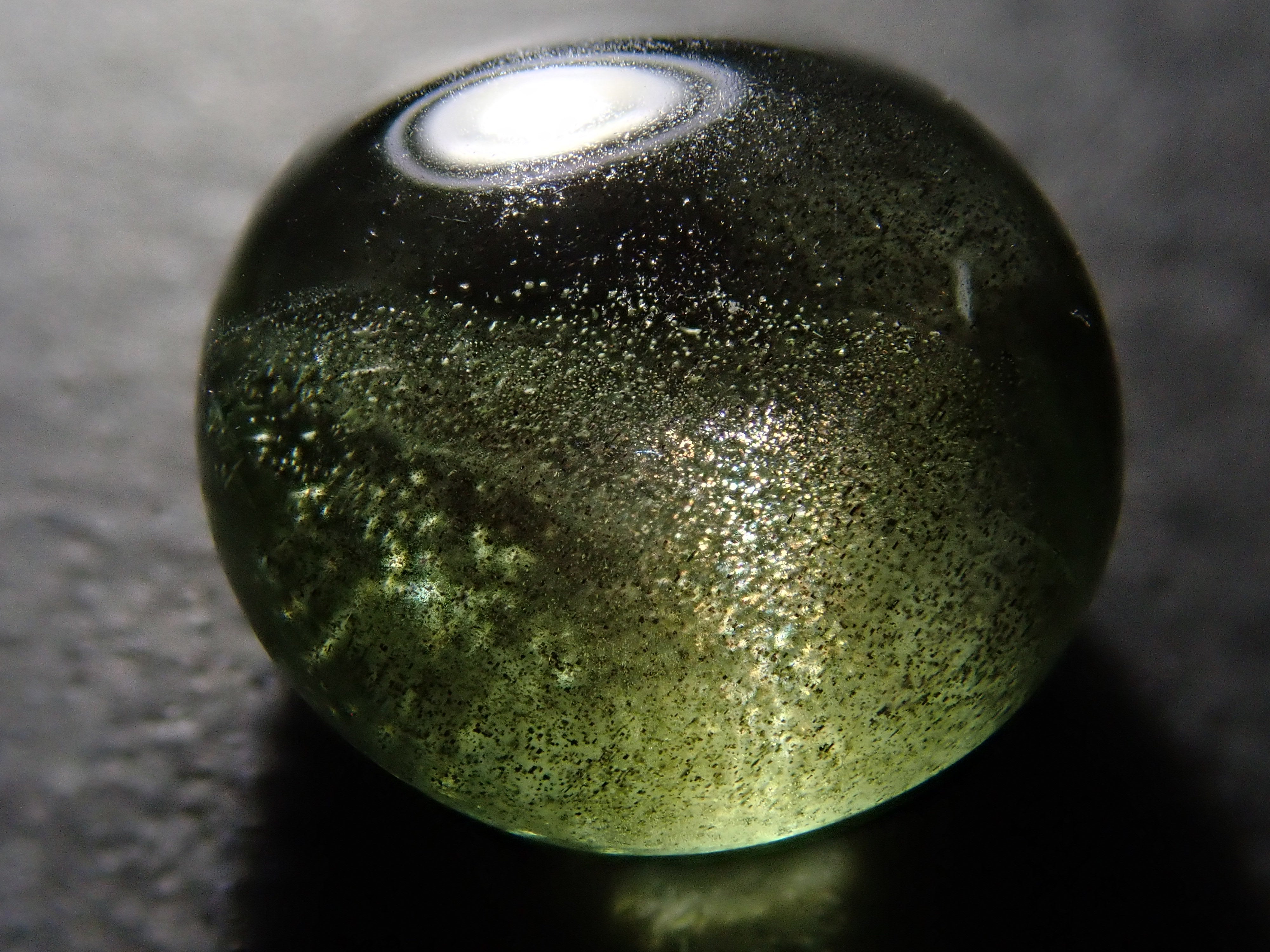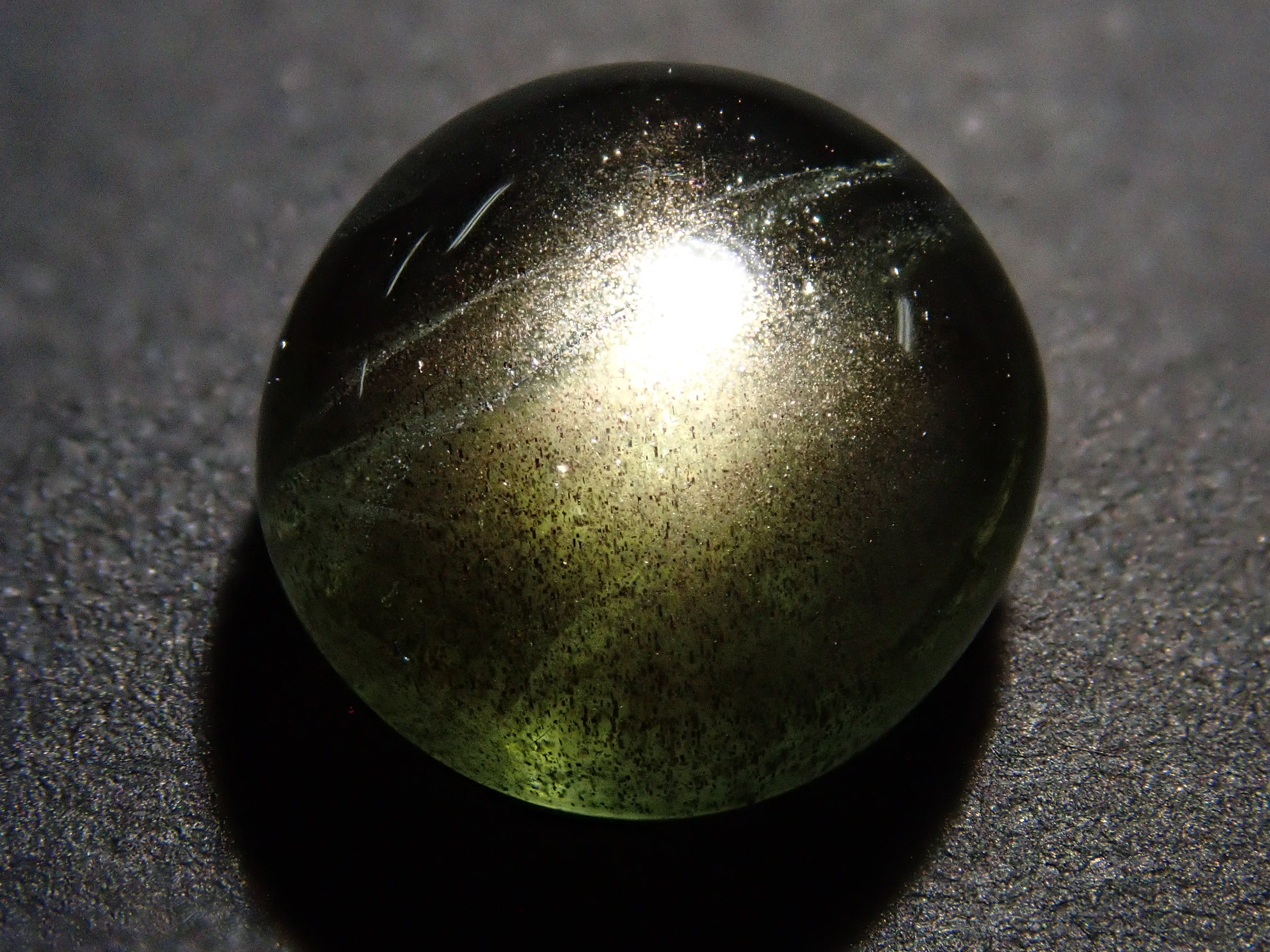橄欖石是一種擁有如嫩草般迷人淺綠色的寶石。它作為八月的誕生石而聞名。 「橄欖石」一詞源自於拉丁文「olive」(橄欖)。橄欖般年輕的綠色令人著迷。這顆橄欖石尤其具有星光效果,取決於角度,因此使用了筆形手電筒拍攝。寶石背面基本未拋光。這是一顆罕見的橄欖石/星光橄欖石,購自泰國。