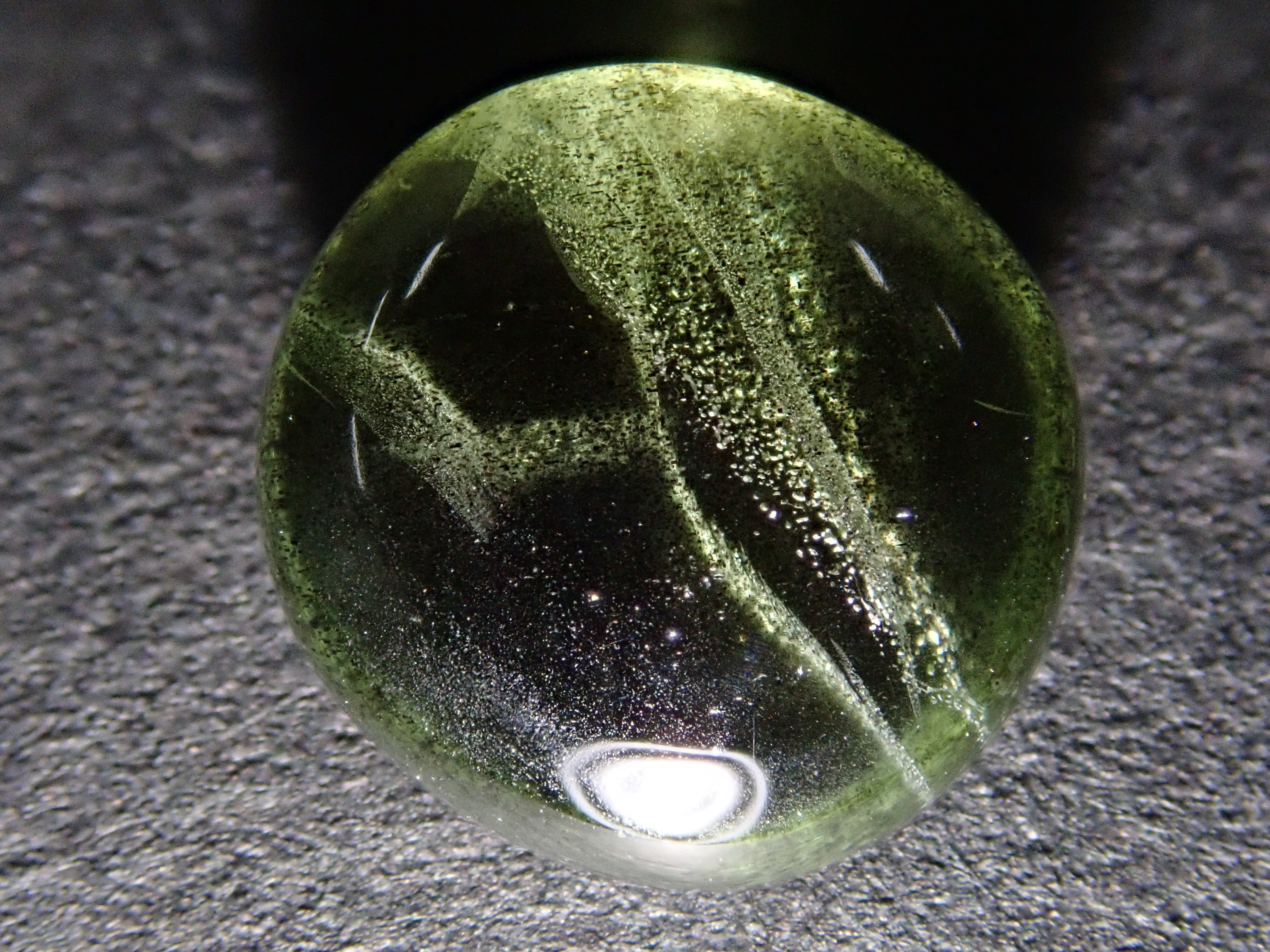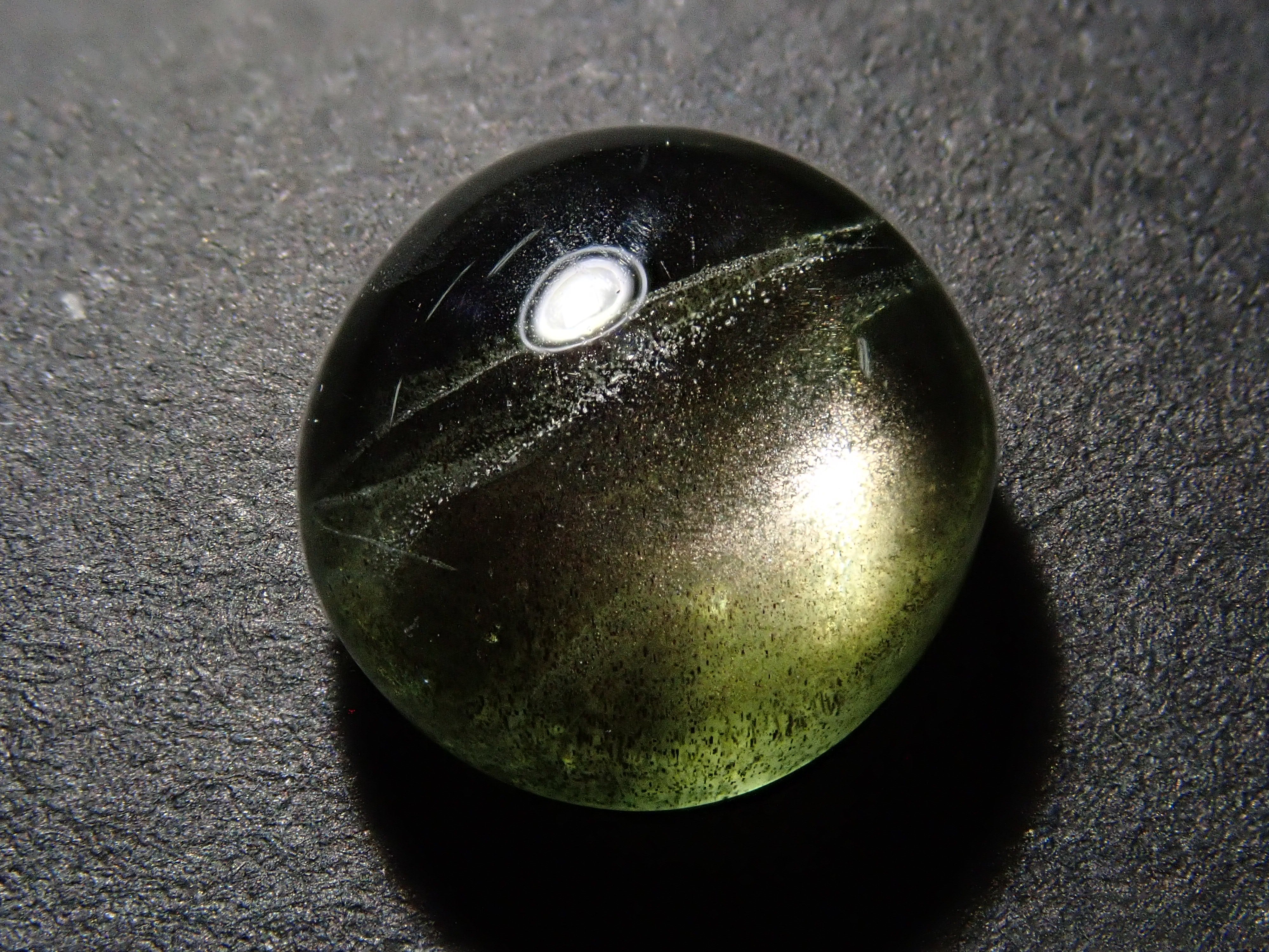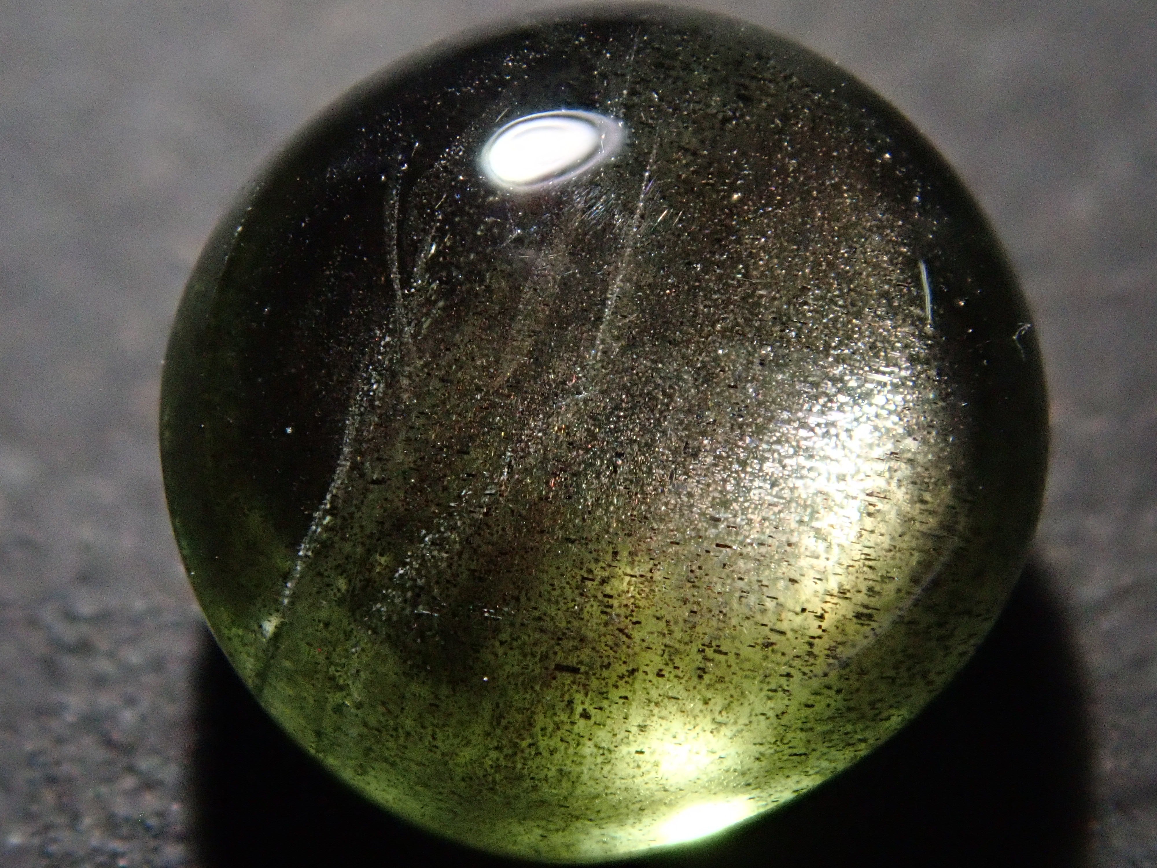 橄欖石是一種擁有如嫩草般迷人淺綠色的寶石。它作為八月的誕生石而聞名。 「橄欖石」一詞源自於拉丁文「olive」(橄欖)。橄欖般年輕的綠色令人著迷。這顆橄欖石尤其具有星光效果,取決於角度,因此使用了筆形手電筒拍攝。寶石背面基本未拋光。這是一顆罕見的橄欖石/星光橄欖石,購自泰國。