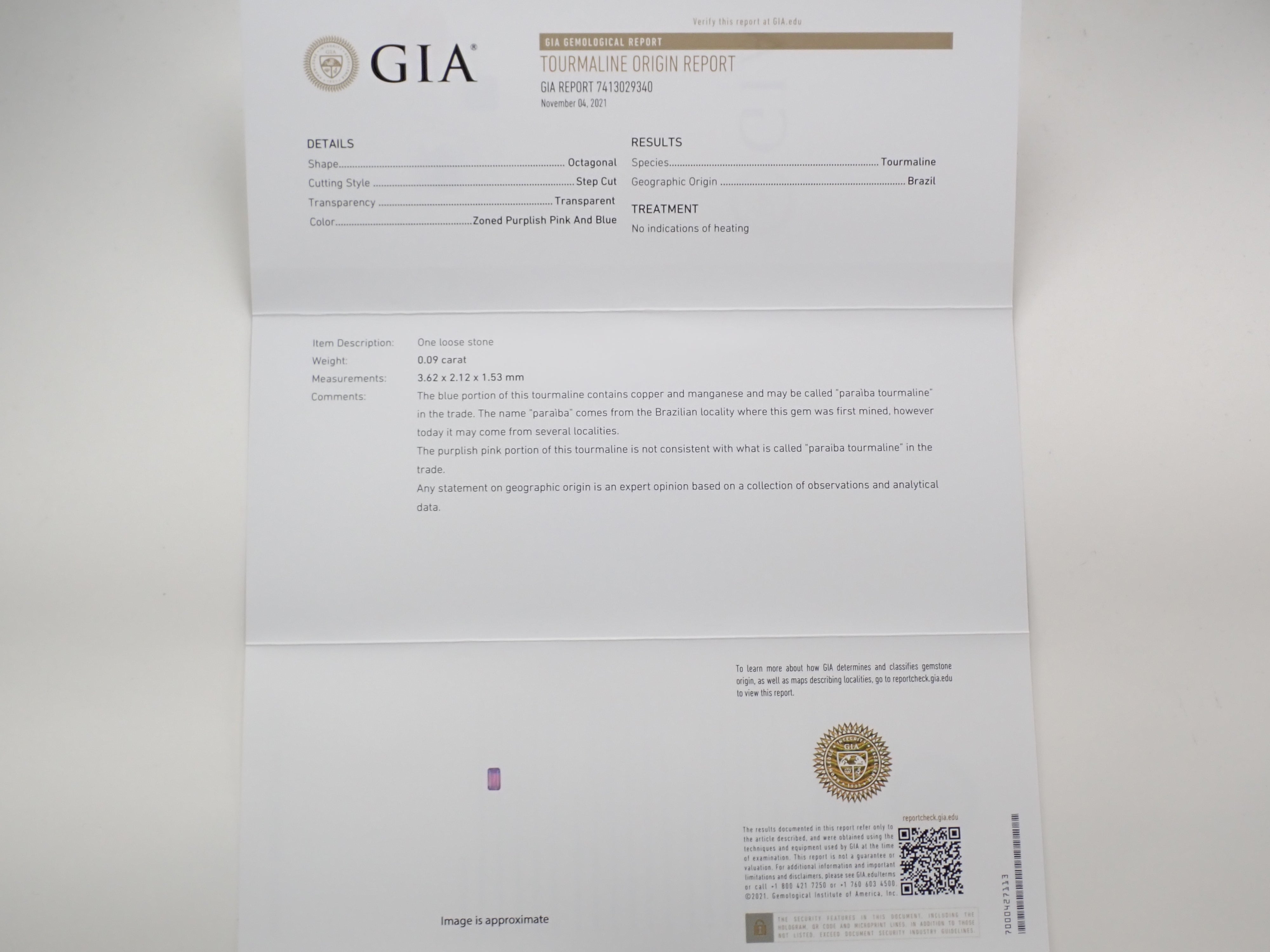 未加熱雙色帕拉伊巴碧璽 0.092 克拉散裝 GIA