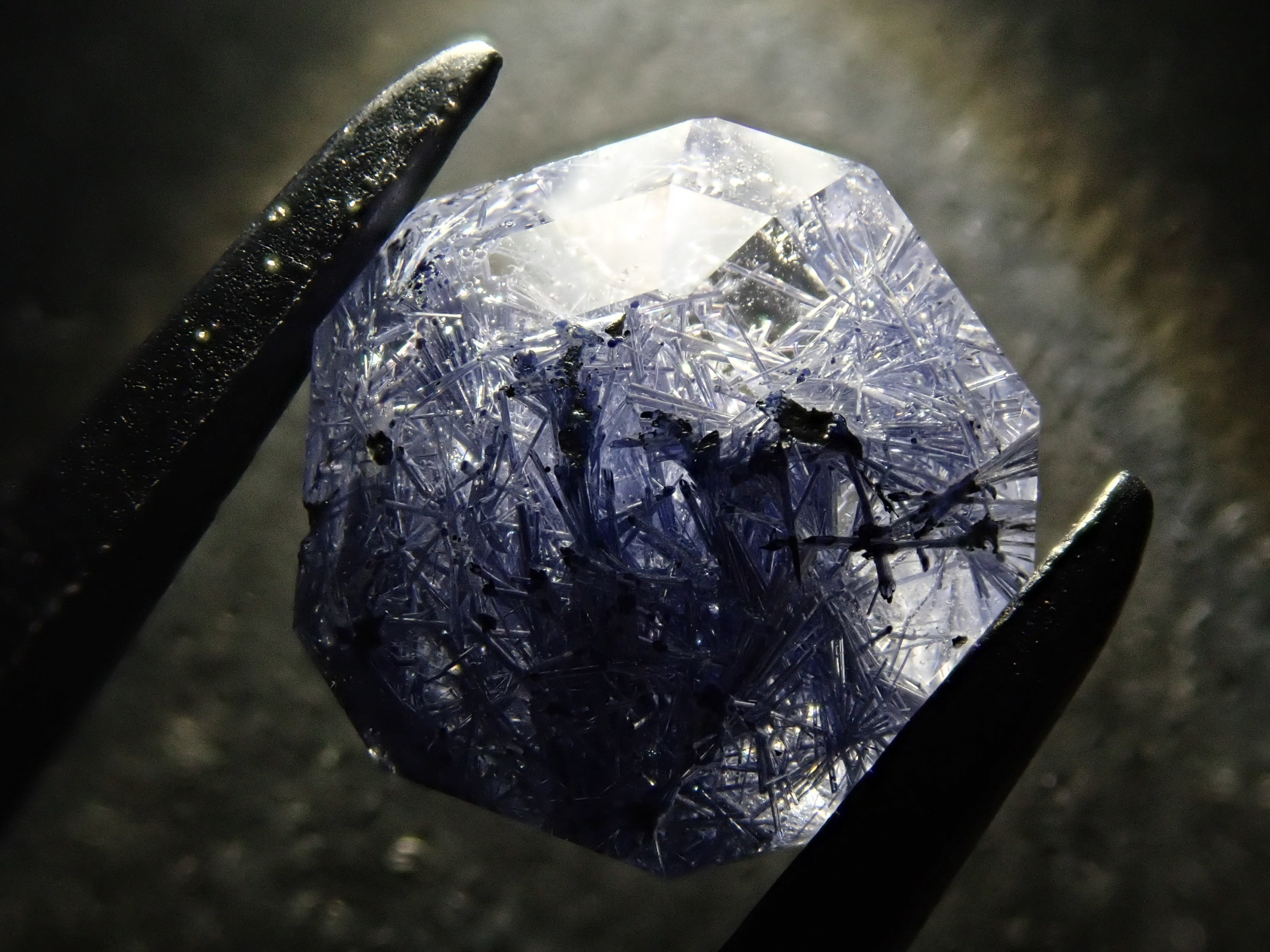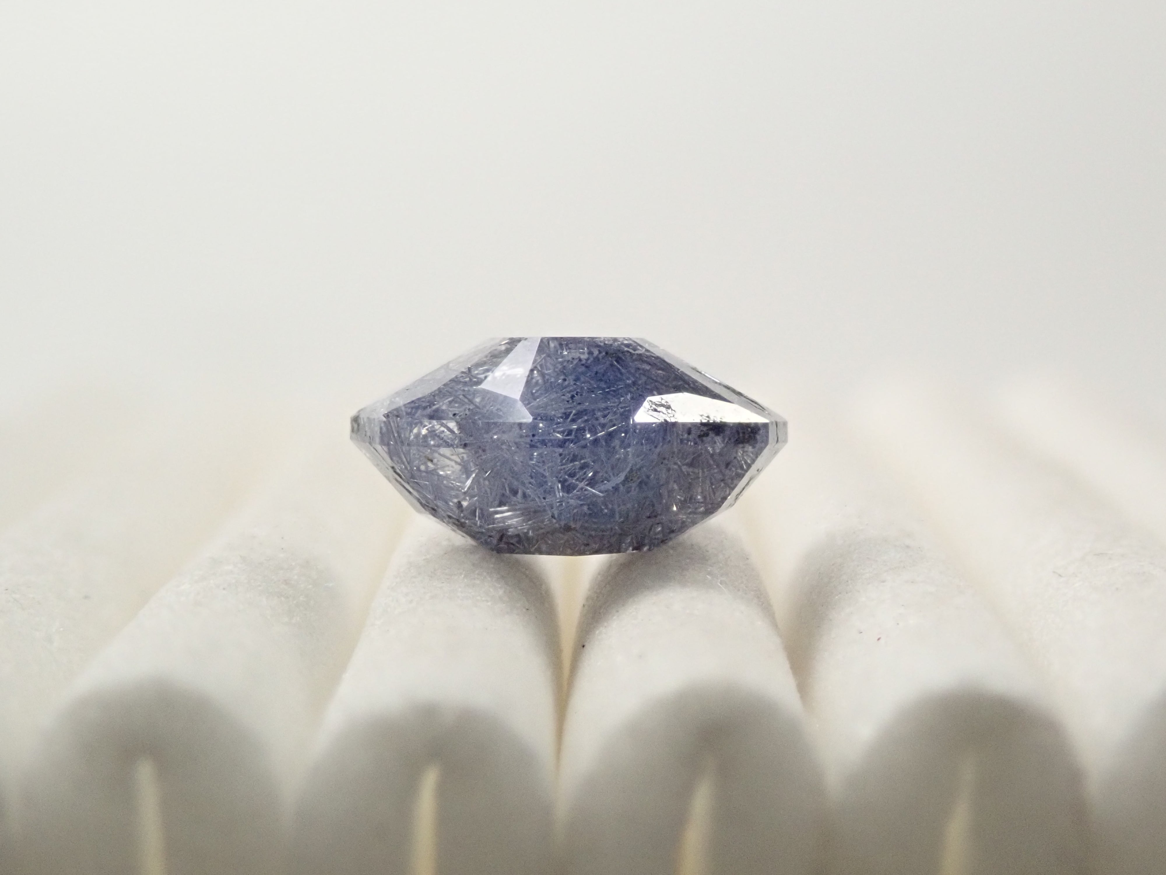 石英,日文稱為“suisho”,是日本常見的寶石,但它也是一種色澤深邃的寶石,種類繁多,包括紫水晶和黃水晶。這款藍線石是石英中的藍線石,擁有美麗的藍色內含物。其他寶石中沒有一種擁有相同的紋路,因此它成為收藏家們的心頭好。