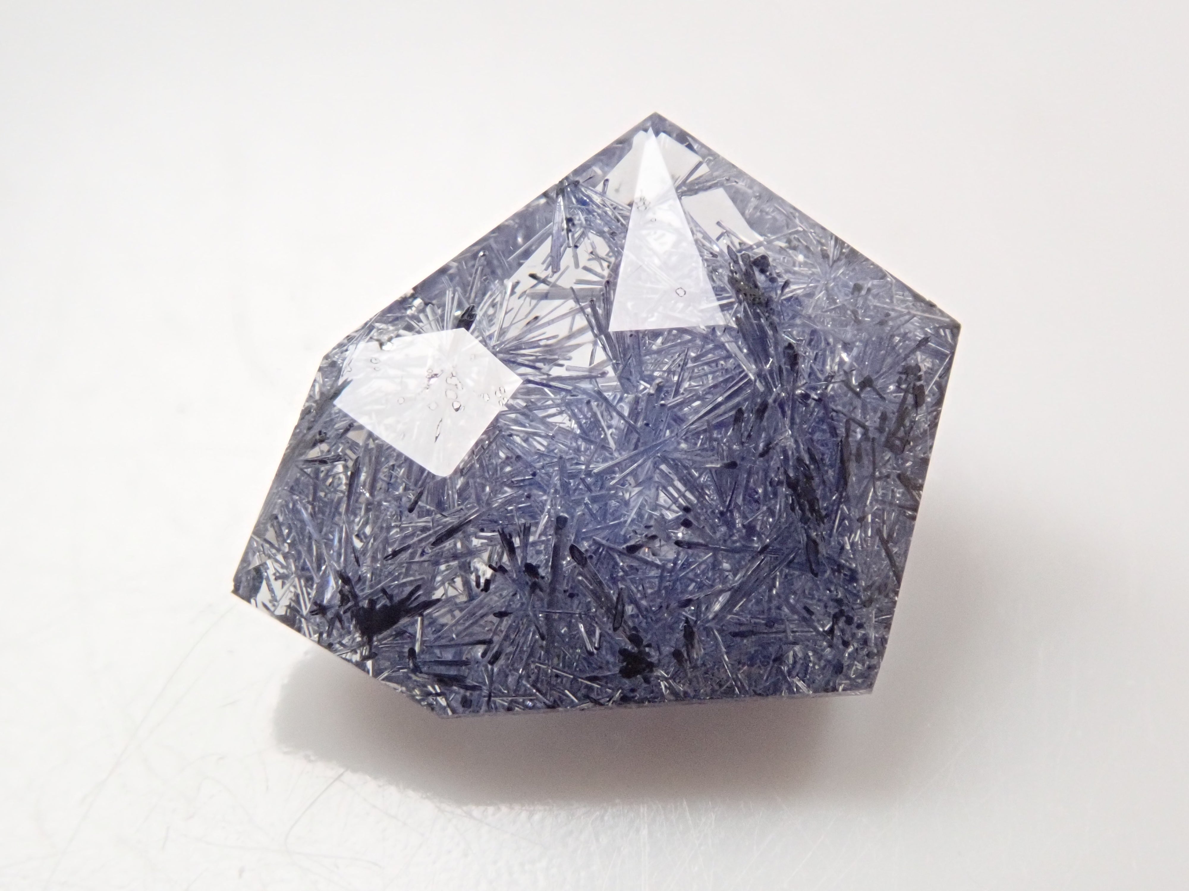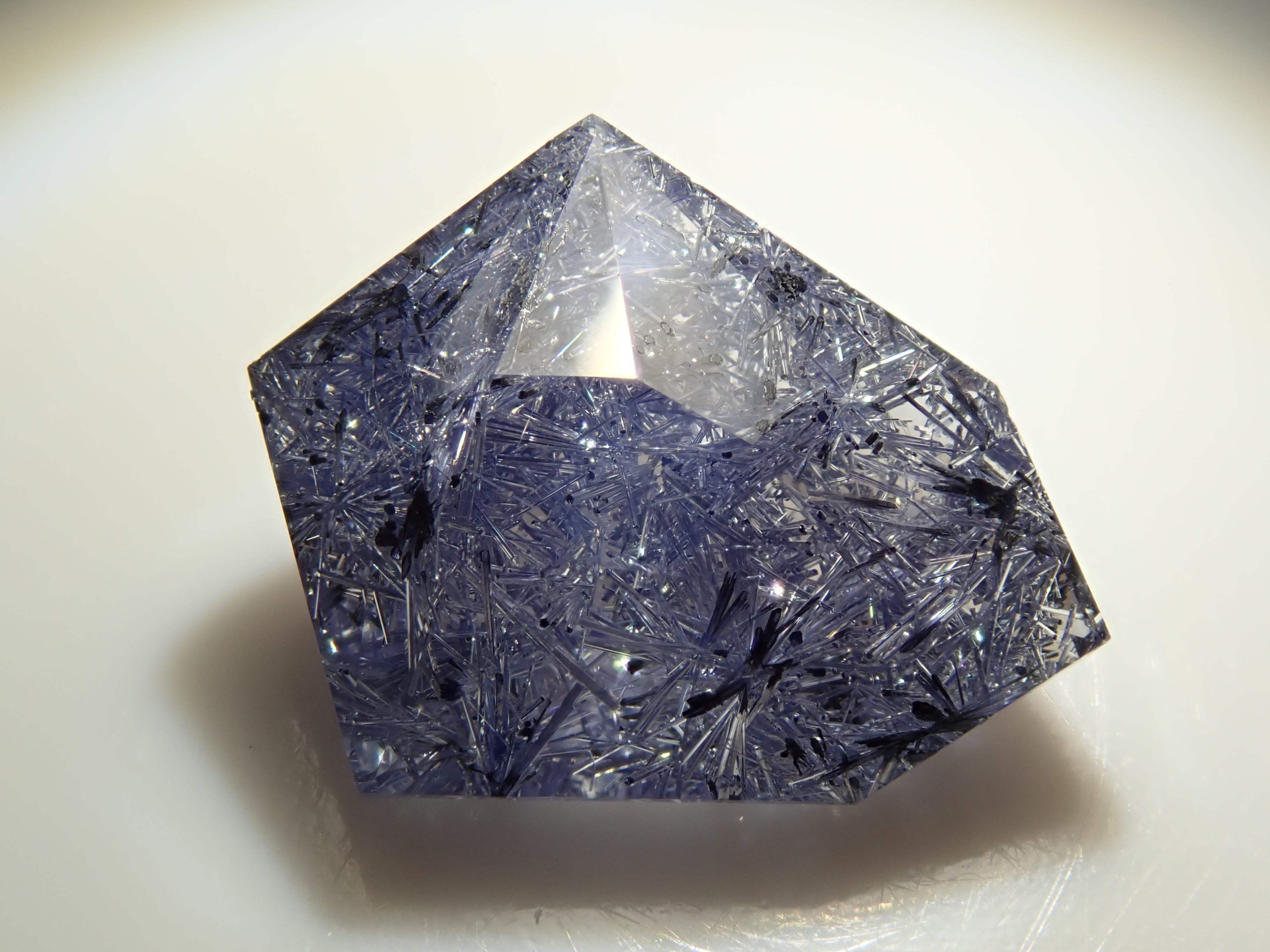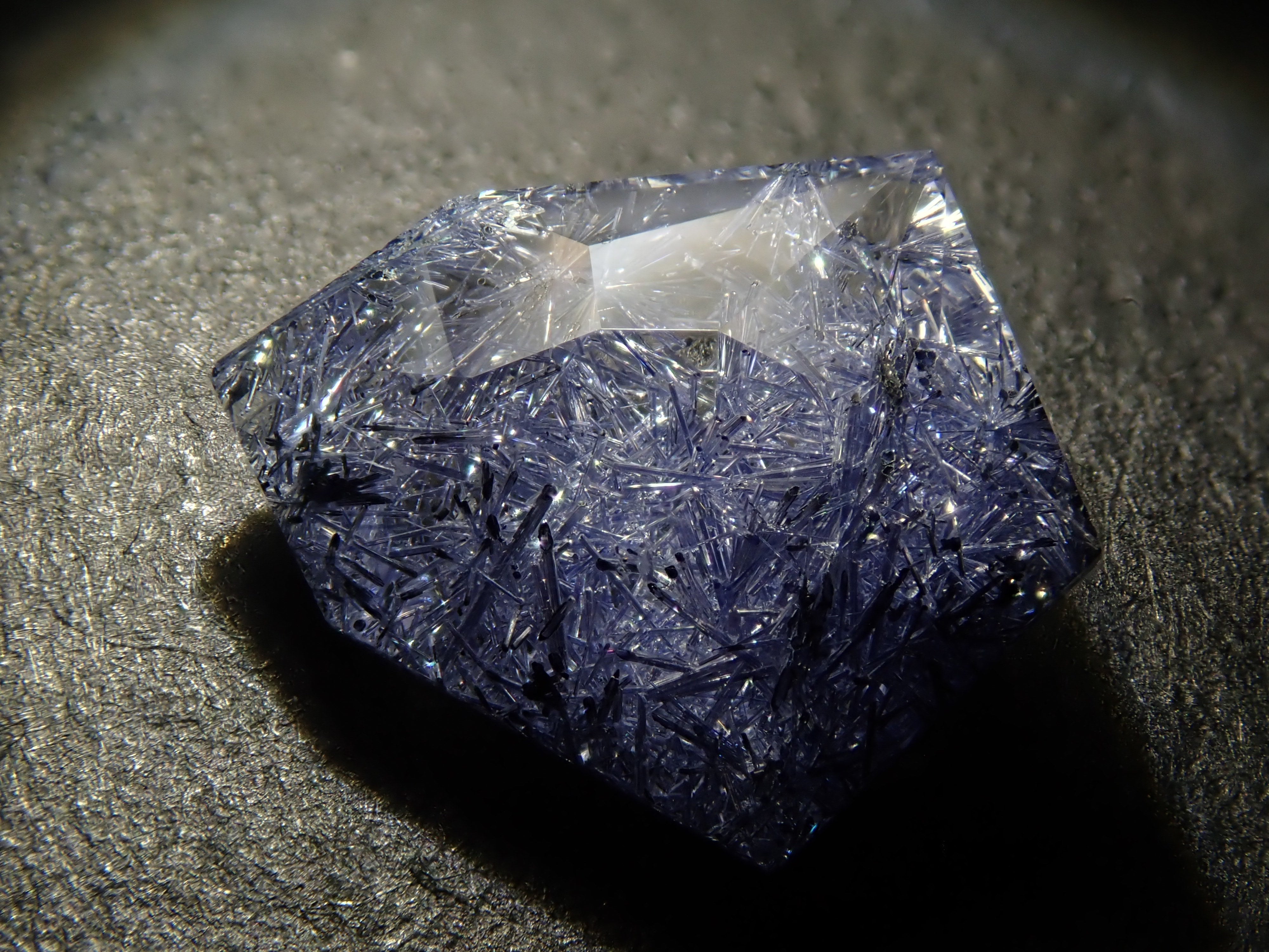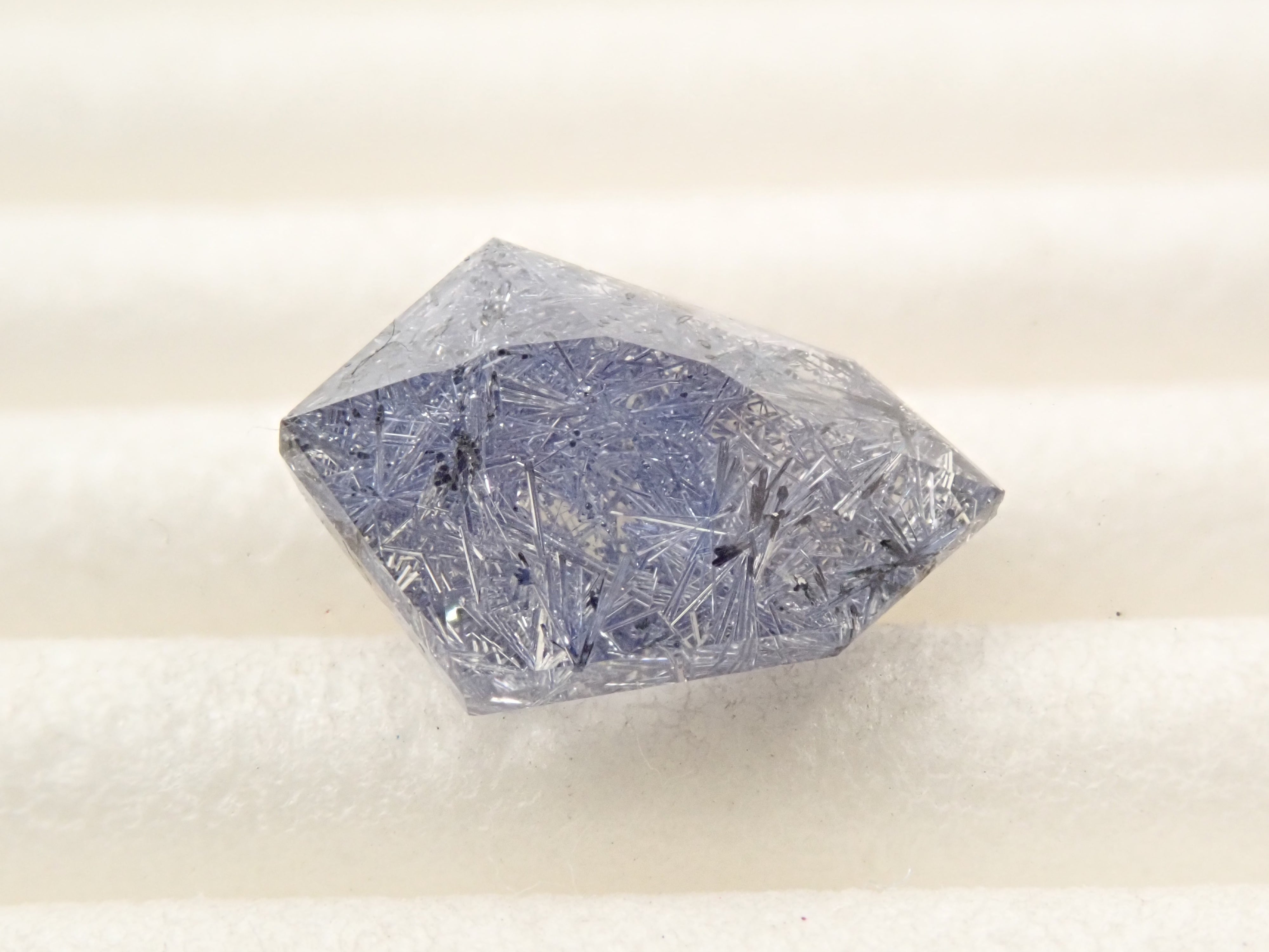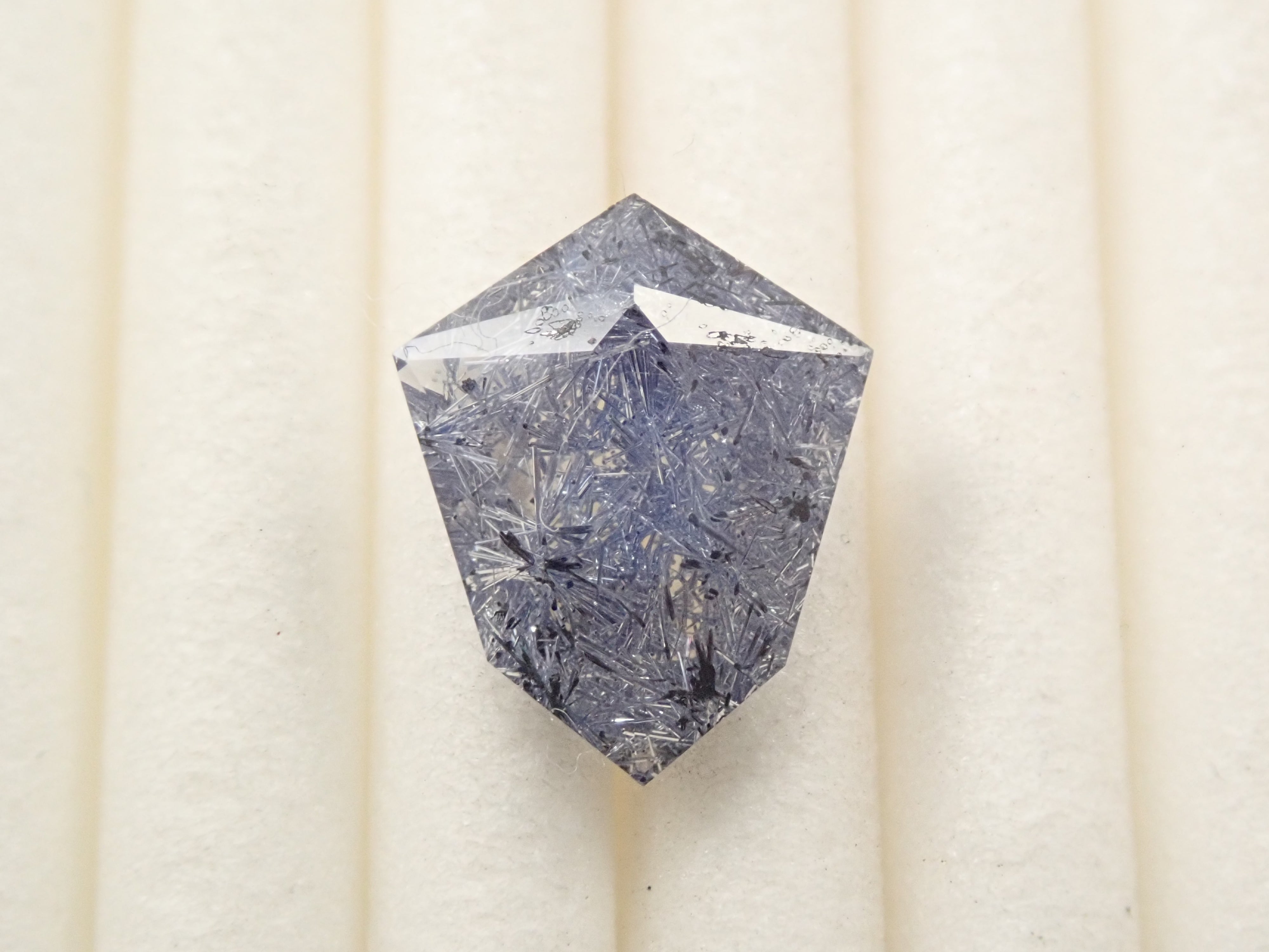 石英,日文稱為“suisho”,是日本常見的寶石,但它也是一種色澤深邃的寶石,種類繁多,包括紫水晶和黃水晶。這款藍線石是石英中的藍線石,擁有美麗的藍色內含物。其他寶石中沒有一種擁有相同的紋路,因此它成為收藏家們的心頭好。