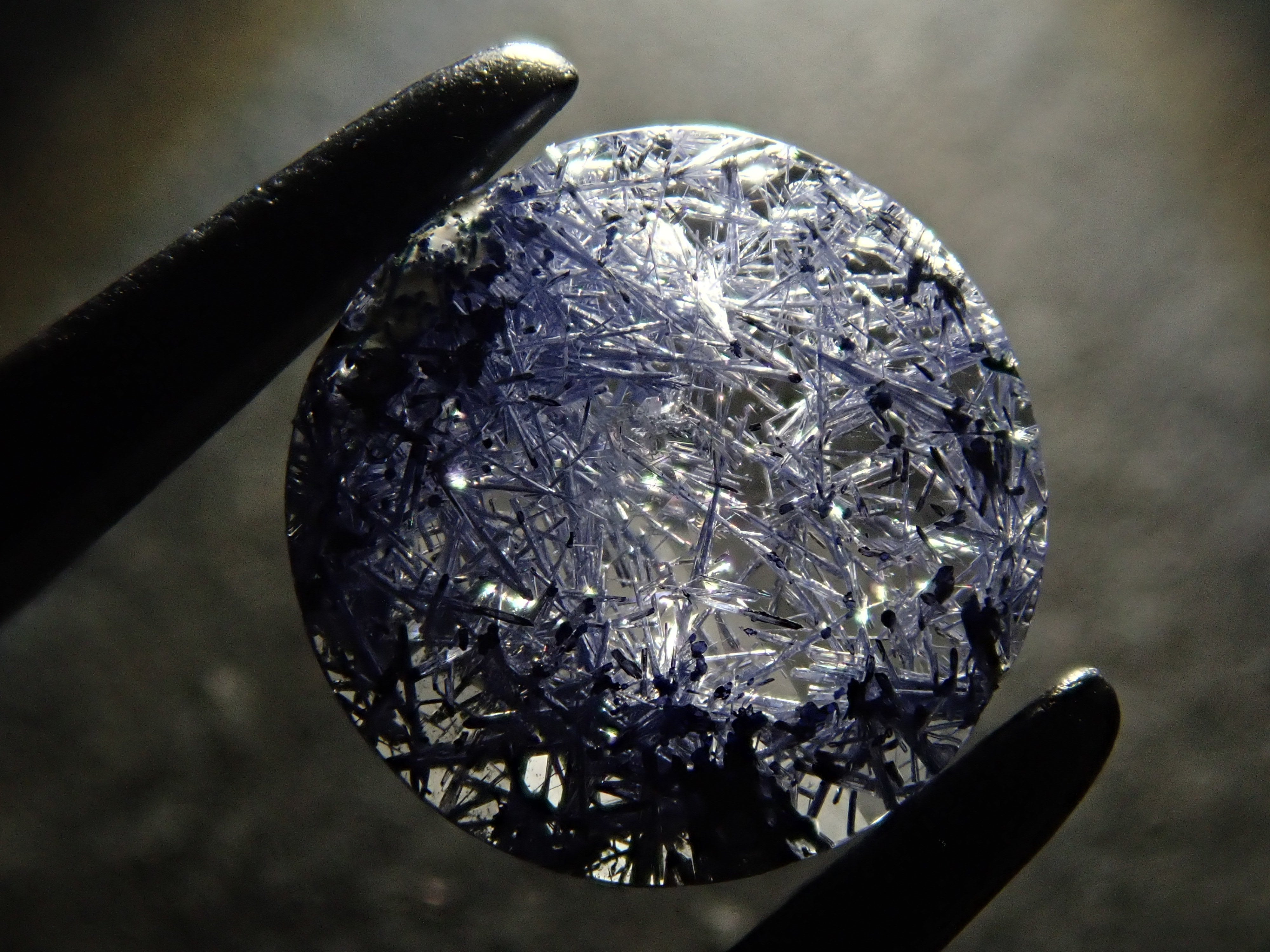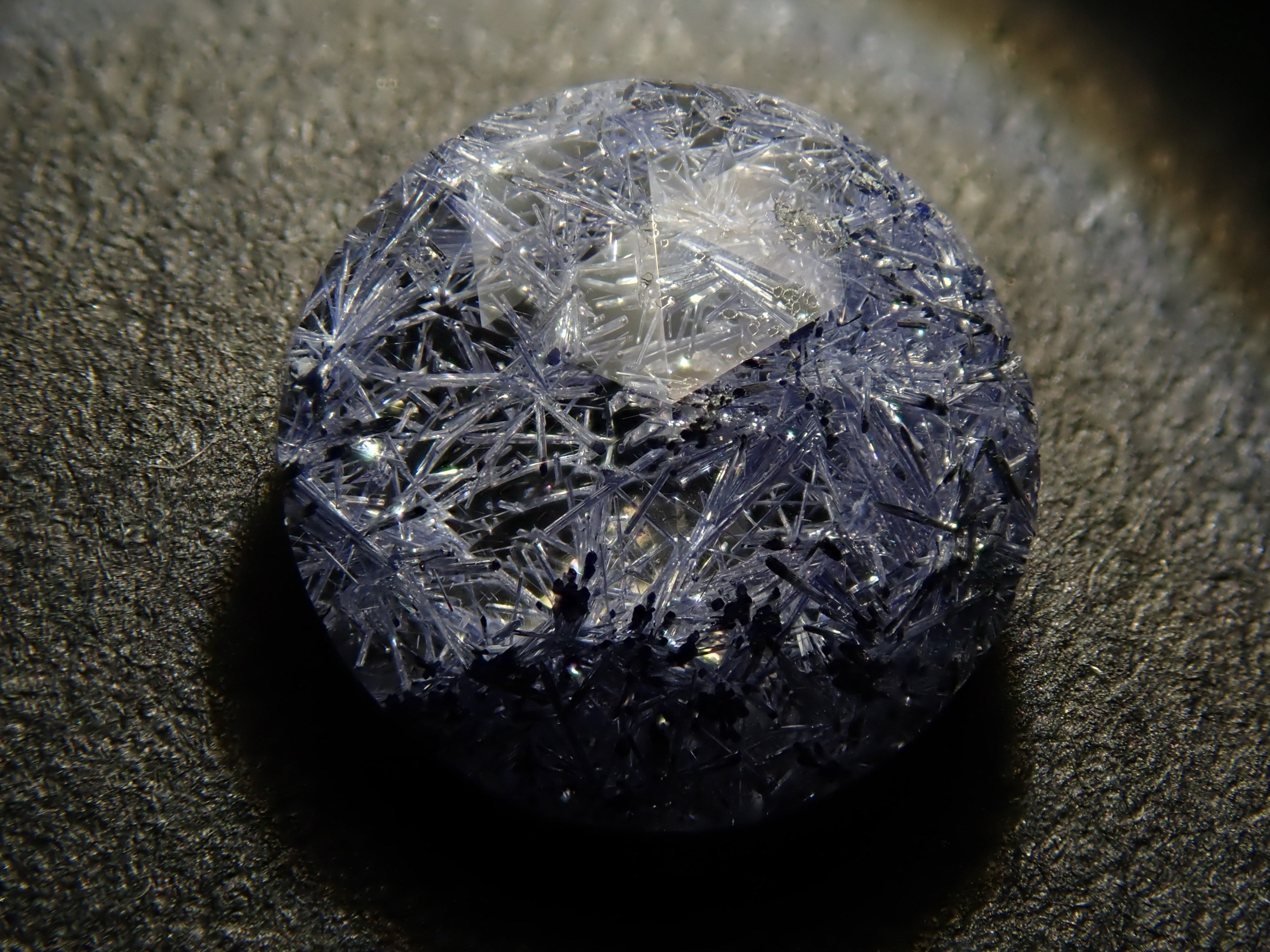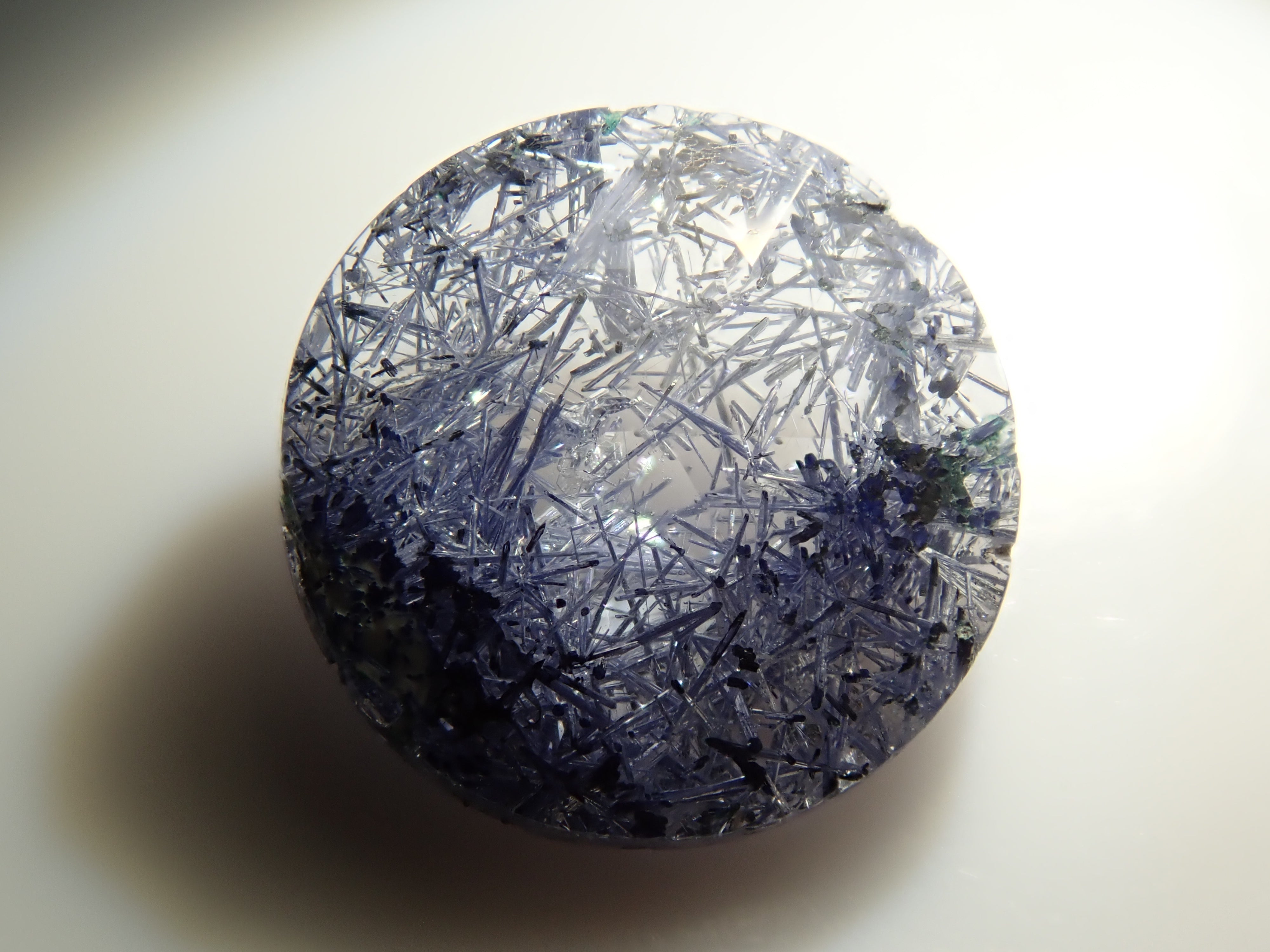 石英在日文中稱為水晶。它是一種在日本非常熟悉的石頭,但它也是一種深寶石,有紫水晶和黃水晶等多種類型。這是石英中的矽錳礦,具有美麗的藍色內含物。沒有任何寶石具有相同的圖案,這塊石頭肯定會吸引收藏家。由斯里蘭卡拋光師 Sanjay 切割的石英矽錳鐵礦。
