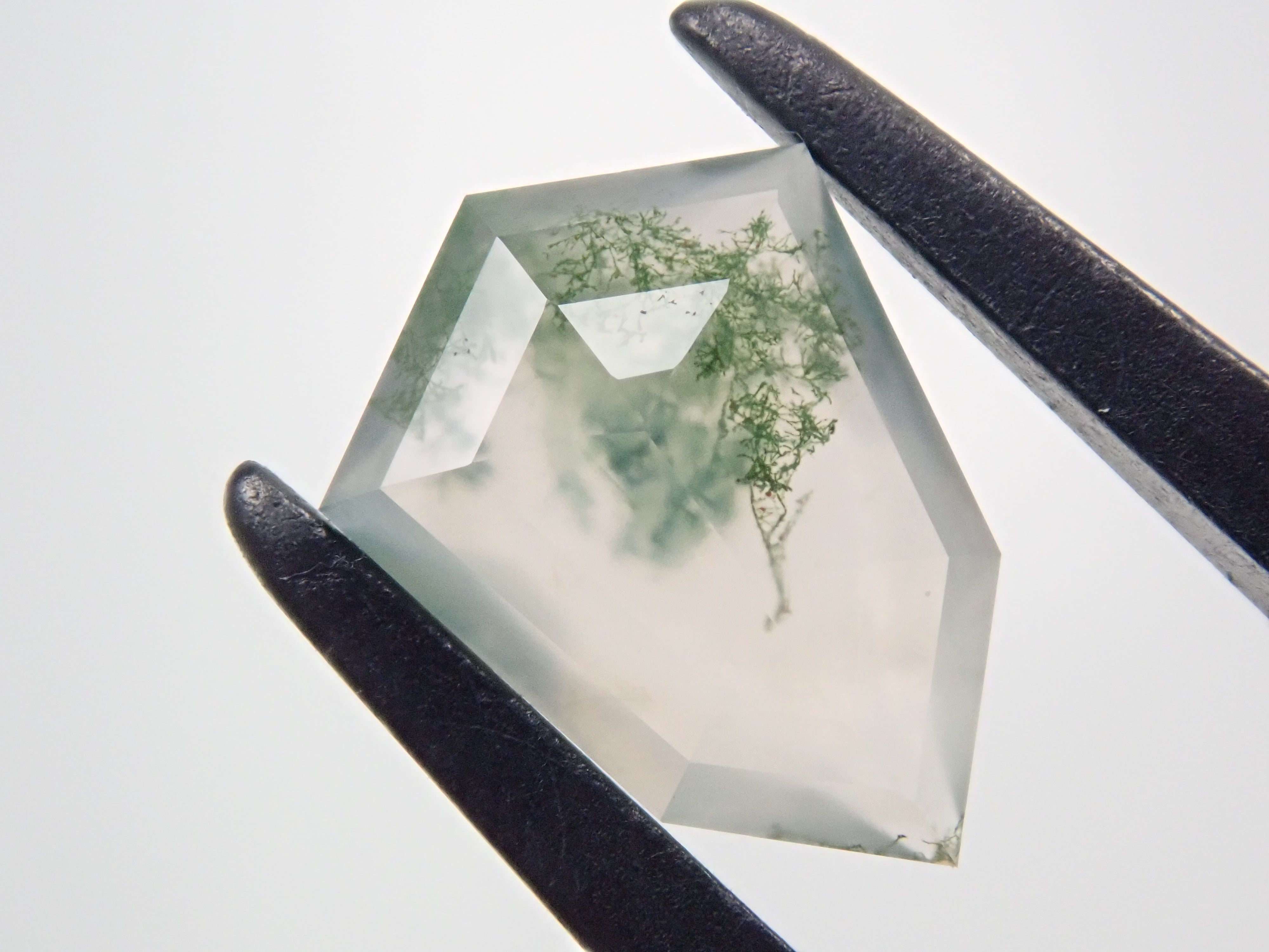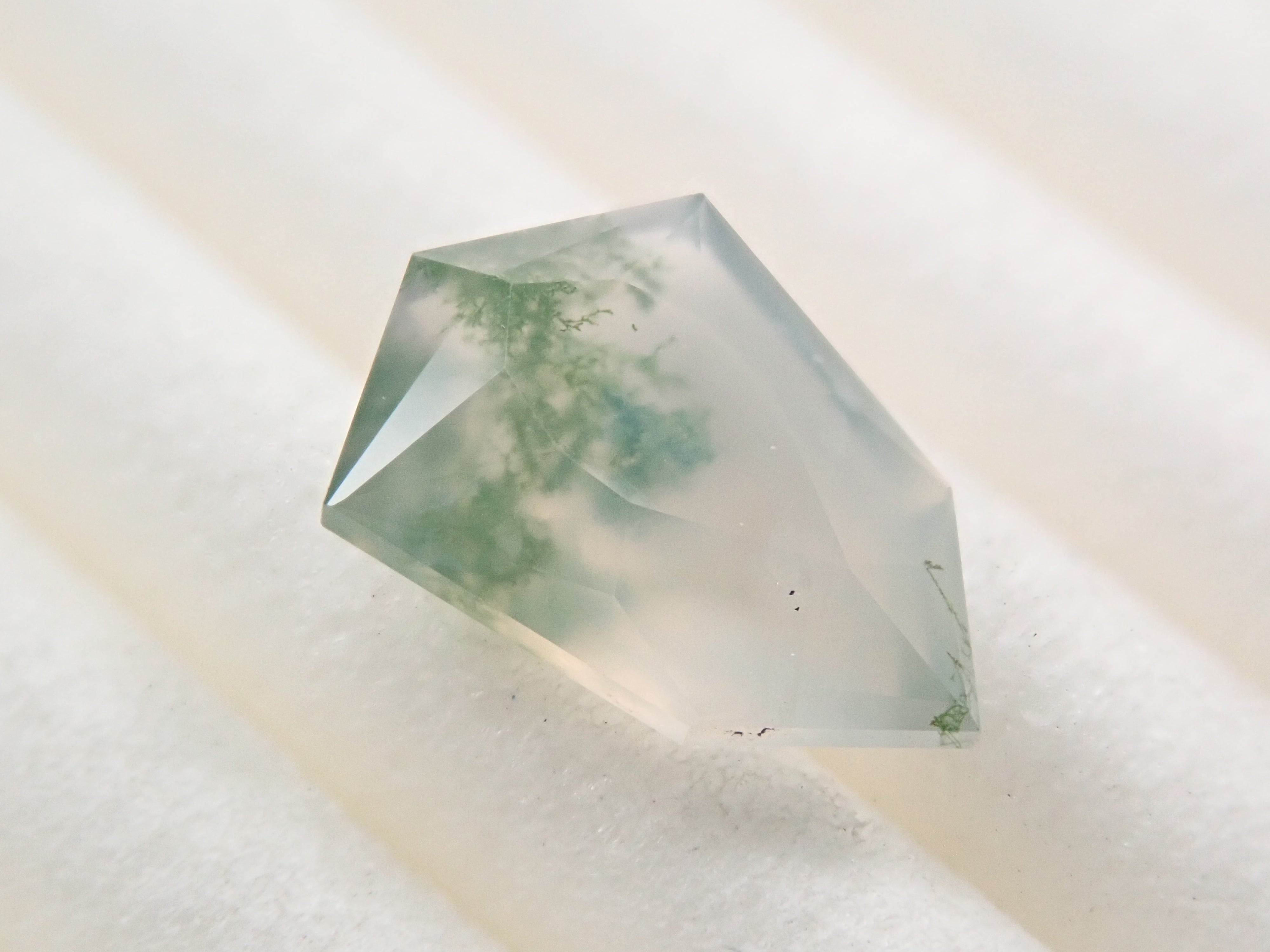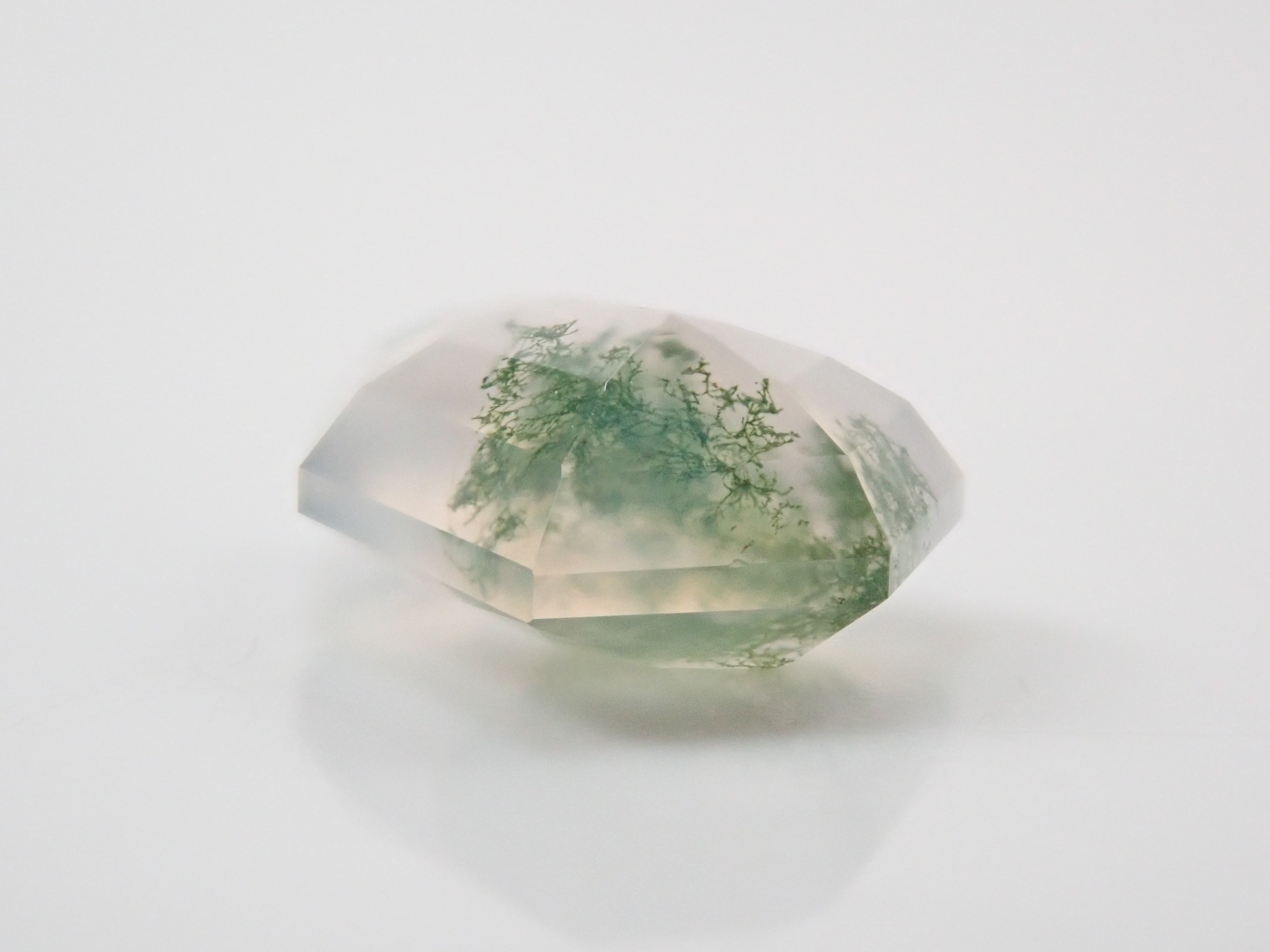 苔蘚瑪瑙是一種神祕的石頭,看起來裡面好像有植物。這些圖案看起來像苔蘚或水下藻類,有些是深綠色的,讓人想起樹枝或森林。苔蘚瑪瑙是石英的多晶形式。它的日文名稱是“瑪瑙”,有在日本開採的記錄。
