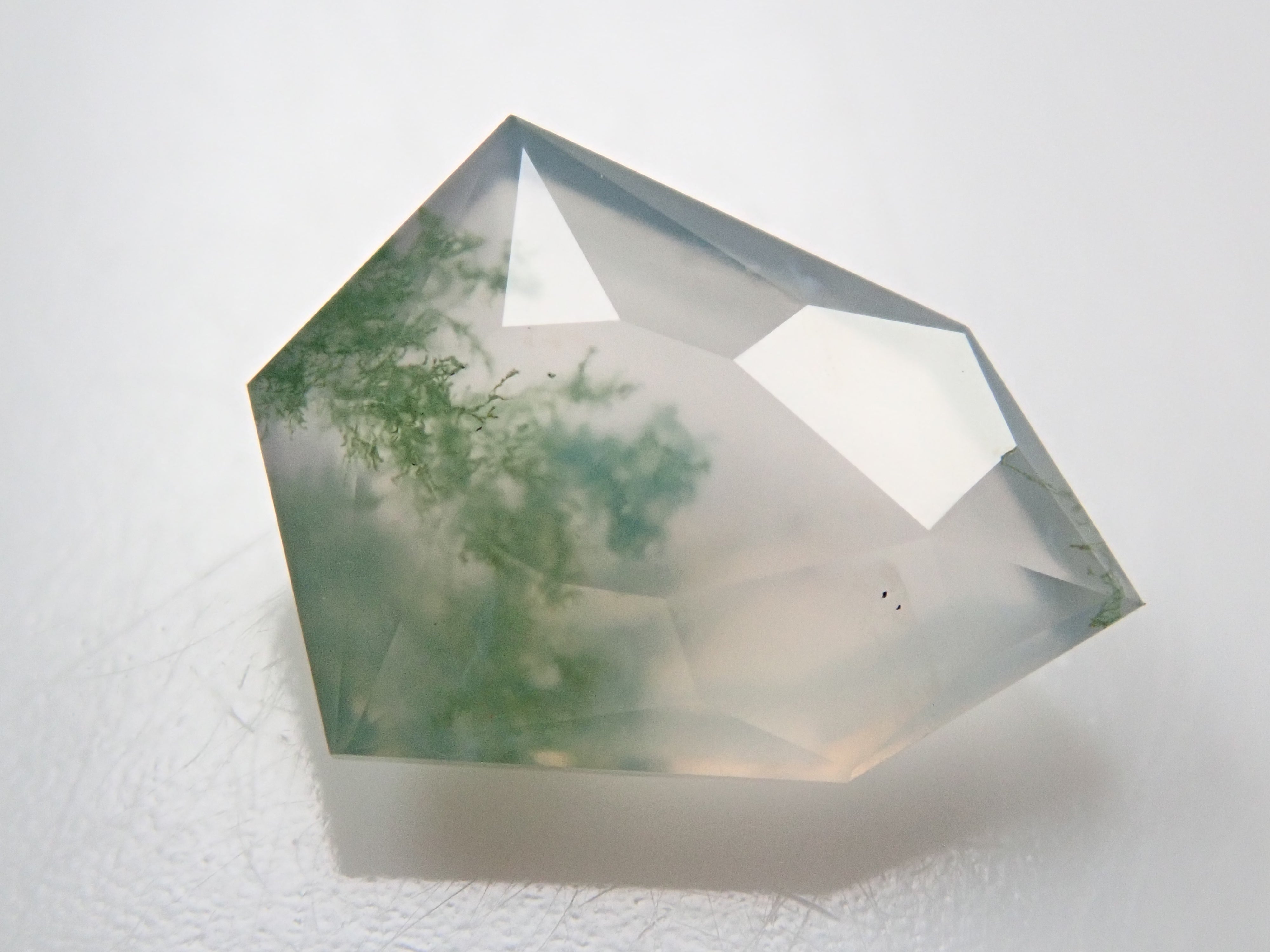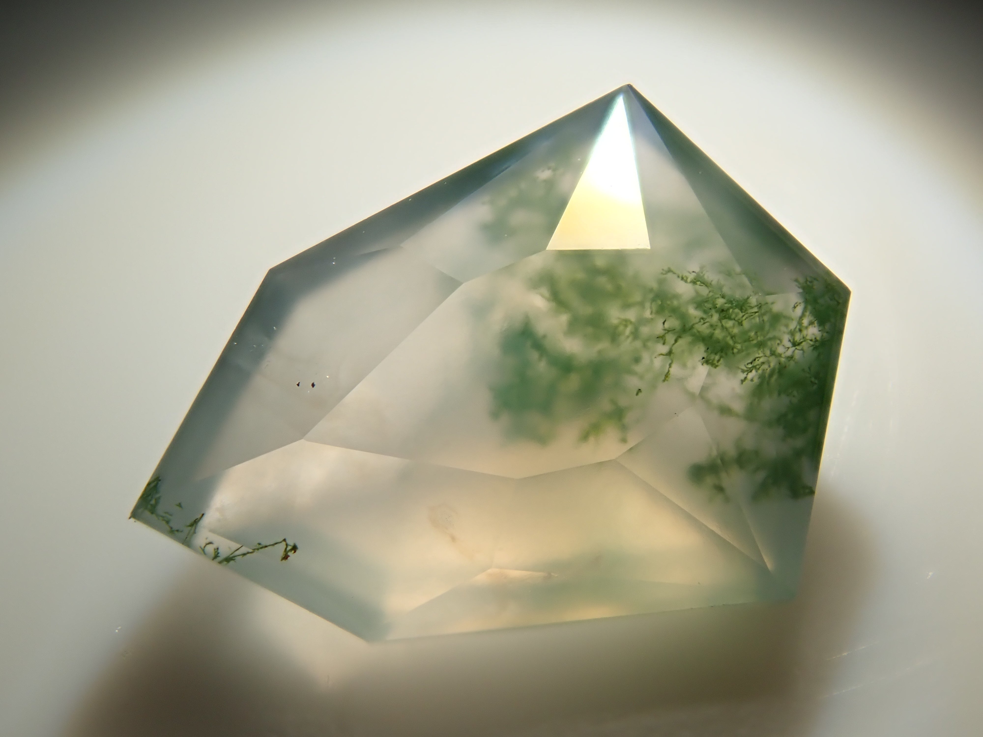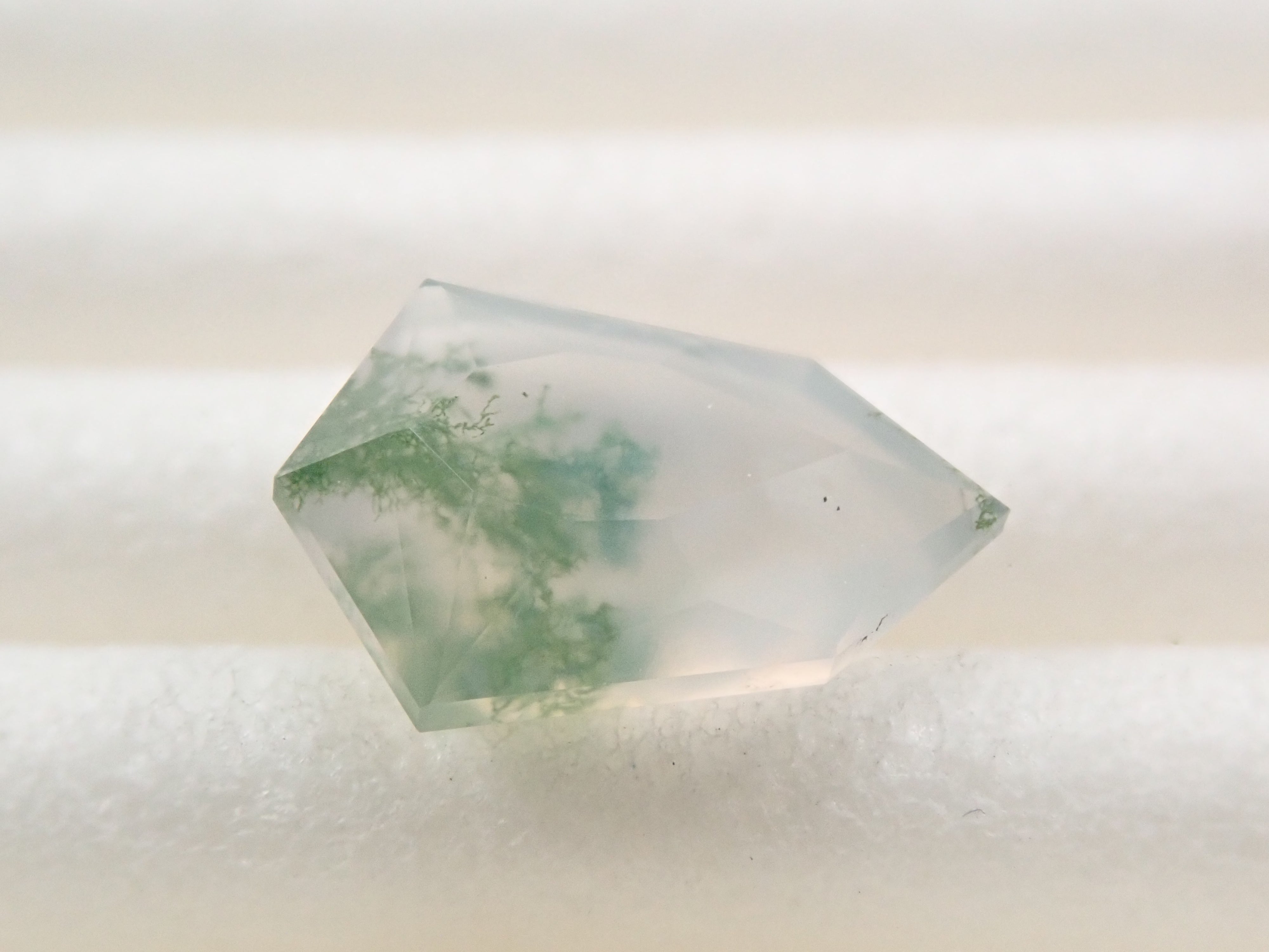 苔蘚瑪瑙是一種神祕的石頭,看起來裡面好像有植物。這些圖案看起來像苔蘚或水下藻類,有些是深綠色的,讓人想起樹枝或森林。苔蘚瑪瑙是石英的多晶形式。它的日文名稱是“瑪瑙”,有在日本開採的記錄。