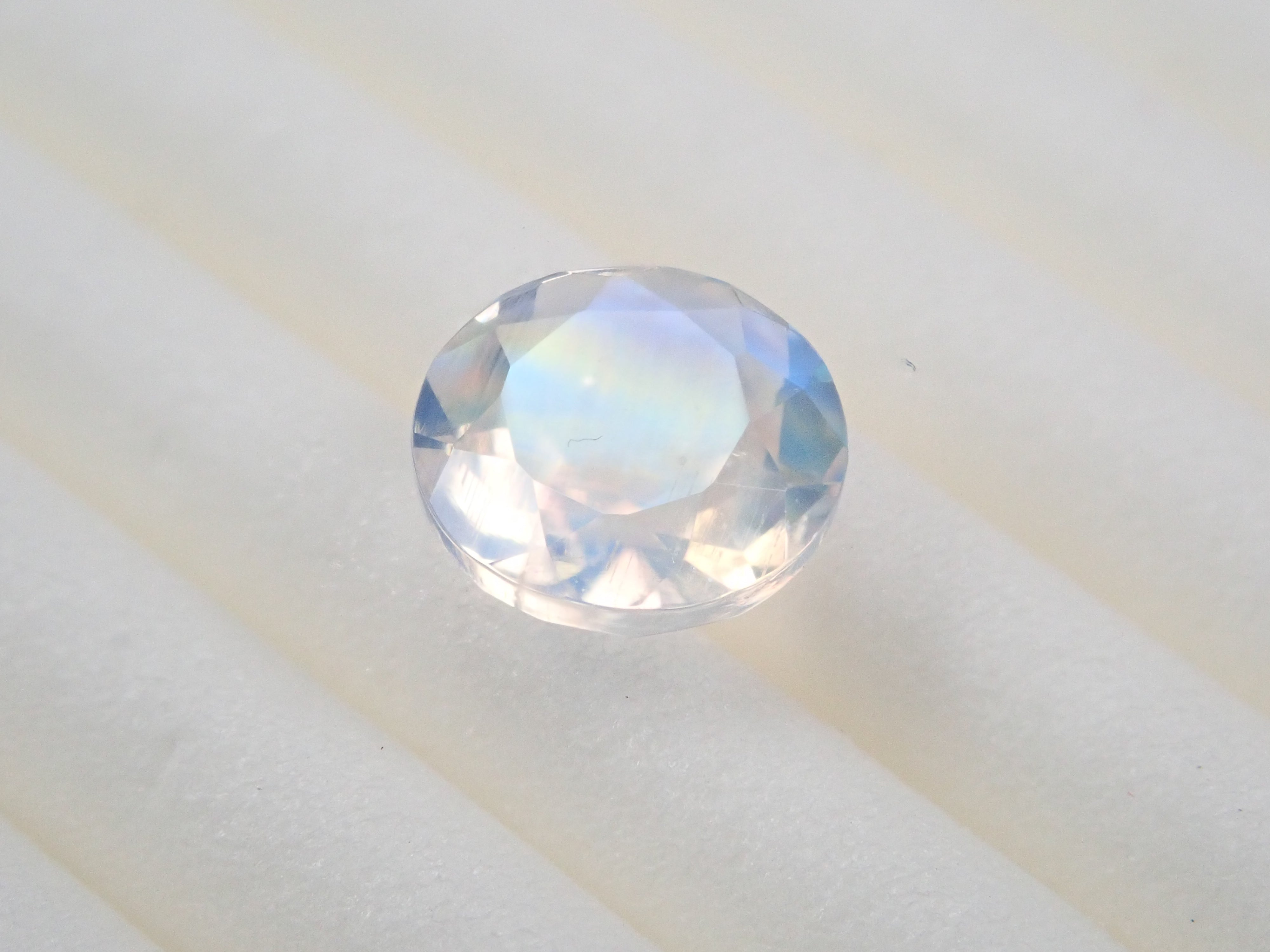 它是一種位於中長石和拉長石之間的寶石,它們屬於同一斜長石族。閃閃發光的彩虹色光學效果是如此神秘,讓您想永遠看著它。這是一種高品質彩虹月光石,具有高透明度和席勒效應。圓切6.0mm。
