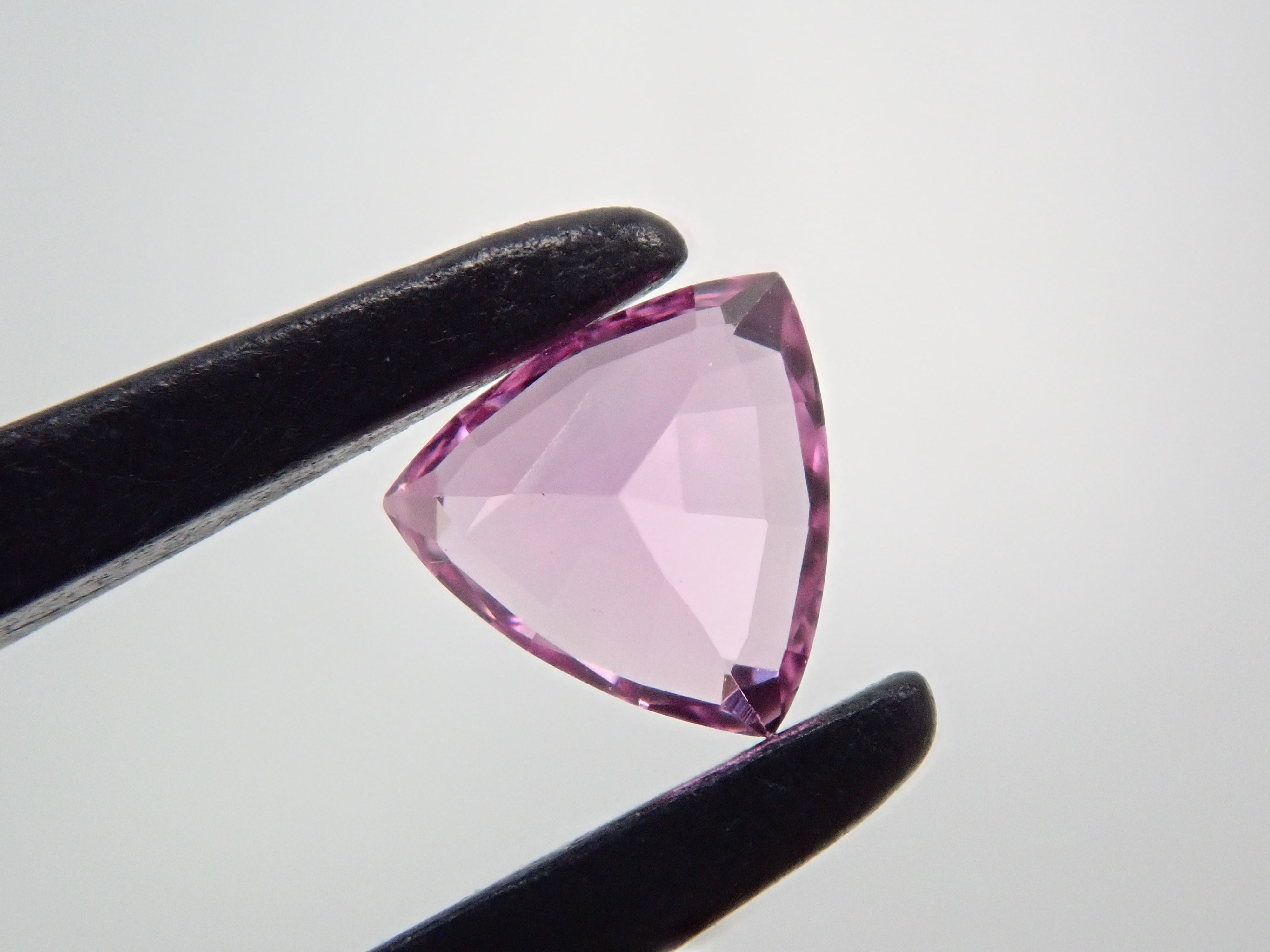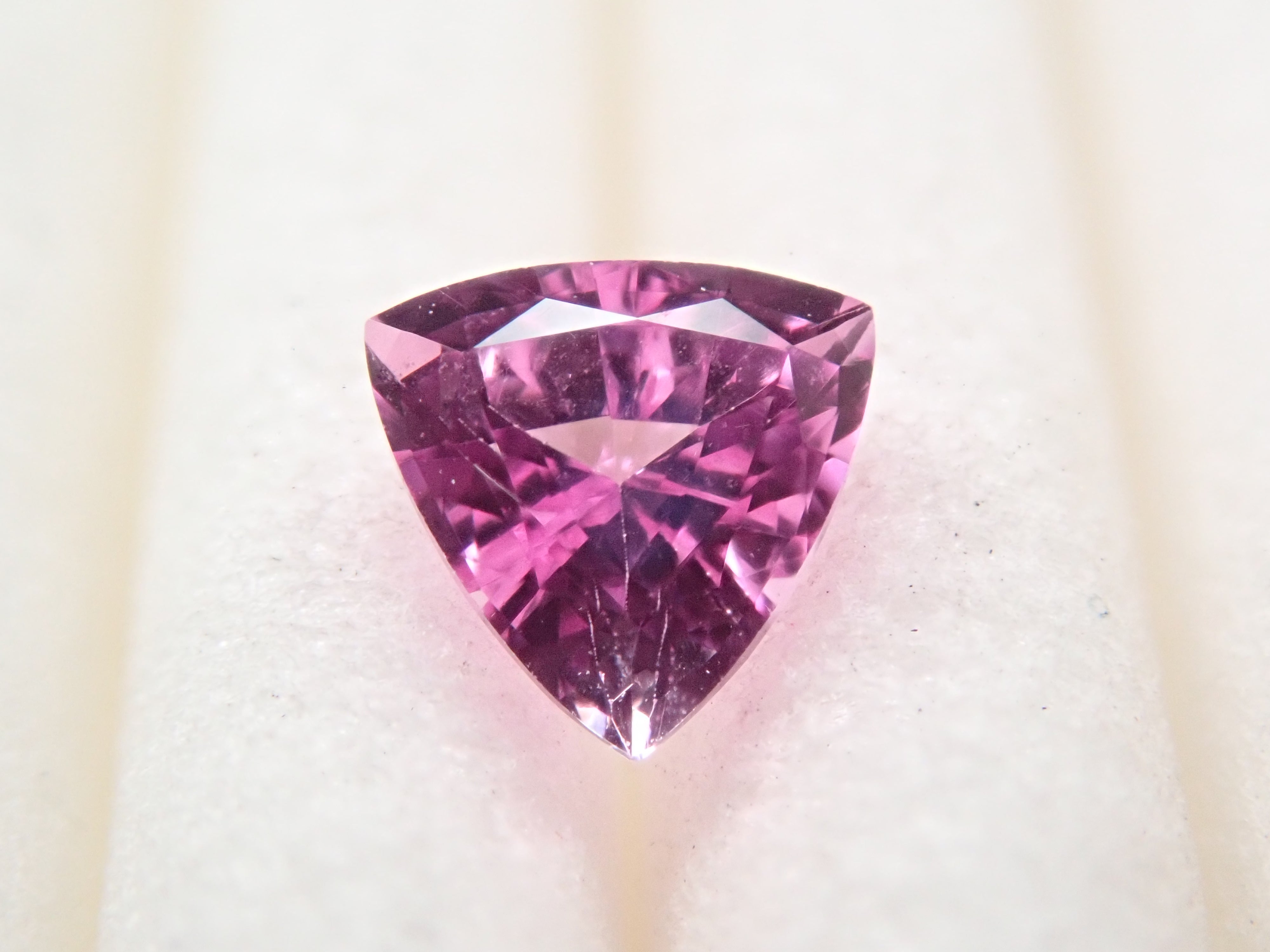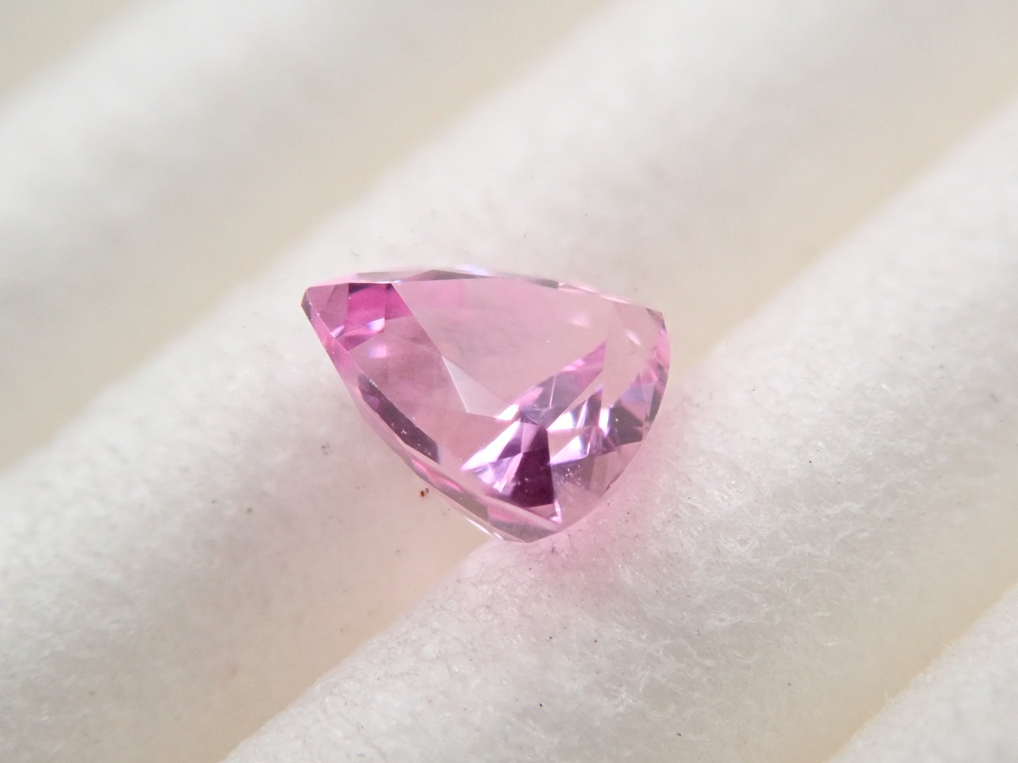 藍寶石是一種著名的寶石。礦物為剛玉,與紅寶石相同,但除紅色以外的所有剛玉稱為藍寶石。這是一顆帶有鮮明桃色的粉紅色藍寶石。藍寶石的硬度為 9,是僅次於鑽石的第二硬寶石,是一種高度堅韌、穩定且易於護理的寶石。顏色鮮豔的粉紅色藍寶石。這種類型也稱為亮粉色藍寶石。