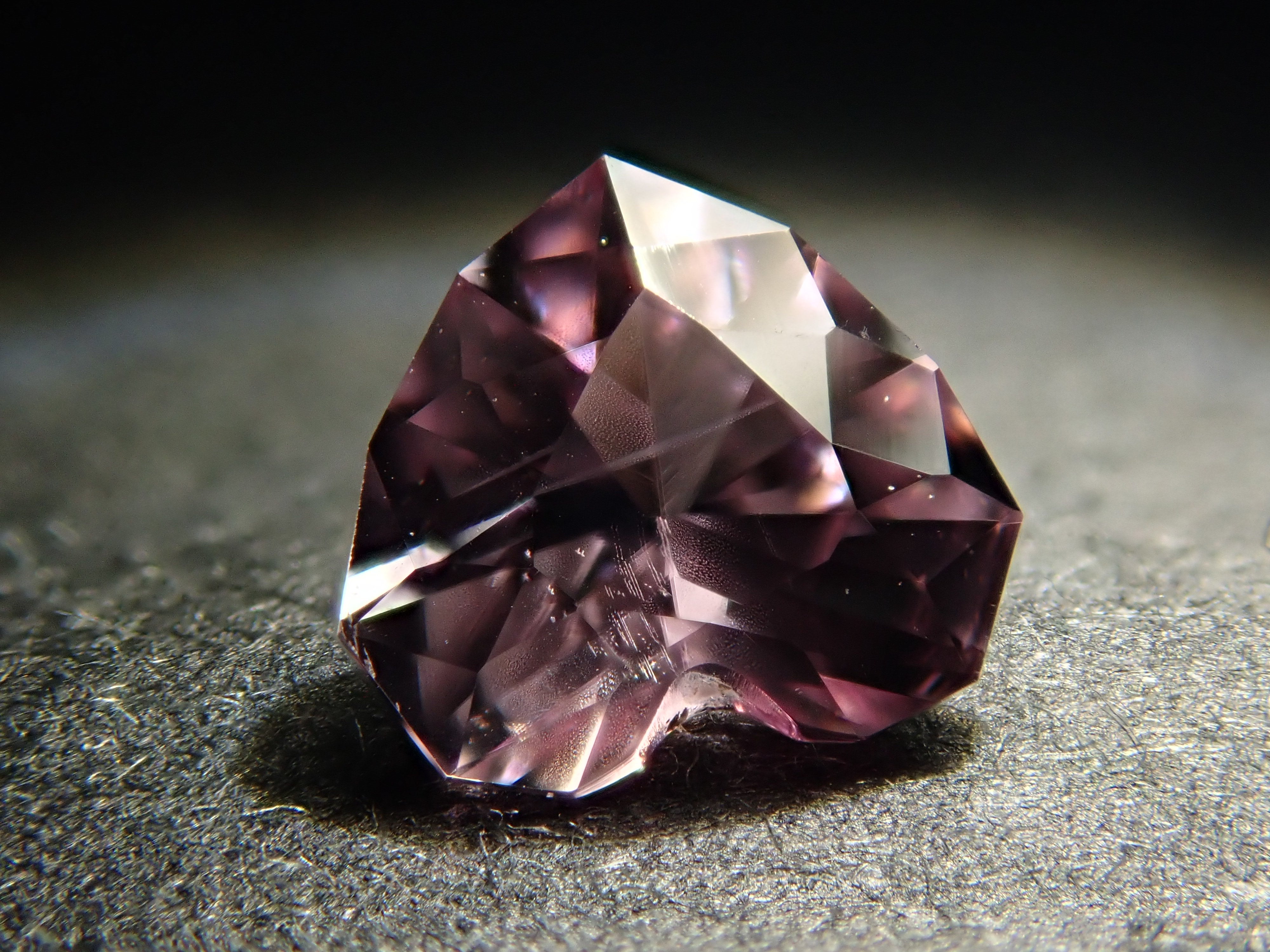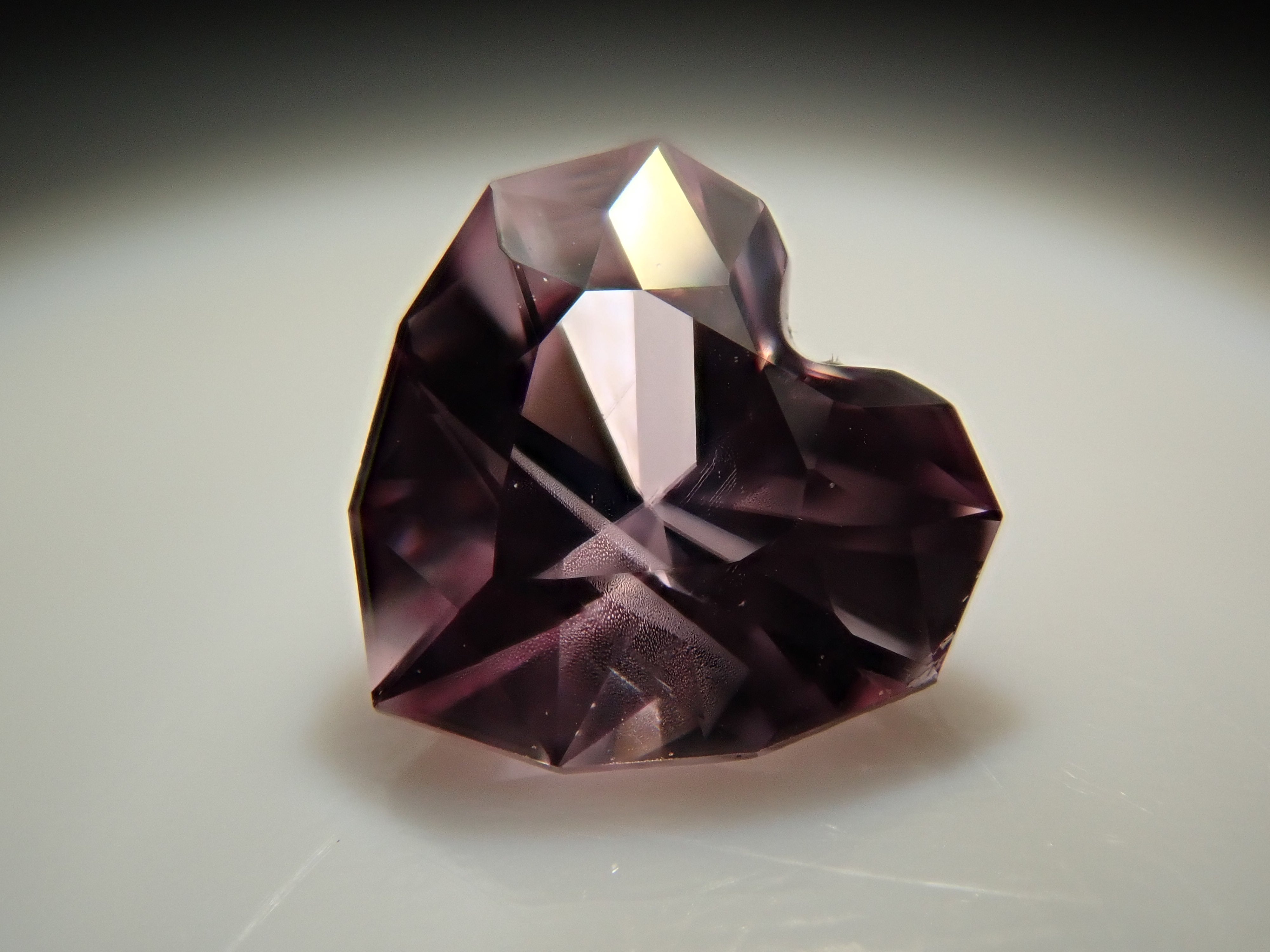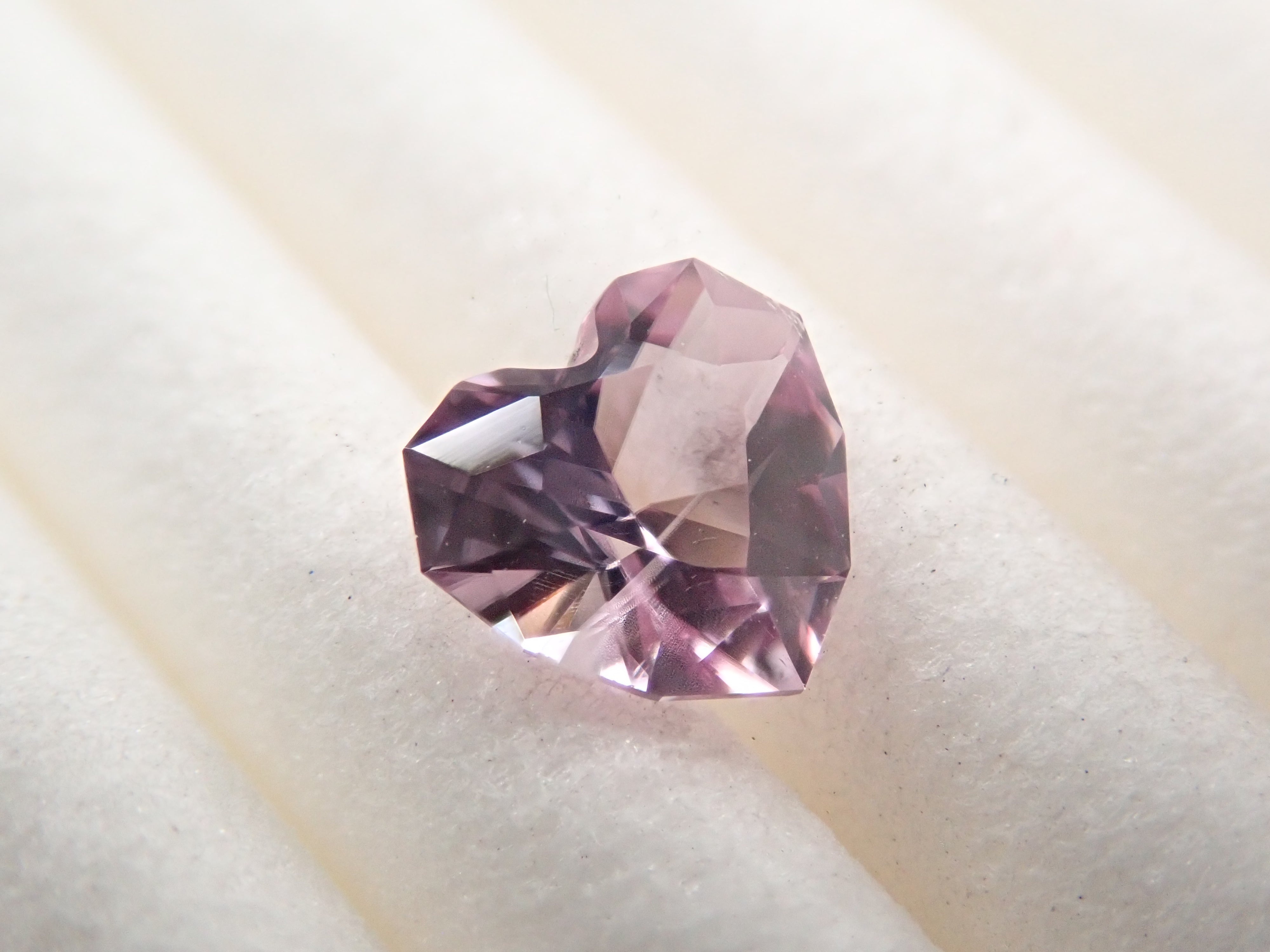 稀有石頭「水鋁石」。它有時以“Zultanite”的名稱出售。它提供多種顏色變化,從平靜的色調到可愛的色調。寶石級寶石十分稀有且難以切割,因此很難作為寶石進行分銷。請務必將其添加到您的收藏中。這是一顆由斯里蘭卡拋光工匠 Sanjay 定制切割的心形粉紅色孢子鑽石 0.351 克拉裸鑽。
