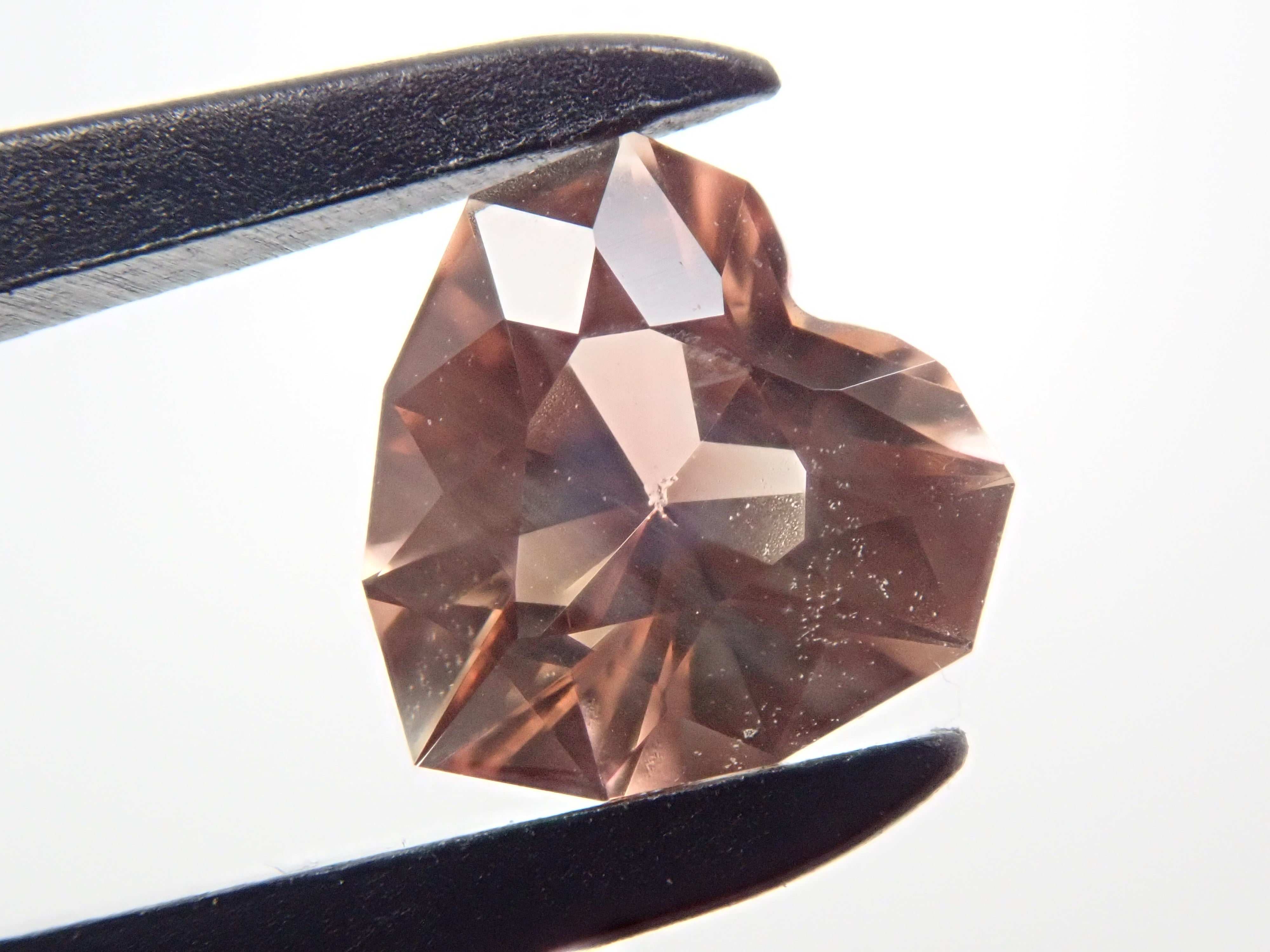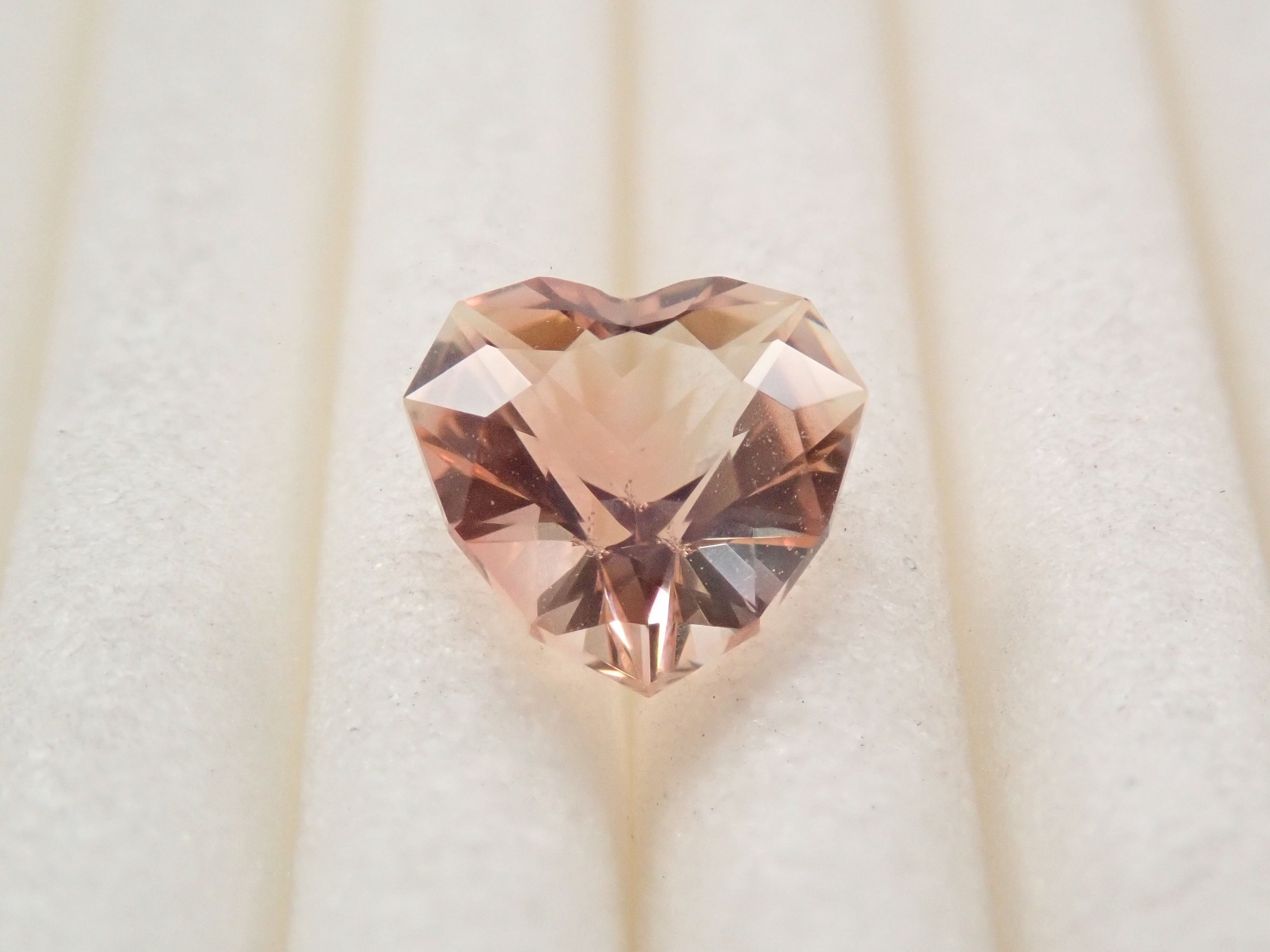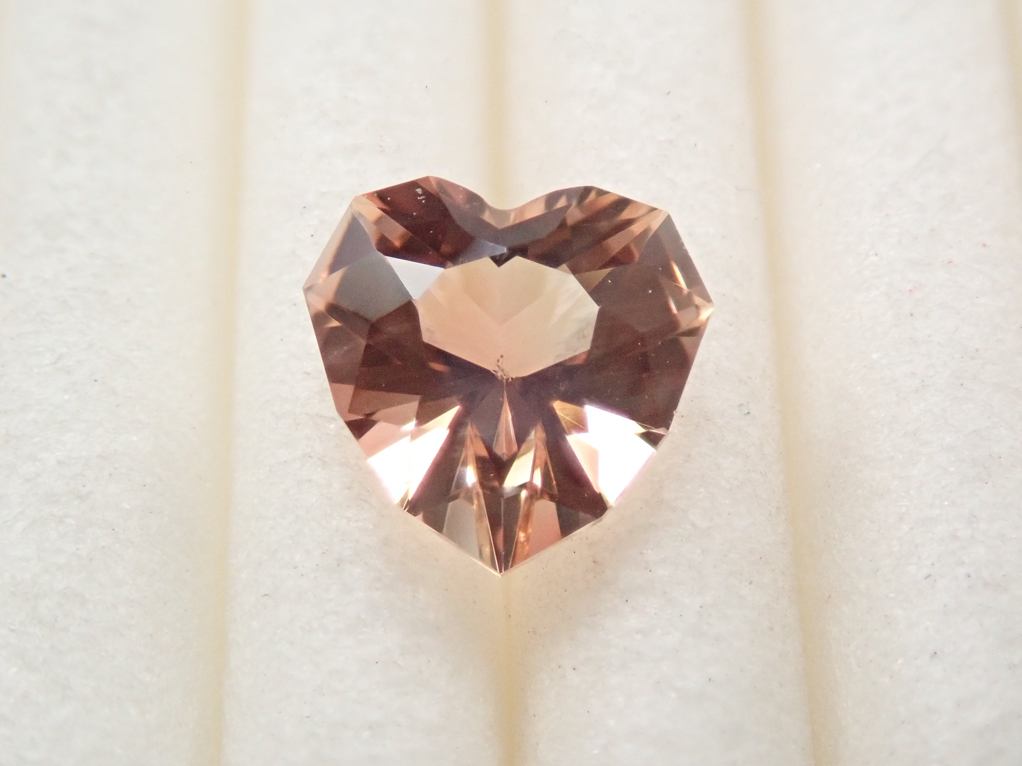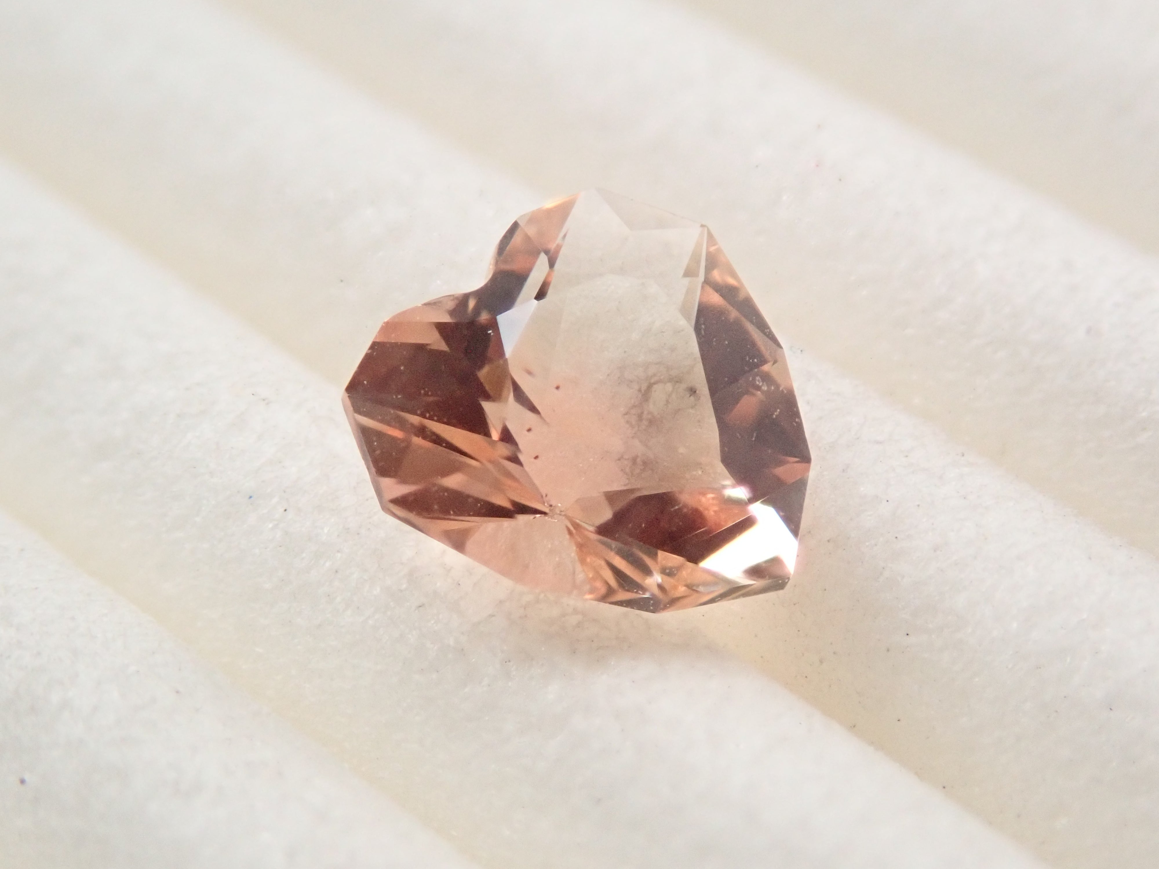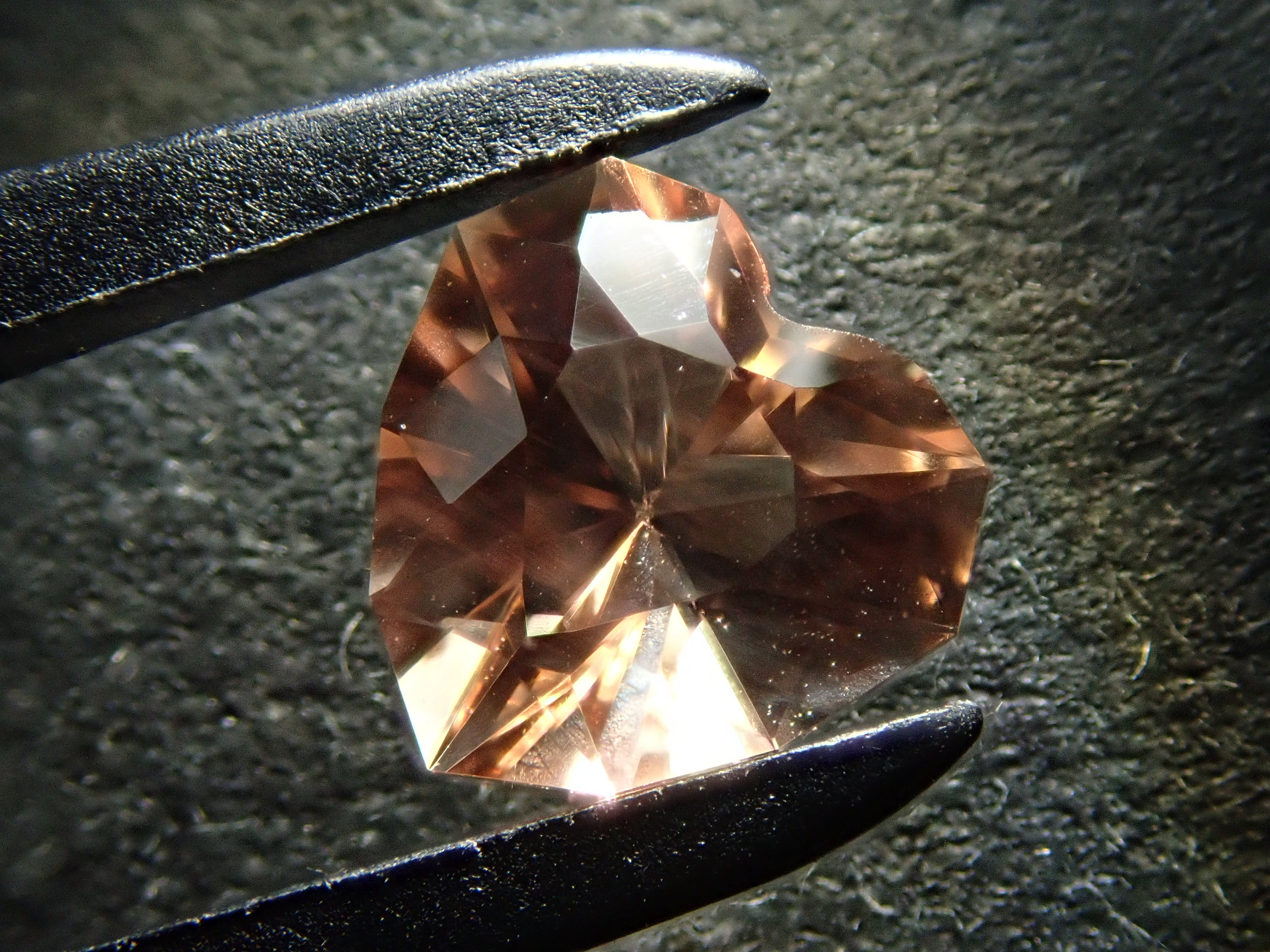 俄勒岡日光石據說是世界上最美麗的拉長石。近年來,這種石頭越來越受歡迎。還有一種稱為散光(席勒效應)的寶石,其中寶石內部的內含物會像閃光一樣反射。為了準確地傳達這些光學效果,攝影時使用筆燈。這是定制切割的心形俄勒岡日光石。俄勒岡日光石由斯里蘭卡拋光師 Sanjay 切割。