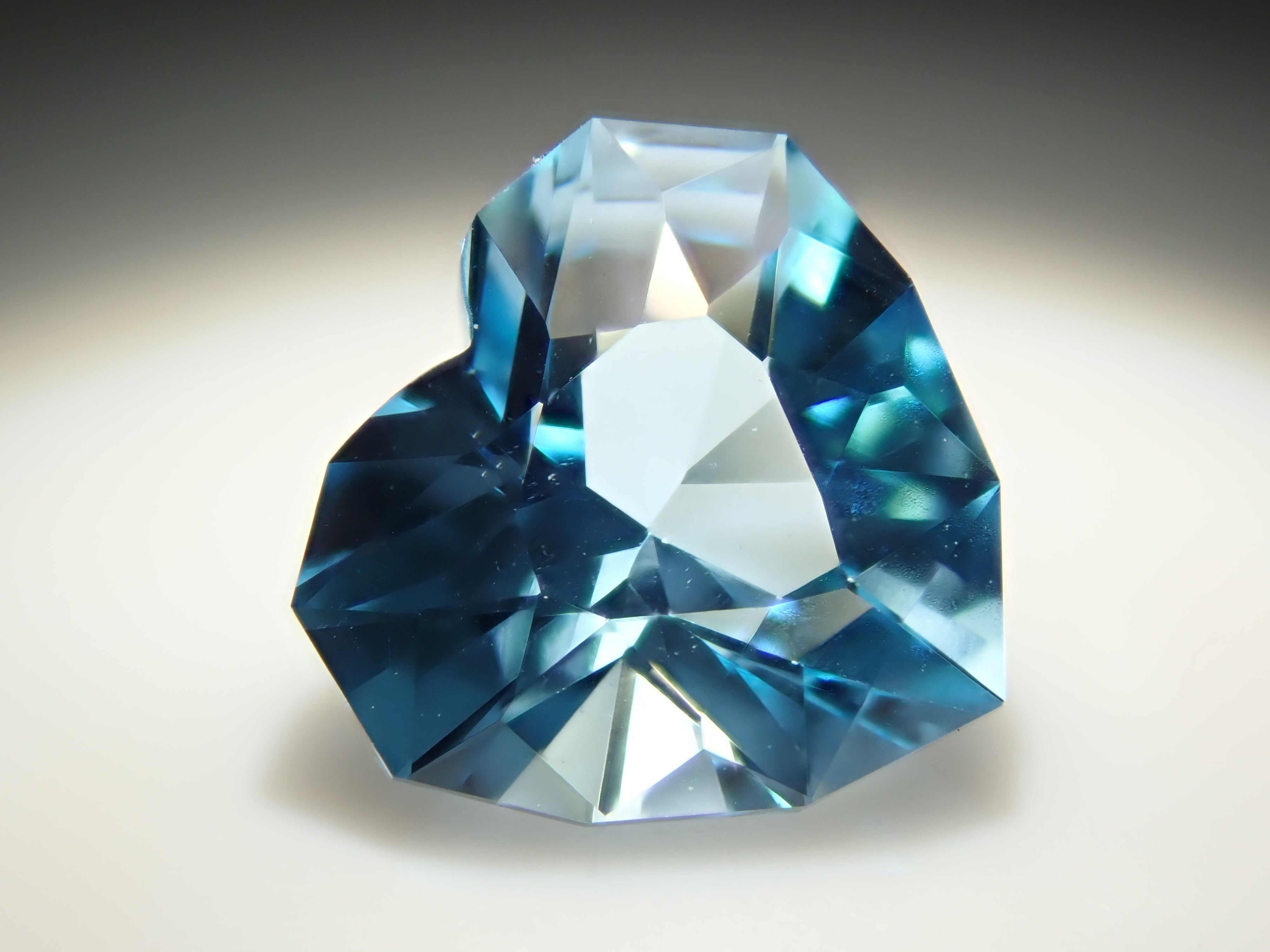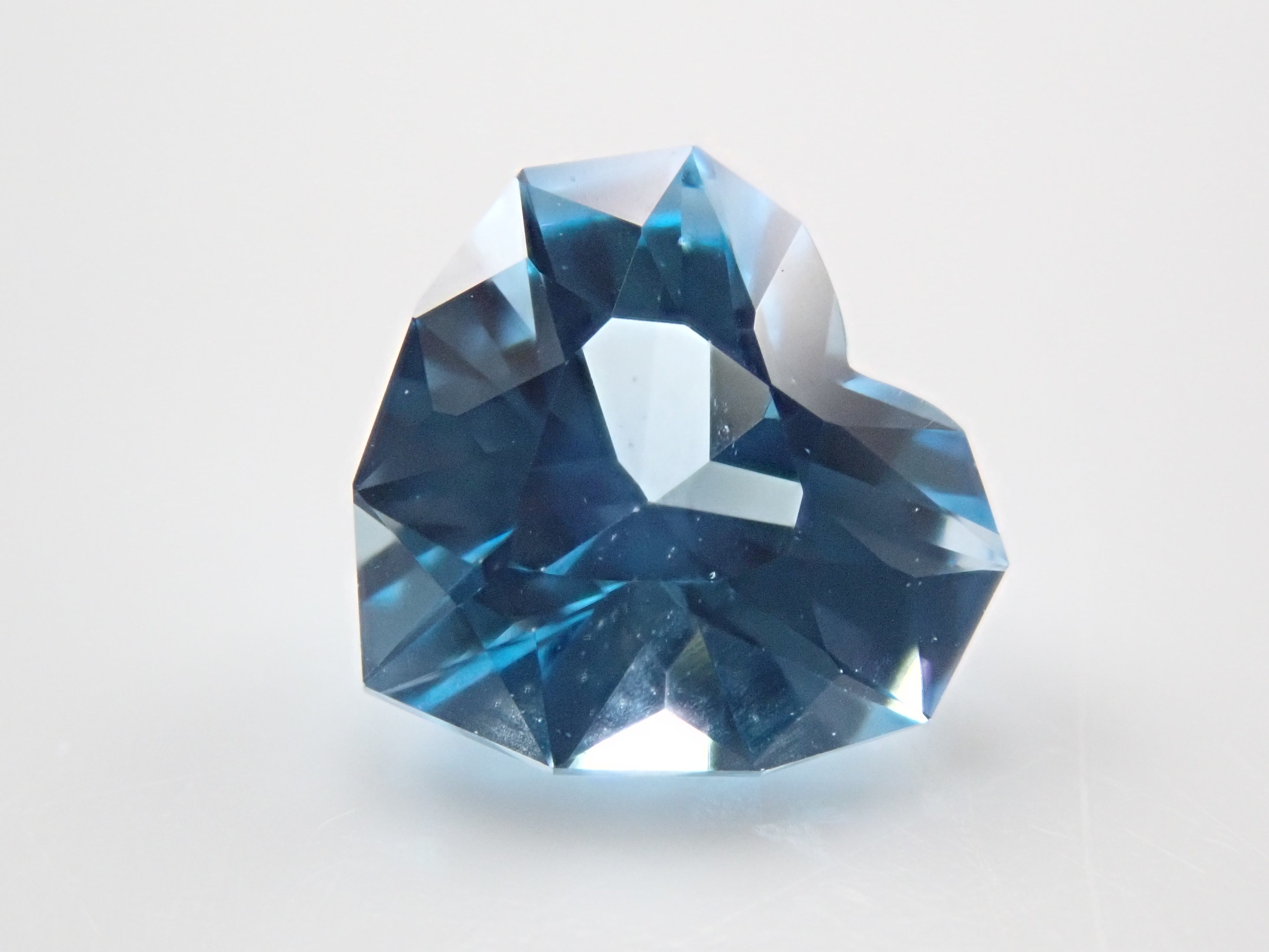藍色托帕石具有迷人的藍色,是最受歡迎的托帕石顏色之一,有多種顏色。其中,「天藍色托帕石」就是像這顆散石一樣的薄而明亮的藍色寶石。由斯里蘭卡拋光師 Sanjay 切割的心形訂製切割藍色托帕石。
