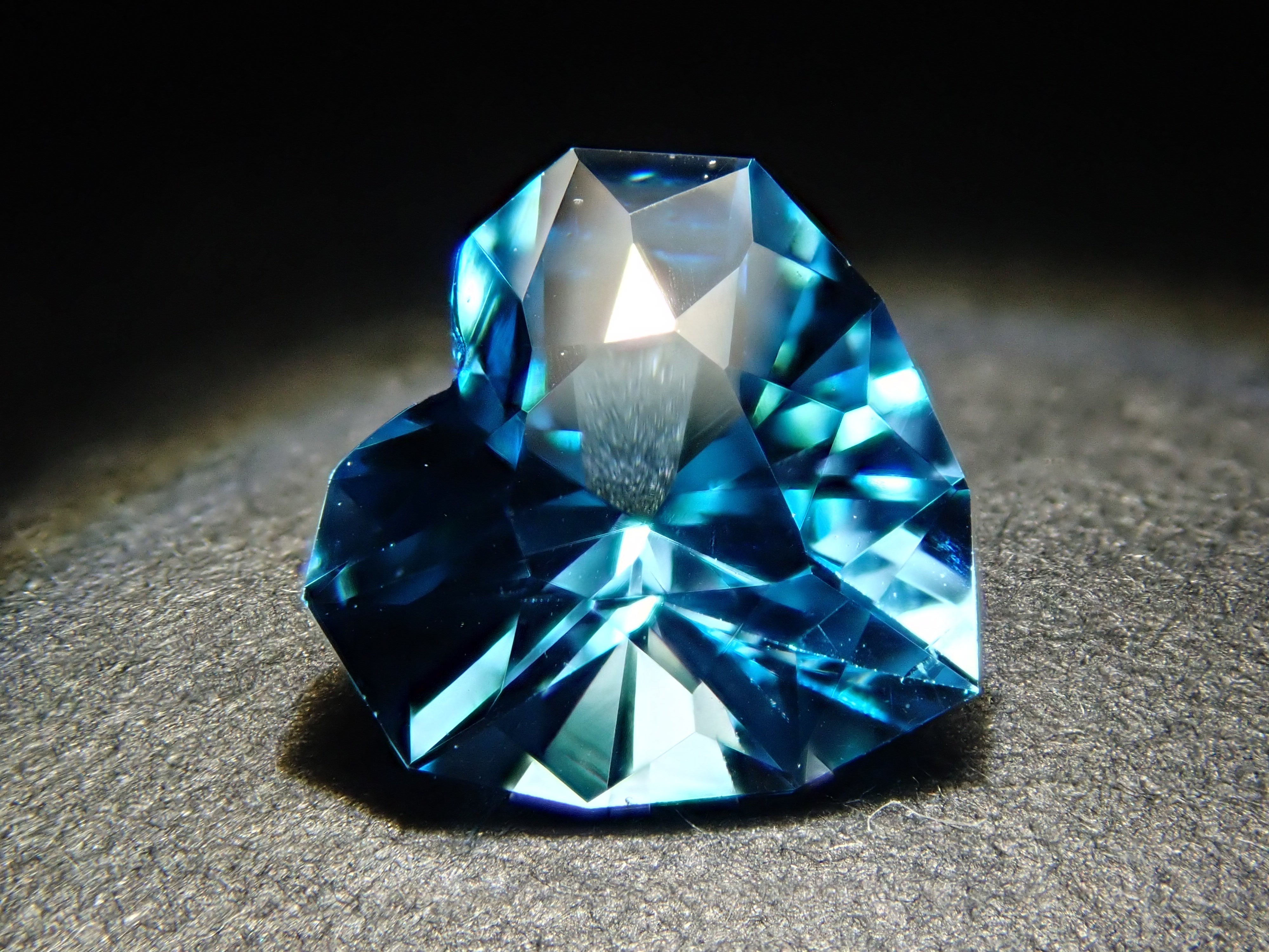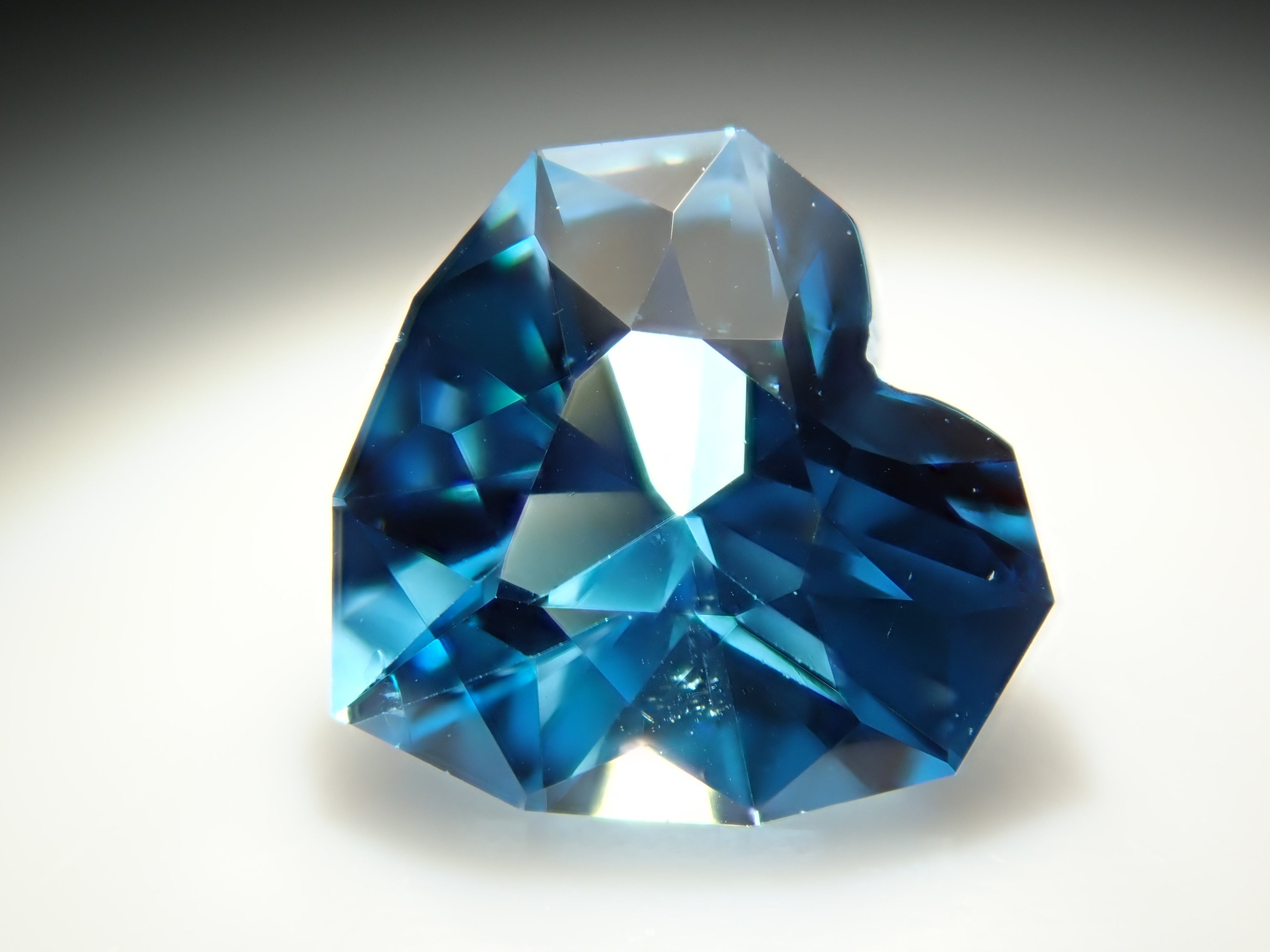藍色托帕石具有迷人的藍色,是最受歡迎的托帕石顏色之一,有多種顏色。其中,「瑞士藍托帕石」與這塊松石一樣,是一種深邃而鮮豔的藍色寶石。由斯里蘭卡拋光師 Sanjay 切割的心形藍色托帕石。客製化心形切割。