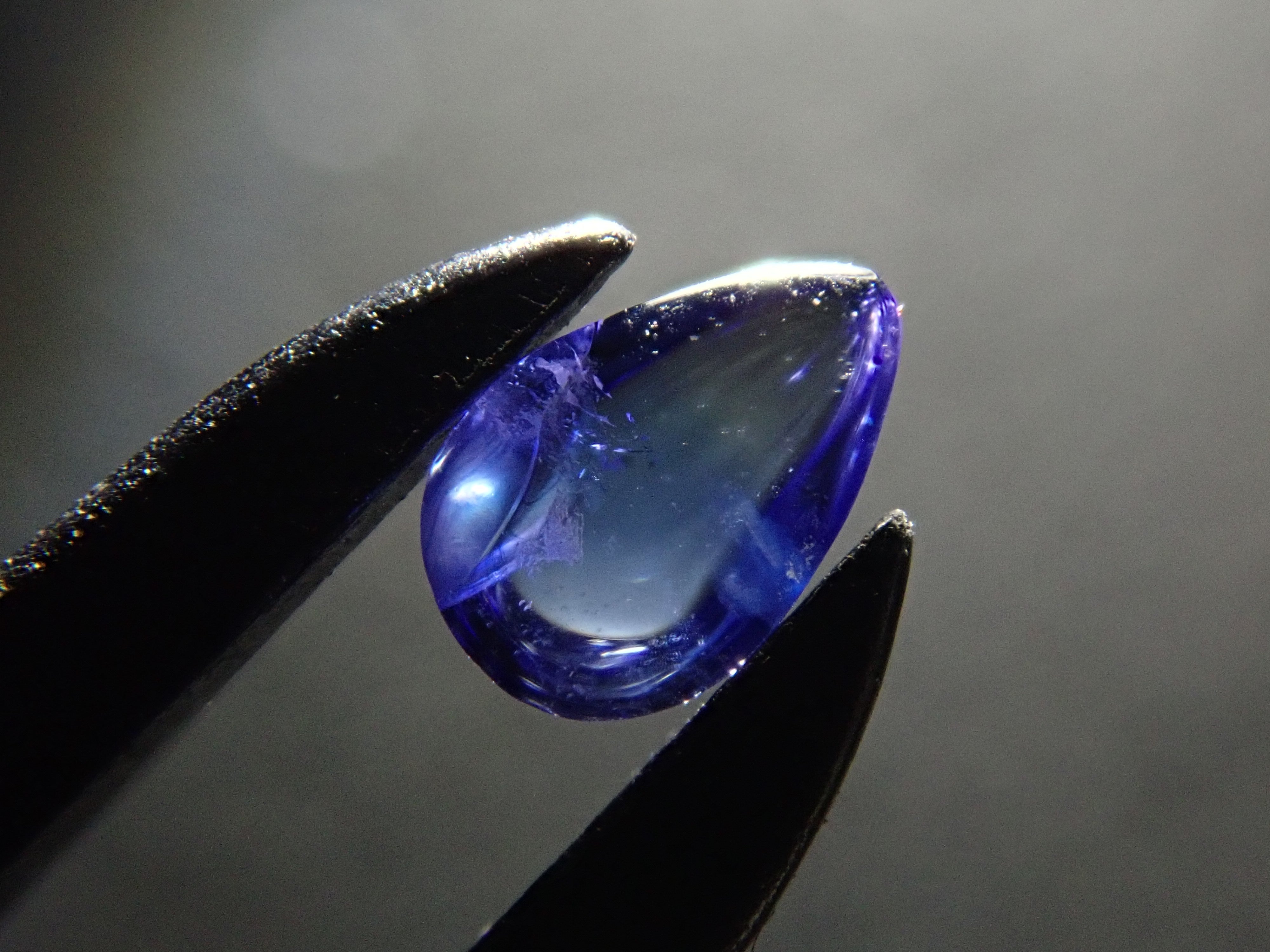 藍錐礦據說是美國三大稀有寶石之一。它是一種充滿寶石魅力的石頭,擁有鑽石般的強烈光澤和藍寶石般美麗的藍色。據說是1900年代在加州聖貝尼托河附近發現的,其特徵是光色散力強。凸圓面切工對於藍錐礦來說很罕見。