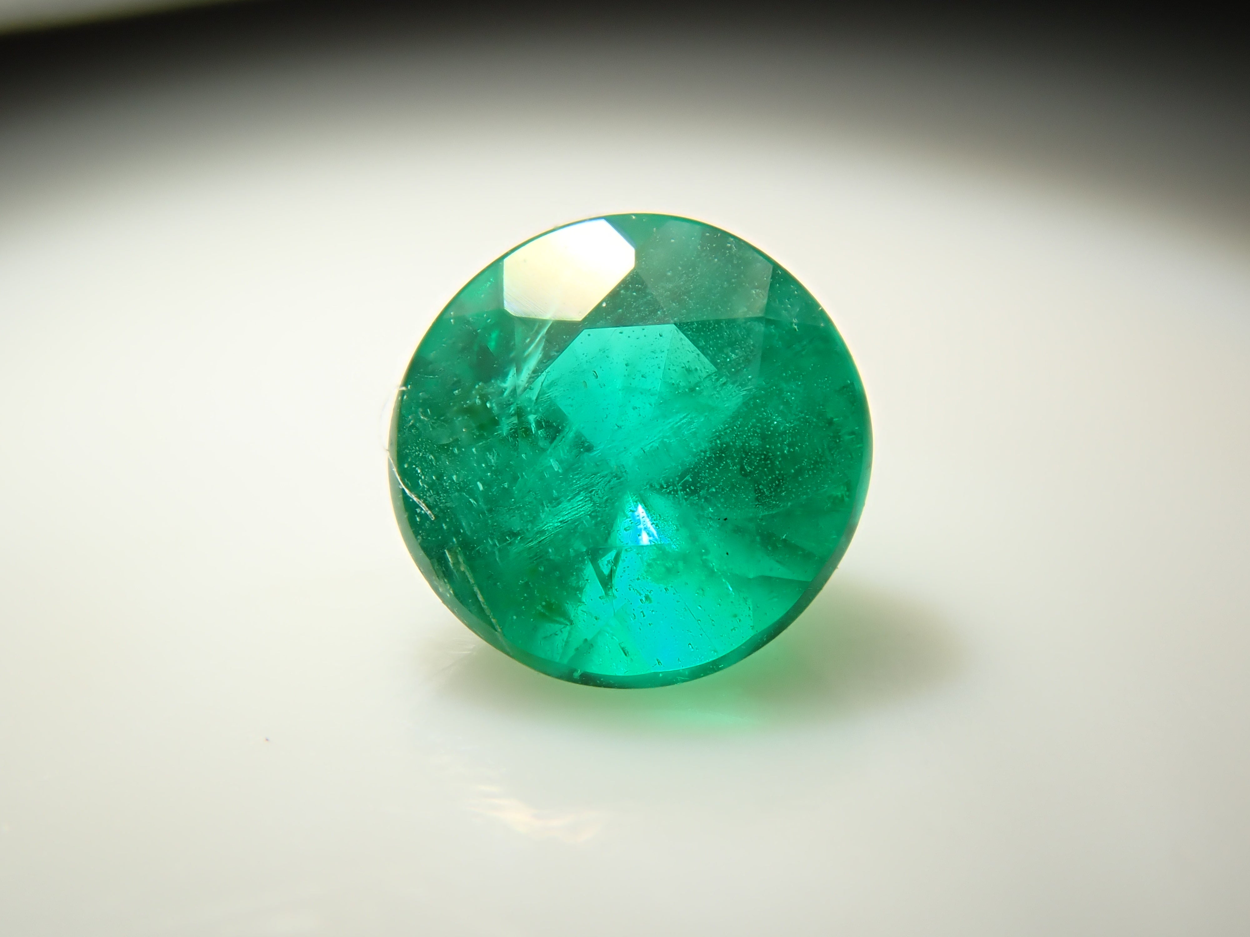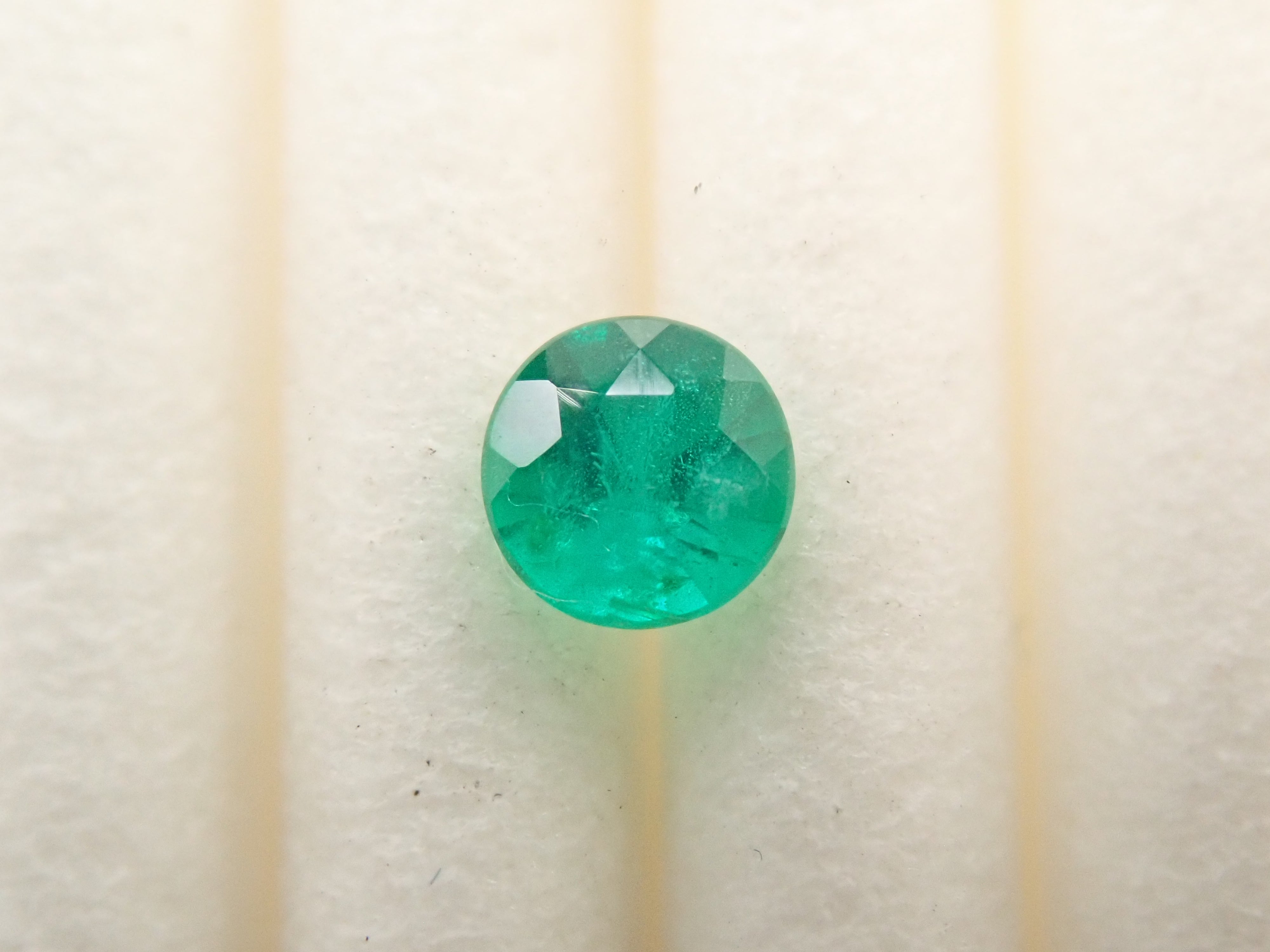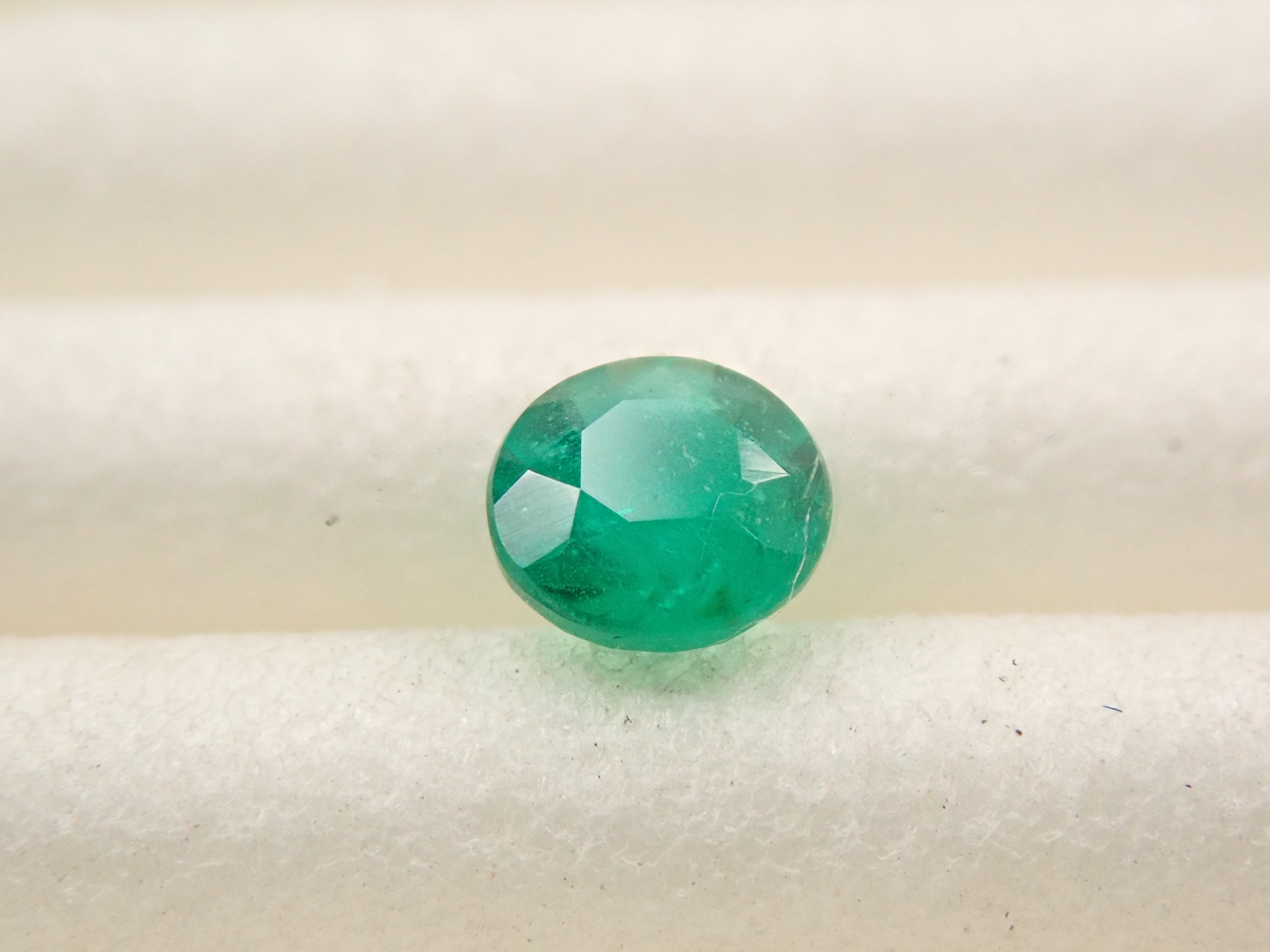 據說祖母綠的美麗綠色因產地而異。這顆產自哥倫比亞的祖母綠,據說擁有特別深邃的綠色。祖母綠通常容易出現刮痕,因此通常會用油進行處理,使刮痕不那麼明顯。請欣賞它優雅的綠色。這顆高品質的哥倫比亞祖母綠裸石,尺寸為3.5毫米/0.150克拉,色澤深邃。