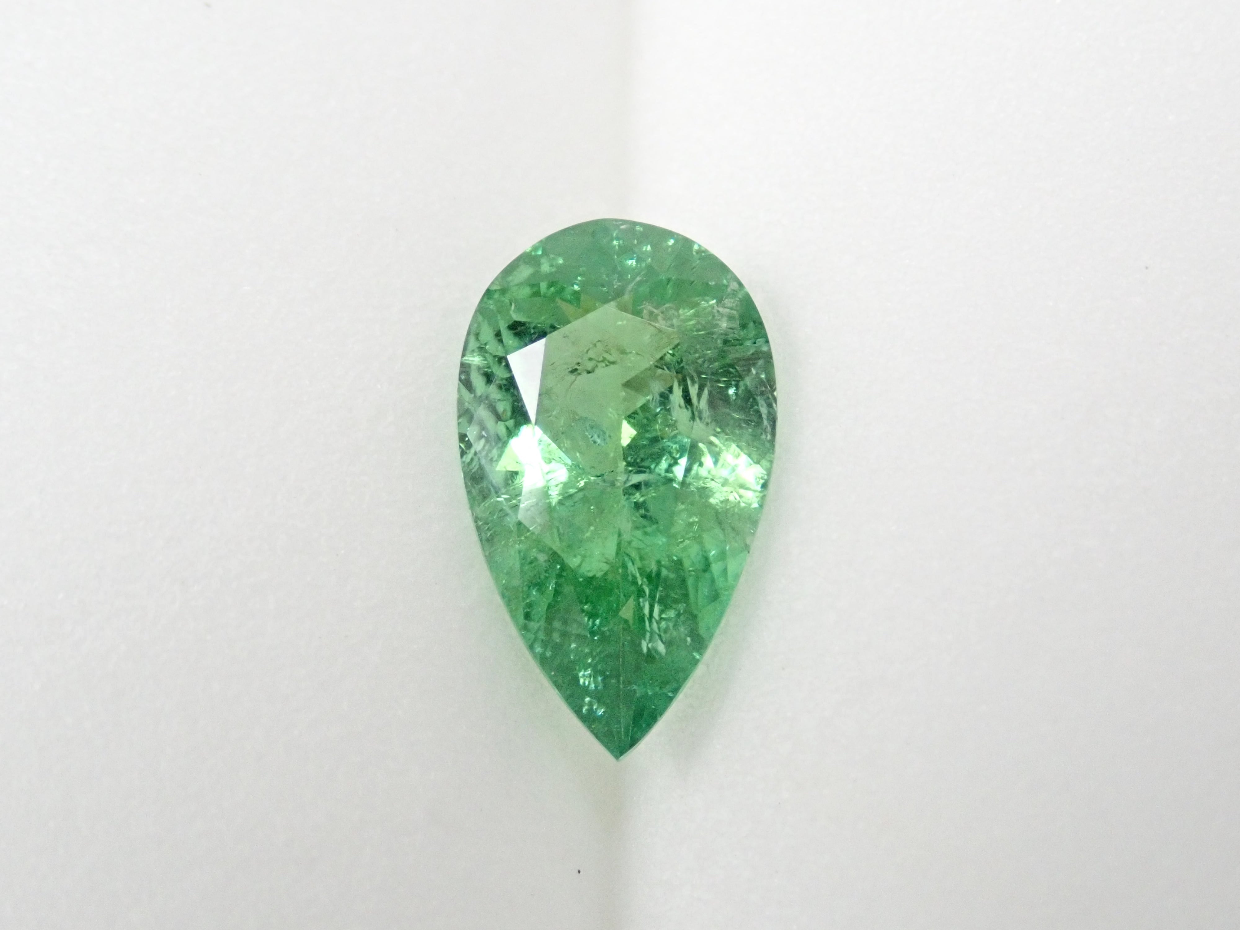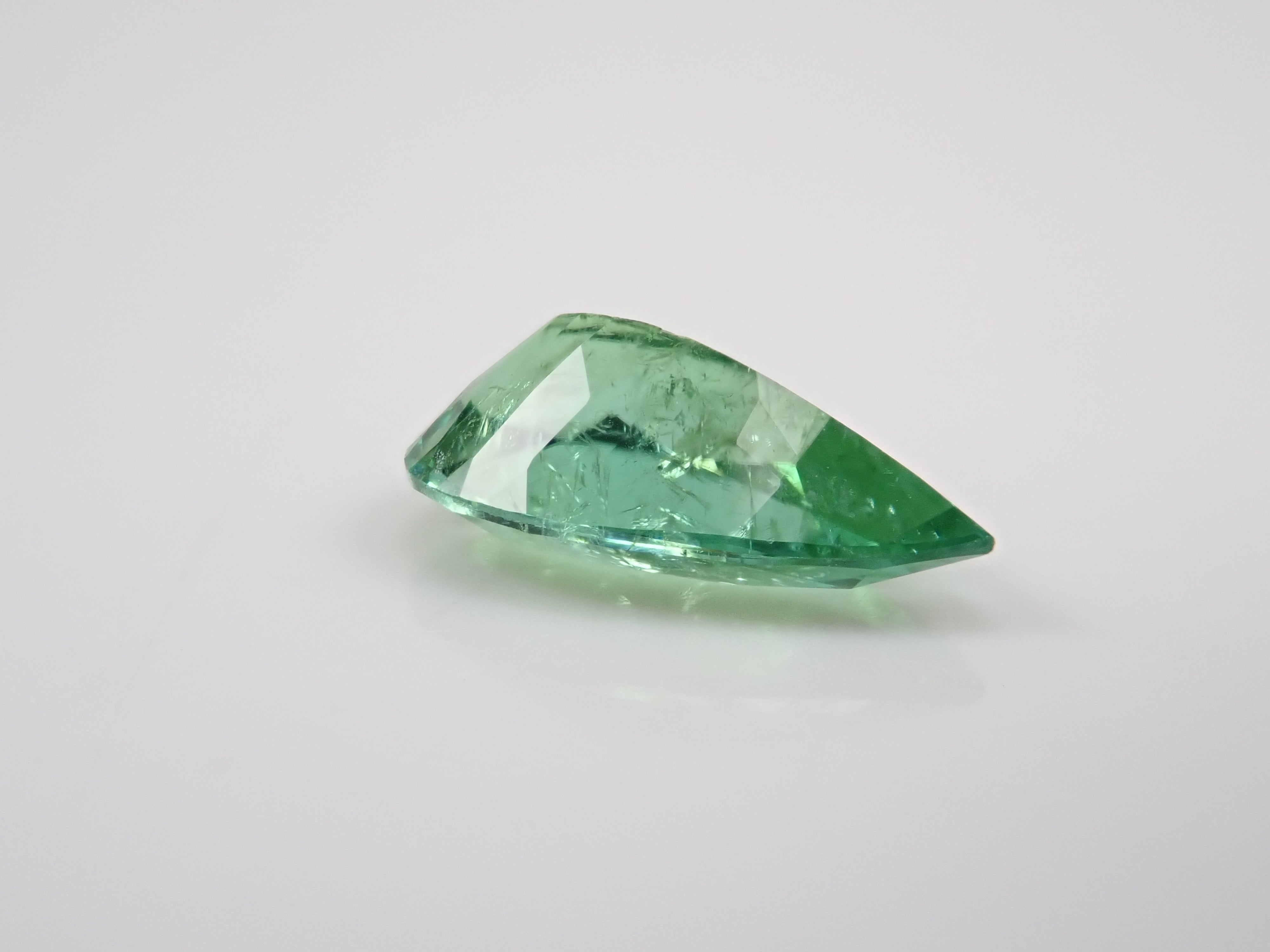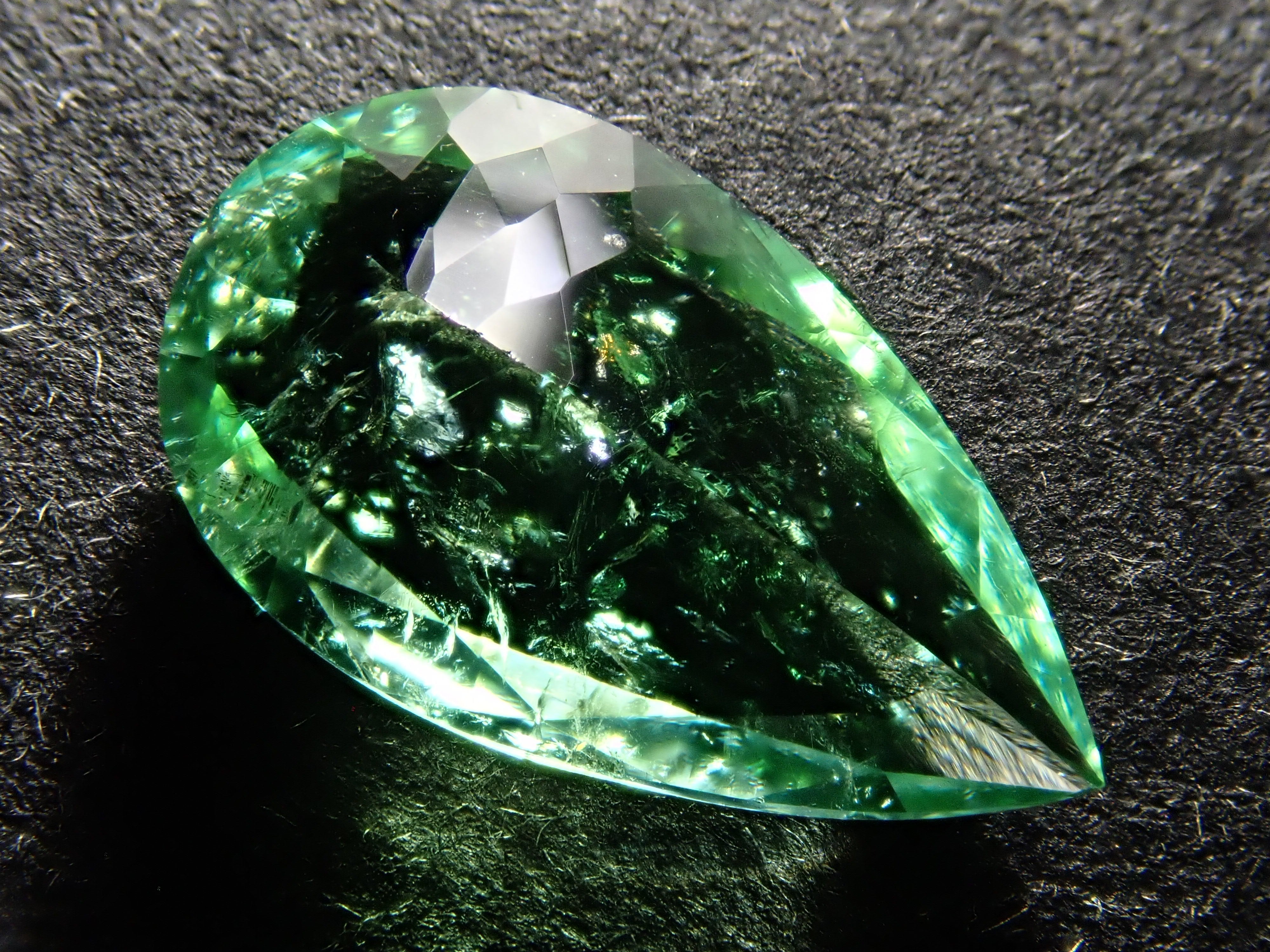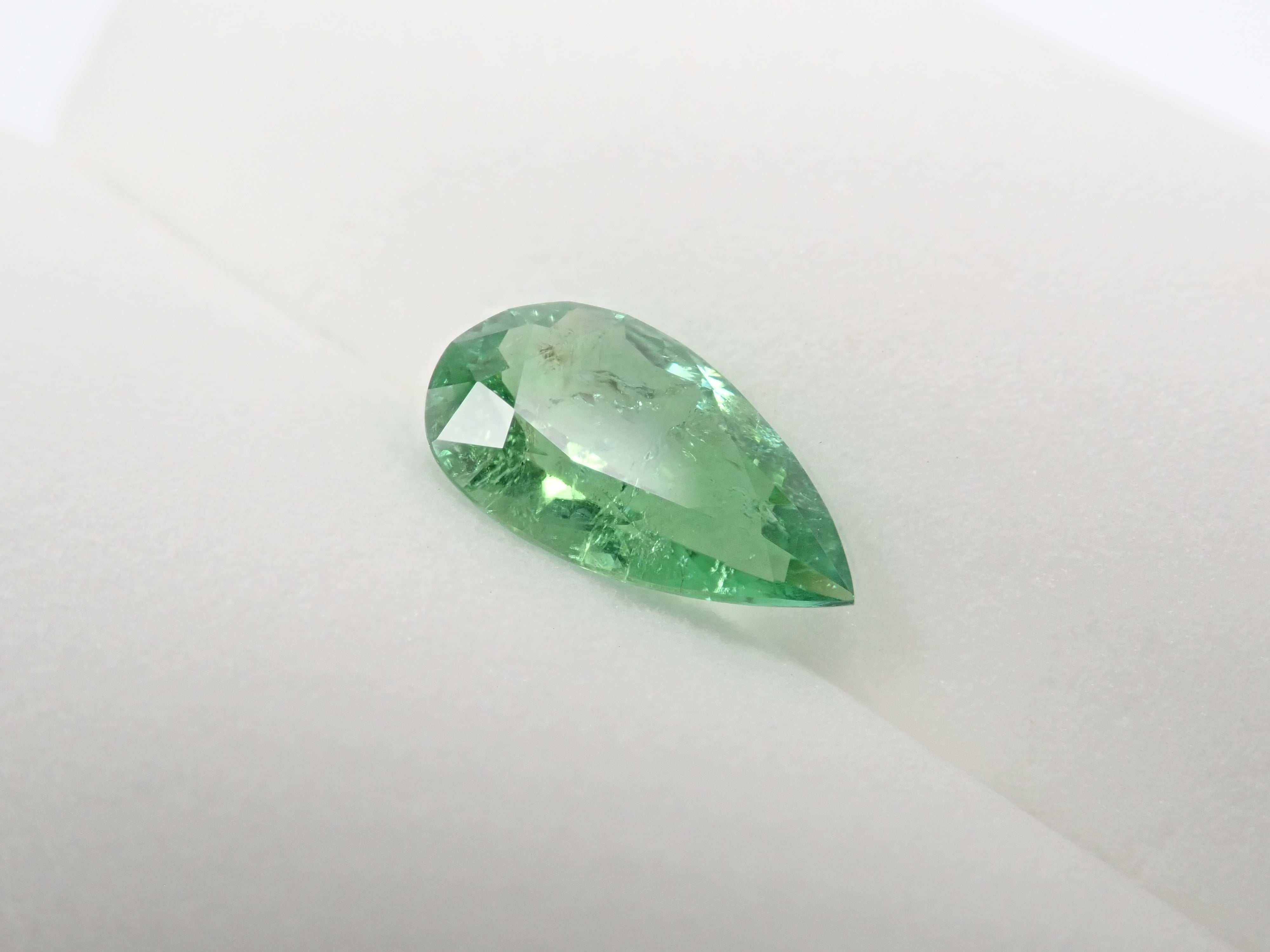 帕拉伊巴碧璽有著不同於大海的藍色或天空的藍色的精緻色彩。它在日本的定義是“含有銅的藍色到綠色碧璽(無論產地)。”它是一種非常受歡迎的寶石。 帕拉伊巴碧璽(CuO:0.5%、MnO:1.0%)含有銅(CuO)和錳(MnO)。來自莫三比克的梨形切割帕拉伊巴碧璽,具有獨特的綠色色調。它的尺寸為 1.5 克拉。包括來自珠寶和貴金屬協會的分類資訊。