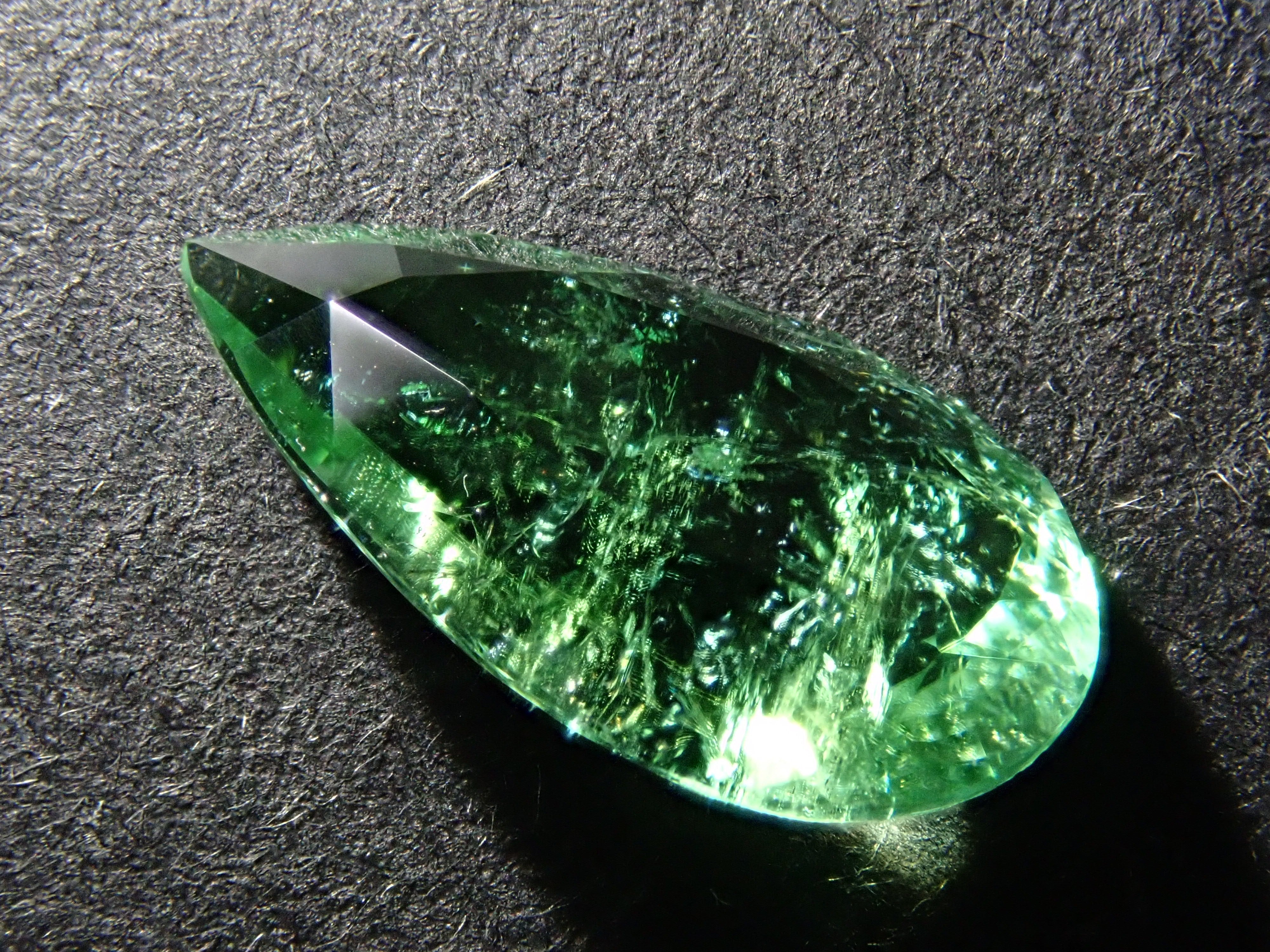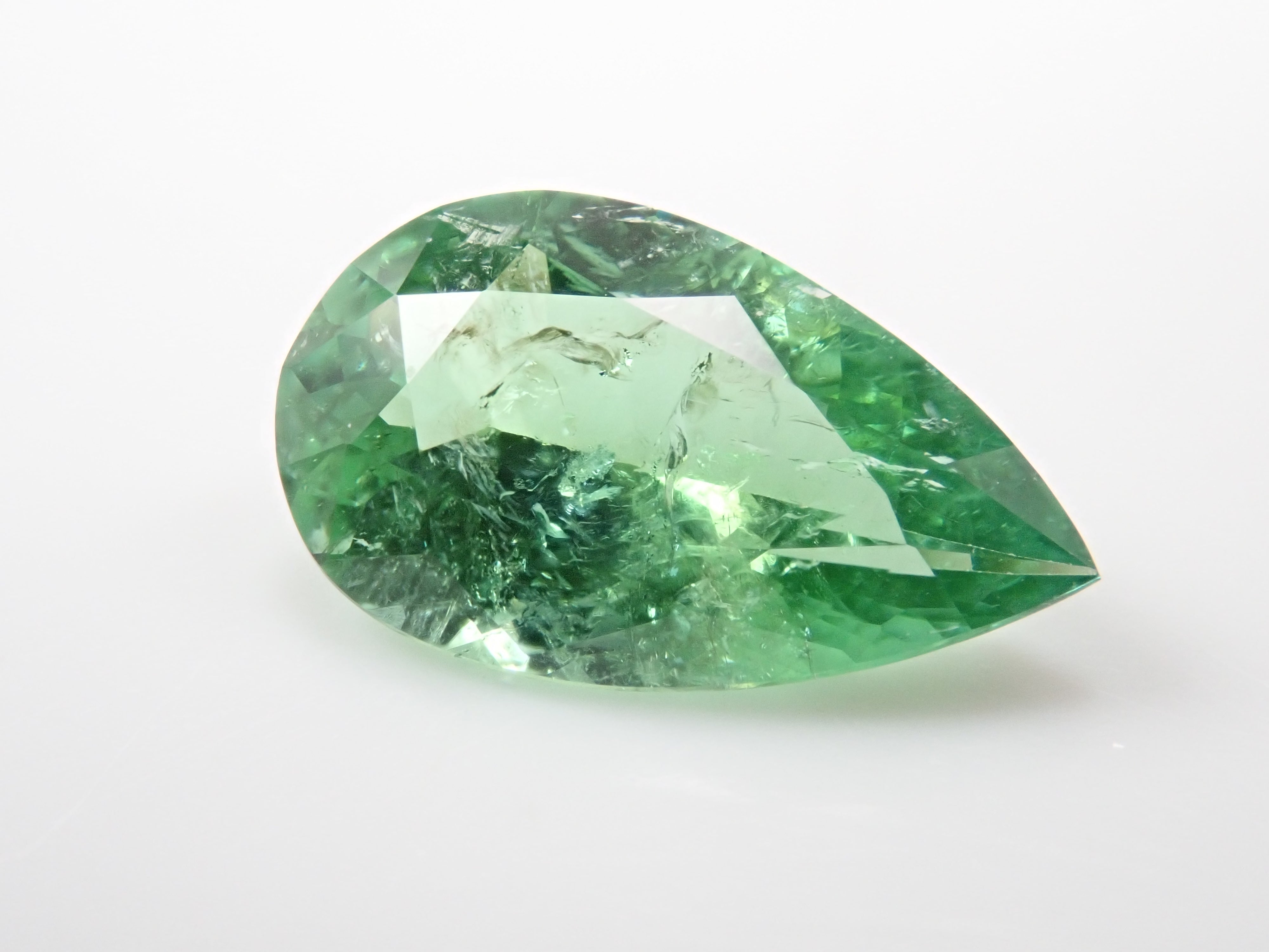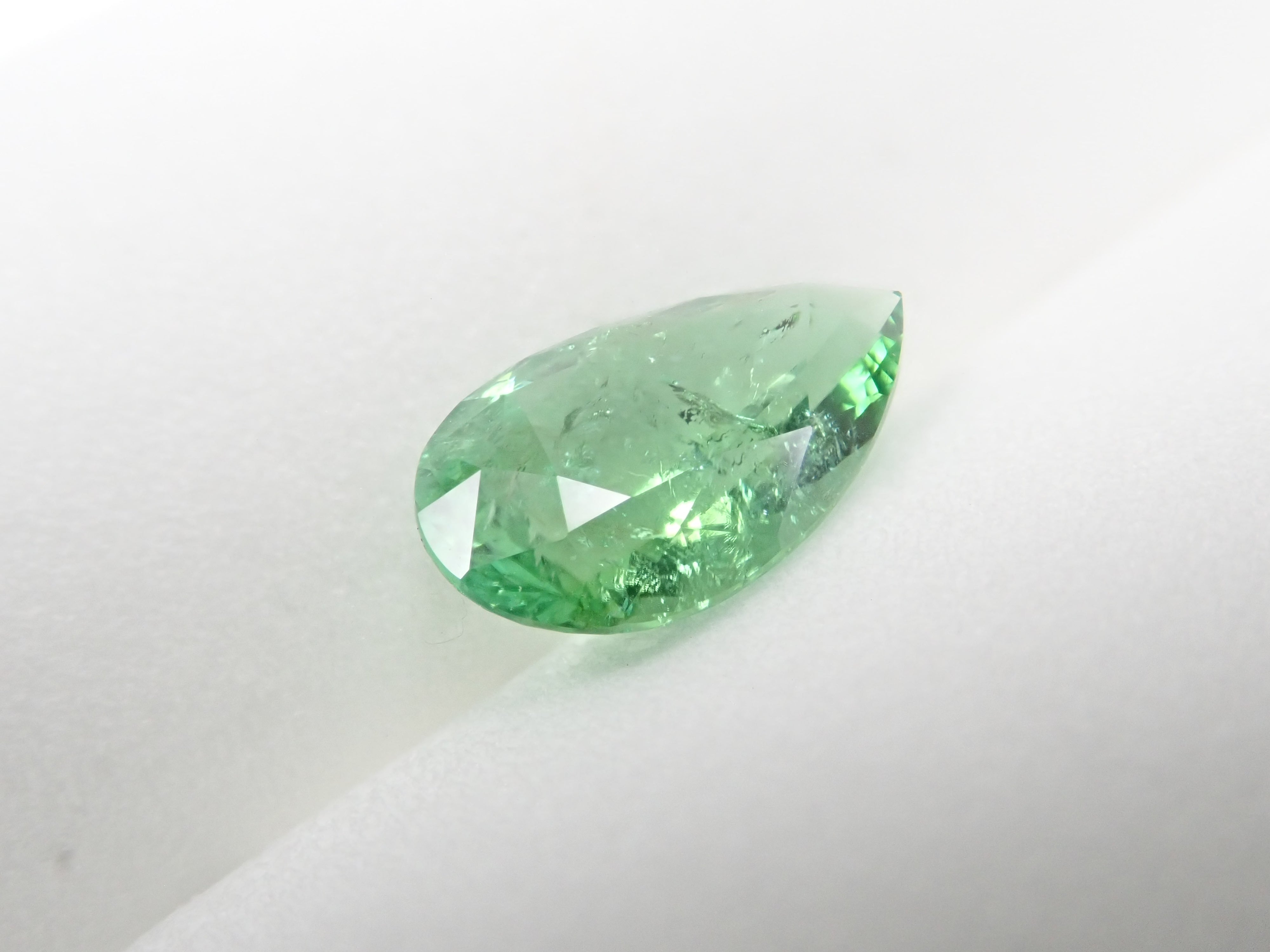 帕拉伊巴碧璽有著不同於大海的藍色或天空的藍色的精緻色彩。它在日本的定義是“含有銅的藍色到綠色碧璽(無論產地)。”它是一種非常受歡迎的寶石。 帕拉伊巴碧璽(CuO:0.5%、MnO:1.0%)含有銅(CuO)和錳(MnO)。來自莫三比克的梨形切割帕拉伊巴碧璽,具有獨特的綠色色調。它的尺寸為 1.5 克拉。包括來自珠寶和貴金屬協會的分類資訊。