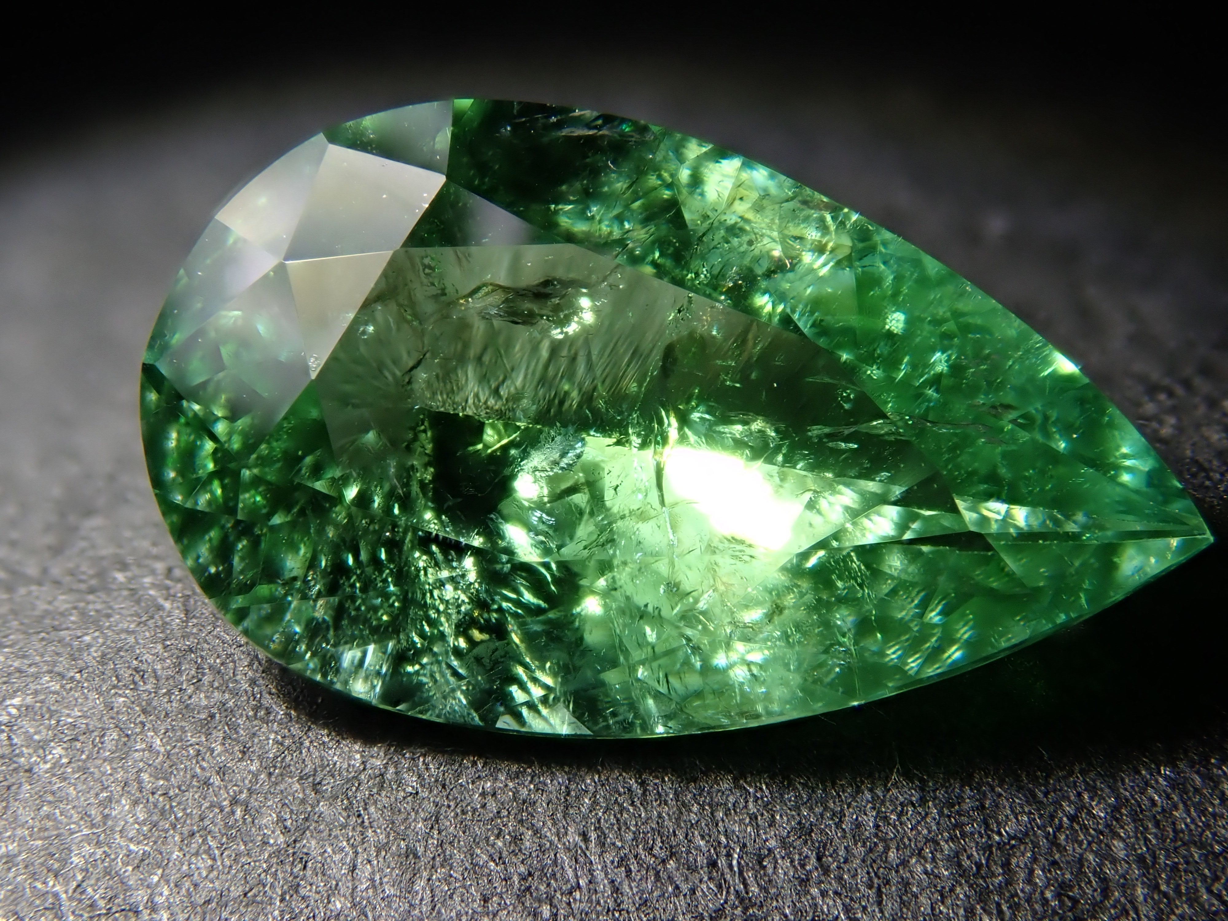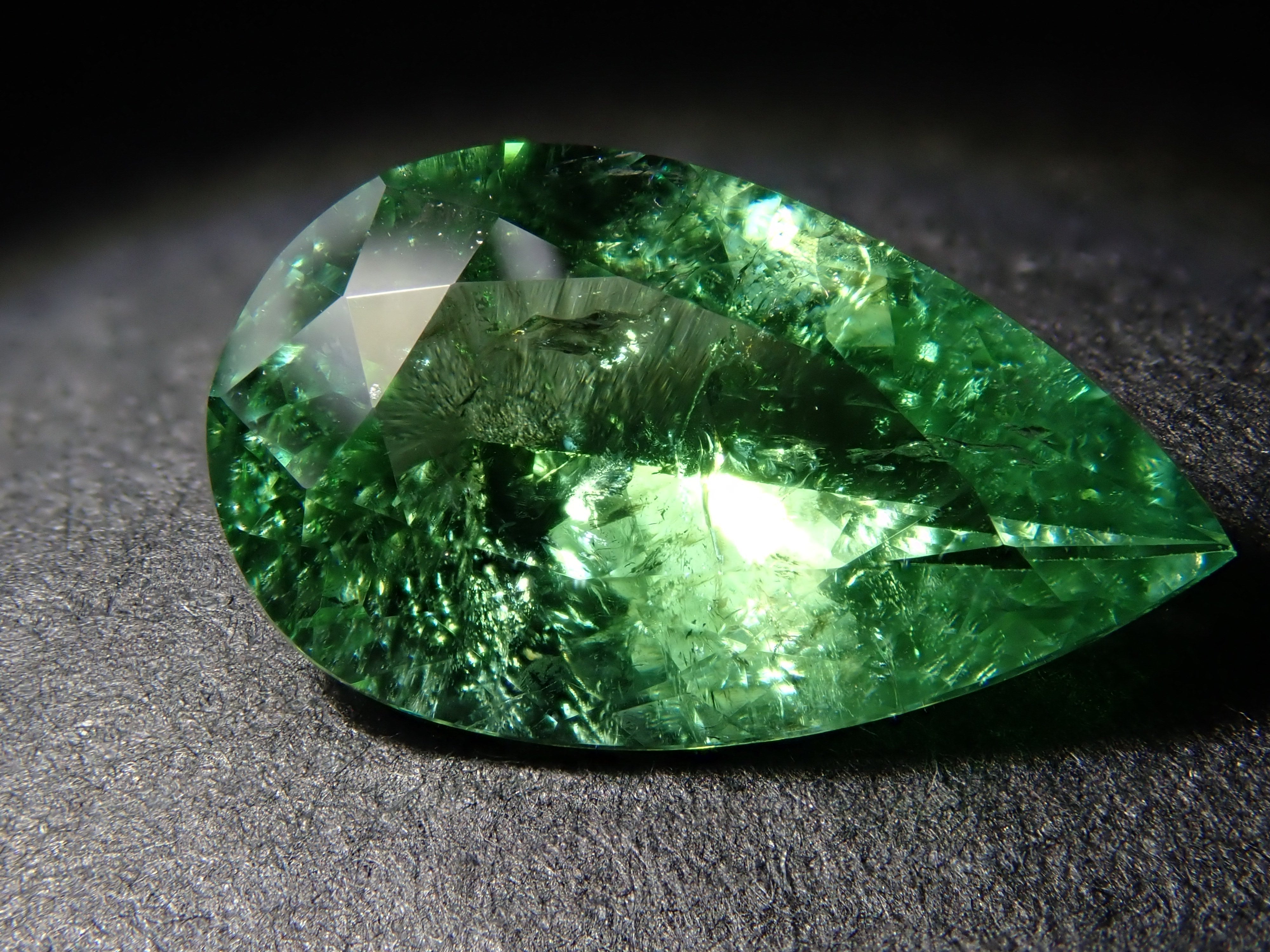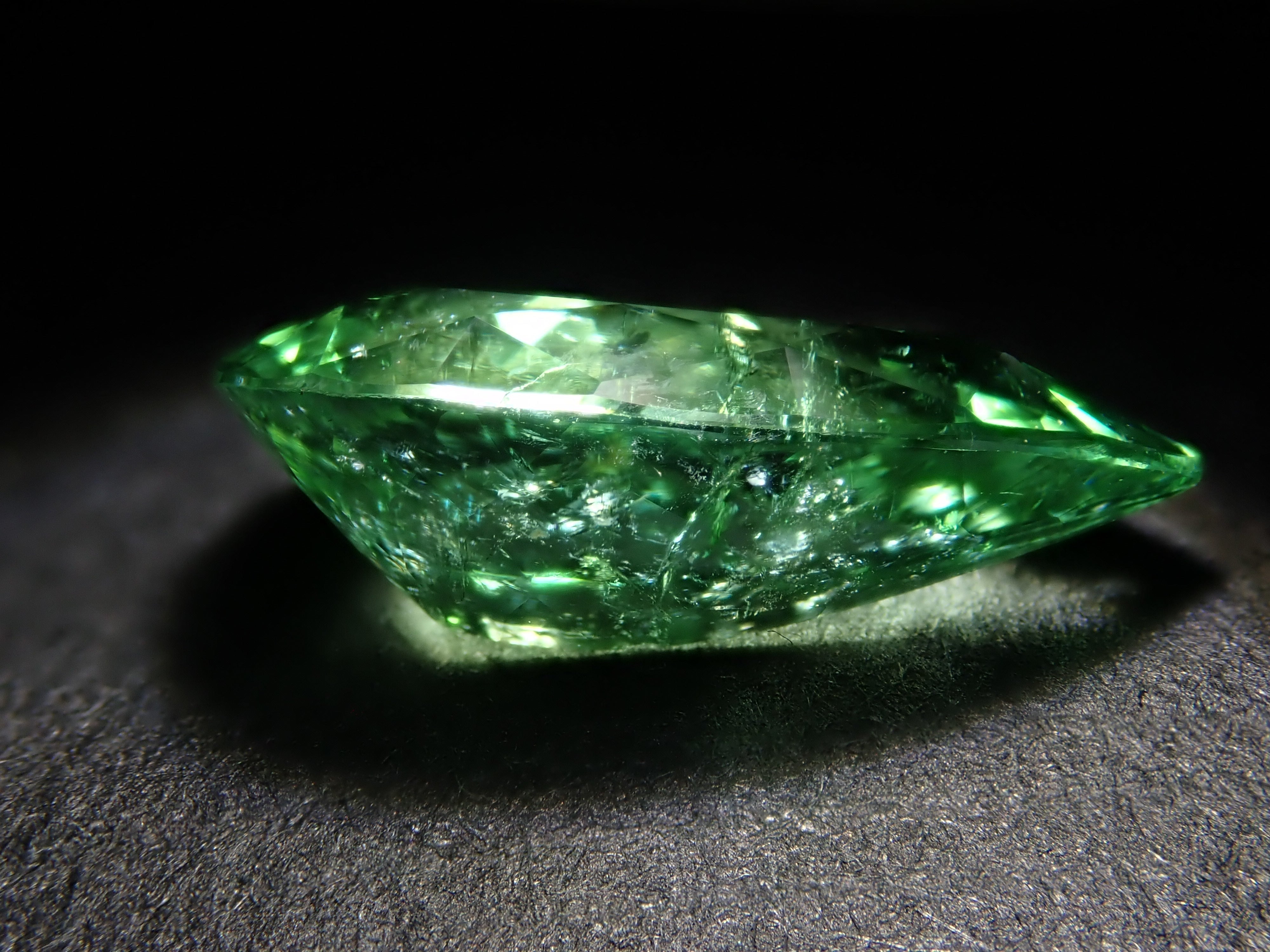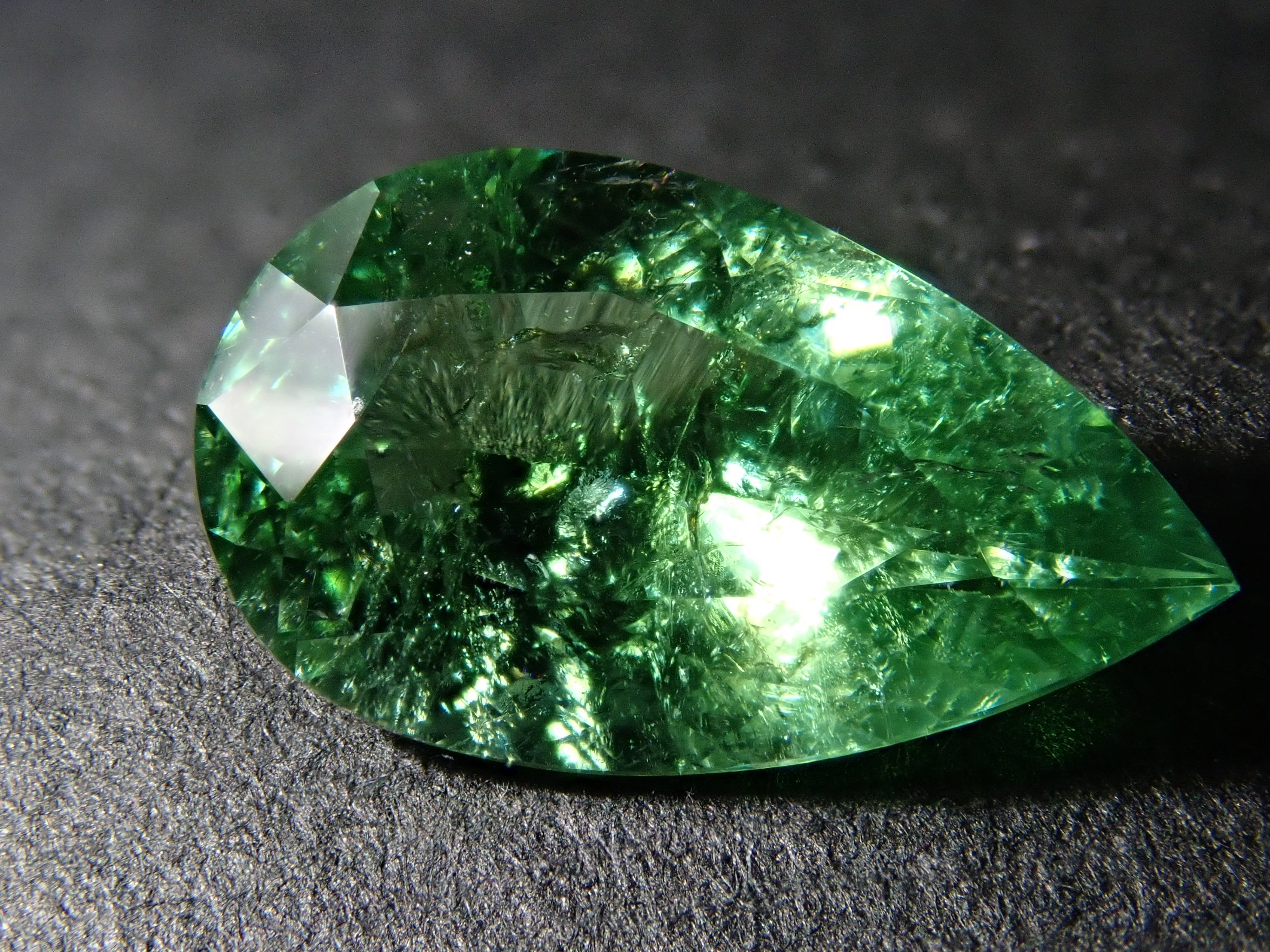 帕拉伊巴碧璽有著不同於大海的藍色或天空的藍色的精緻色彩。它在日本的定義是“含有銅的藍色到綠色碧璽(無論產地)。”它是一種非常受歡迎的寶石。 帕拉伊巴碧璽(CuO:0.5%、MnO:1.0%)含有銅(CuO)和錳(MnO)。來自莫三比克的梨形切割帕拉伊巴碧璽,具有獨特的綠色色調。它的尺寸為 1.5 克拉。包括來自珠寶和貴金屬協會的分類資訊。