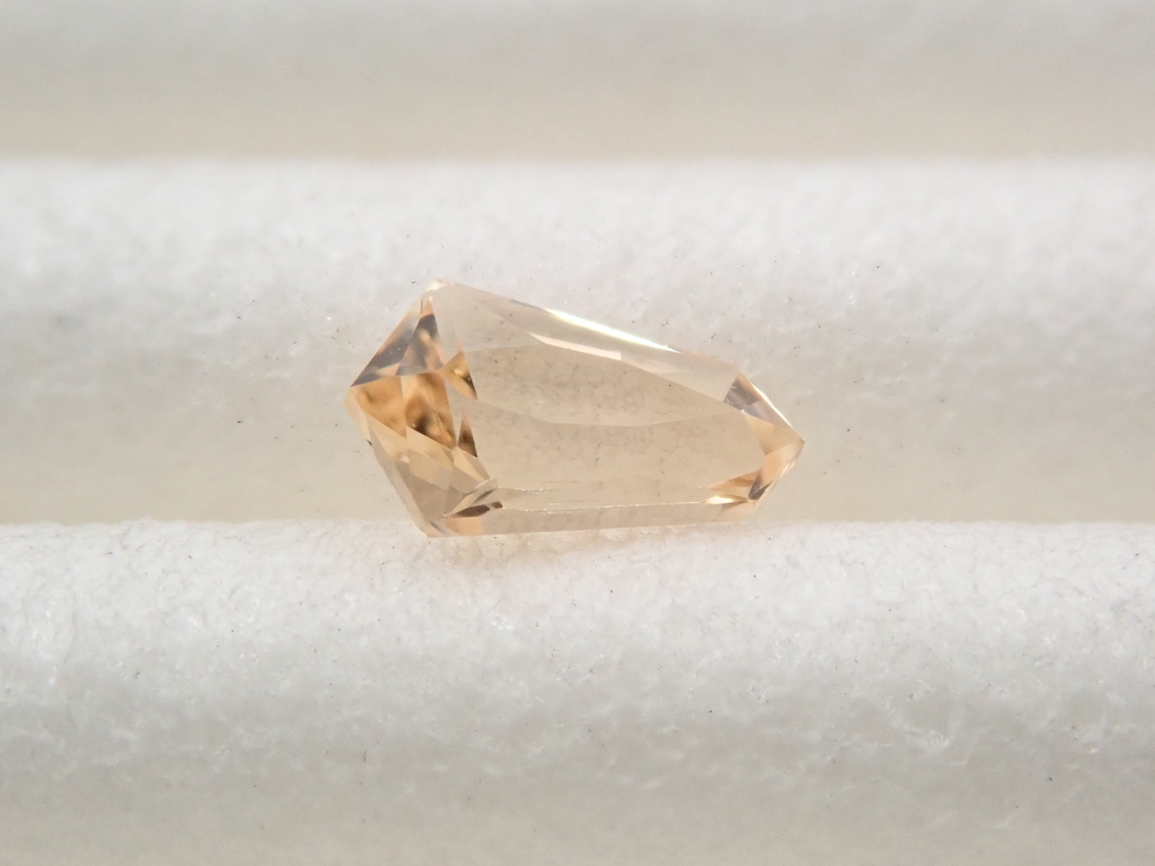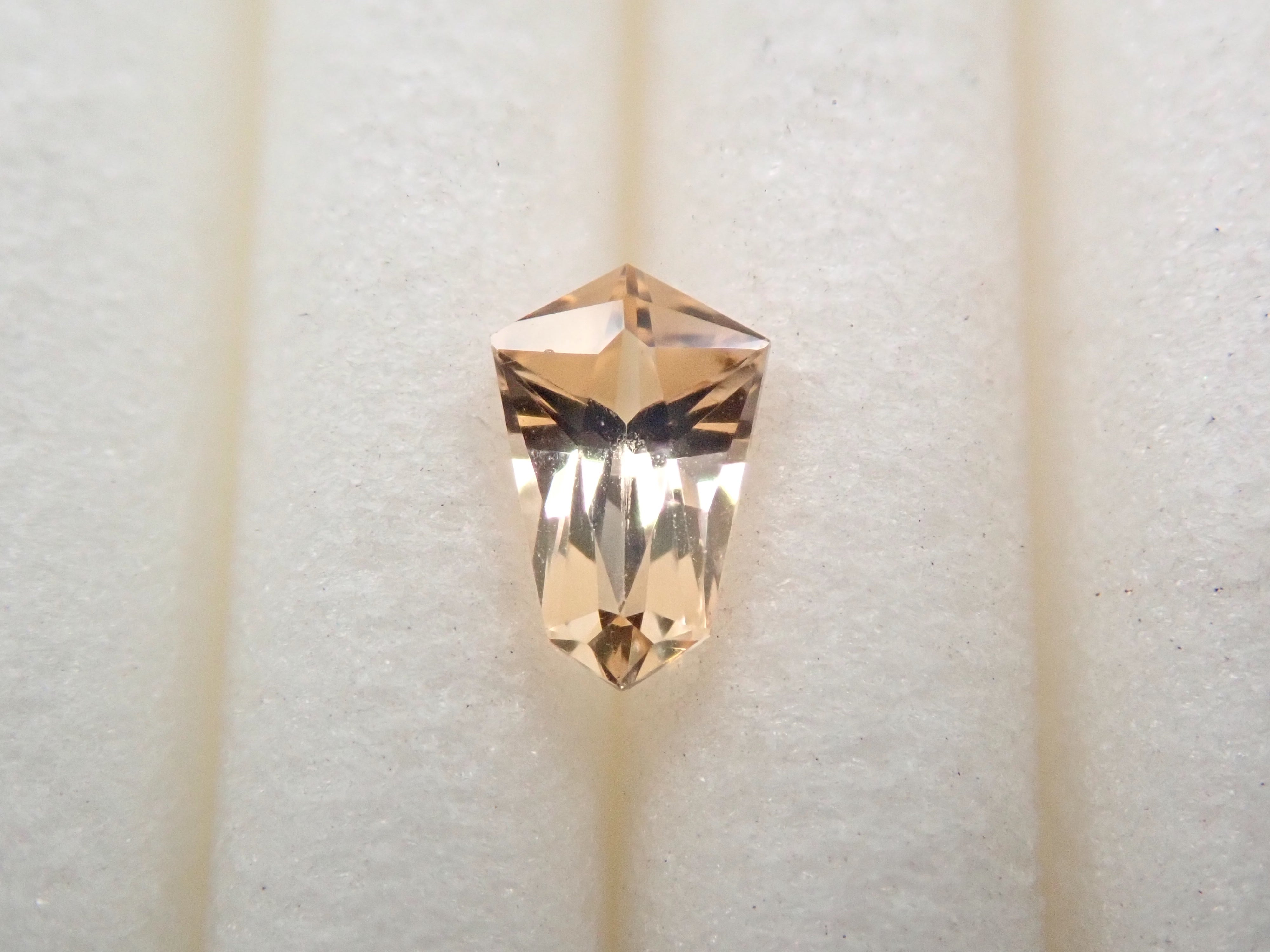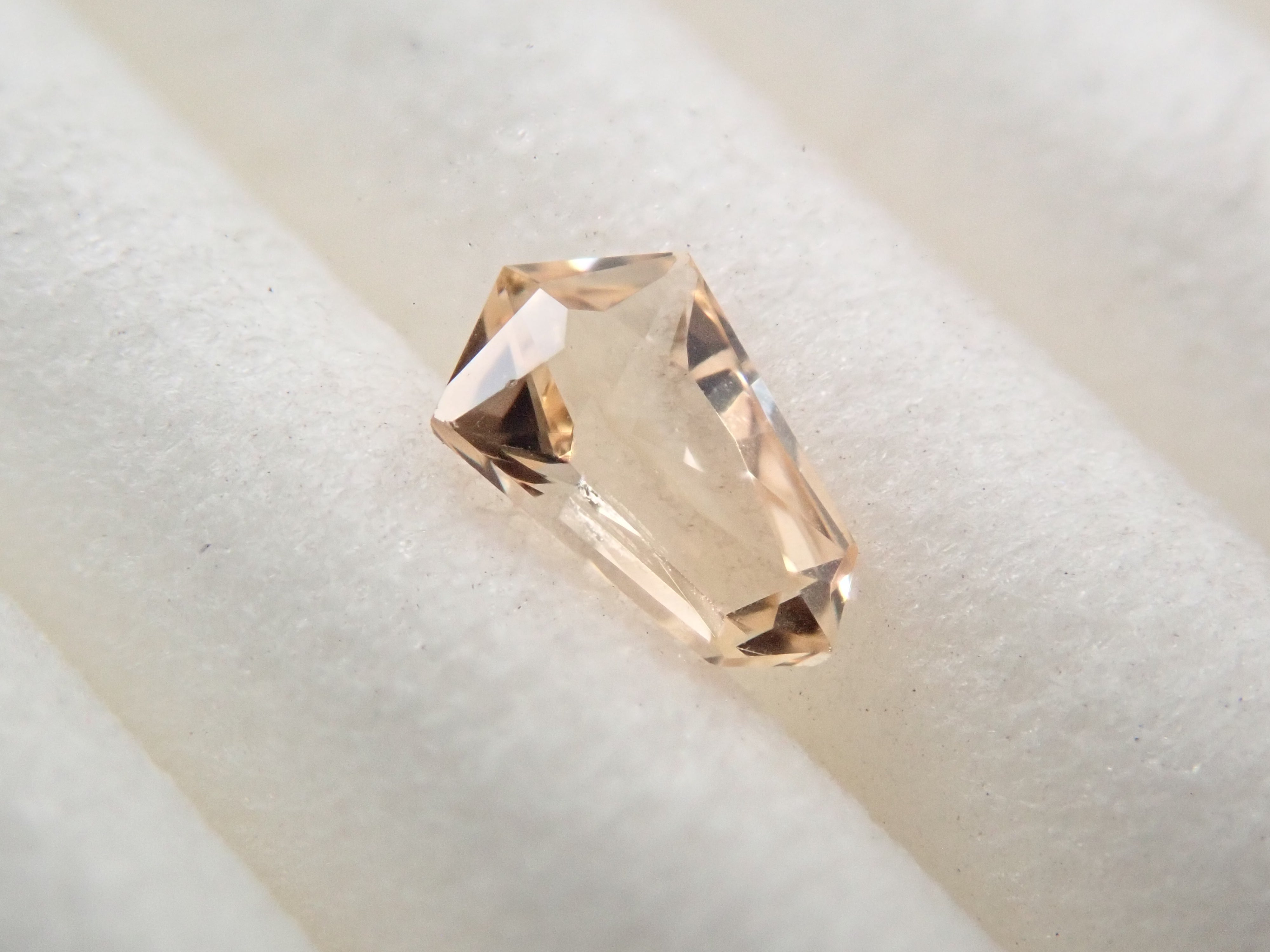 帝王托帕石被高度評價為最高品質的托帕石。黃玉分為兩種:含有氟的「F型」和含有羥基的「OH型」黃玉是OH型黃玉。顏色有金黃色、橘色、粉紅色、紅色等多種。享受無愧於帝國之名的優雅光芒。來自巴西的客製化切割、高度透明的帝王拓帕石。