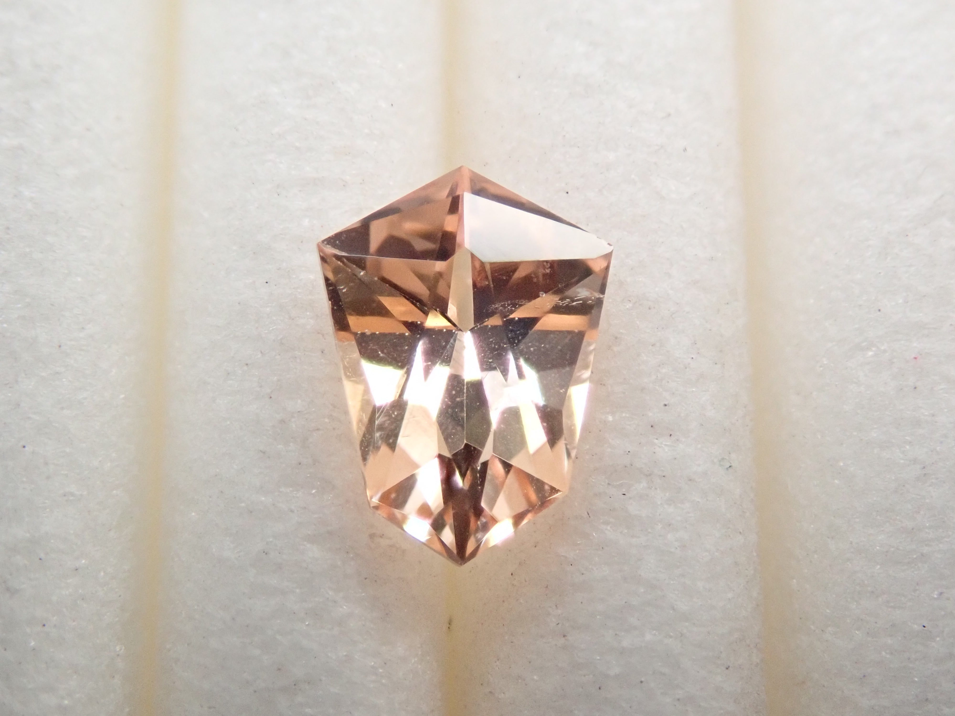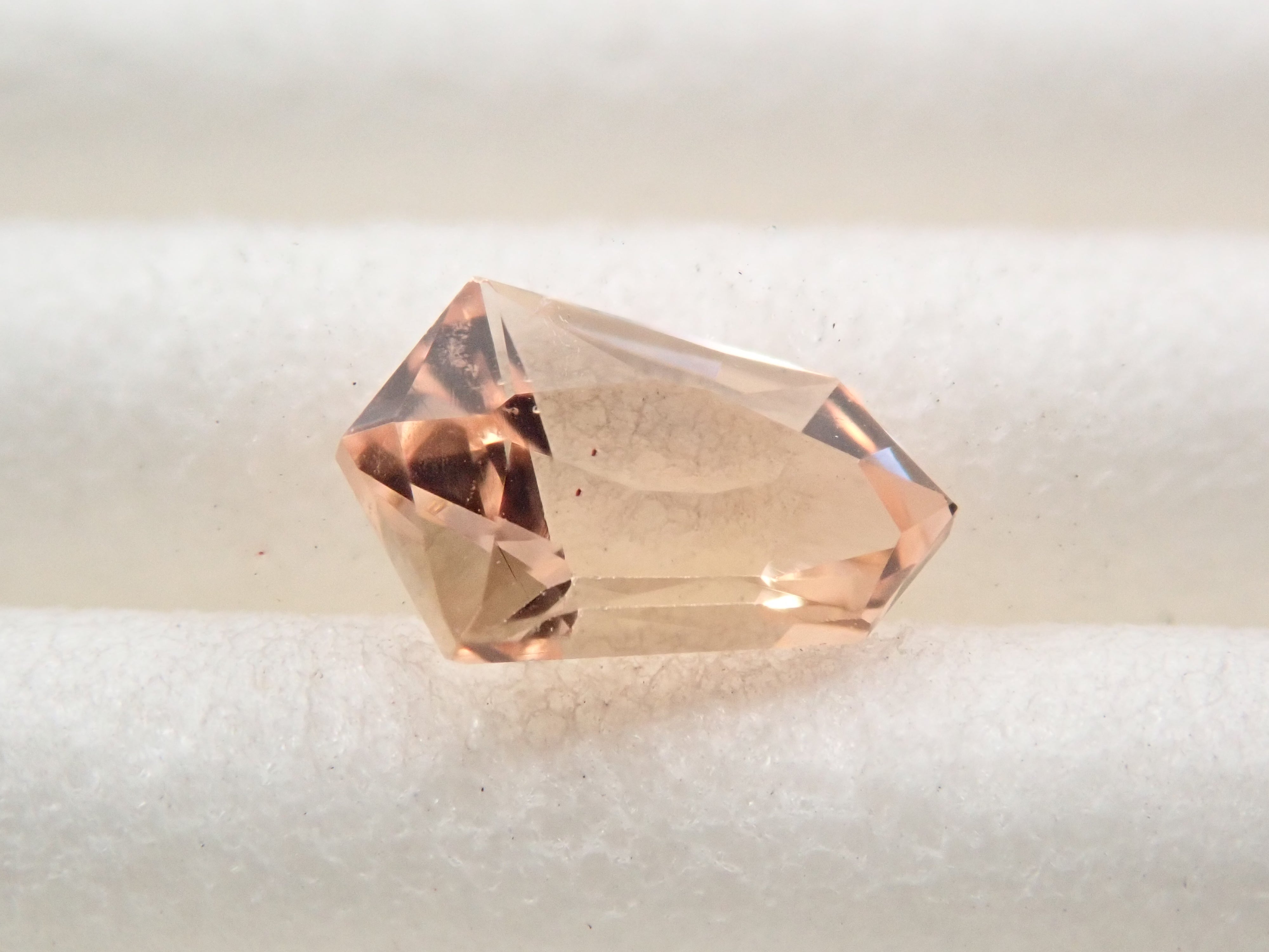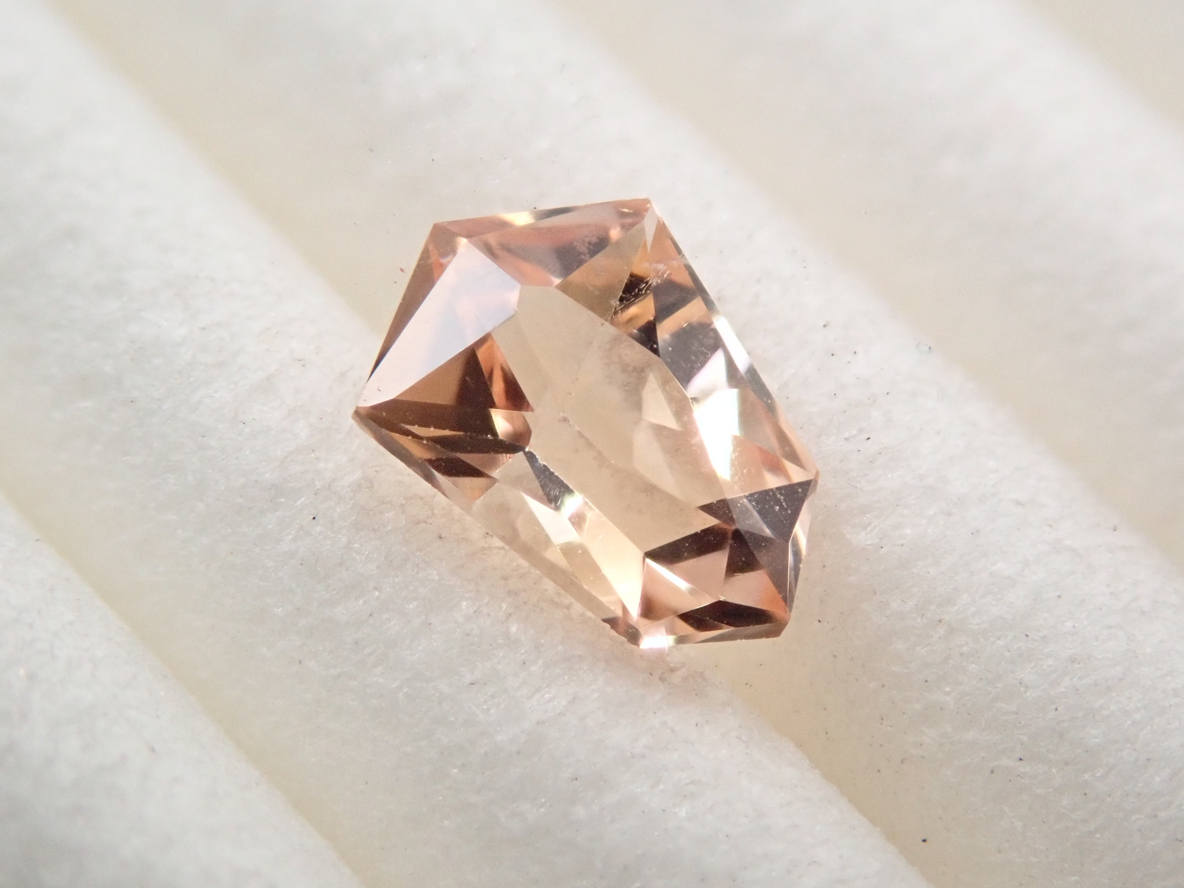 帝王托帕石被高度評價為最高品質的托帕石。黃玉分為兩種:含有氟的「F型」和含有羥基的「OH型」黃玉是OH型黃玉。顏色有金黃色、橘色、粉紅色、紅色等多種。享受無愧於帝國之名的優雅光芒。來自巴西的客製化切割、高度透明的帝王拓帕石。