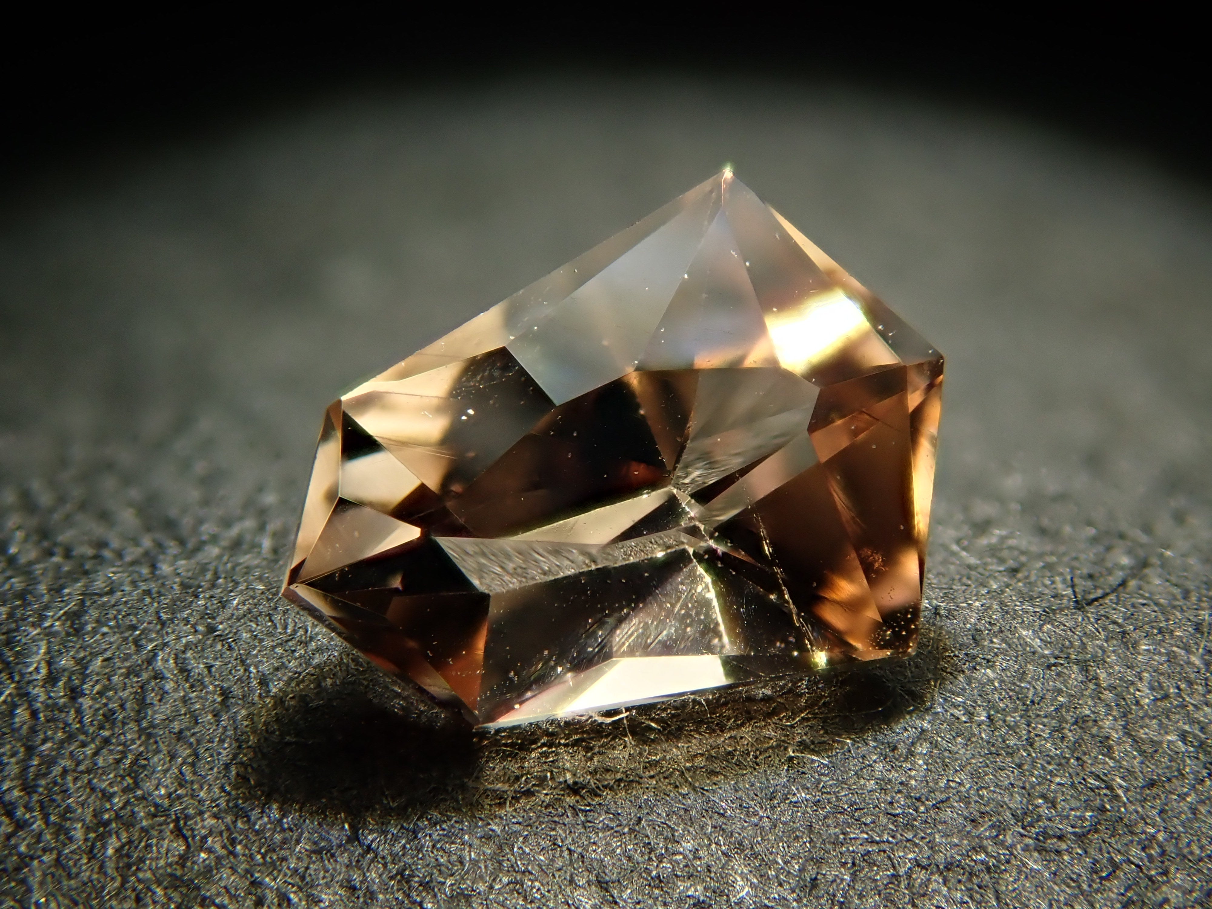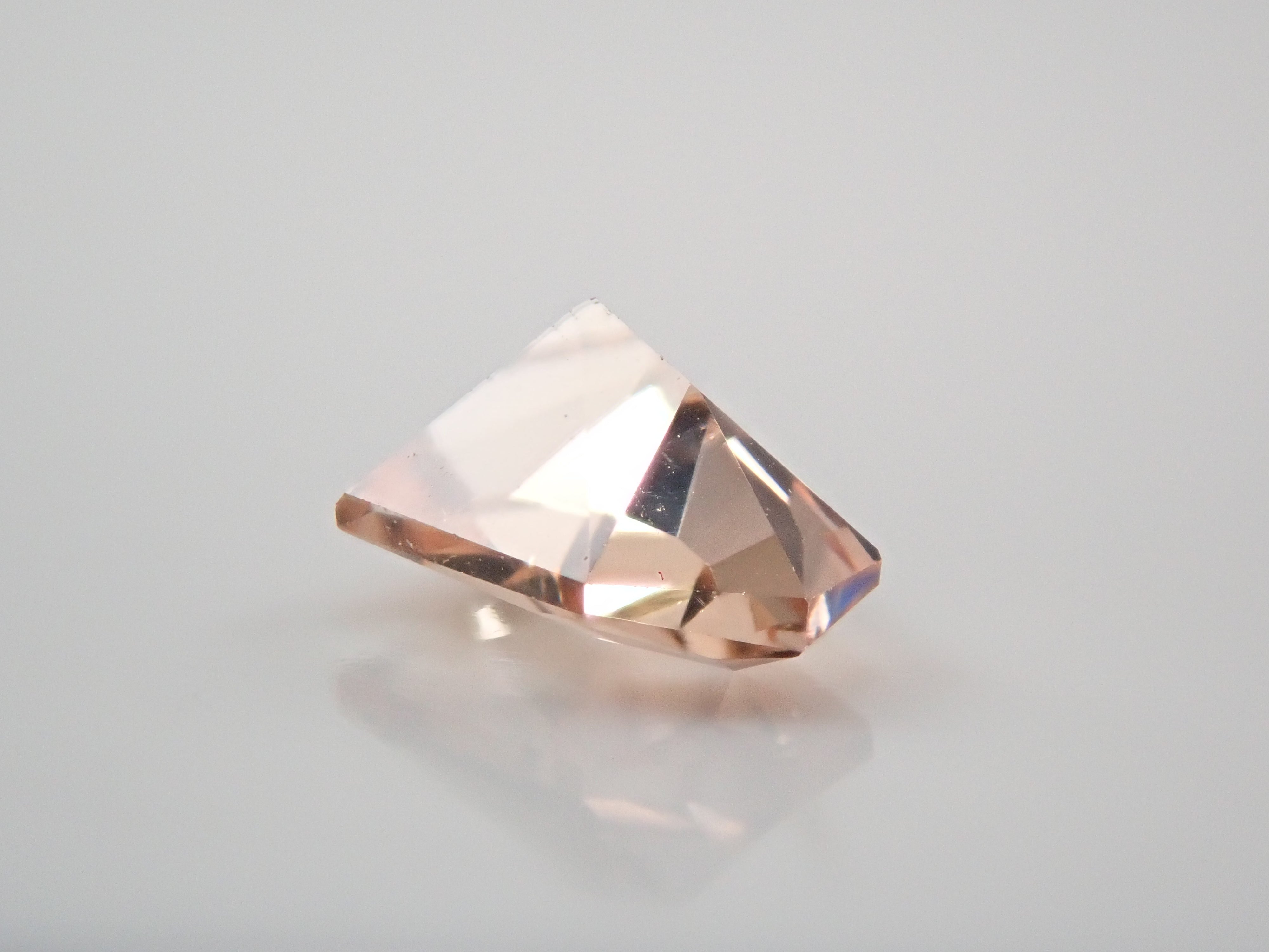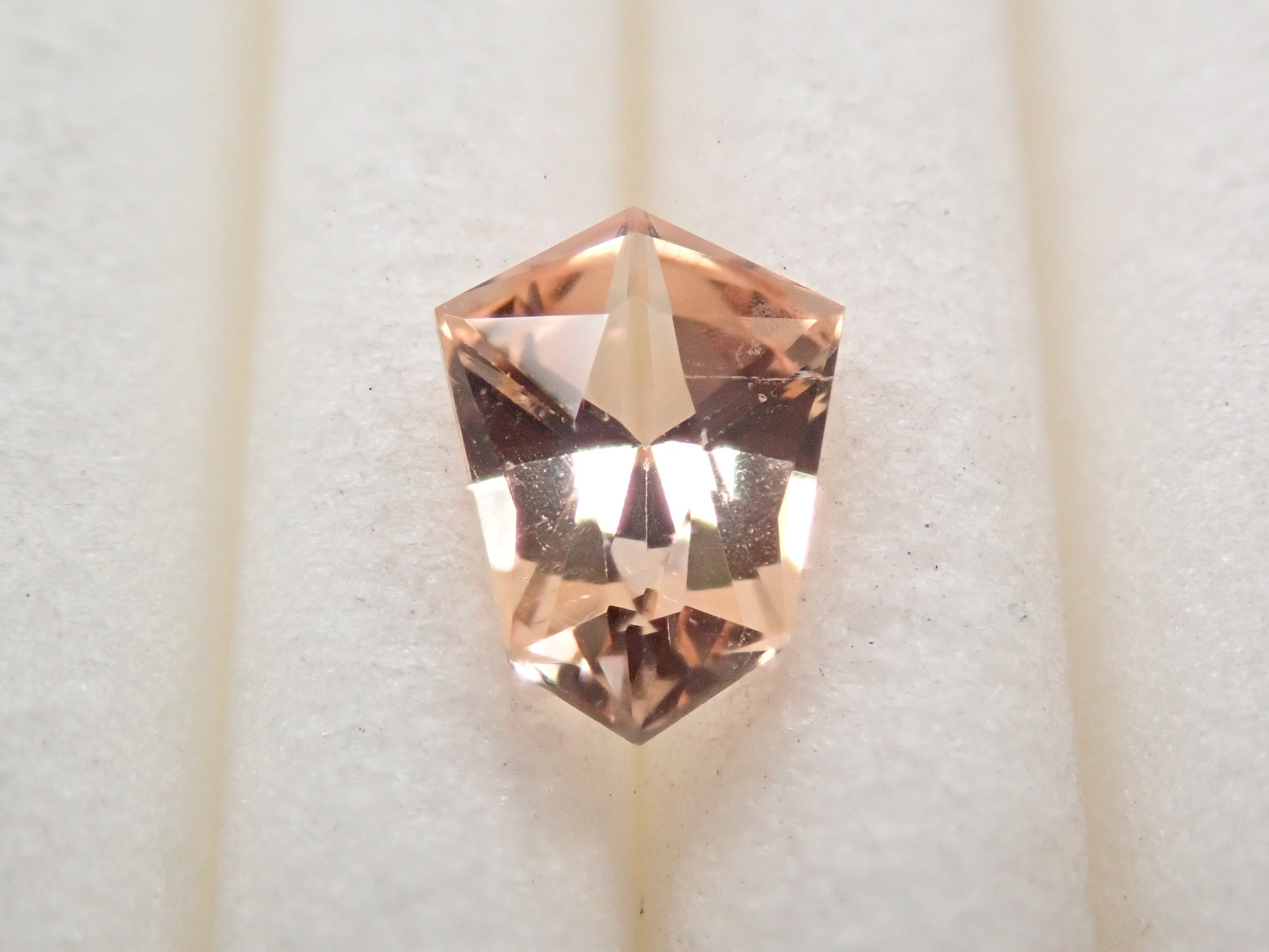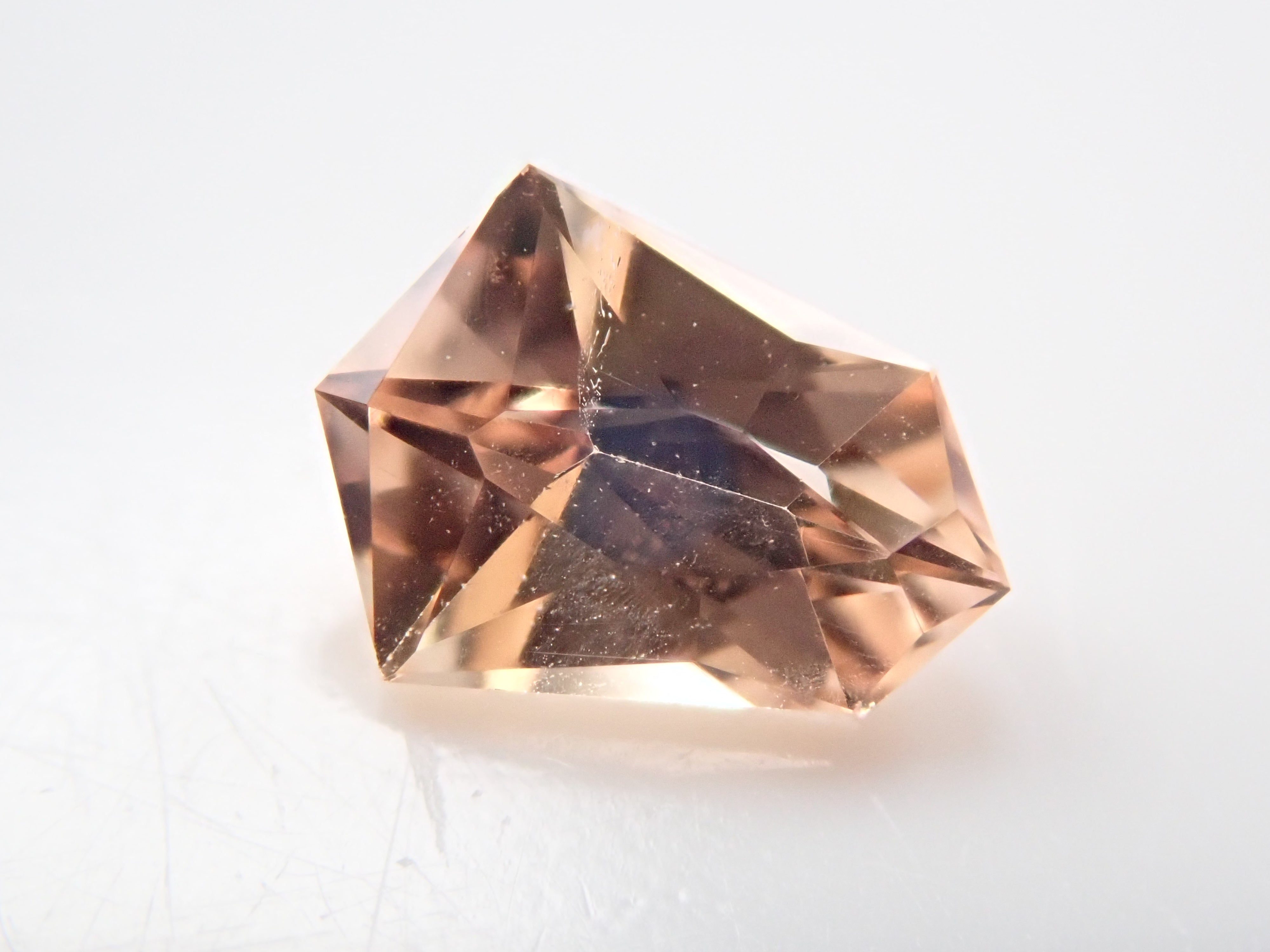 帝王托帕石被高度評價為最高品質的托帕石。黃玉分為兩種:含有氟的「F型」和含有羥基的「OH型」黃玉是OH型黃玉。顏色有金黃色、橘色、粉紅色、紅色等多種。享受無愧於帝國之名的優雅光芒。來自巴西的客製化切割、高度透明的帝王拓帕石。