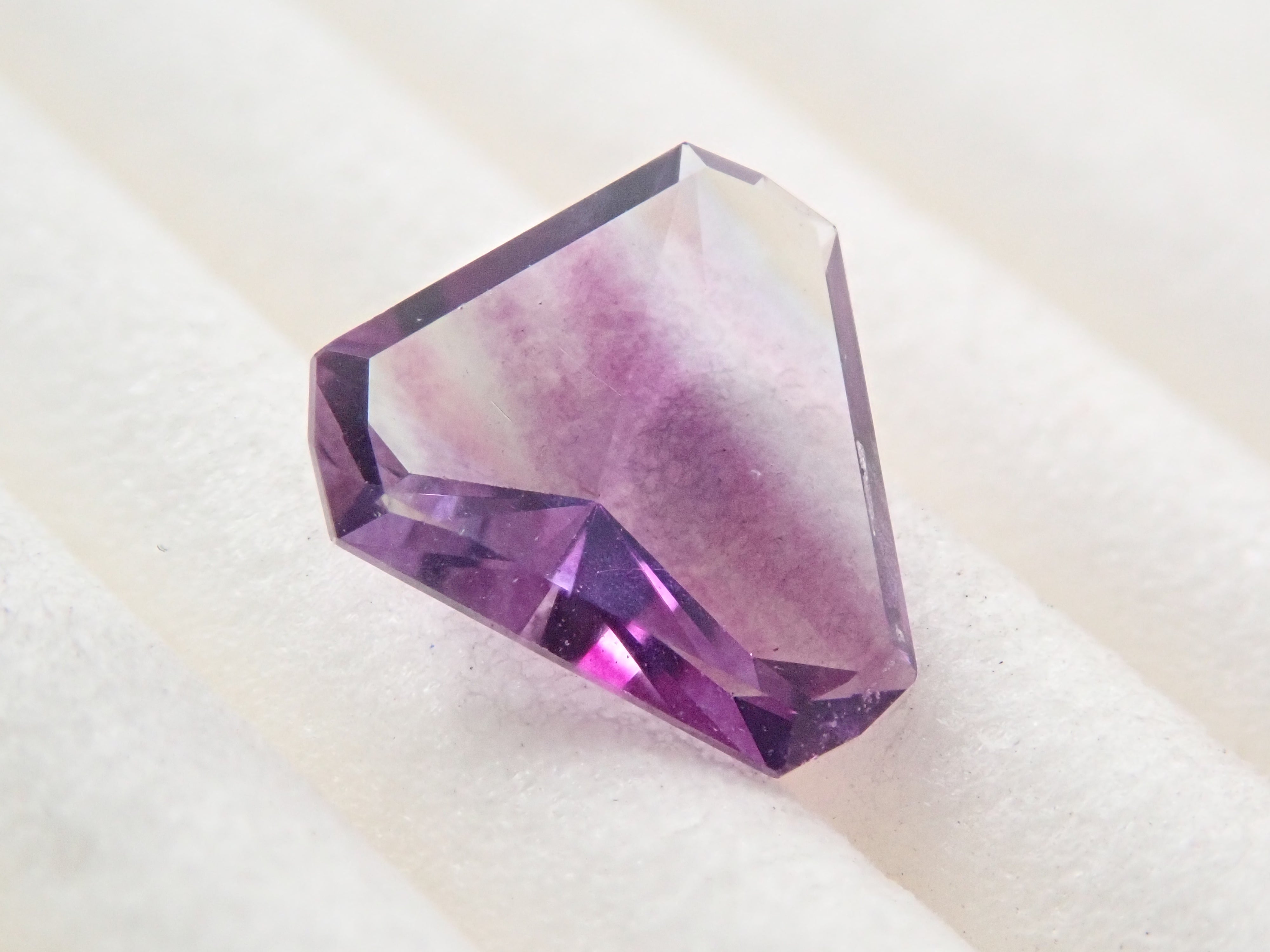由斯里蘭卡拋光師 Sanjay 切割的雙色螢石。