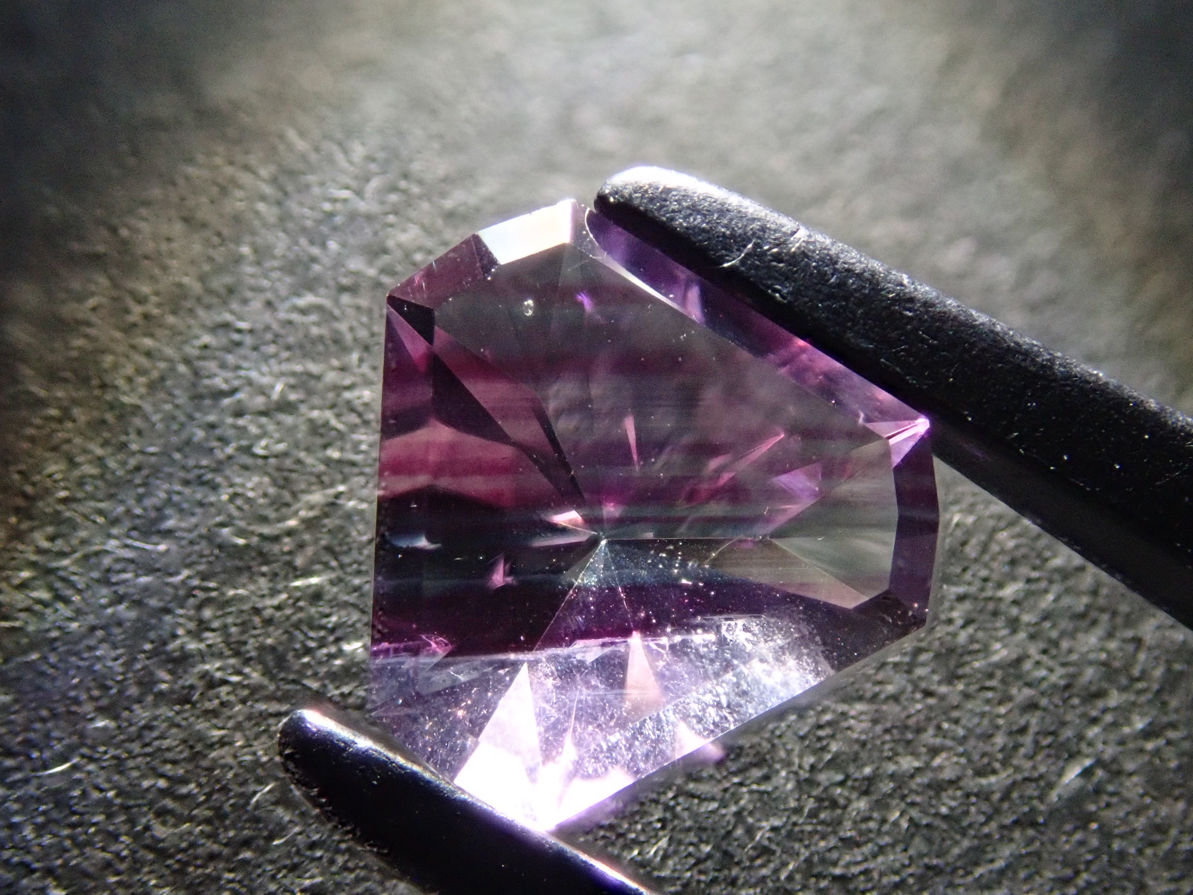 由斯里蘭卡拋光師 Sanjay 切割的雙色螢石。