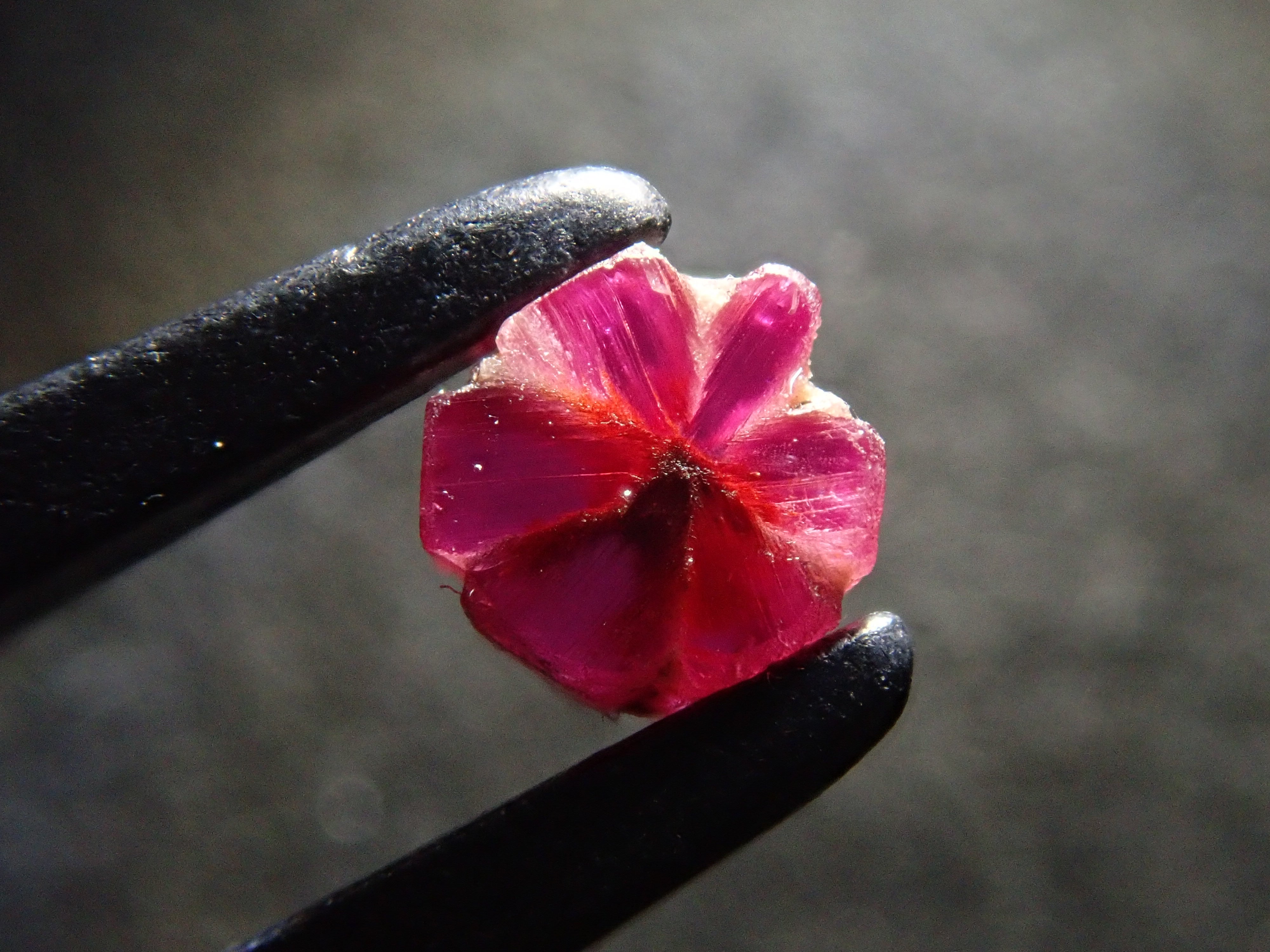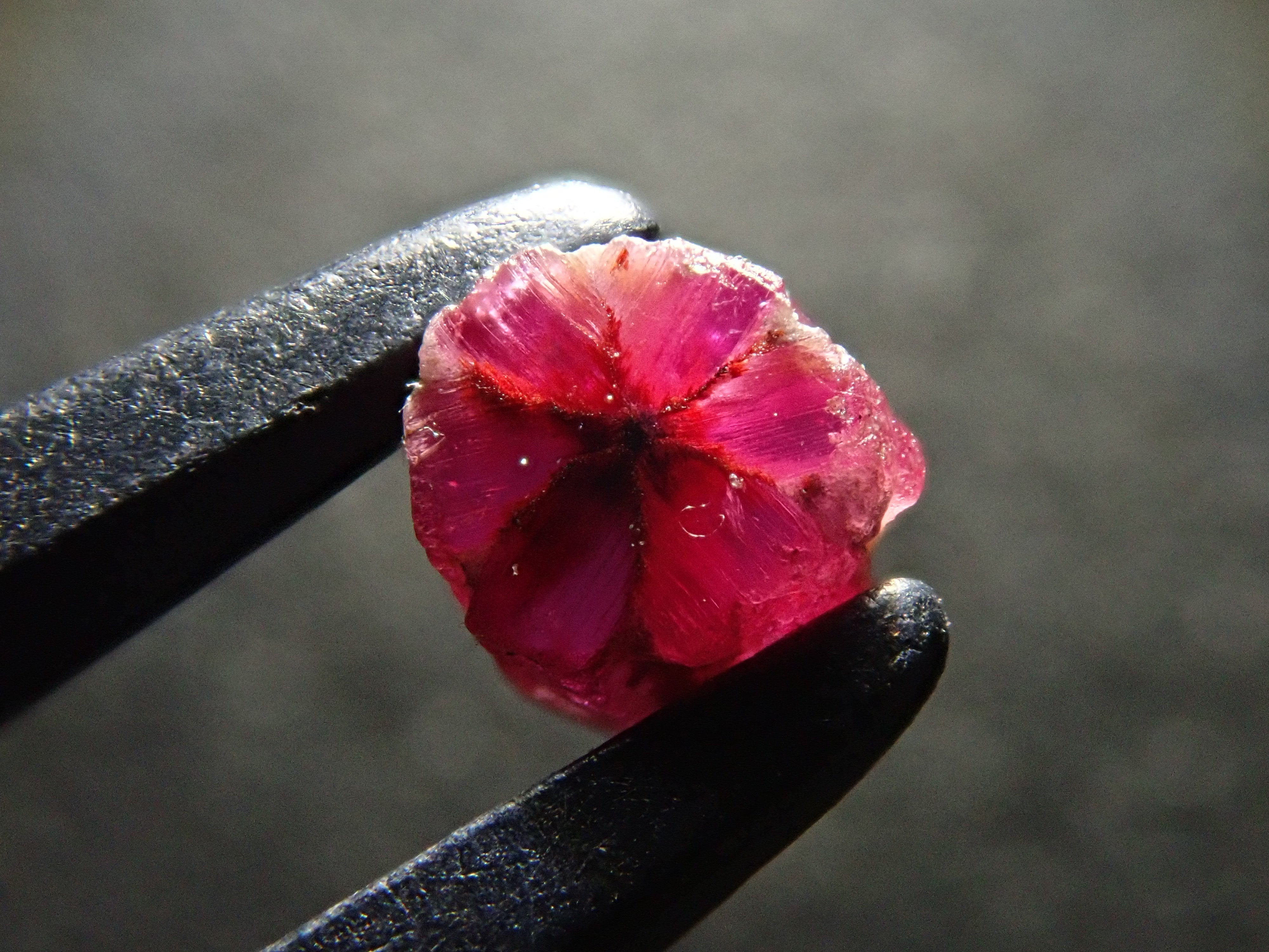 達碧茲圖案也稱為碳線。其中,trapichelby 是一種產量很少的稀有寶石。它的特點是這種 6 線星狀圖案。此外,有很多類型的達碧茲都有划痕和缺口,而不僅僅是紅寶石。