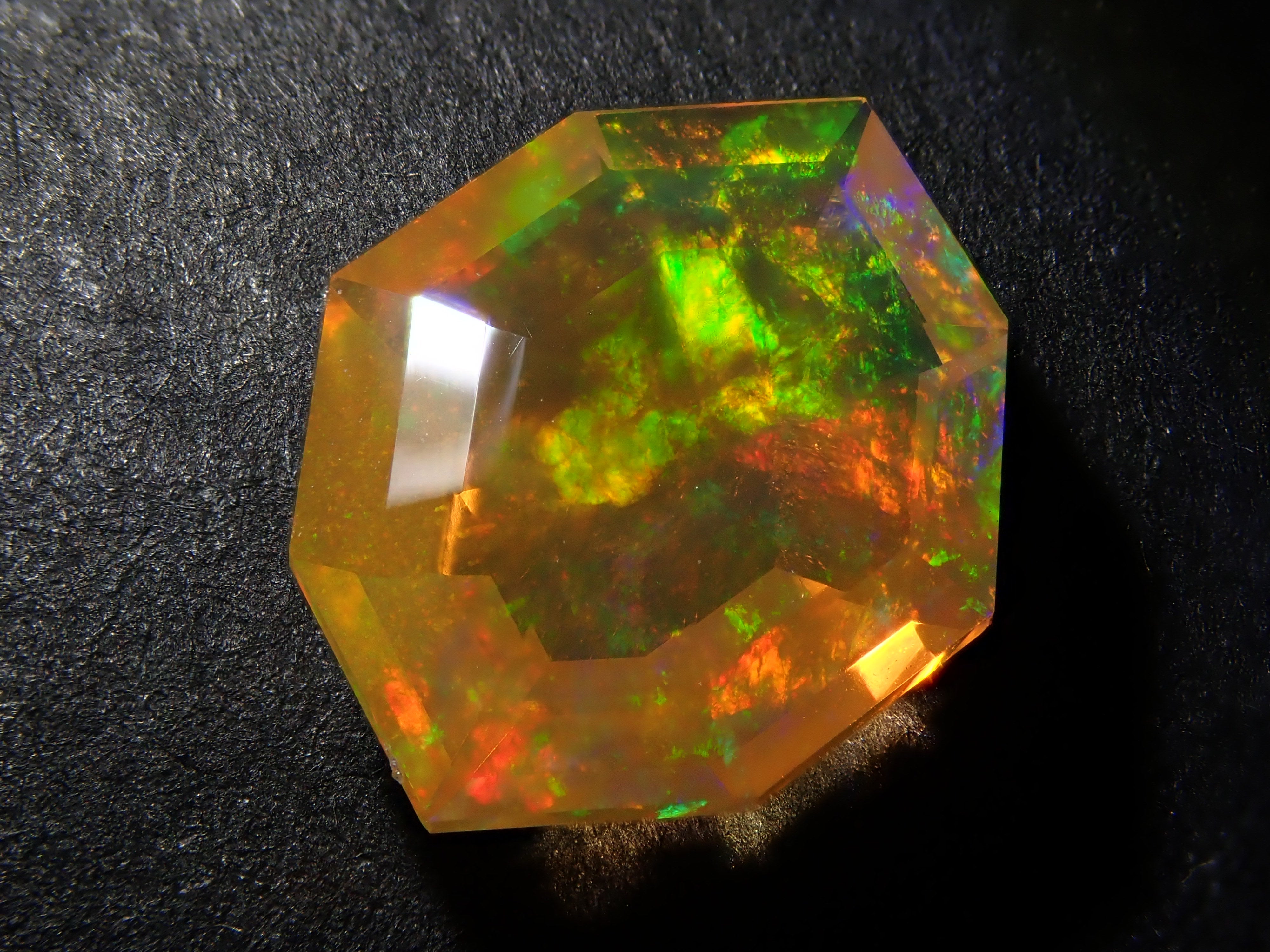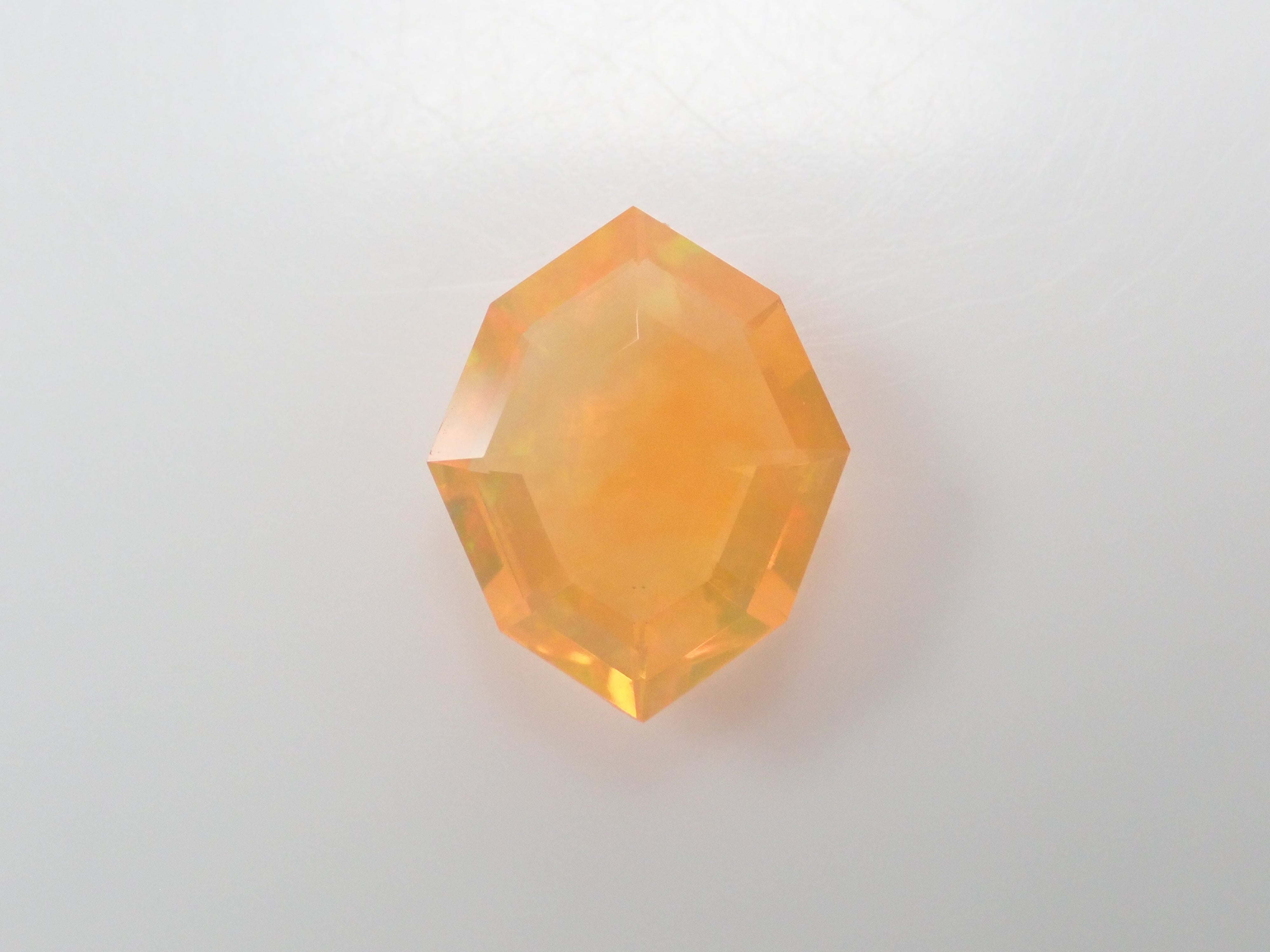 蛋白石自古羅馬時代以來就很受歡迎。火蛋白石是指底色從紅色到橘色的蛋白石,給人火的形象。照片是使用筆燈拍攝的。這顆火蛋白石由斯里蘭卡拋光工匠 Sanjay 從美國圖森購買的墨西哥蛋白石進行拋光。這是一款高品質寬鬆單品,底色深,色彩豐富。