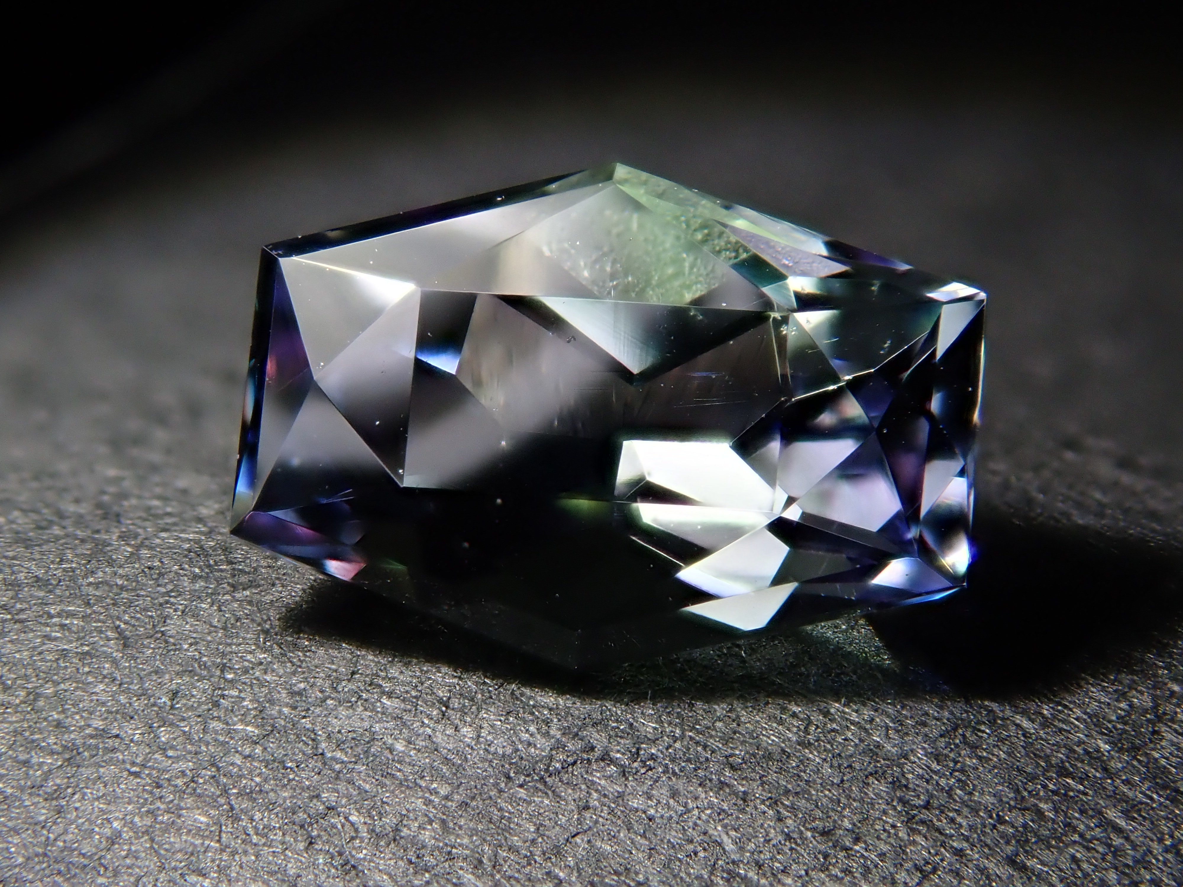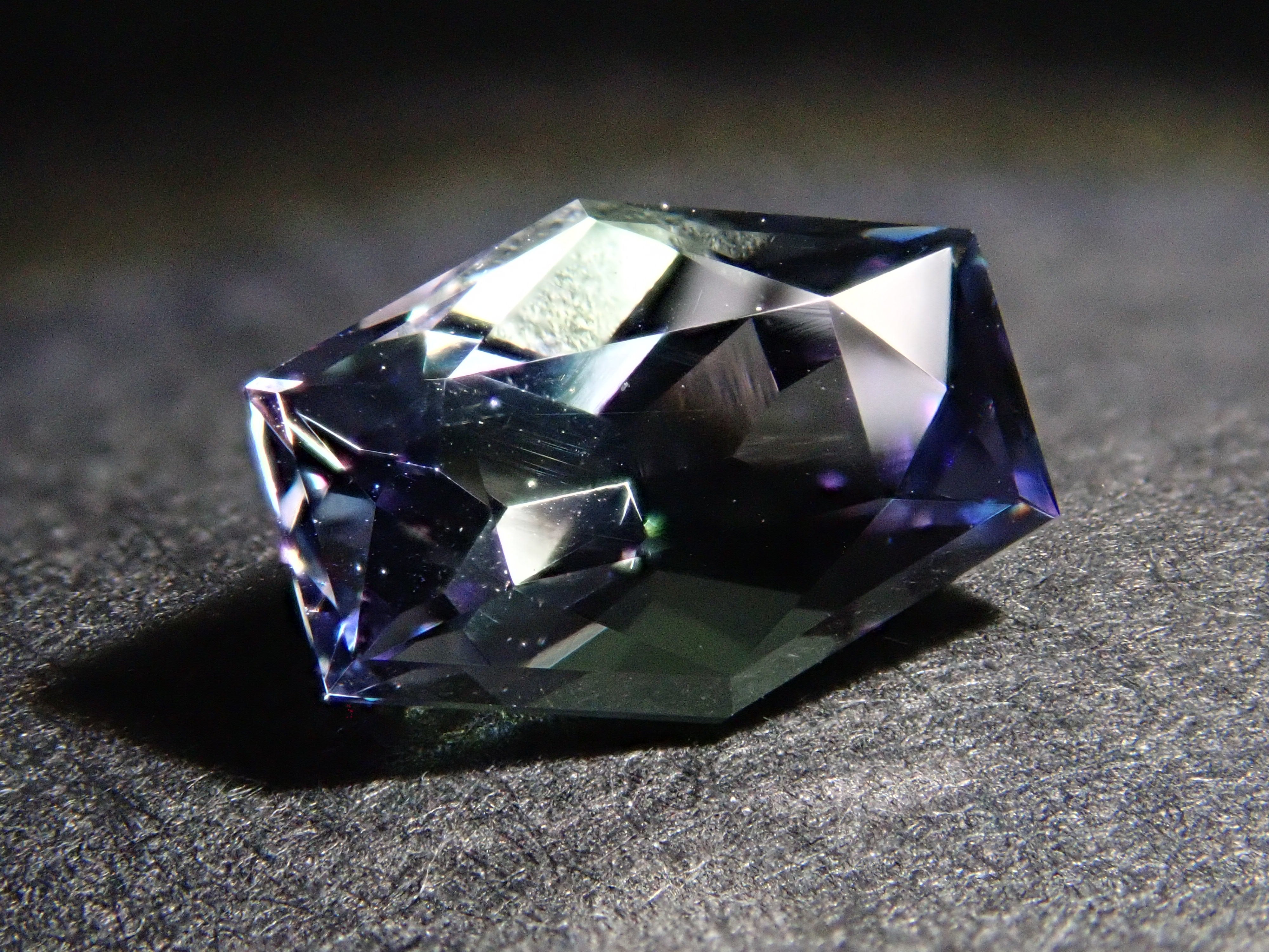 黝簾石有多種顏色。它以斯洛維尼亞礦物收藏家 Zygmunt Zois 的名字命名。坦桑石其實是黝簾石的一種。與坦桑石一樣,它是一種有吸引力的多向色性寶石,根據觀察角度的不同,呈現出不同的顏色。這是一種相對罕見的雙色黝簾石。這顆雙色黝簾石由斯里蘭卡能工巧匠 Sanjay 先生切割而成。