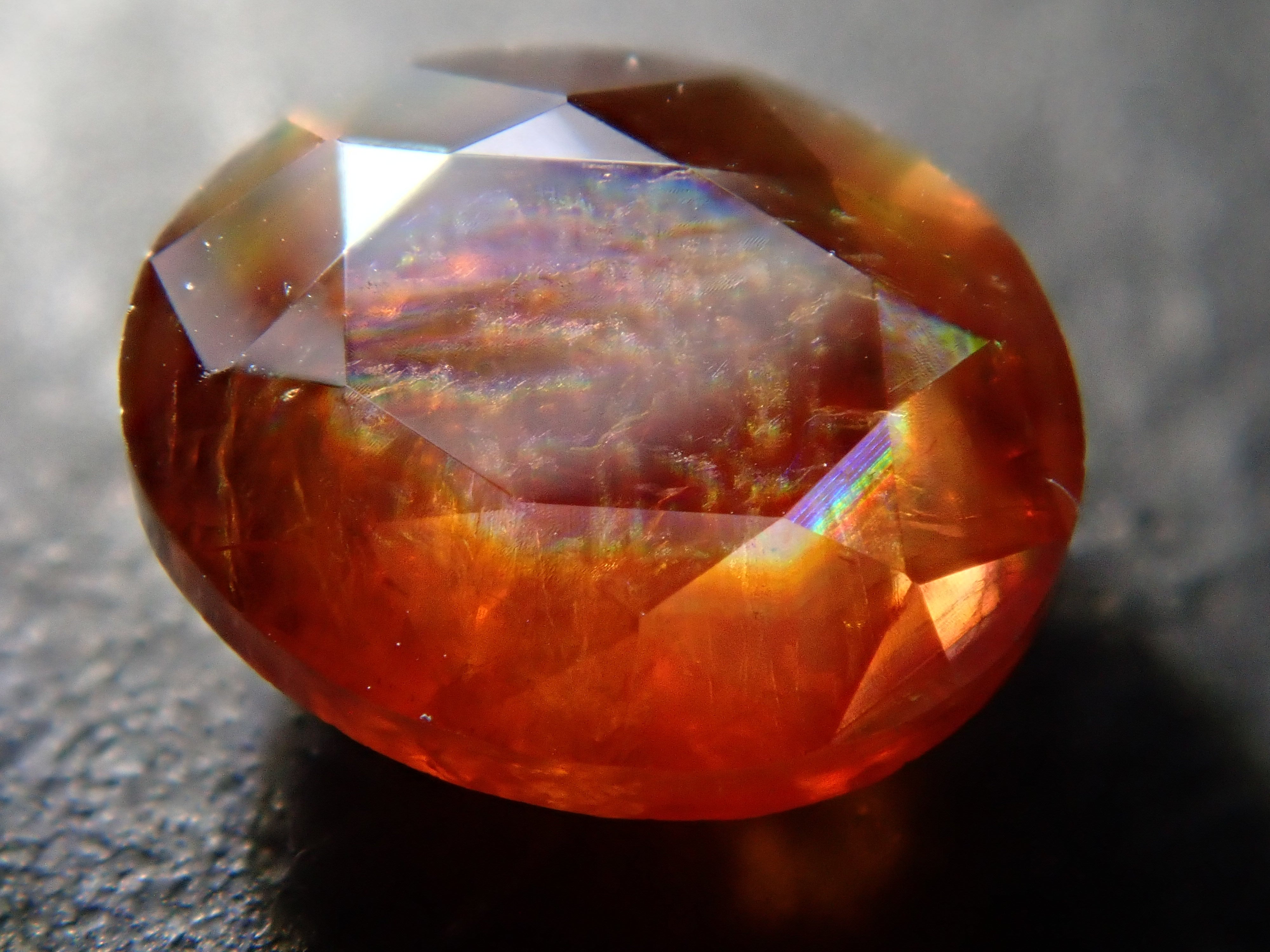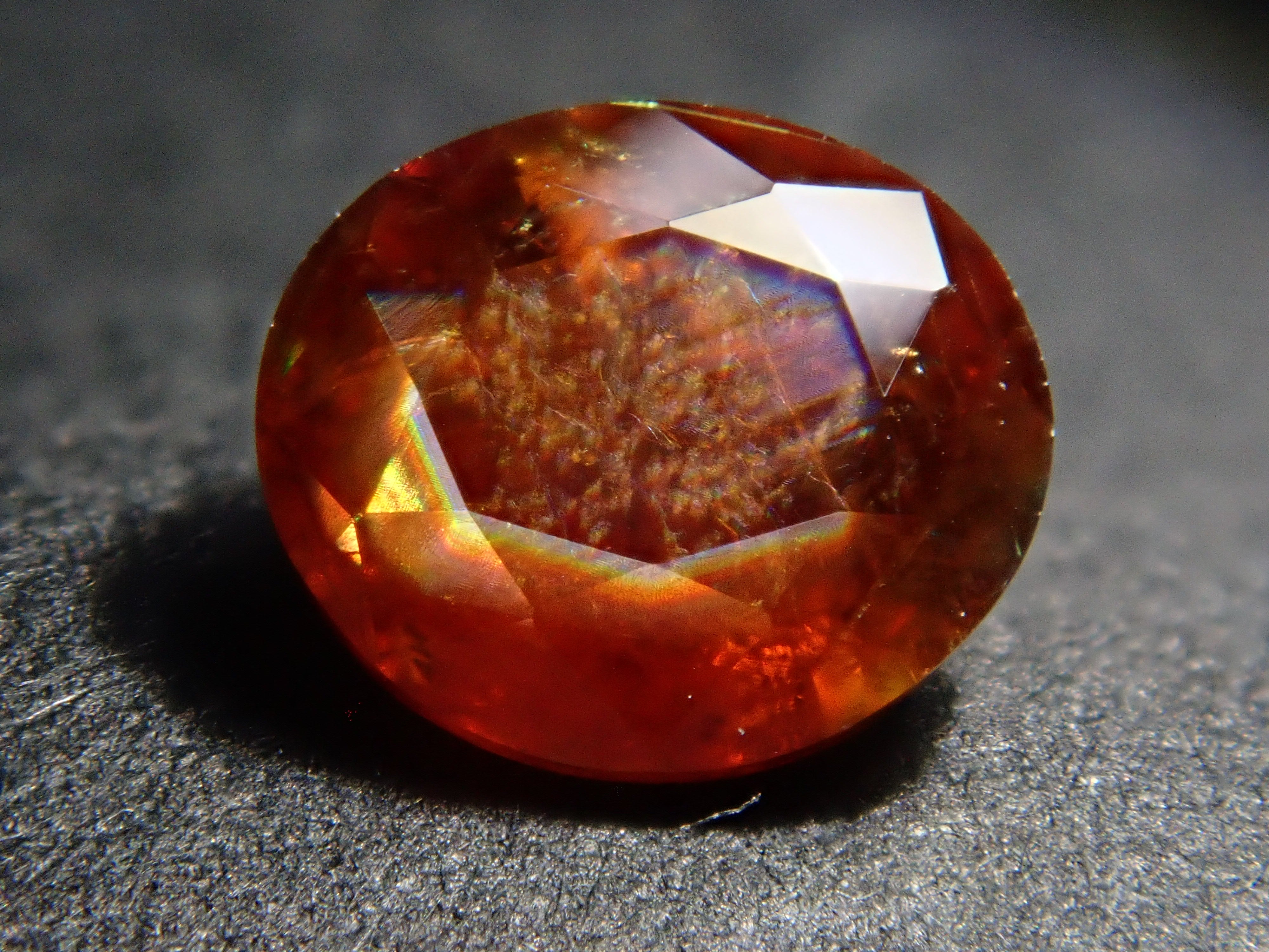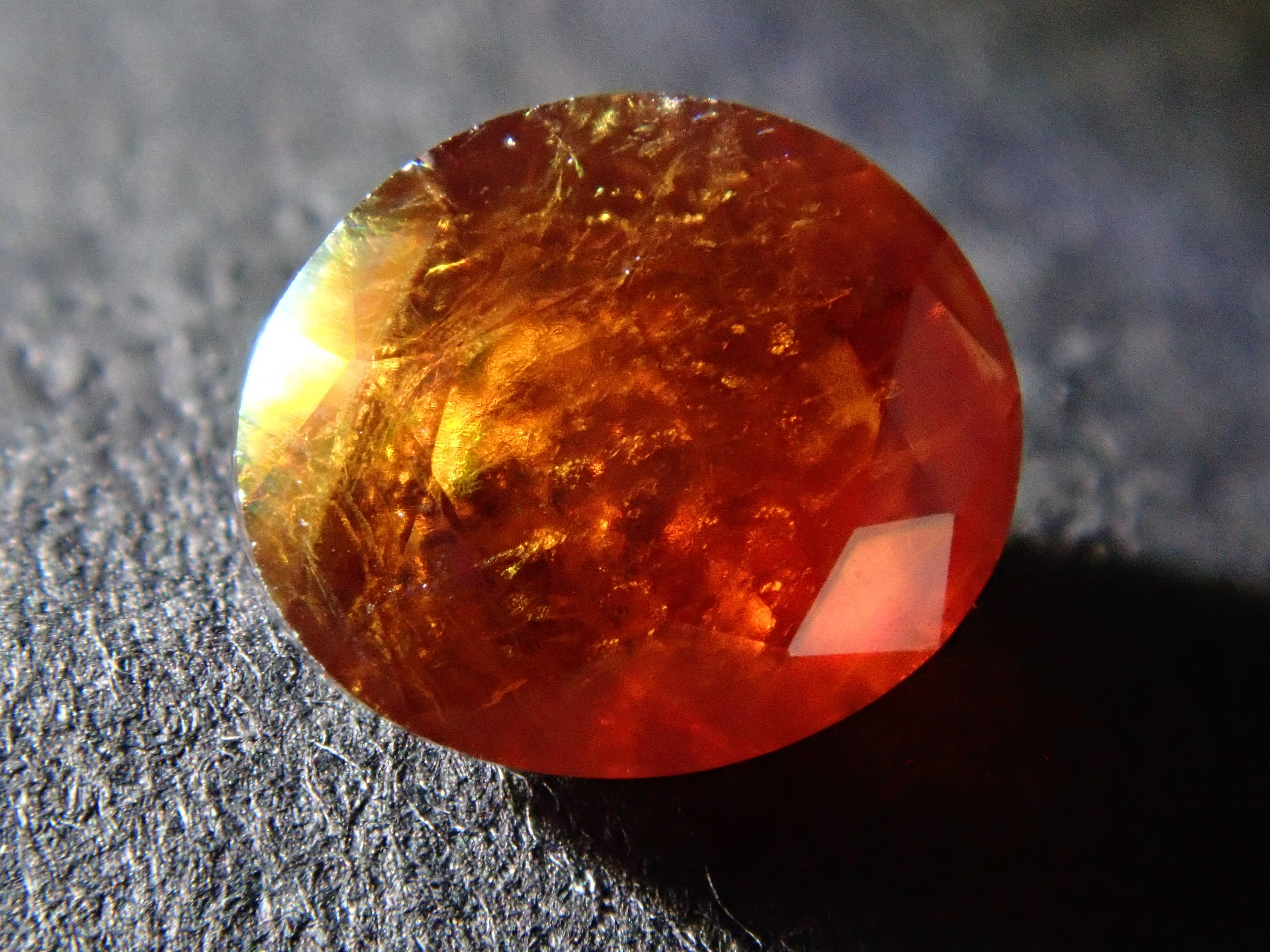 它呈刻面且疏鬆,這對於彩虹石榴石來說是罕見的。