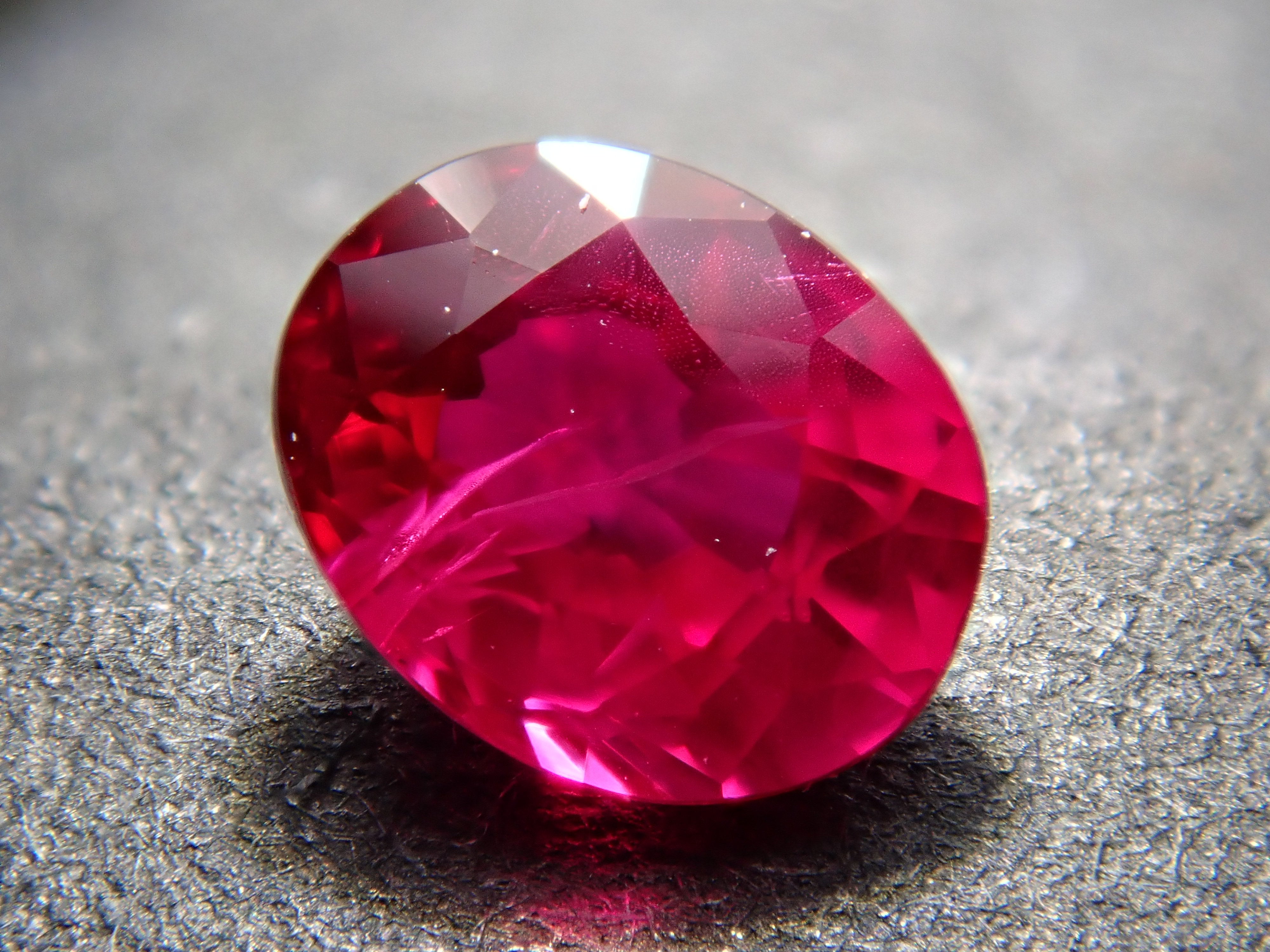 高度透明的橢圓形切割紅寶石。包括珠寶和貴金屬協會的分類。