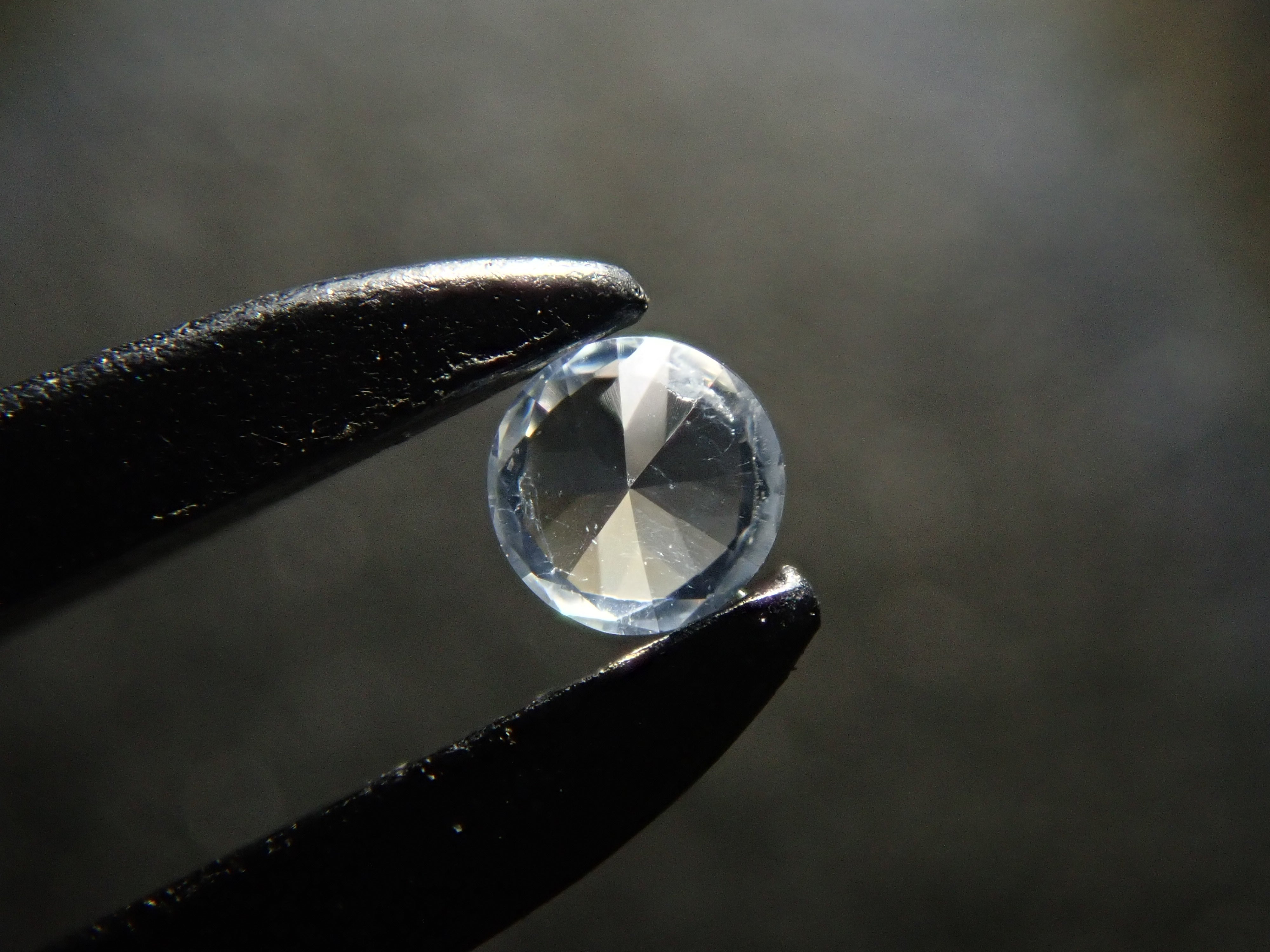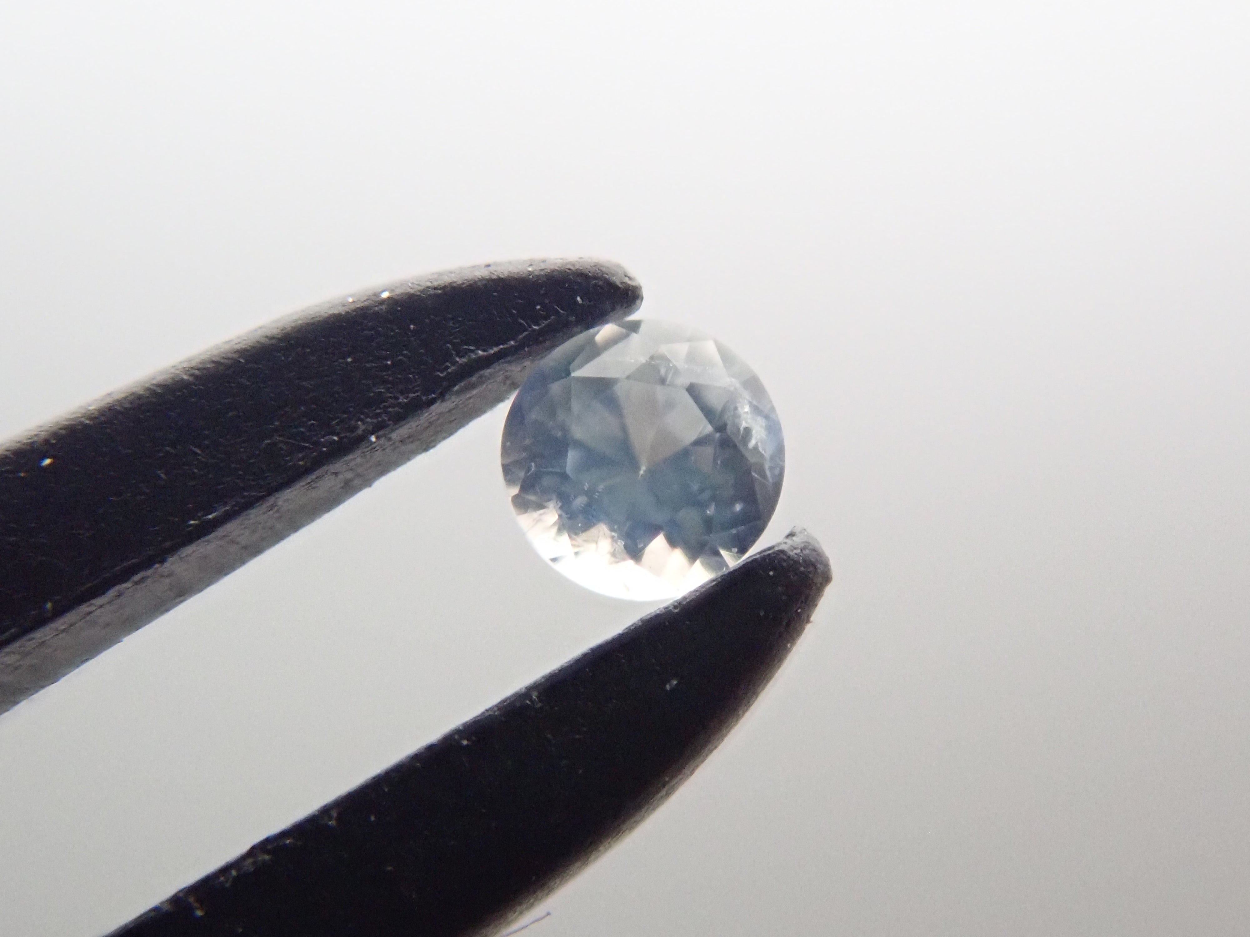 藍錐礦據說是美國三大稀有寶石之一。它是一種充滿寶石魅力的石頭,擁有鑽石般的強烈光澤和藍寶石般美麗的藍色。據說是1900年代在加州聖貝尼托河附近發現的,其特徵是光色散力強。藍錐礦 0.025 克拉鬆散(無色藍錐礦)。這是直接從藍錐礦礦主購買的無色藍錐礦。由於該照片是在最大 44 倍放大倍率下拍攝的,所以照片帶有輕微的藍色調,但肉眼看來它是無色的色調。