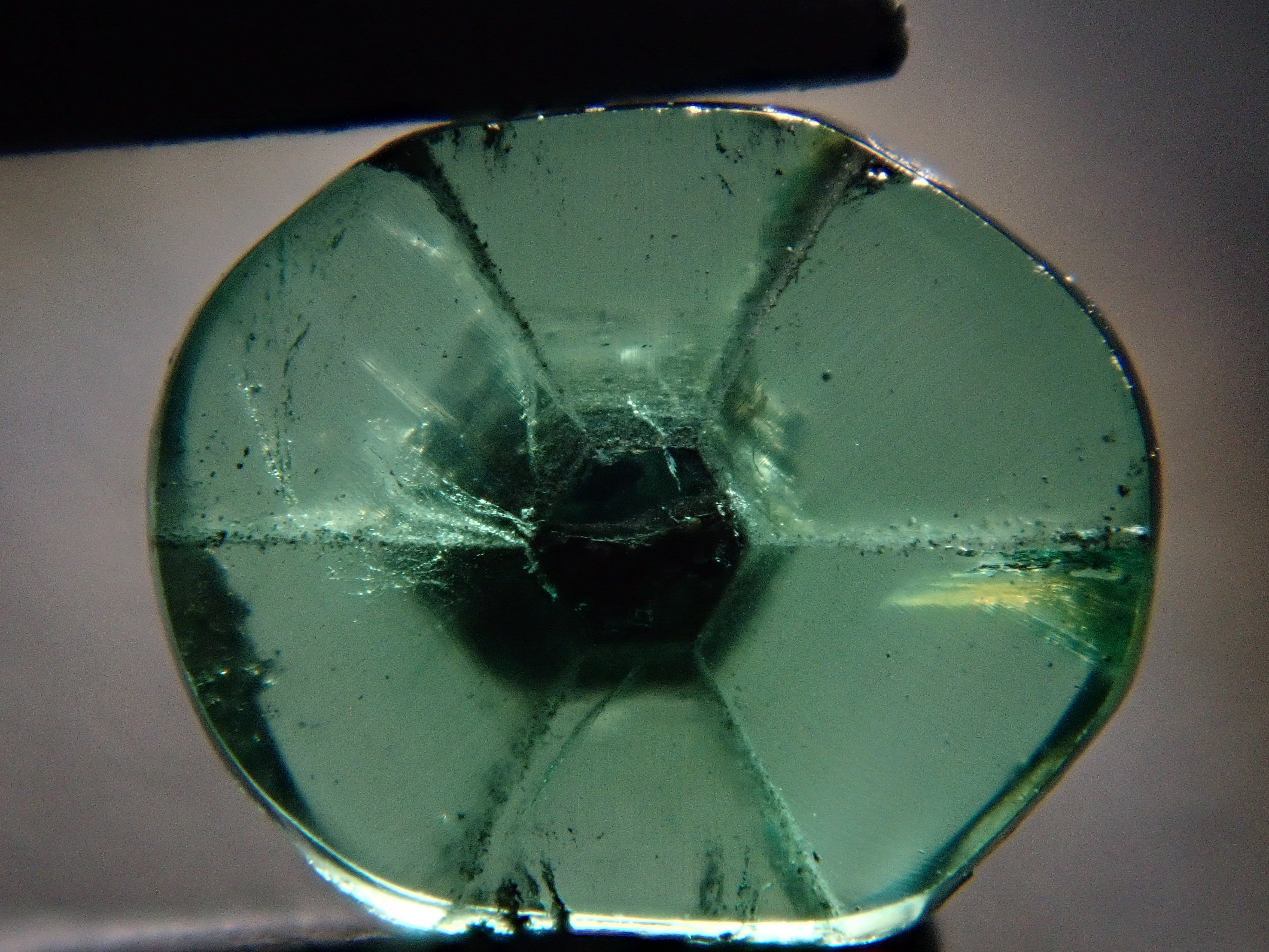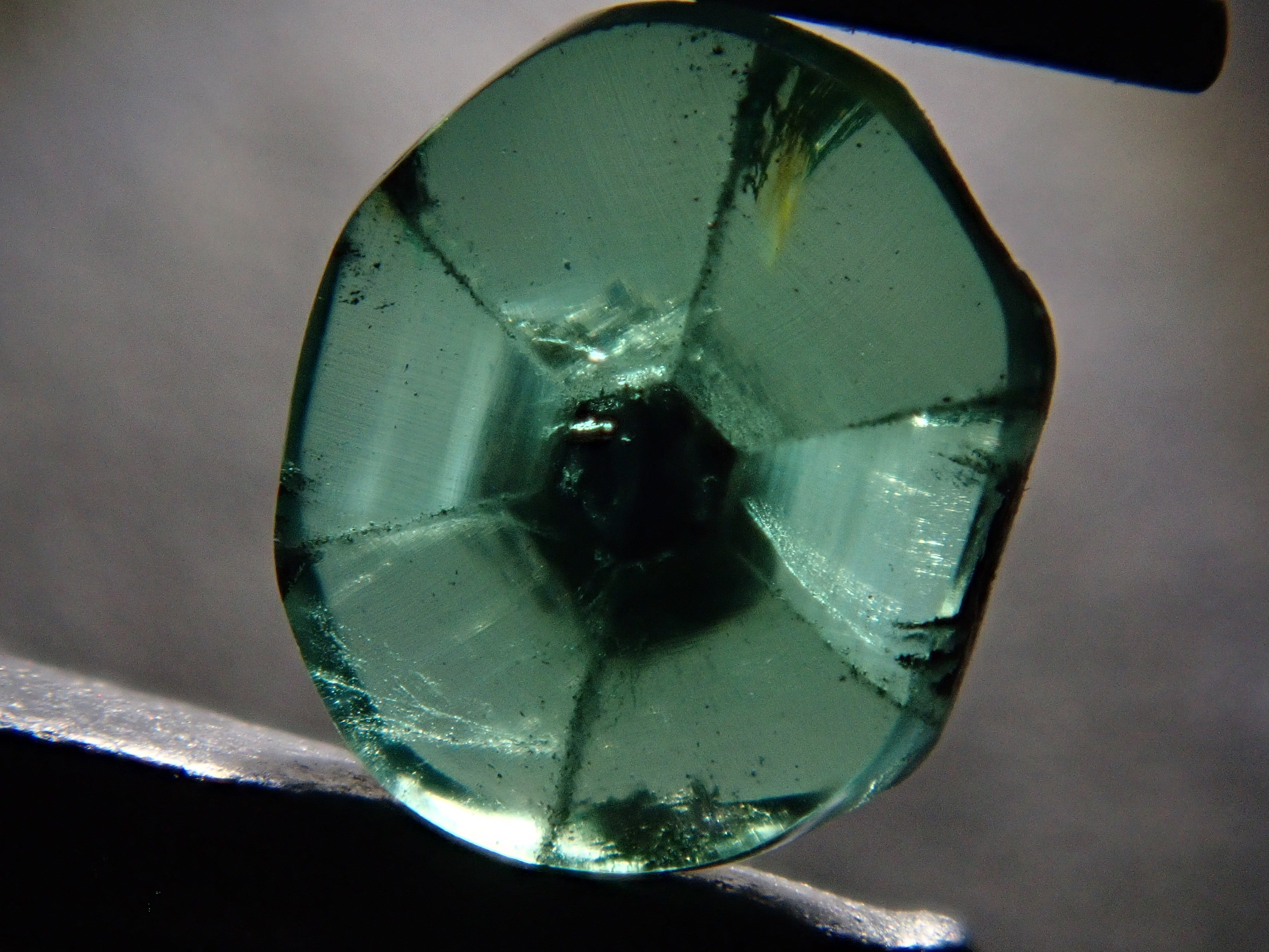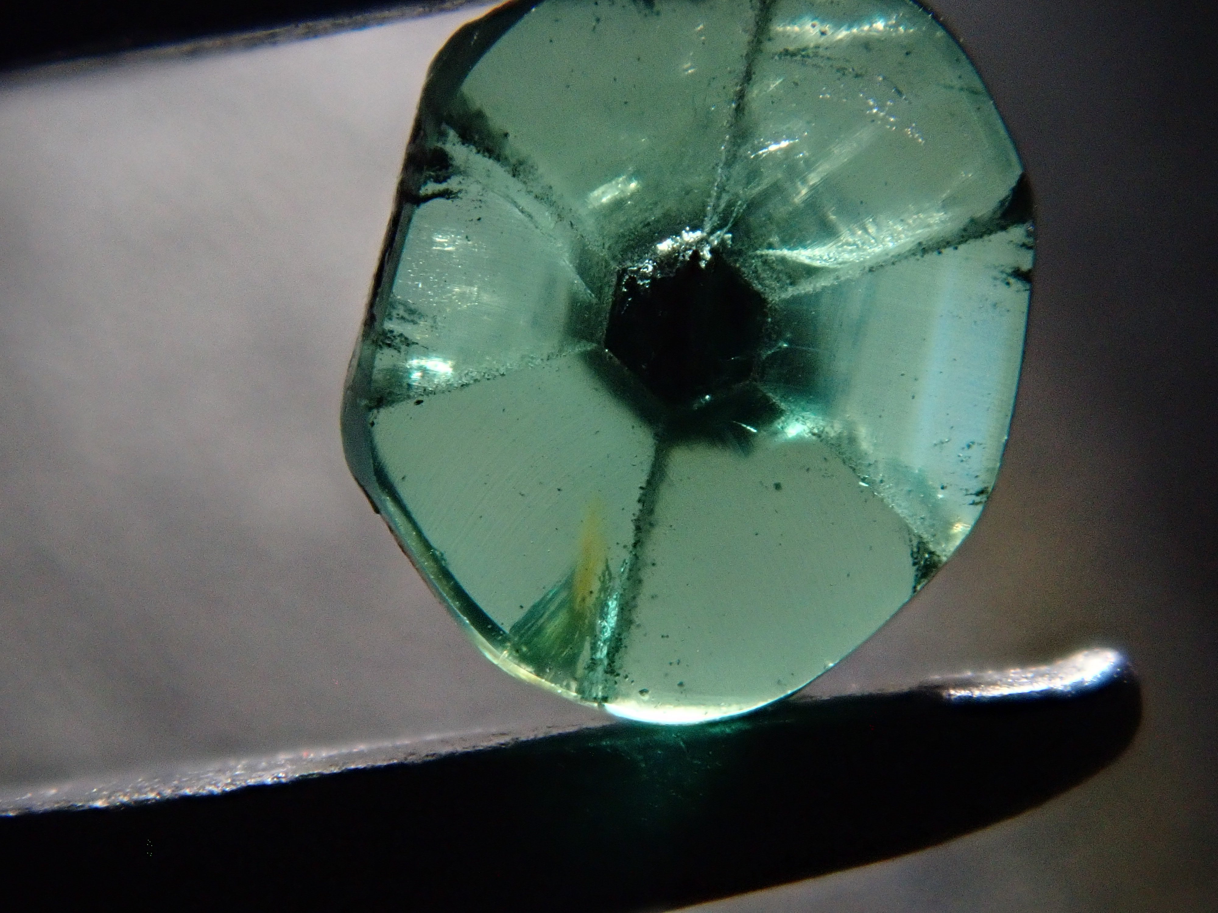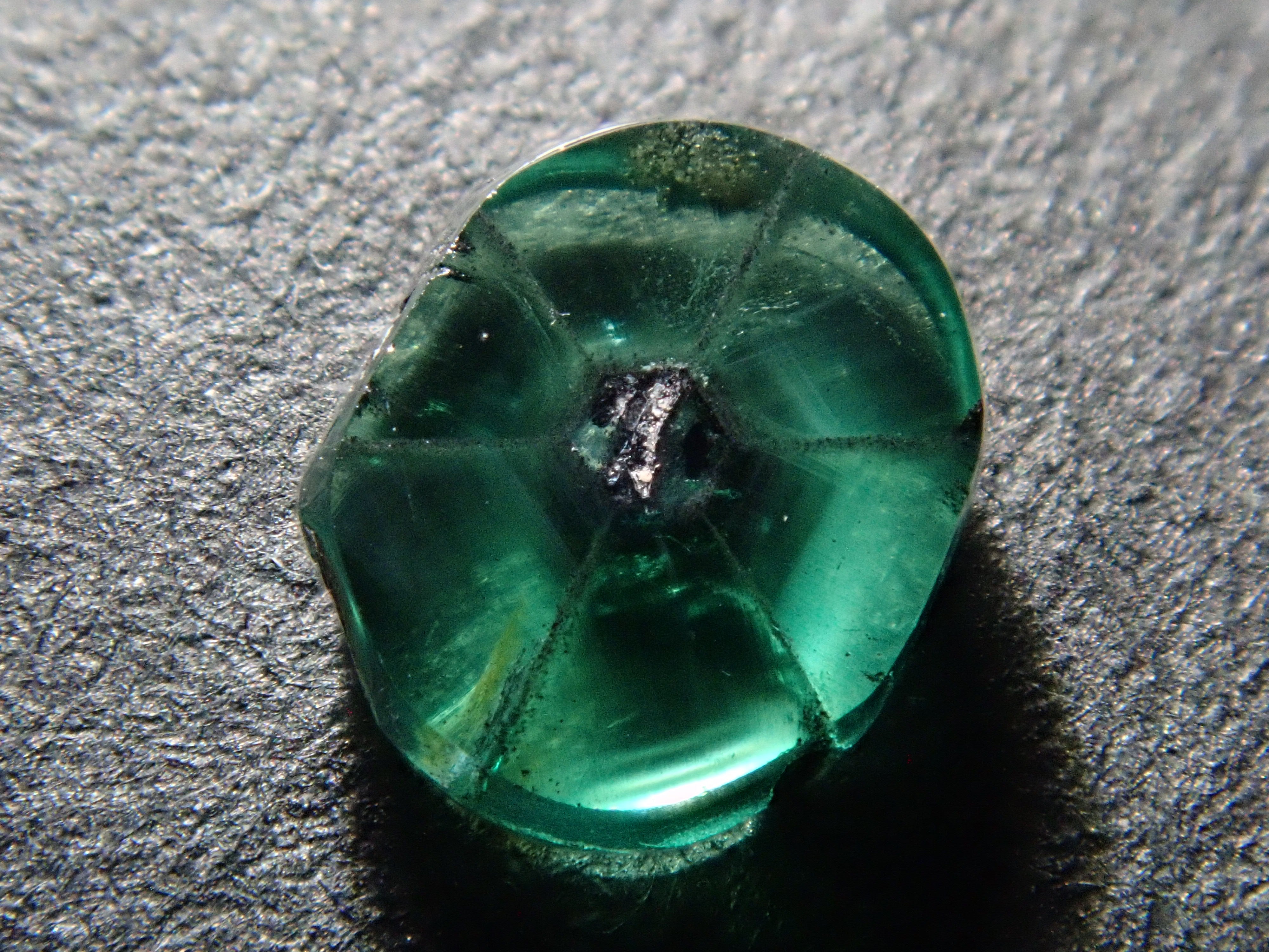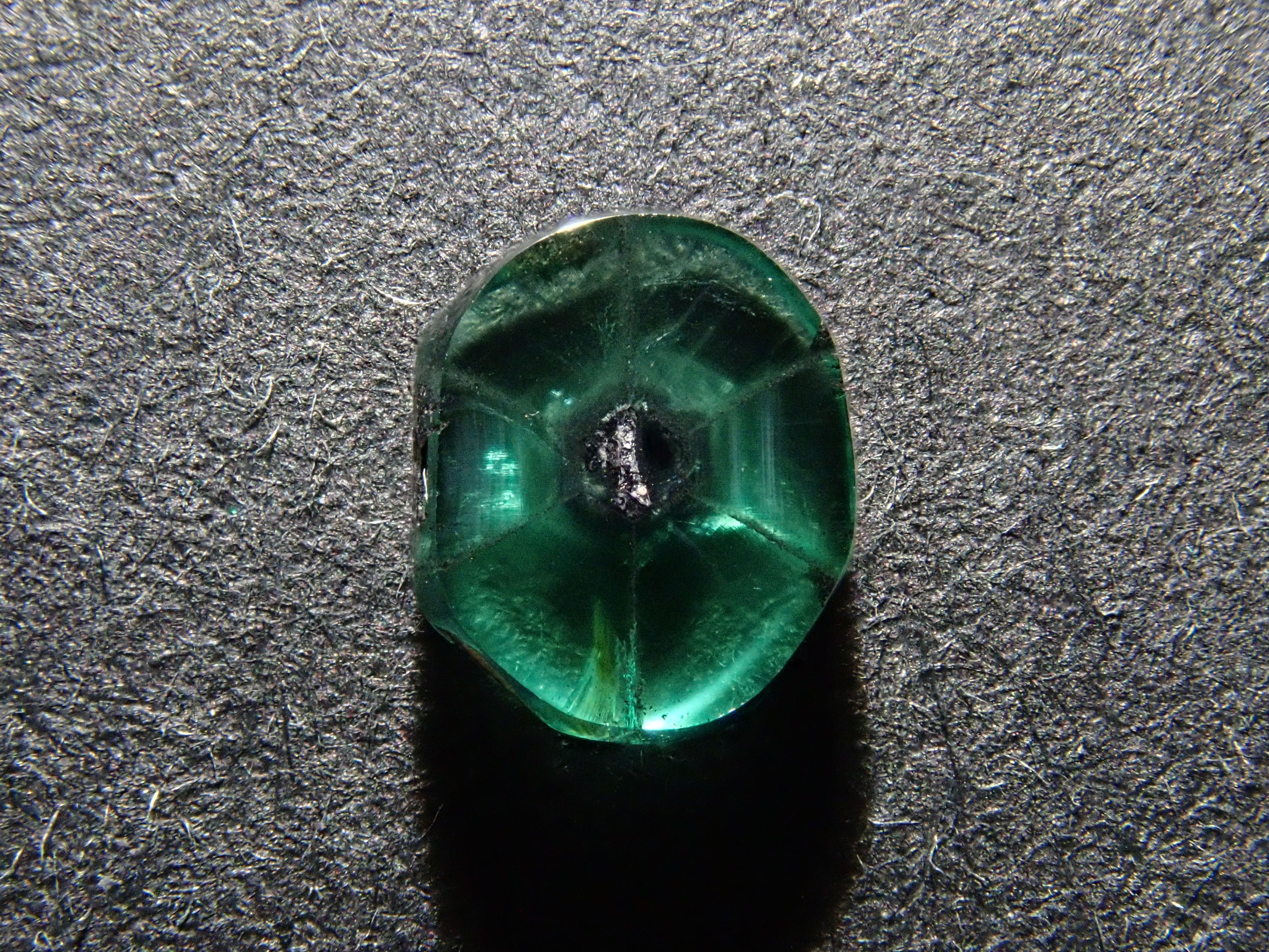 達碧茲祖母綠有六條線,是一種稀有寶石,僅佔所有祖母綠的一小部分。人們認為這種圖案是由於晶體生長過程中混入的雜質所導致的,然後沿著晶體垂直延伸。這是一顆 0.424 克拉的哥倫比亞達碧茲祖母綠,可讓您充分欣賞來自 Muzo 礦場的達碧茲圖案。