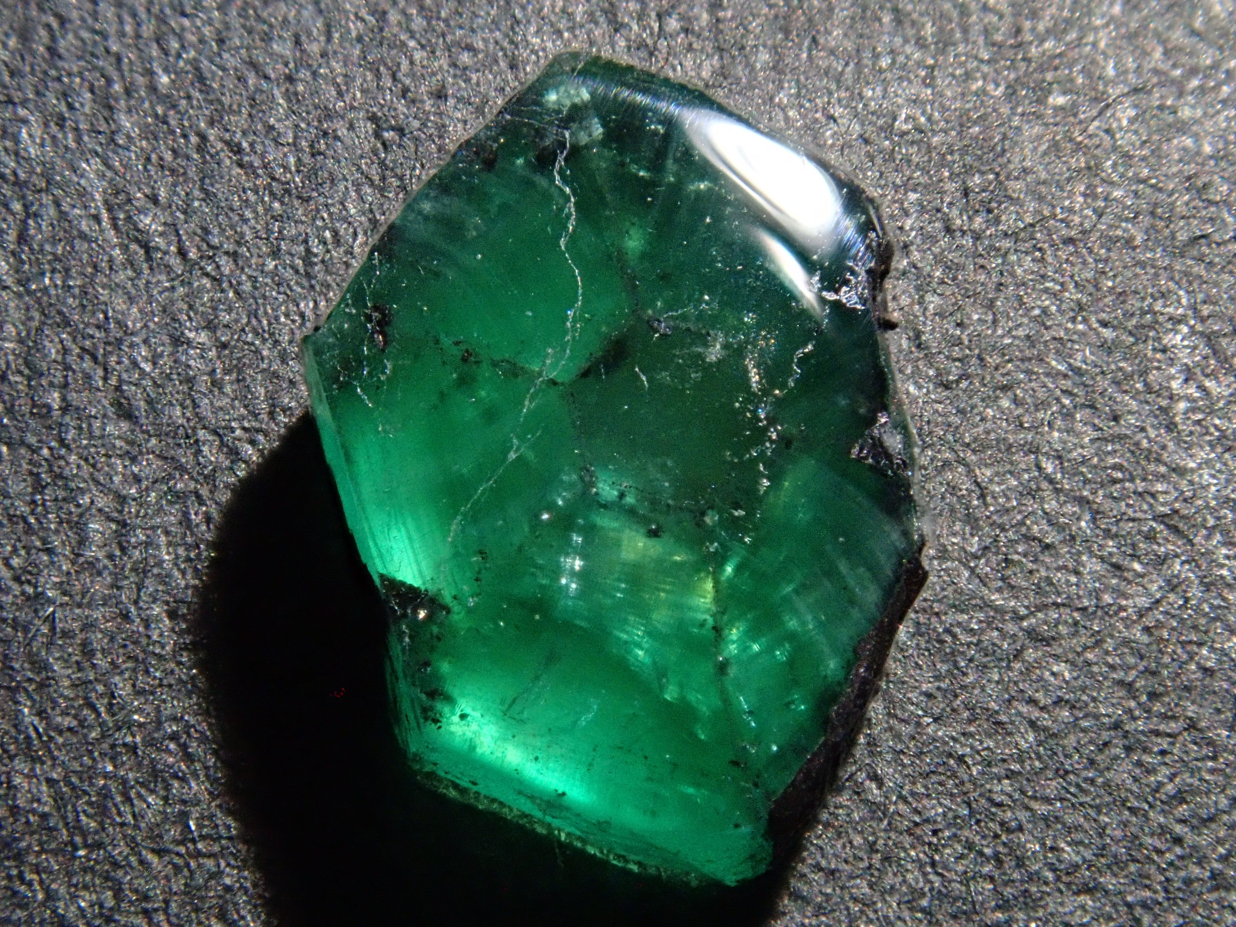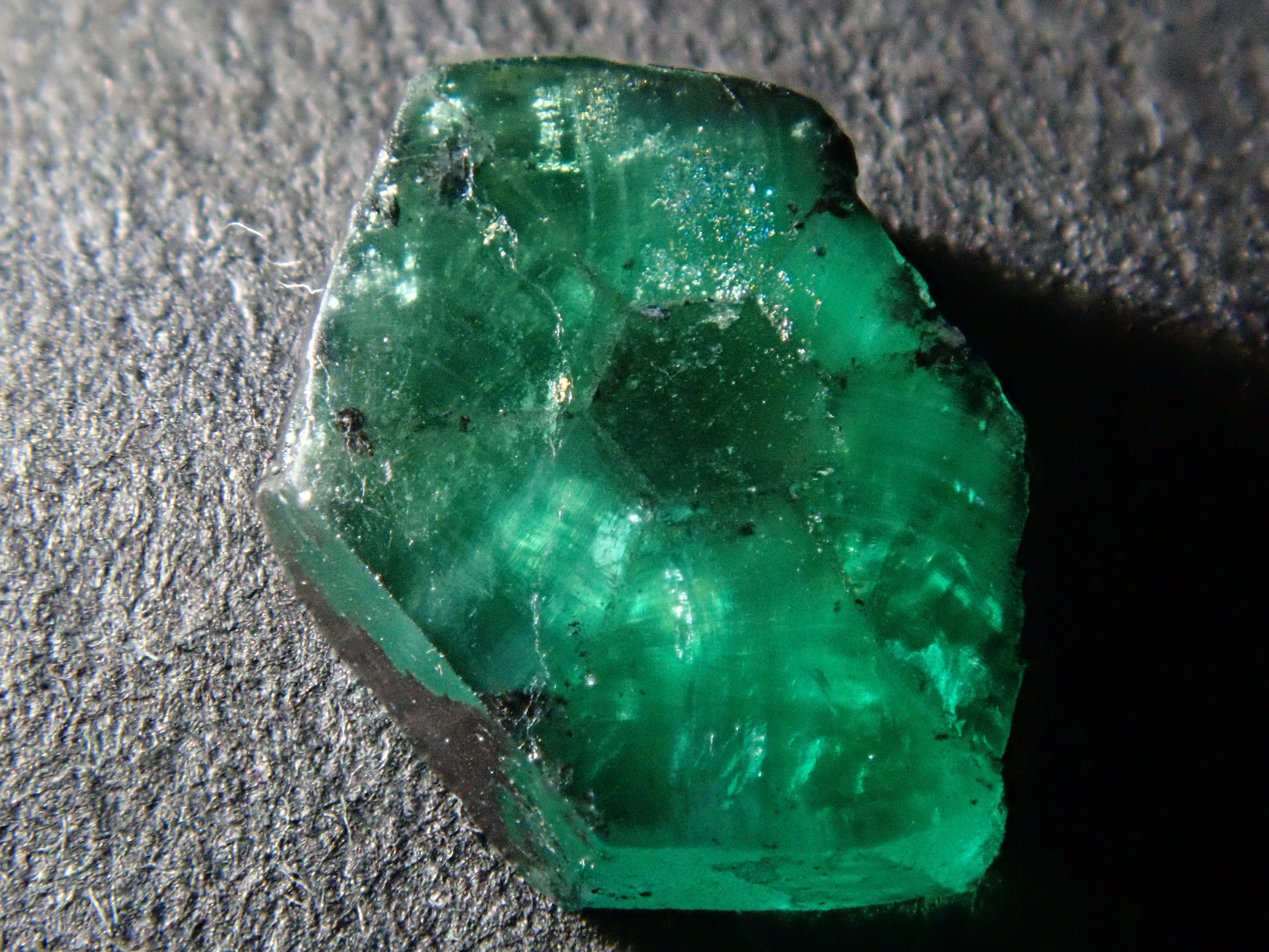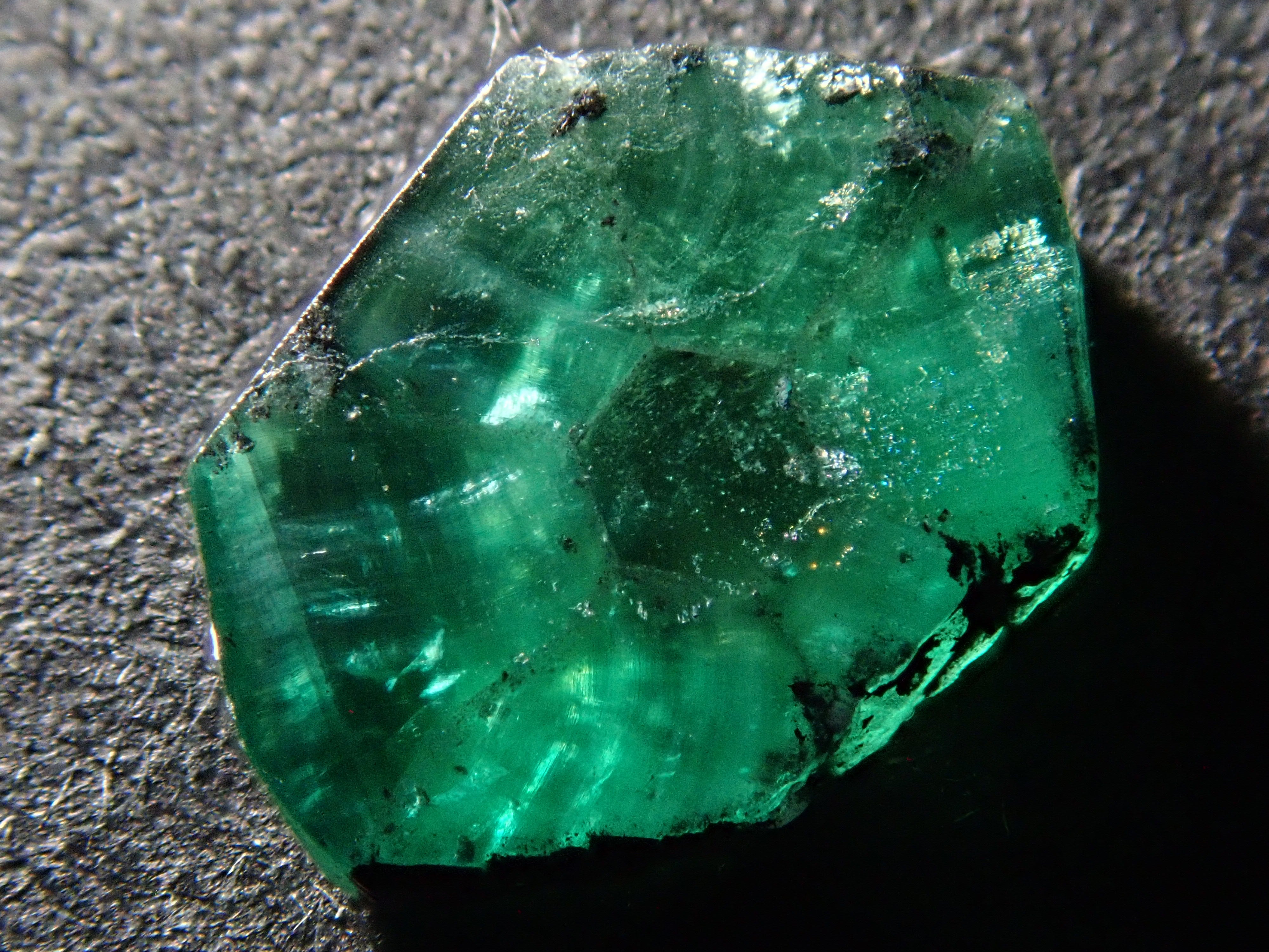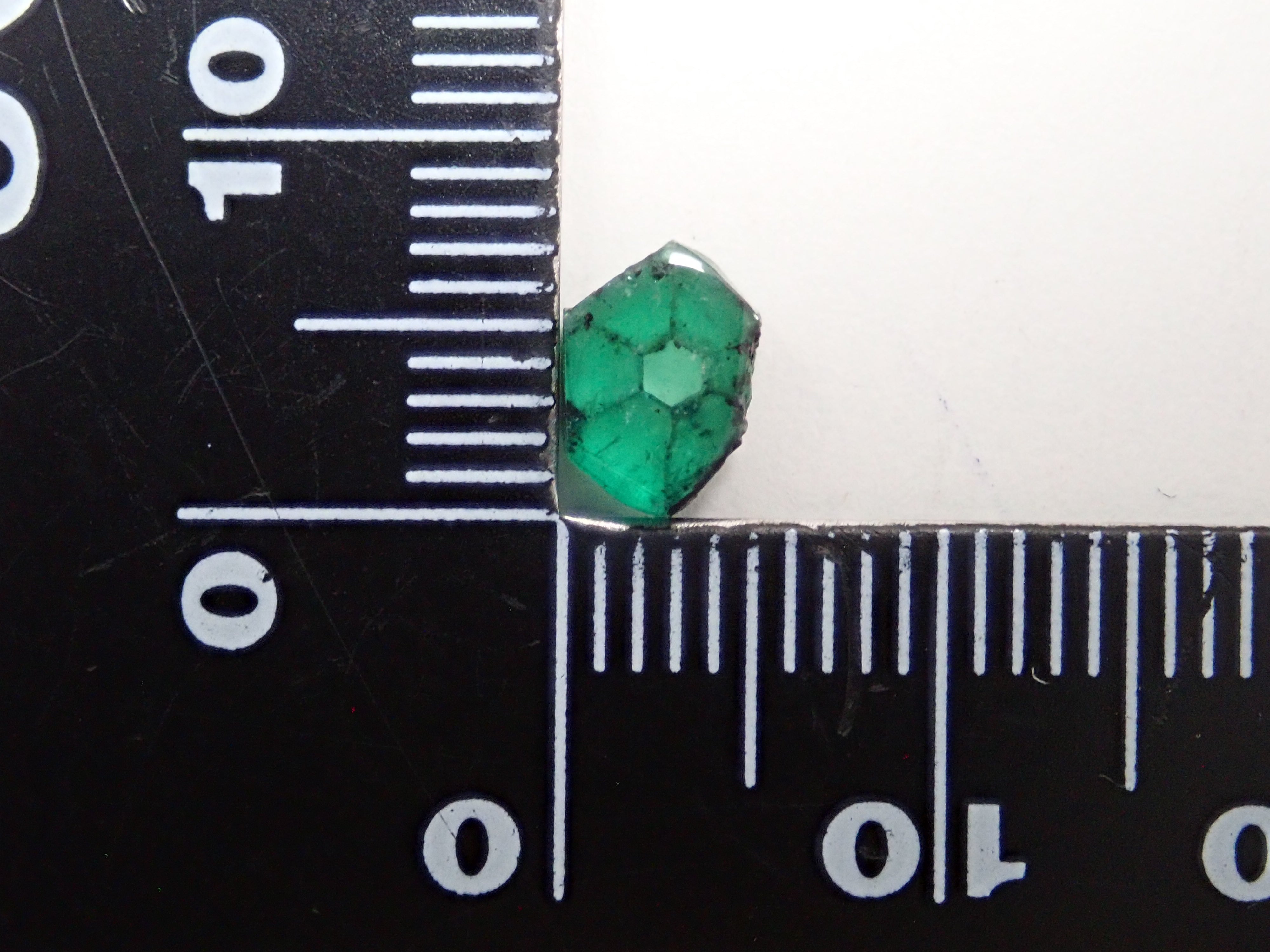 特拉皮切祖母綠擁有六條紋路,是稀有寶石,在祖母綠總產量中僅佔極小比例。人們認為,這種紋路是由於晶體在生長過程中混入了雜質,並隨著晶體垂直延伸而形成的。這是一顆產自穆佐礦場的0.923克拉哥倫比亞特拉皮切祖母綠原石。