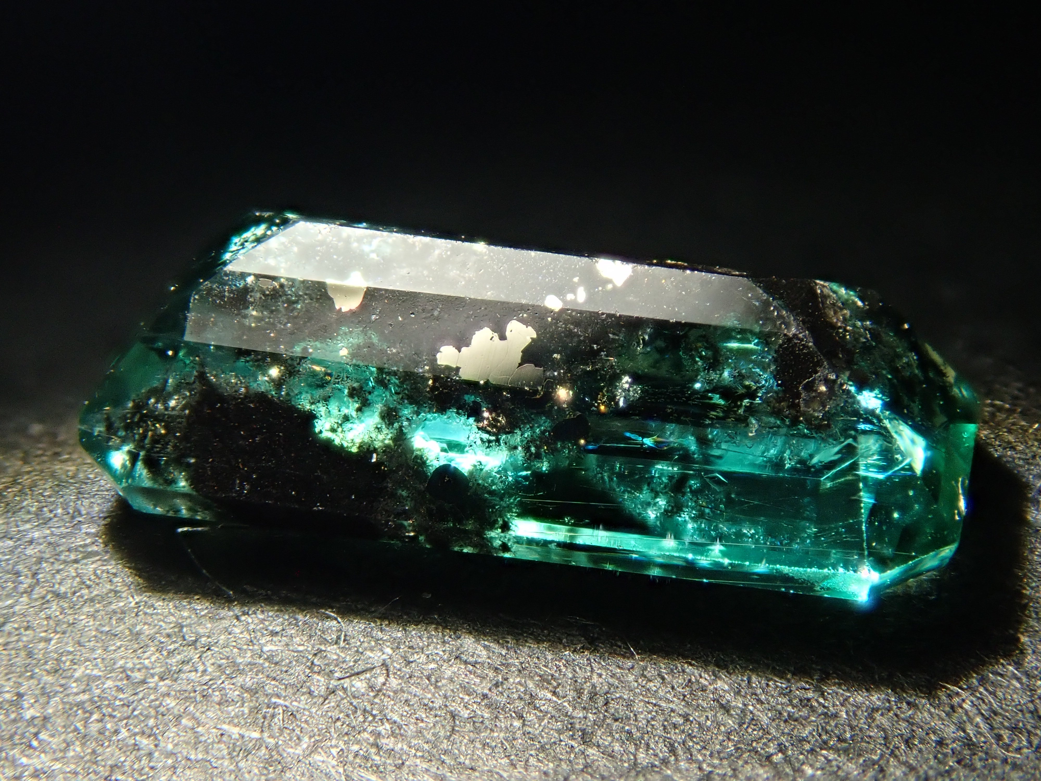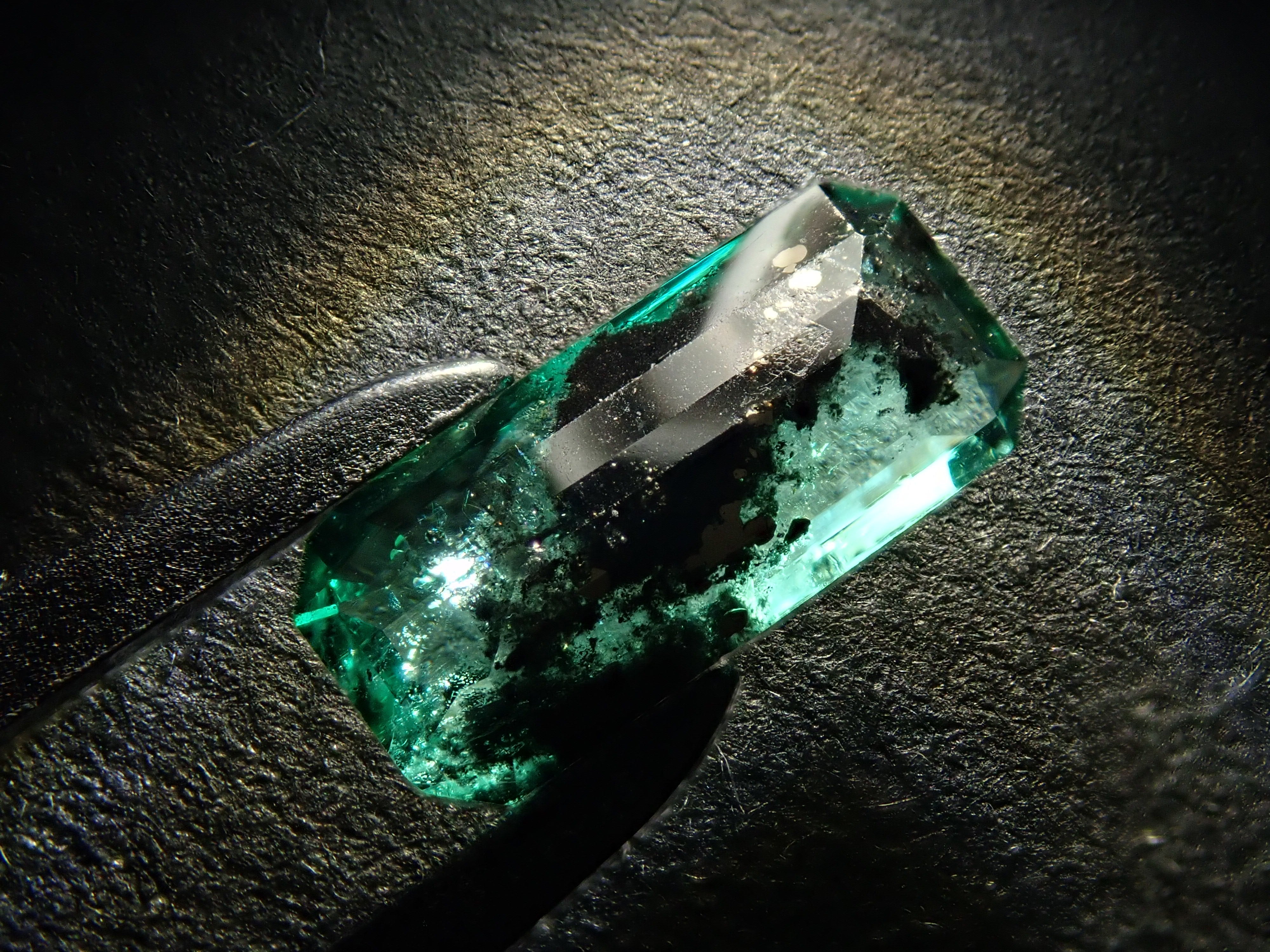 據說祖母綠美麗的綠色會根據其生長地點的不同而改變。這是產自哥倫比亞的祖母綠,據說有特別深的綠色。祖母綠通常是一種有很多划痕的寶石,因此通常會用油對其進行處理,以使划痕不那麼明顯。享受優雅的綠色。這是祖母綠中的黃鐵礦。 它來自哥倫比亞的穆佐礦。