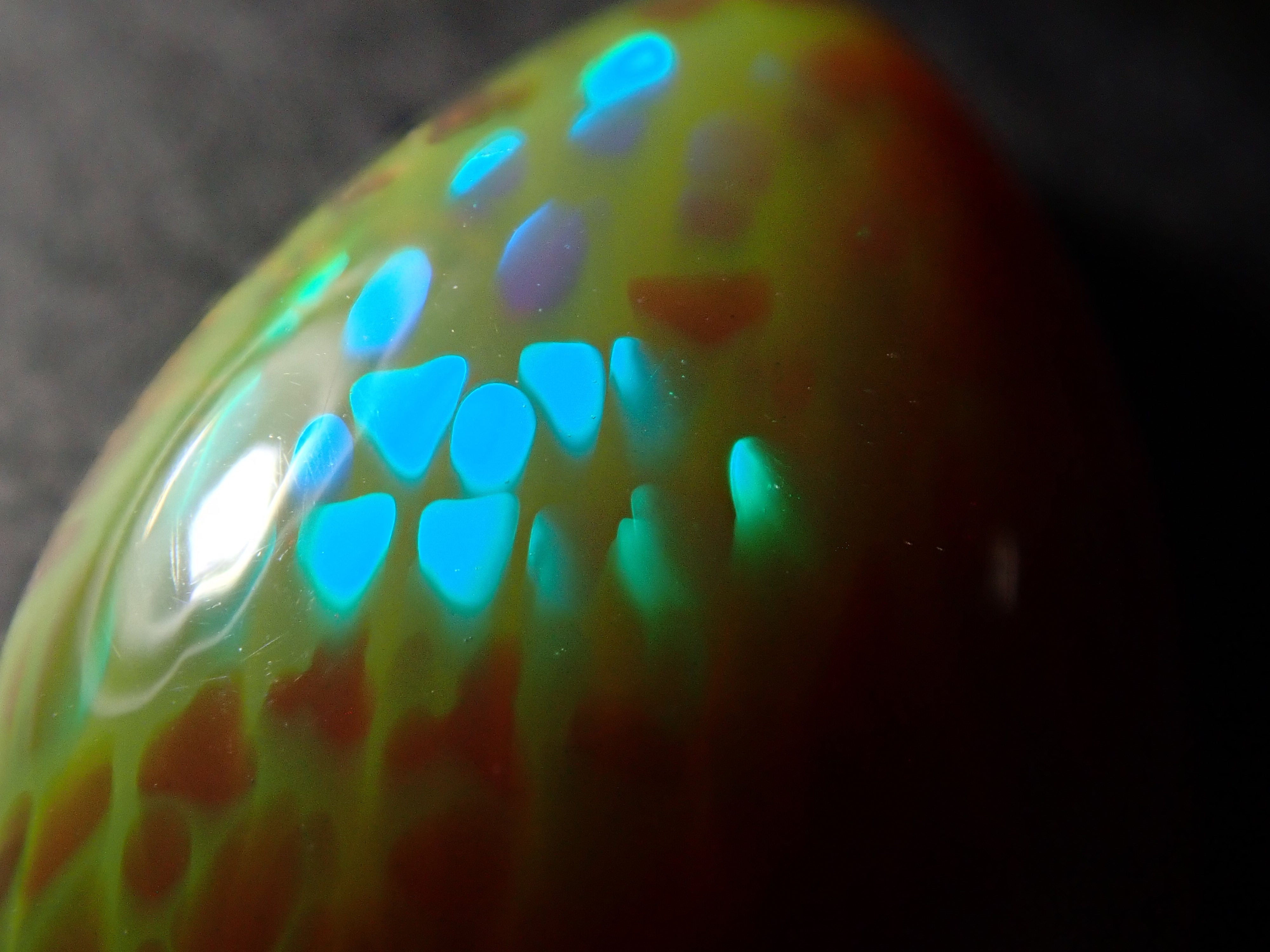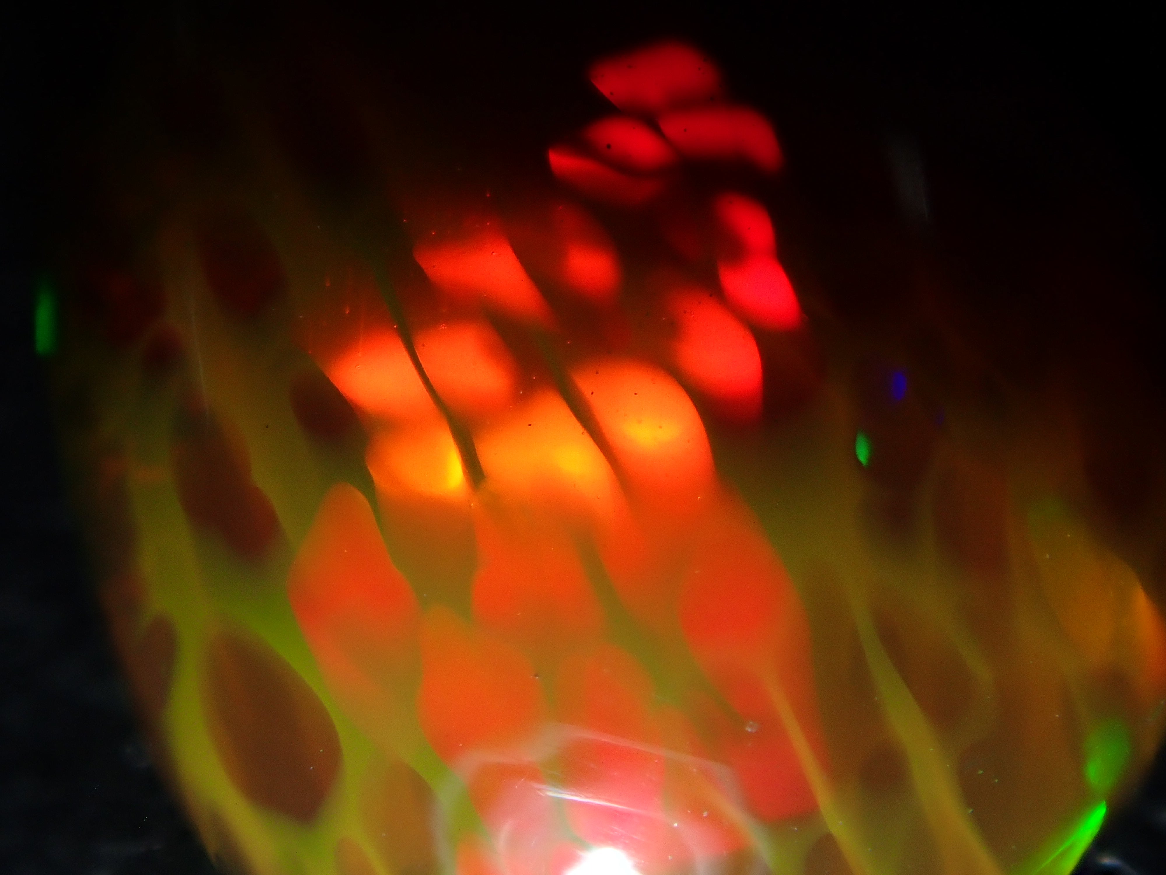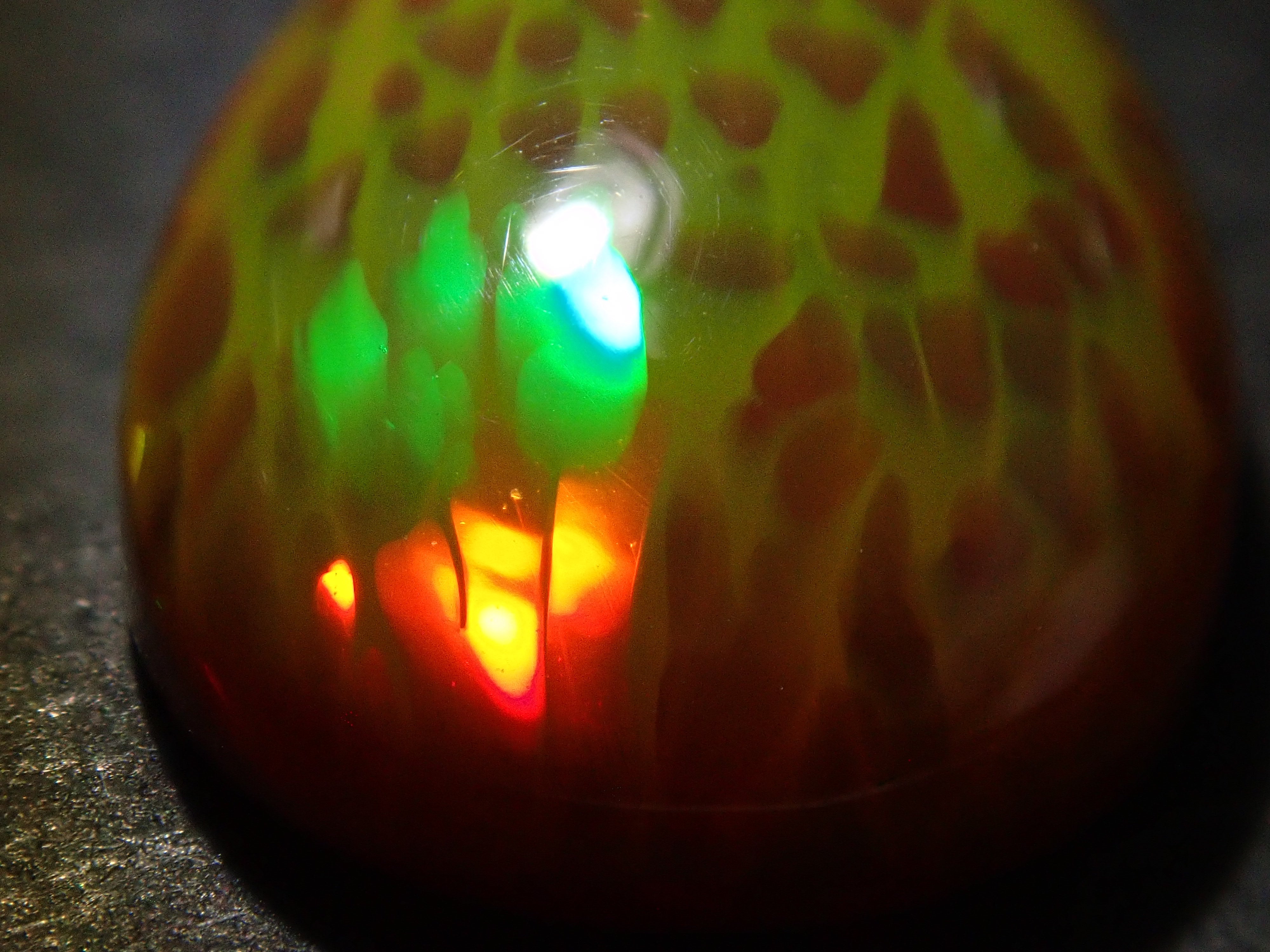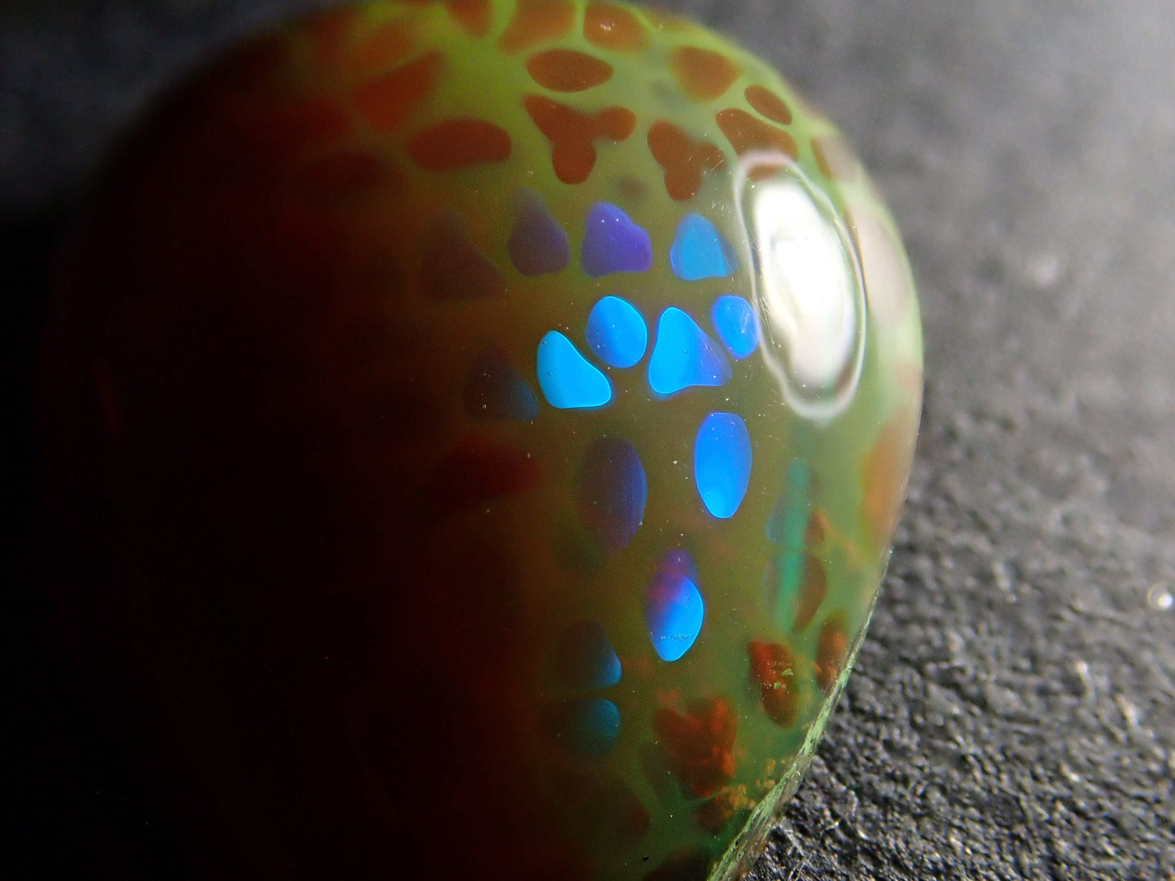 蛋白石是一種閃爍著彩虹色光芒的寶石。其中,蜂窩蛋白石是具有類似蜂窩狀浮紋的蛋白石。儘管是一塊石頭,但這塊石頭卻給人一種生命活力的感覺。在所有蛋白石中,產出蜂窩蛋白石的機率很小。照片是使用筆燈拍攝的。這是一種高品質的散裝蜂窩蛋白石,具有特別美麗的圖案。