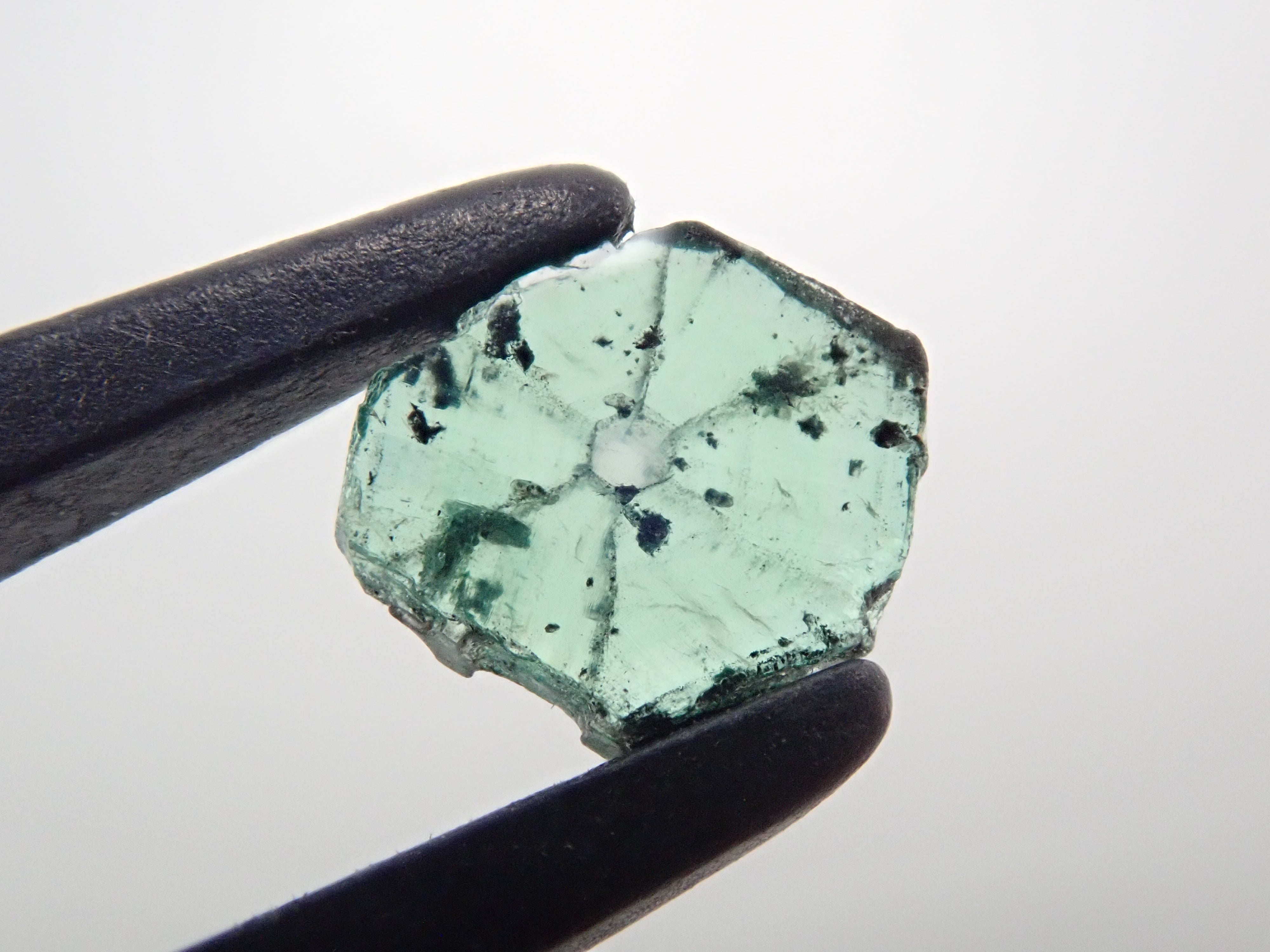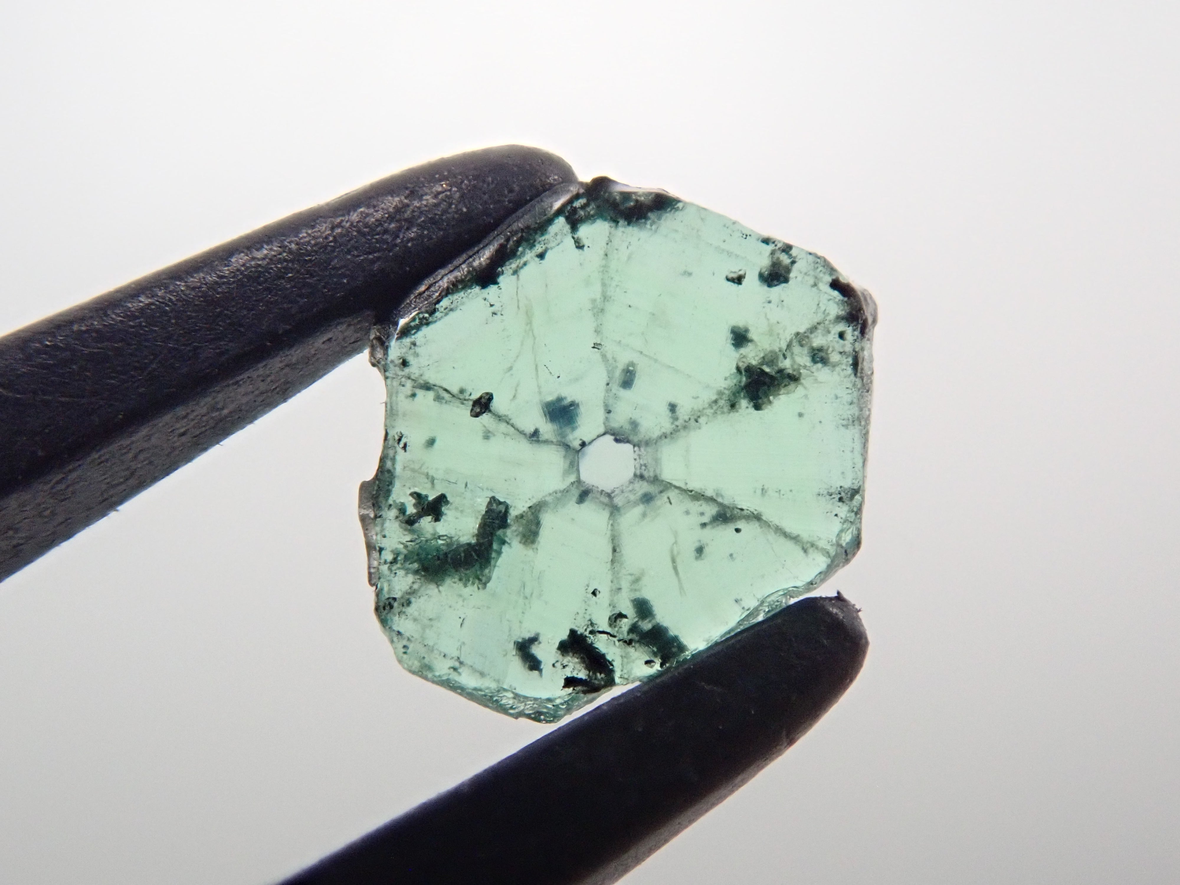 達碧茲祖母綠有六條線,是一種稀有寶石,僅佔所有祖母綠的一小部分。人們認為這種圖案是由於晶體生長過程中混入的雜質所導致的,然後沿著晶體垂直延伸。 哥倫比亞達碧茲祖母綠,透明度高。