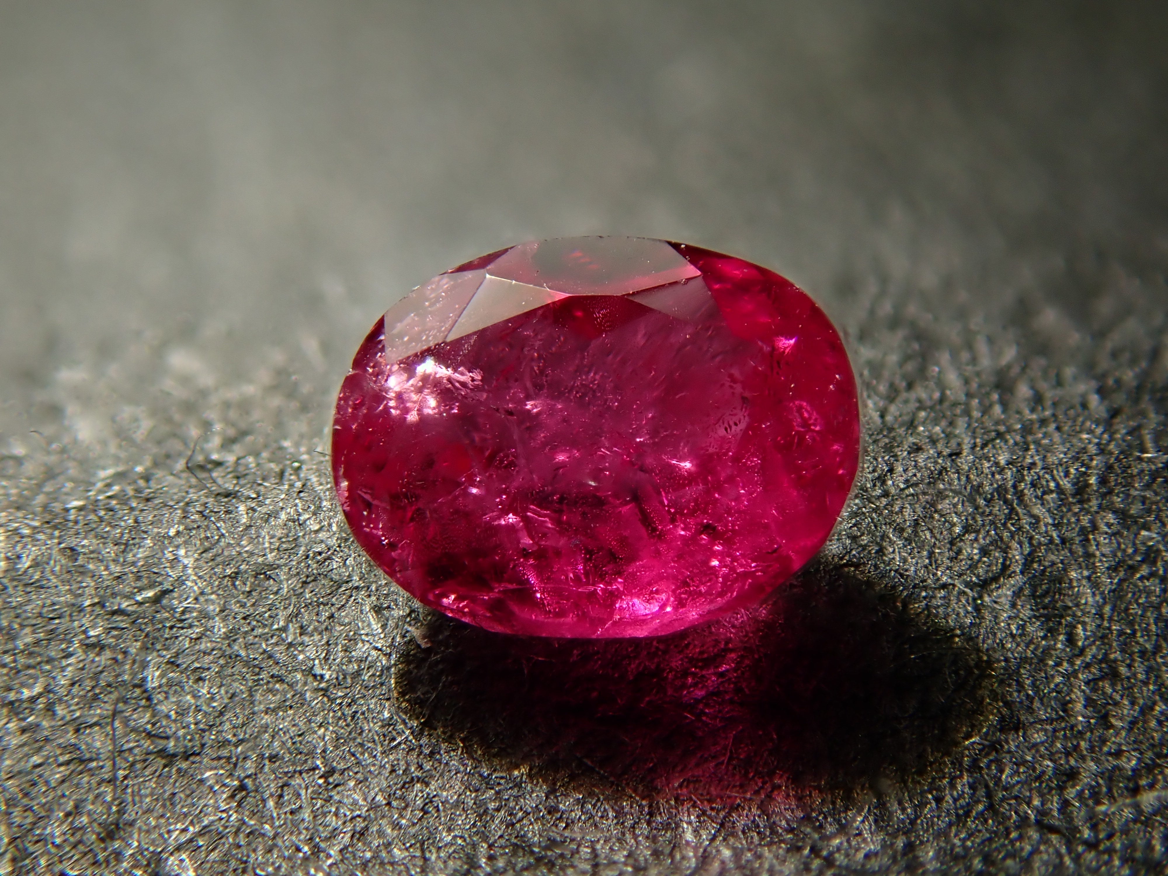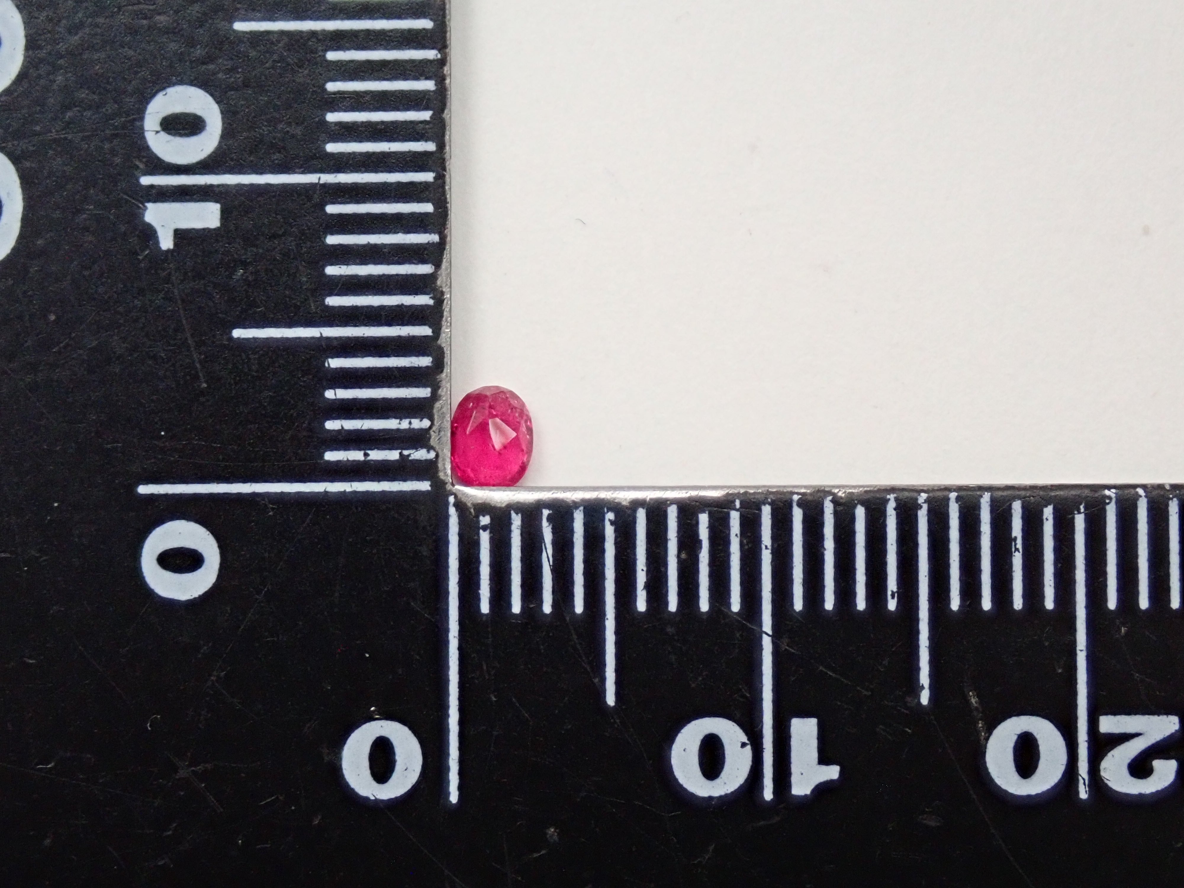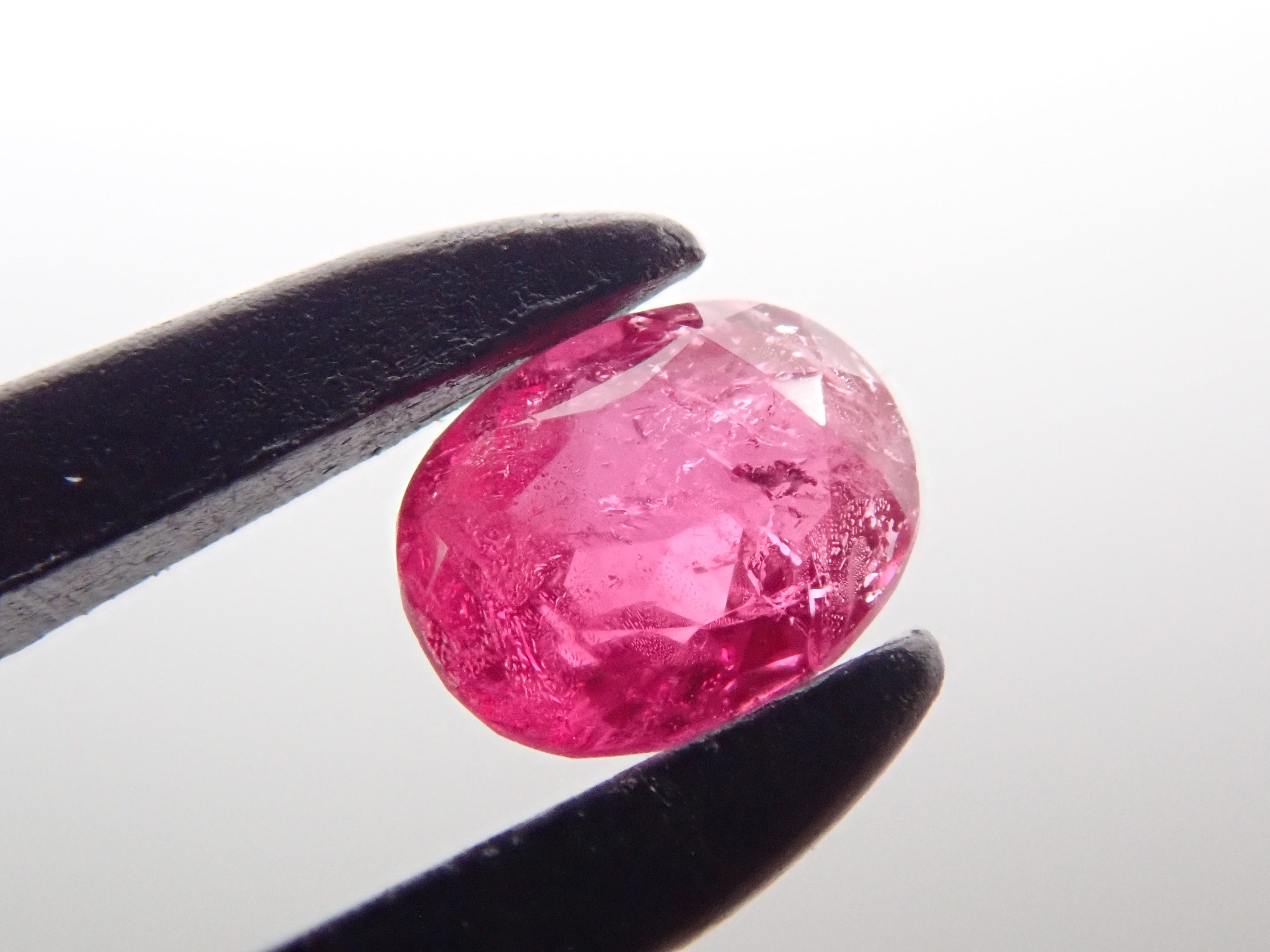 紅色綠柱石作為稀有寶石而聞名。它也被稱為“bixbite”,以發現它的礦物學家 Maynard Bixby 的名字命名。從礦物角度來看,它是綠柱石族的一員,該族還包括祖母綠和海藍寶石。一顆 0.106 克拉的鬆散美國紅色綠柱石,顏色深。這是橢圓形切割。由於放大倍率高達 44 倍,內含物非常明顯,但對於紅色綠柱石來說,內含物是正常的。