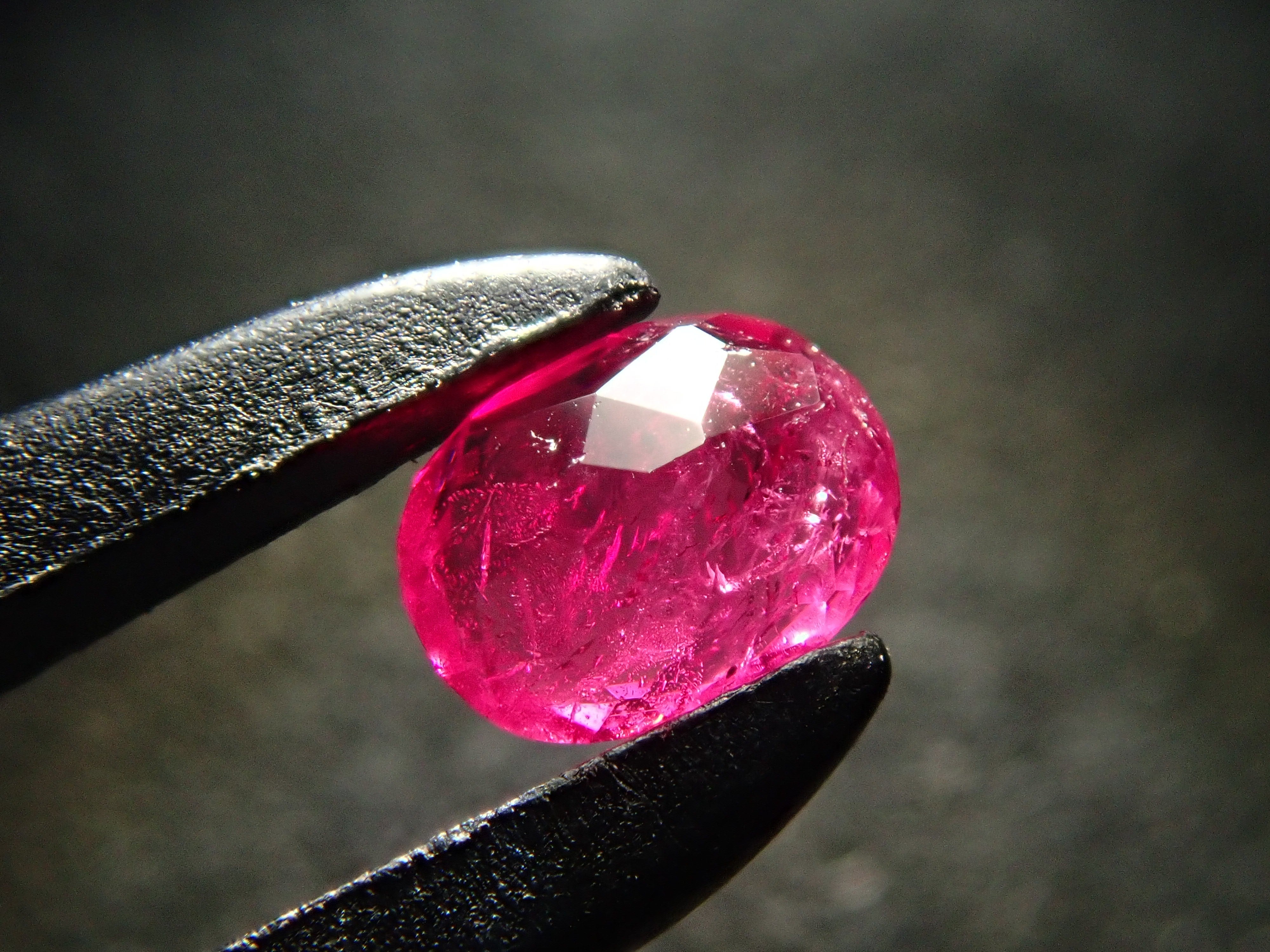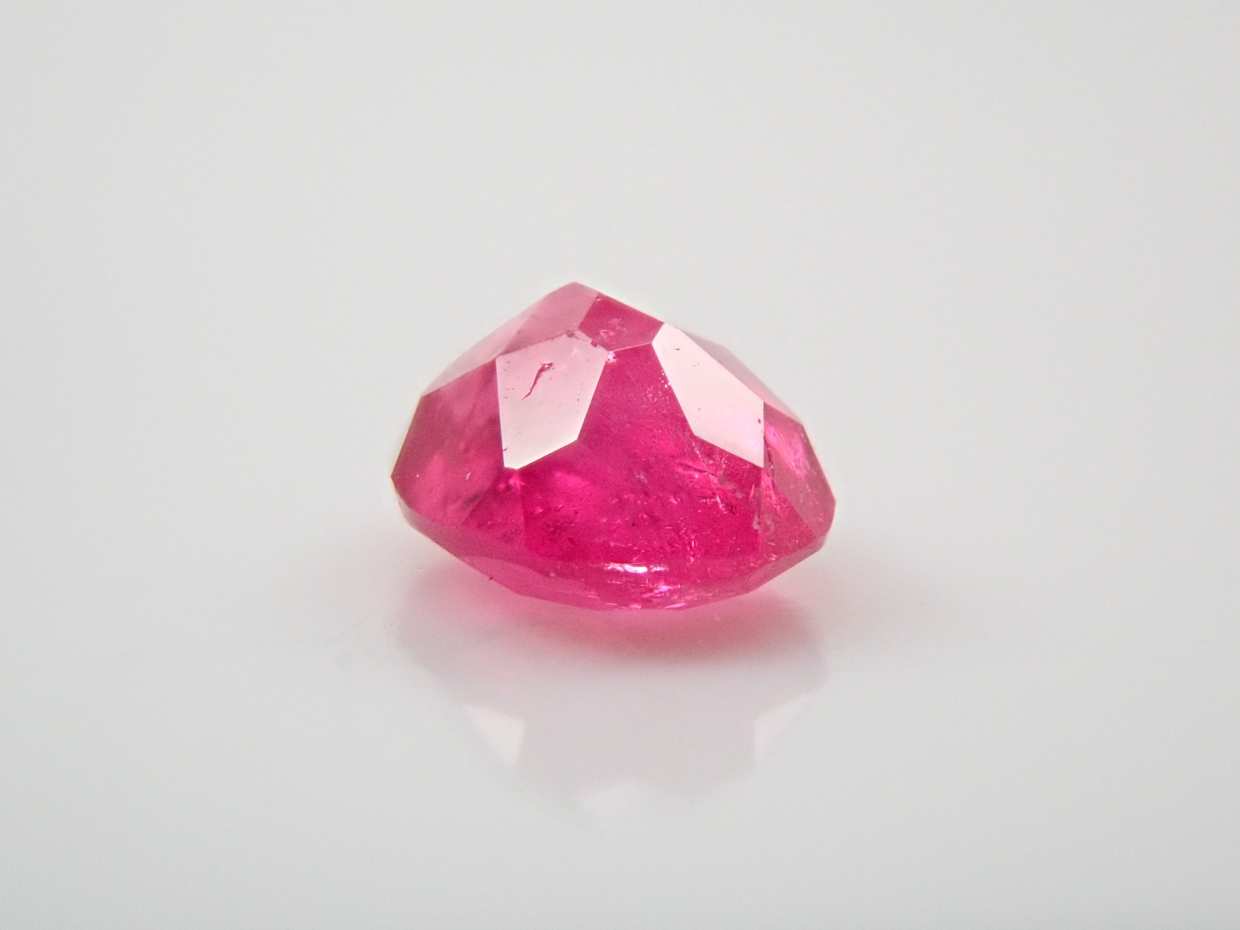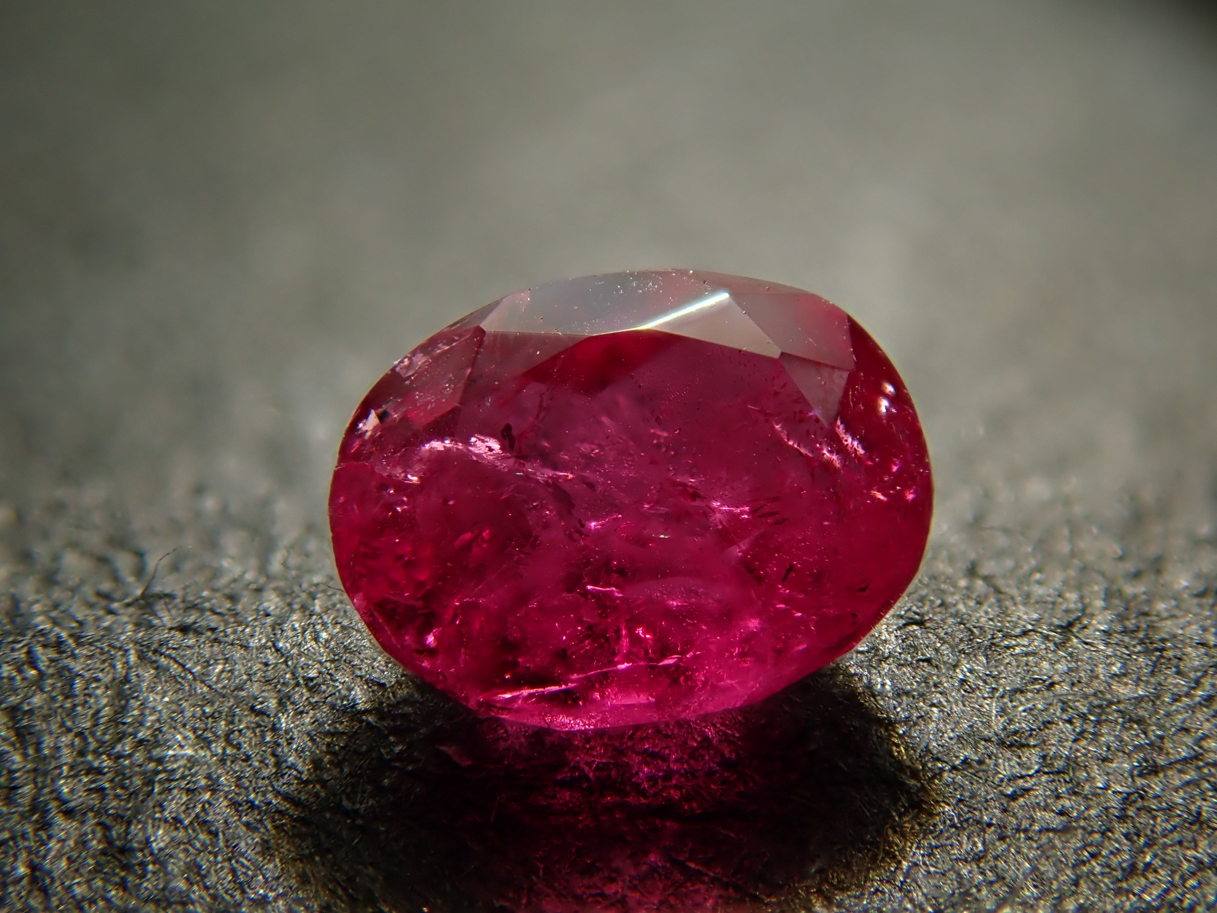 紅色綠柱石作為稀有寶石而聞名。它也被稱為“bixbite”,以發現它的礦物學家 Maynard Bixby 的名字命名。從礦物角度來看,它是綠柱石族的一員,該族還包括祖母綠和海藍寶石。一顆 0.106 克拉的鬆散美國紅色綠柱石,顏色深。這是橢圓形切割。由於放大倍率高達 44 倍,內含物非常明顯,但對於紅色綠柱石來說,內含物是正常的。