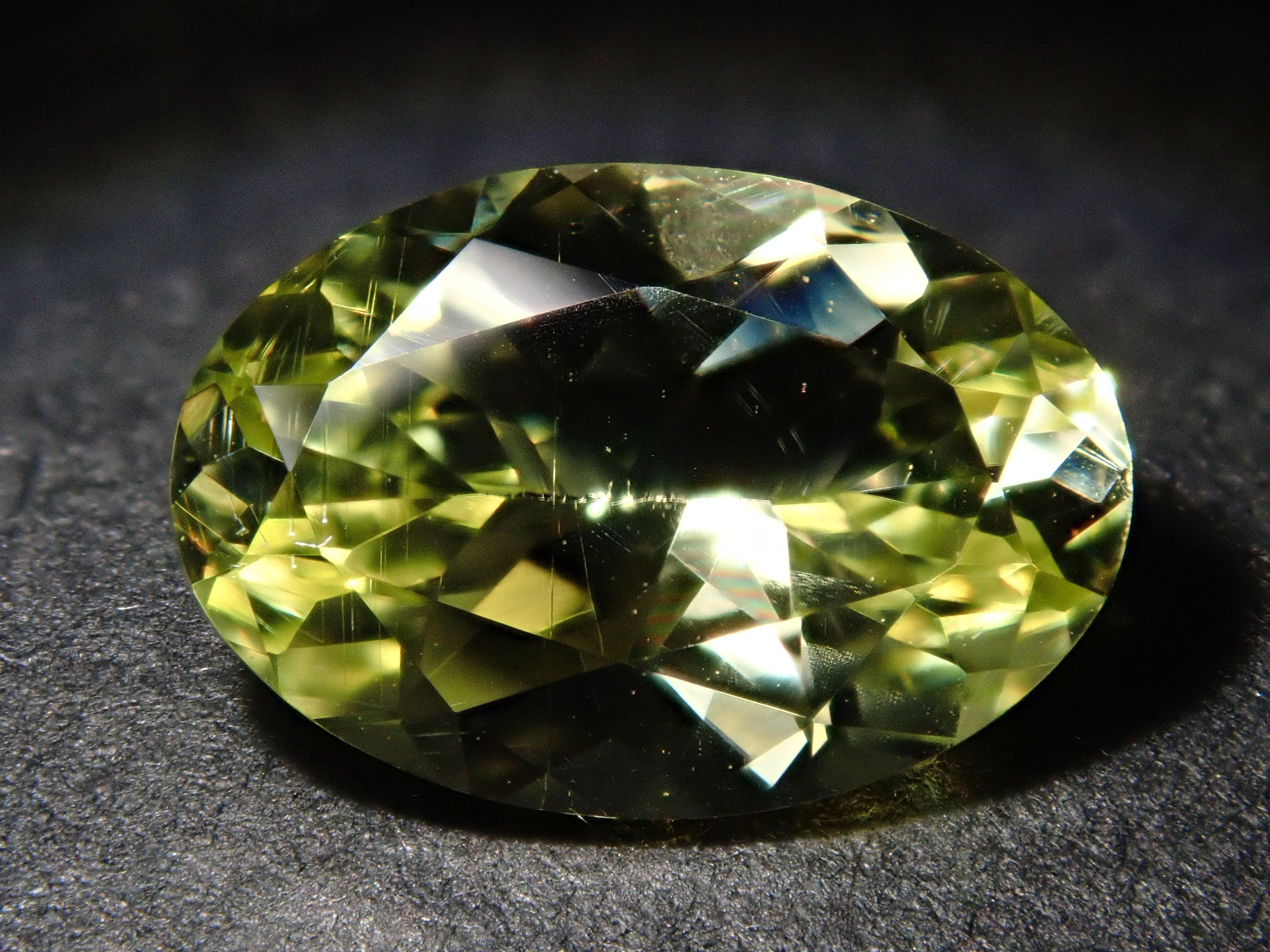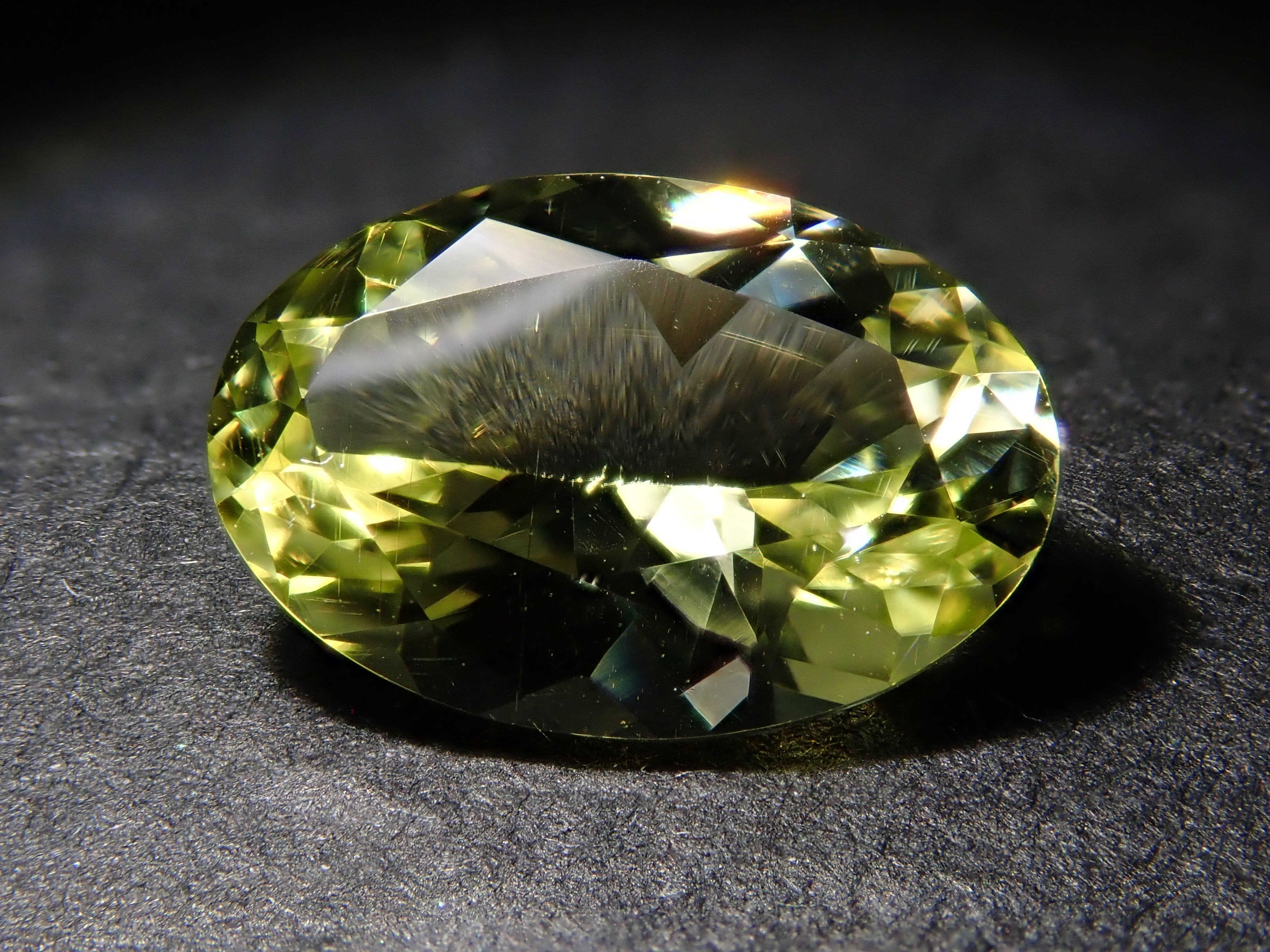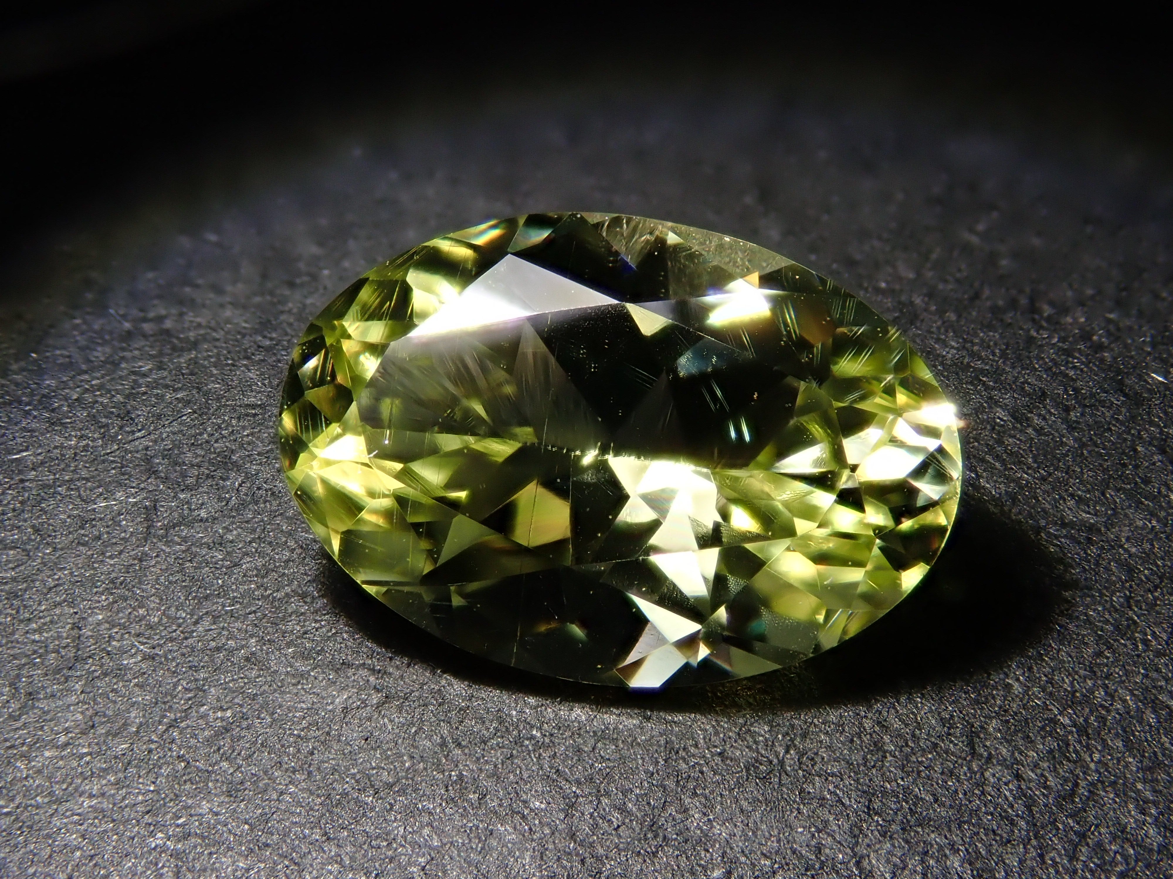 稀有石頭,矽線石。它提供了從透明到半透明的多種表現方式,讓您可以欣賞色彩。透明度高的大顆粒尤其罕見。它的莫氏硬度為6.5-7.5,並不高,並且具有解理特性,使其容易受到某些方向的衝擊,因此用於珠寶時必須小心處理。