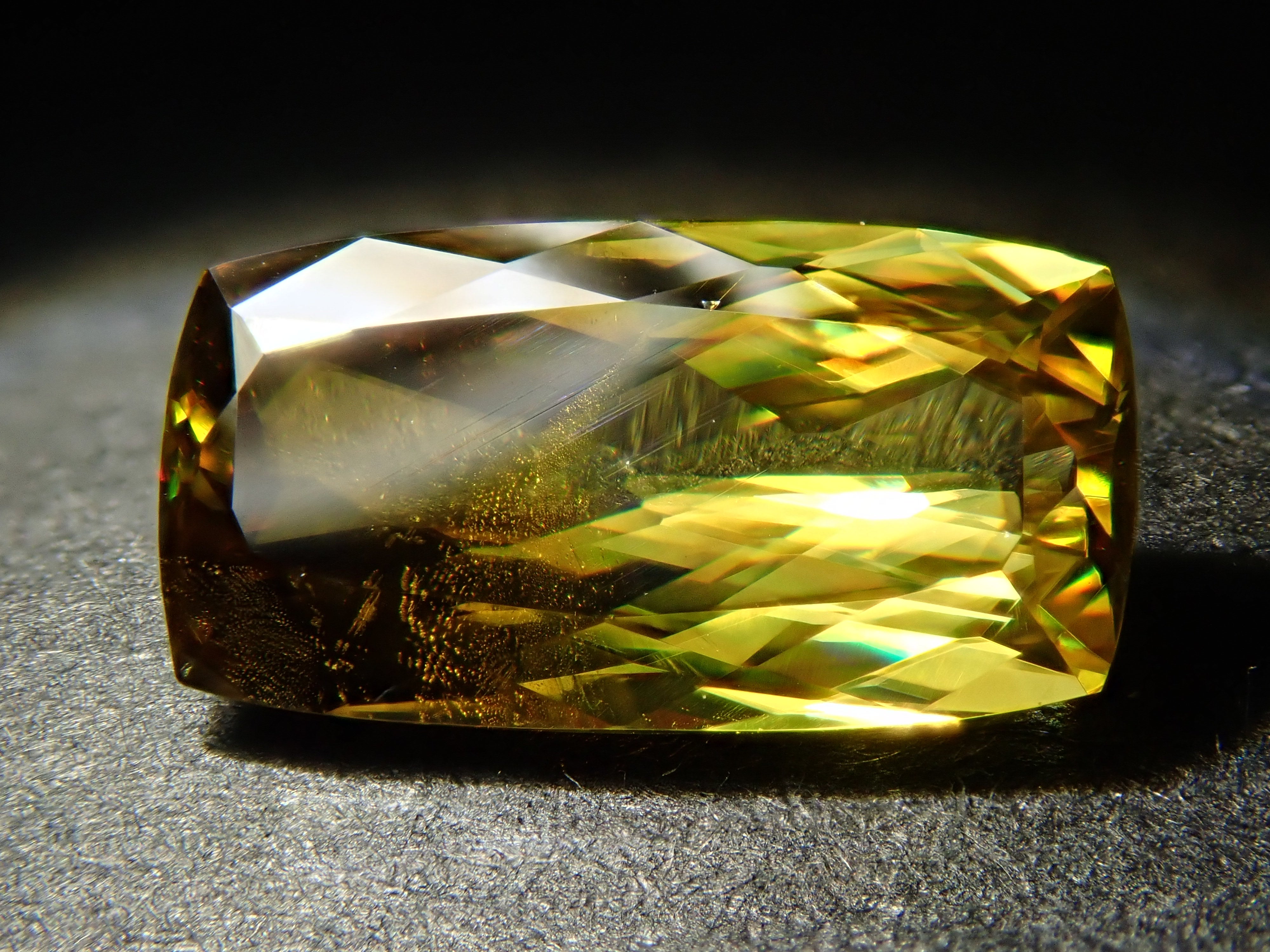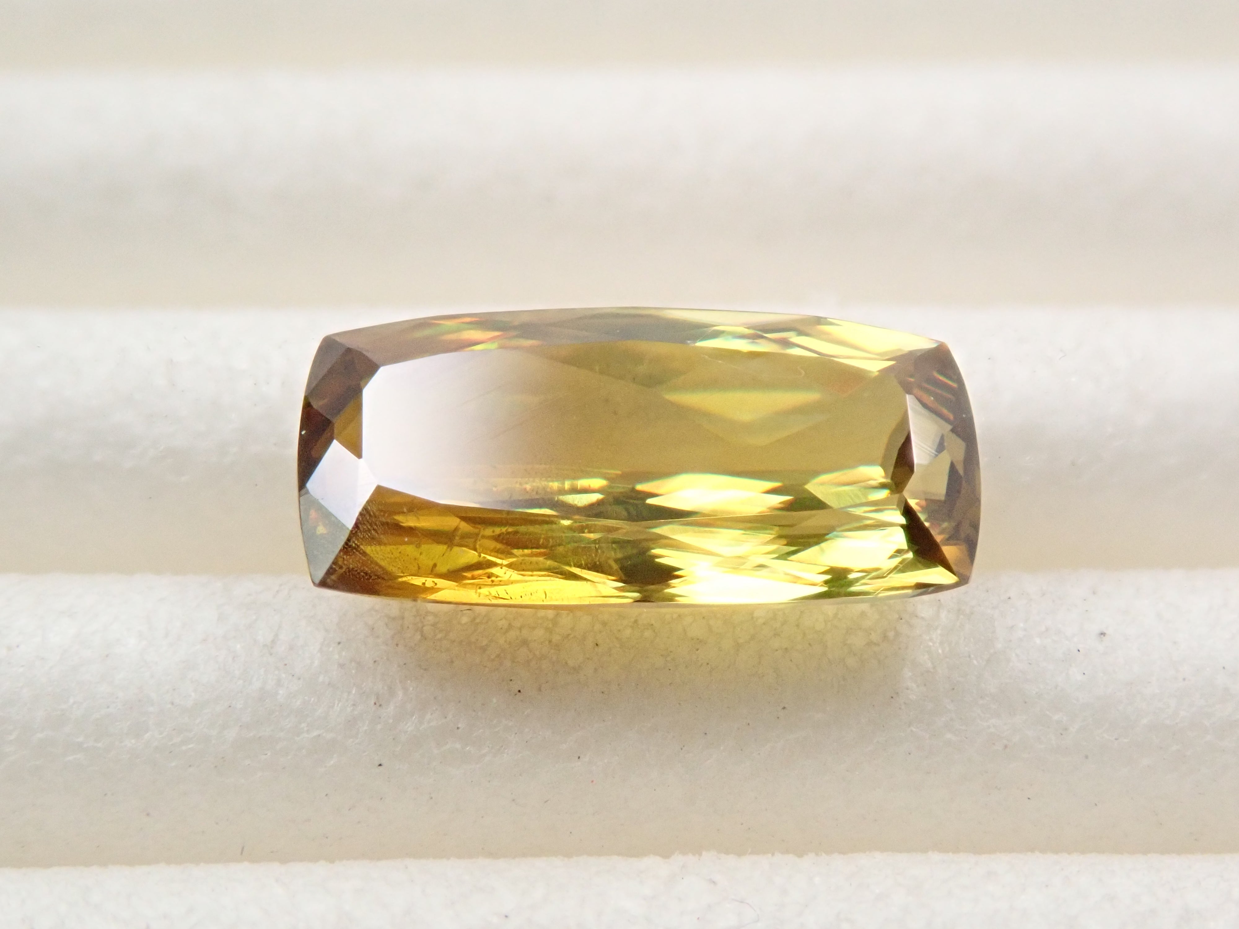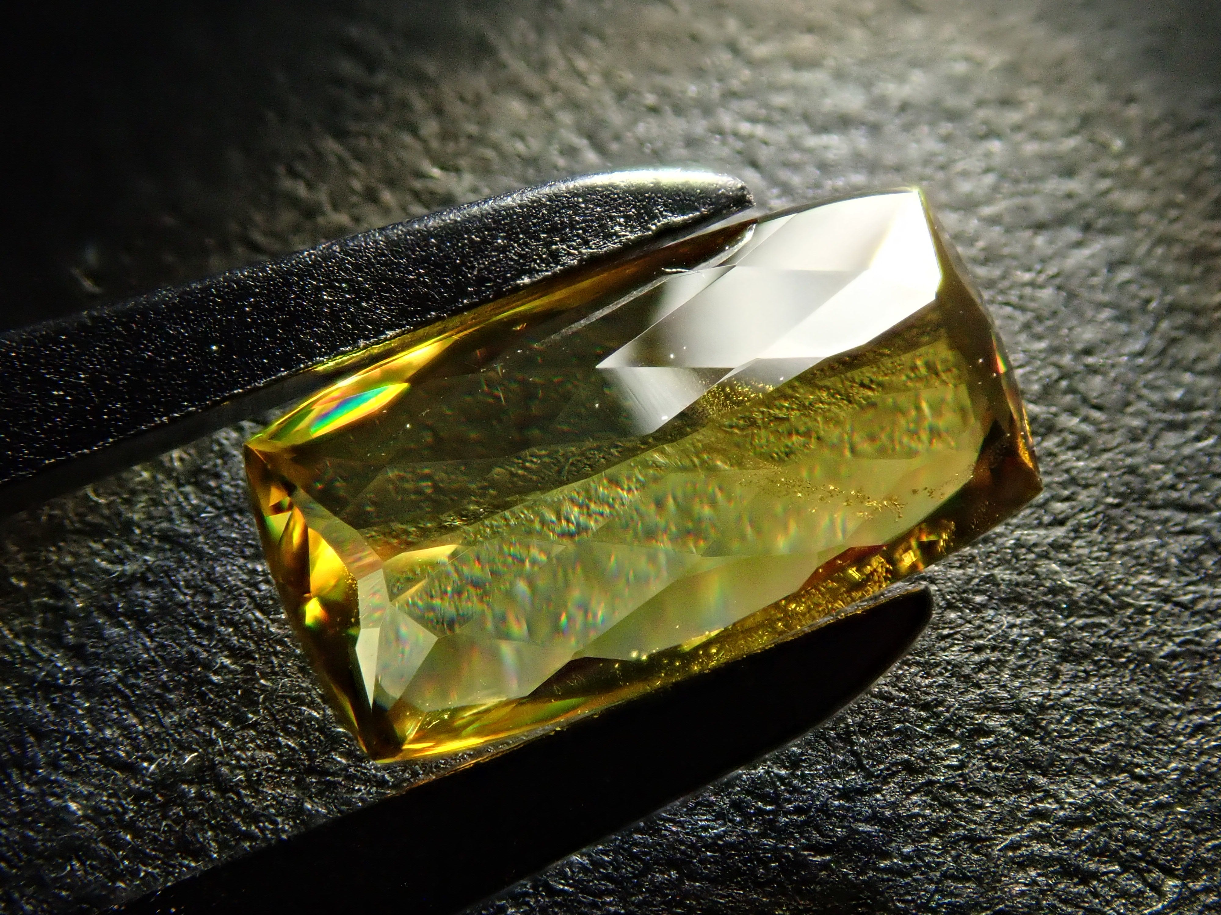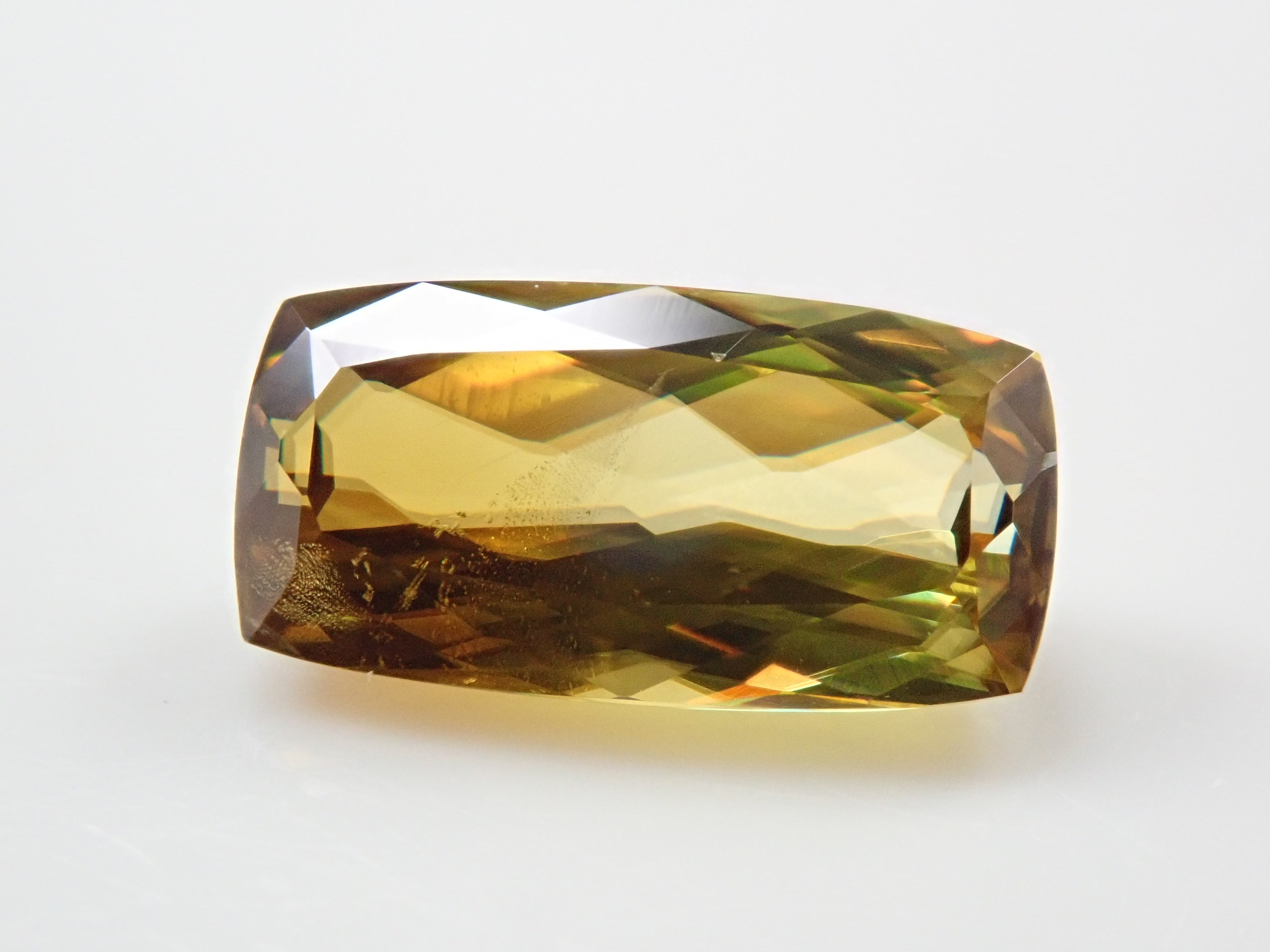 呈現出金色光芒和奢華火焰的榍石。它作為一種有吸引力的寶石而受到收藏家的歡迎,它散發出比鑽石更強大的火彩。輝度隨角度而快速變化的榍石。請在陽光下在手中滾動並觀察。請注意,有些照片是使用筆燈拍攝的。產自馬達加斯加的 1.146 克拉鬆散榍石,透明度高,可讓您充分享受火光。