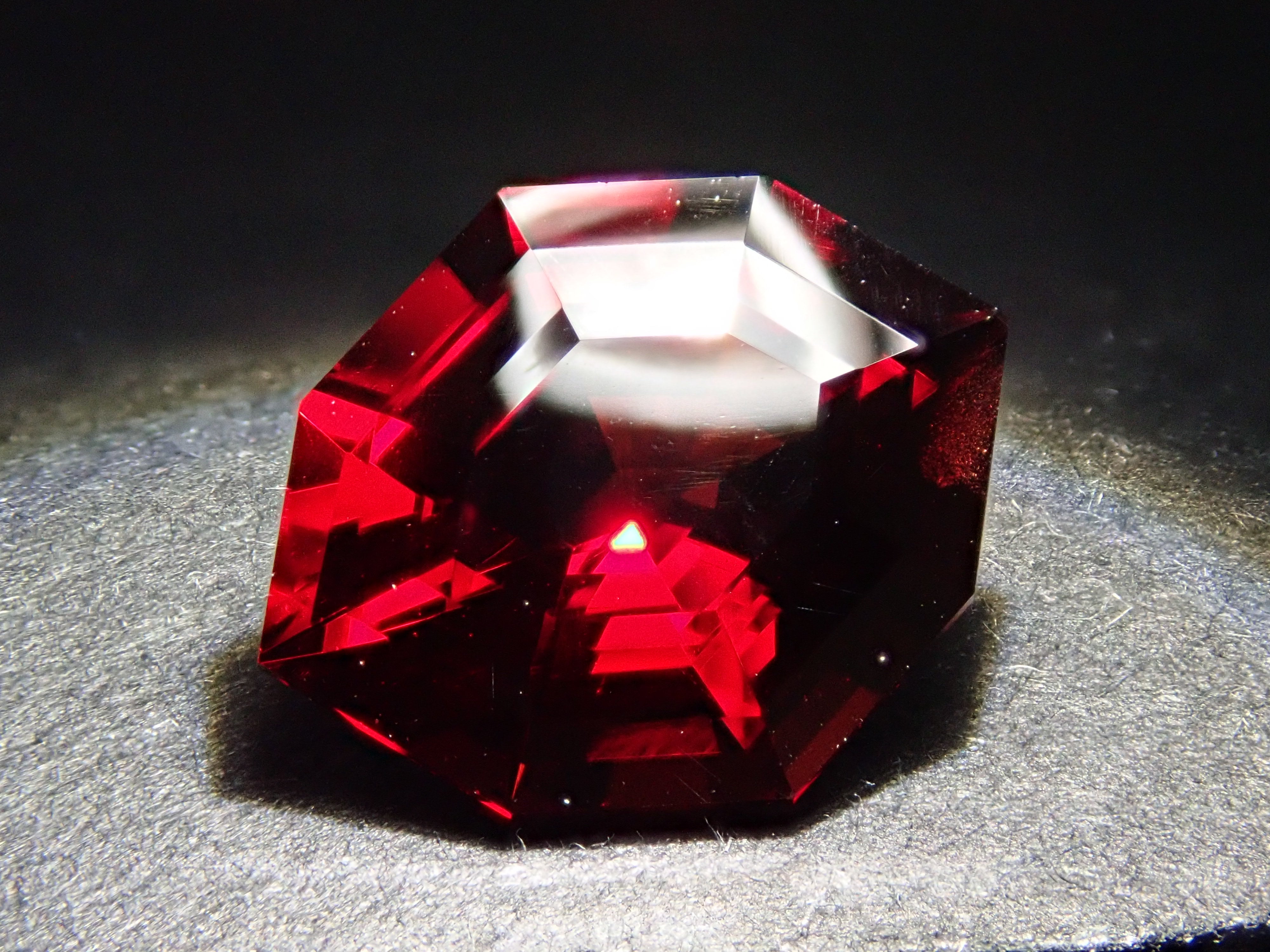 石榴石以一月生日石而聞名。事實上,它是一種有多種顏色的石頭,如紅色、黃色、橙色和綠色。其中,最受歡迎的紅色石榴石就是這種「鐵鋁榴石」。它的特徵是深紅色。 2.700 克拉鐵鋁榴石散切石,由斯里蘭卡拋光師 Sanjay 出品。