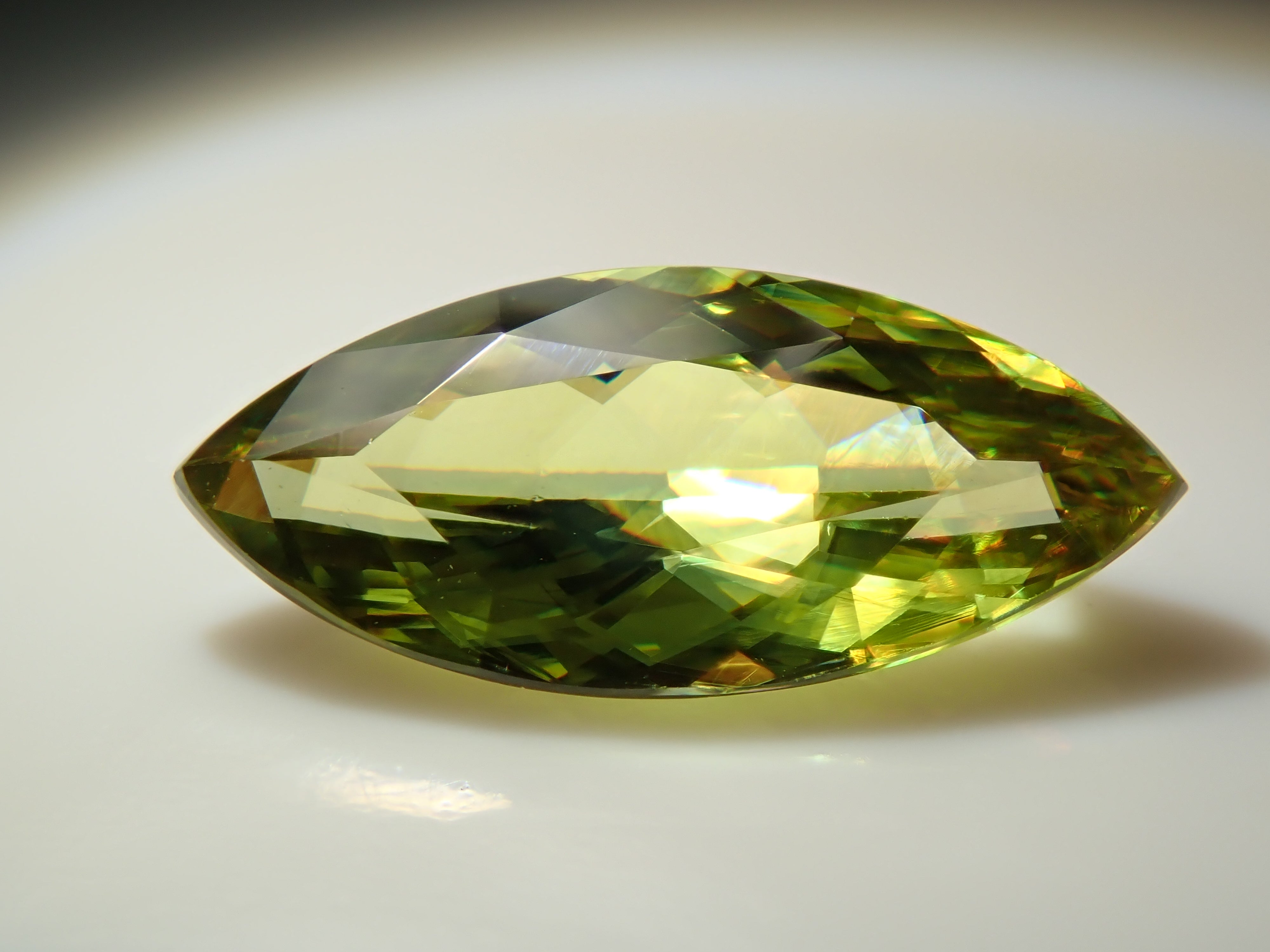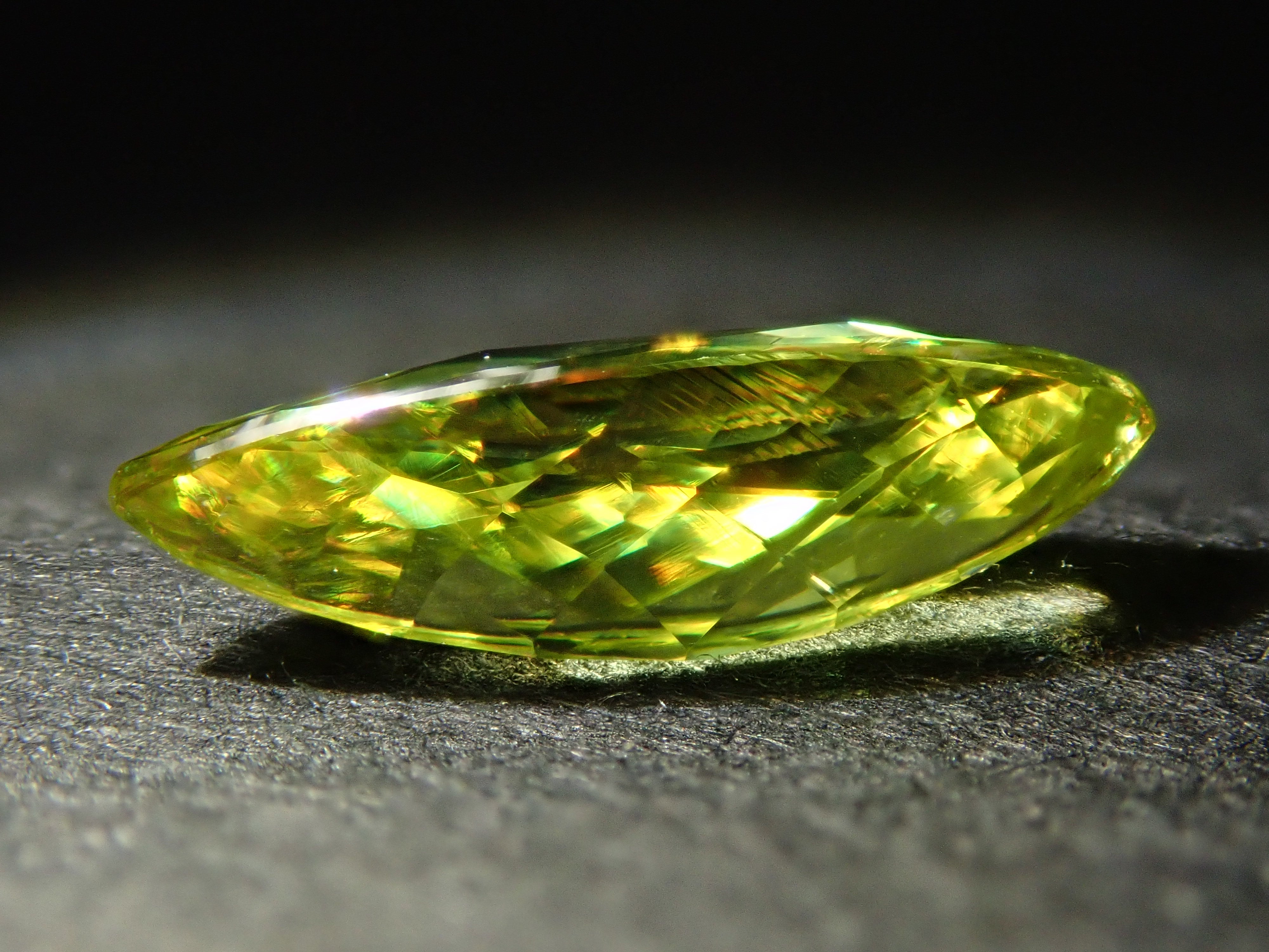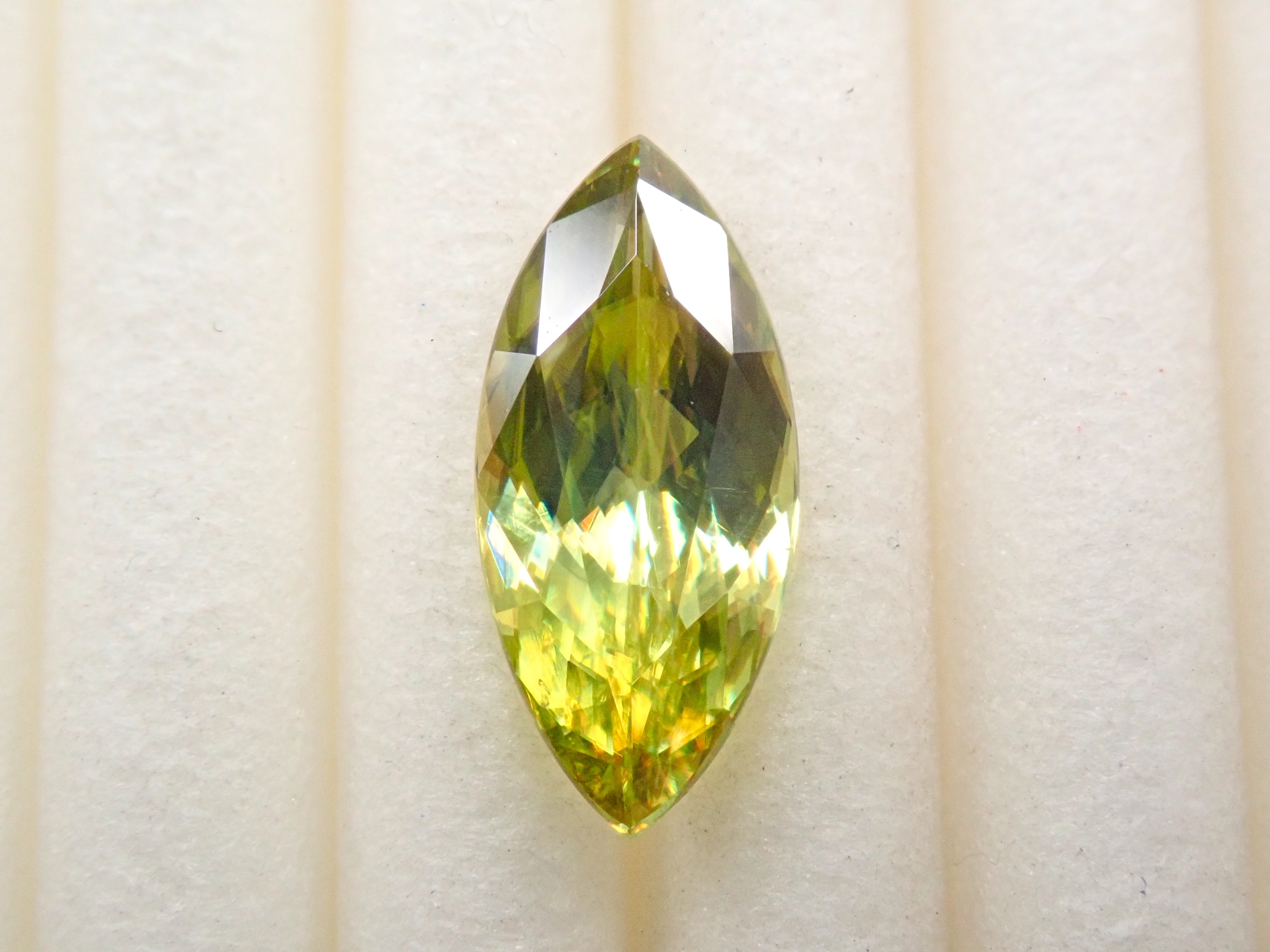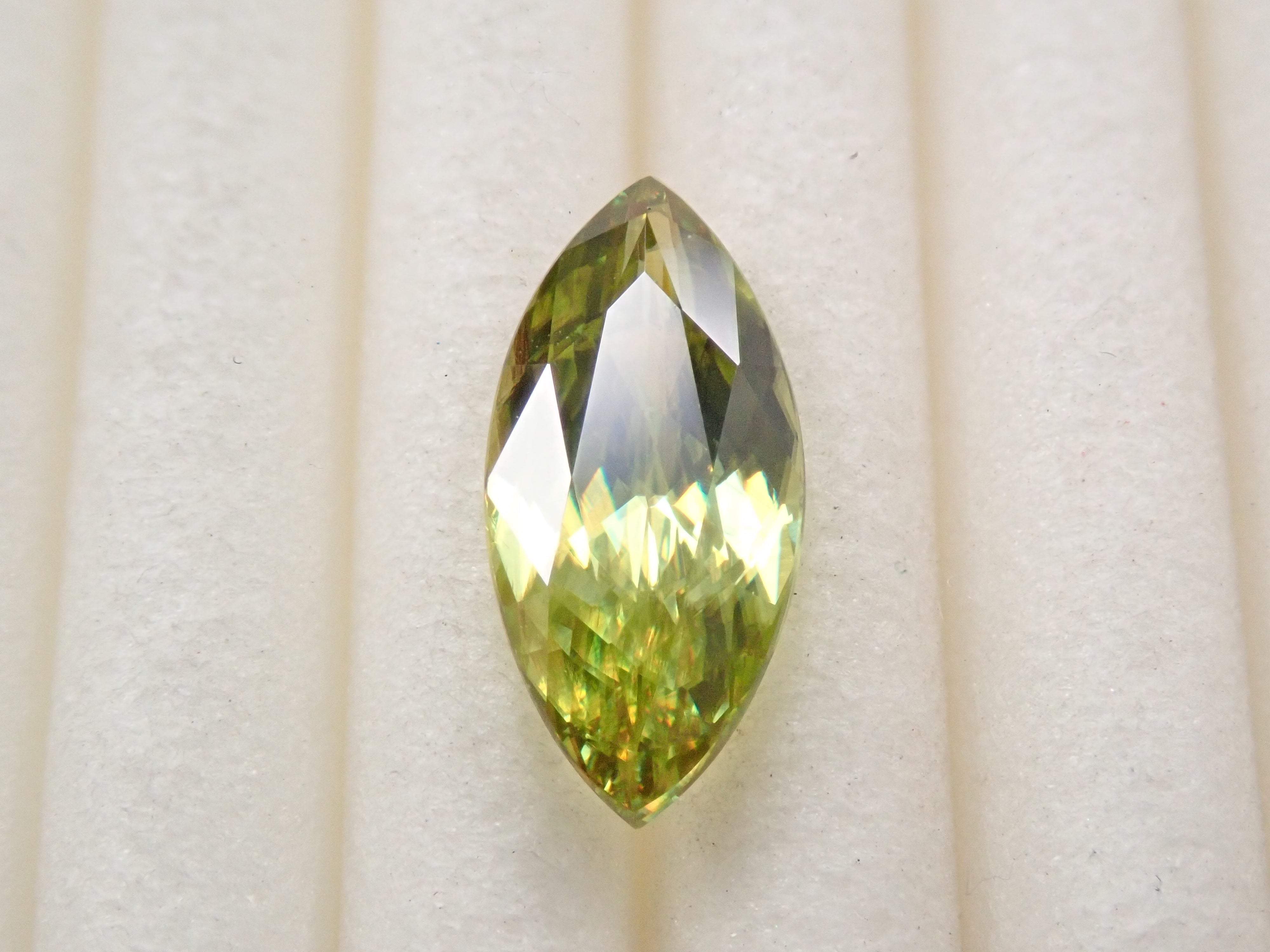 呈現出金色光芒和奢華火焰的榍石。它作為一種有吸引力的寶石而受到收藏家的歡迎,它散發出比鑽石更強大的火彩。輝度隨角度而快速變化的榍石。請在陽光下在手中滾動並觀察。請注意,有些照片是使用筆燈拍攝的。
