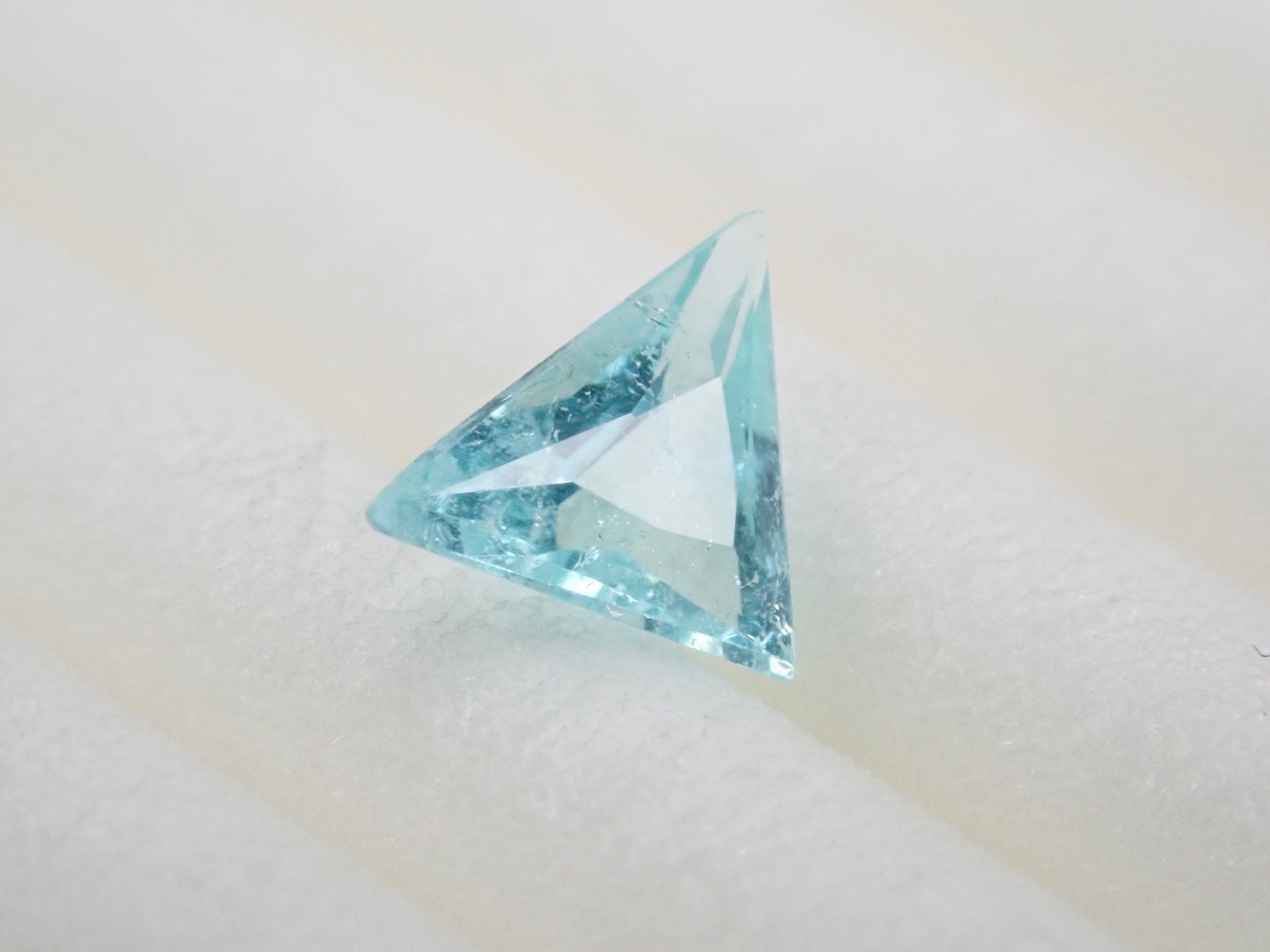 帕拉伊巴碧璽有著不同於大海的藍色或天空的藍色的精緻色彩。它在日本的定義是“含有銅的藍色到綠色碧璽(無論產地)。”它是一種非常受歡迎的寶石。產自莫三比克的三角形切割帕拉伊巴碧璽 0.171 克拉裸石。