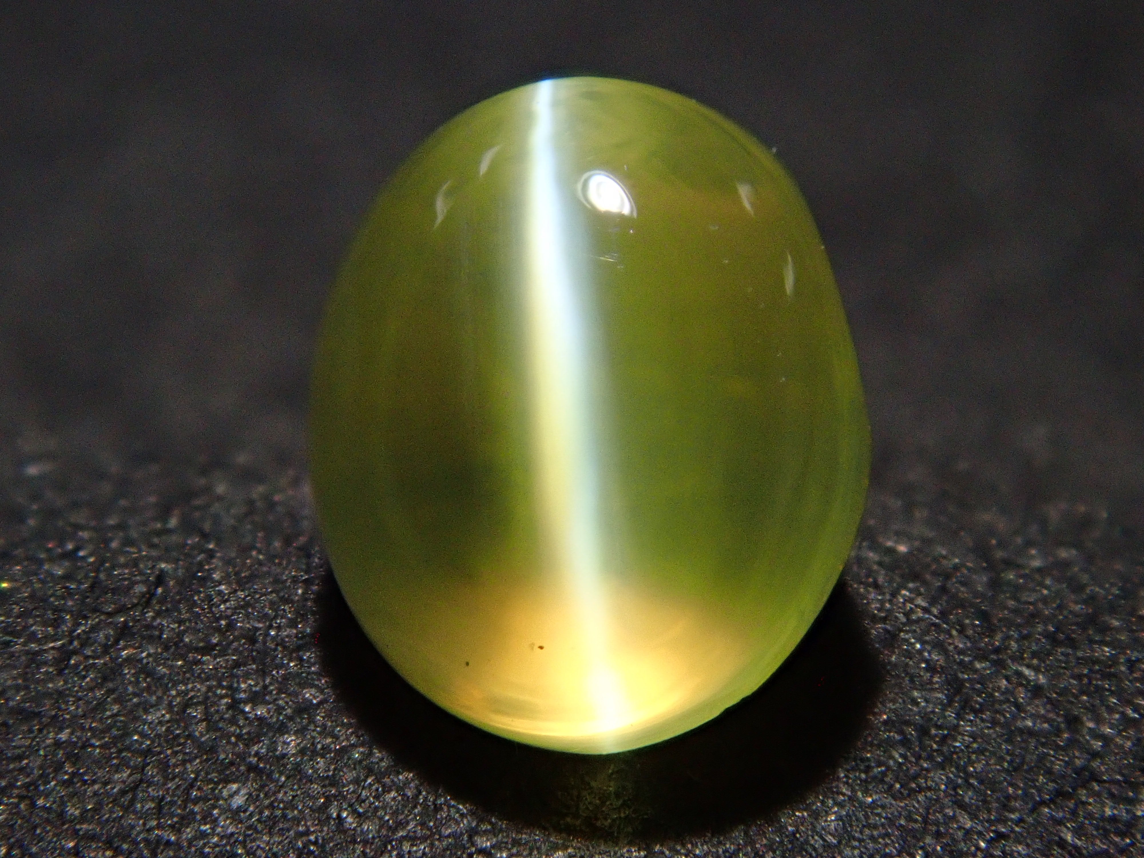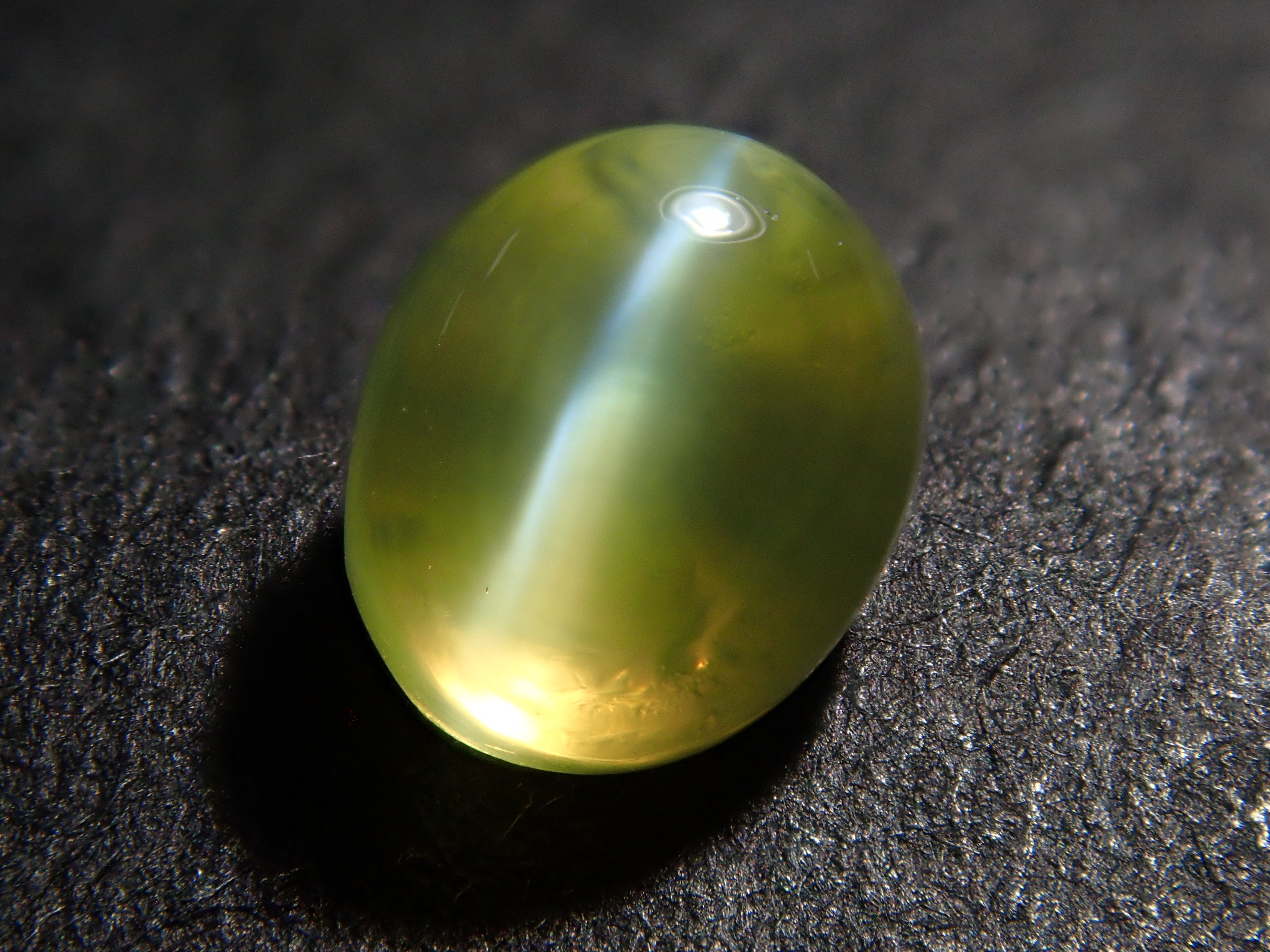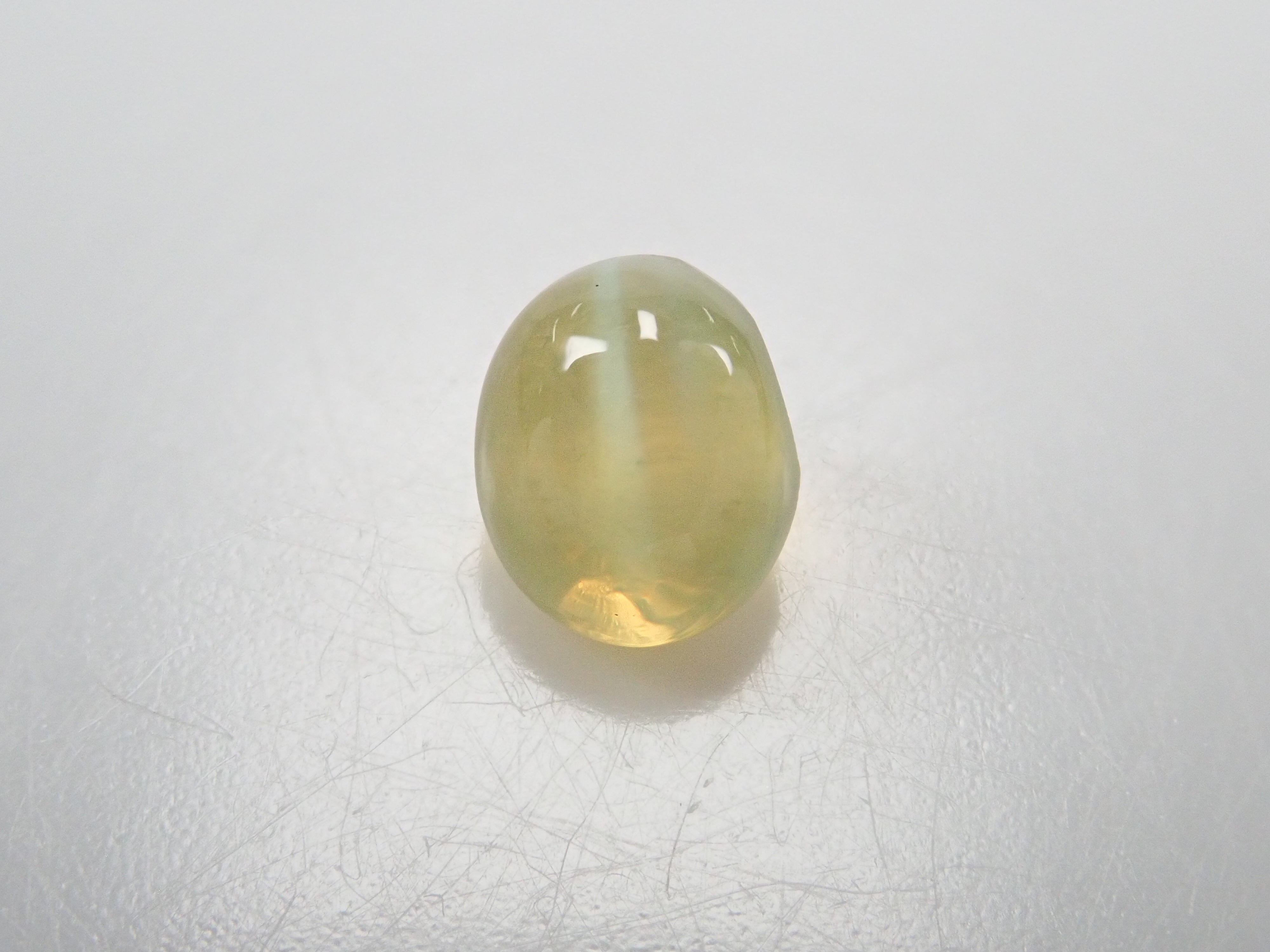 金綠寶石是一種有多種色調的寶石,從淺黃色到綠色再到深棕色。它是一種堅硬耐用的寶石。這是可以看到貓眼效果的類型,使用筆燈拍攝。石頭的背面基本上是未拋光的。金綠寶石貓眼石 0.556 克拉原石,產自斯里蘭卡,透明度高。