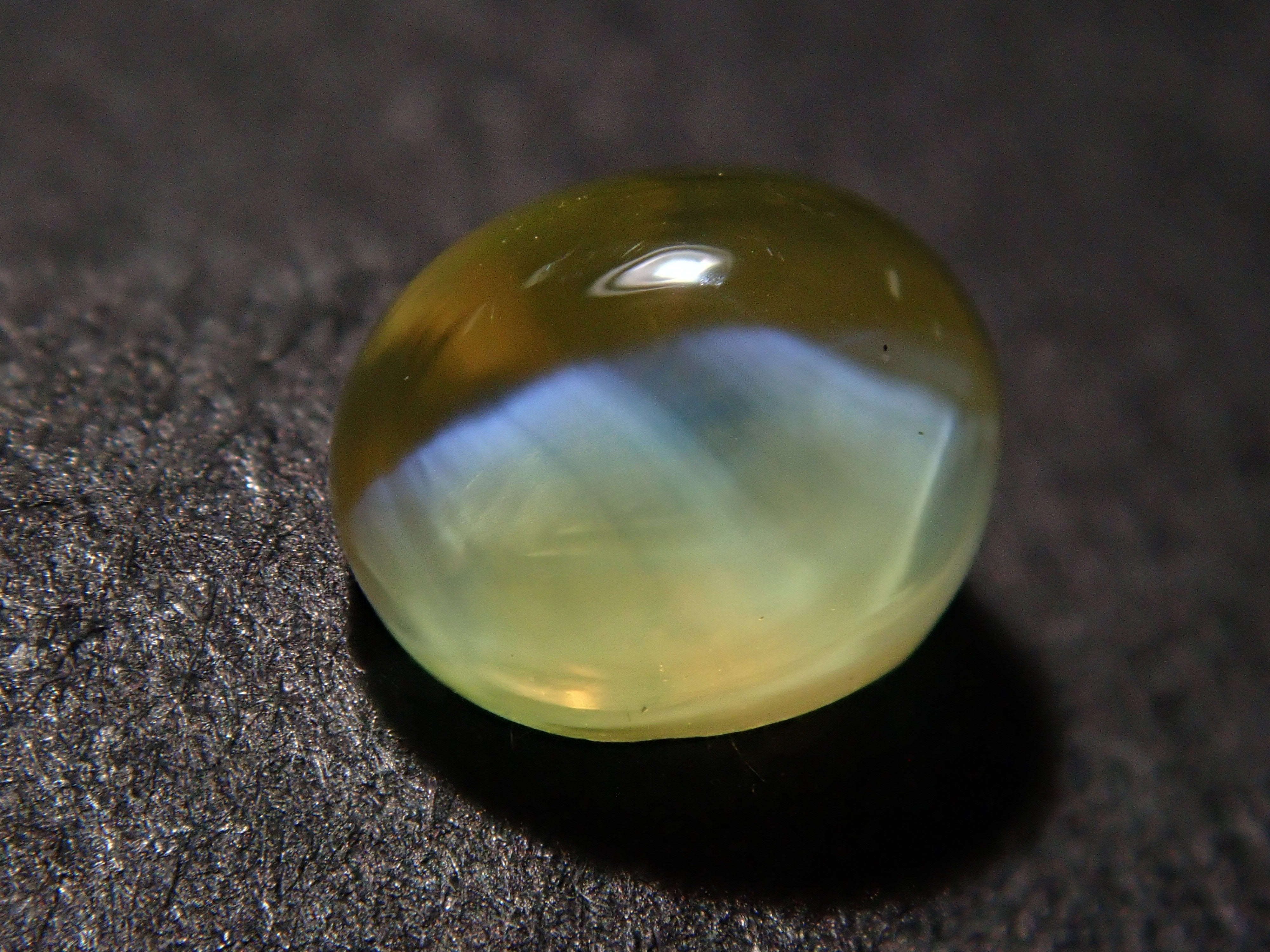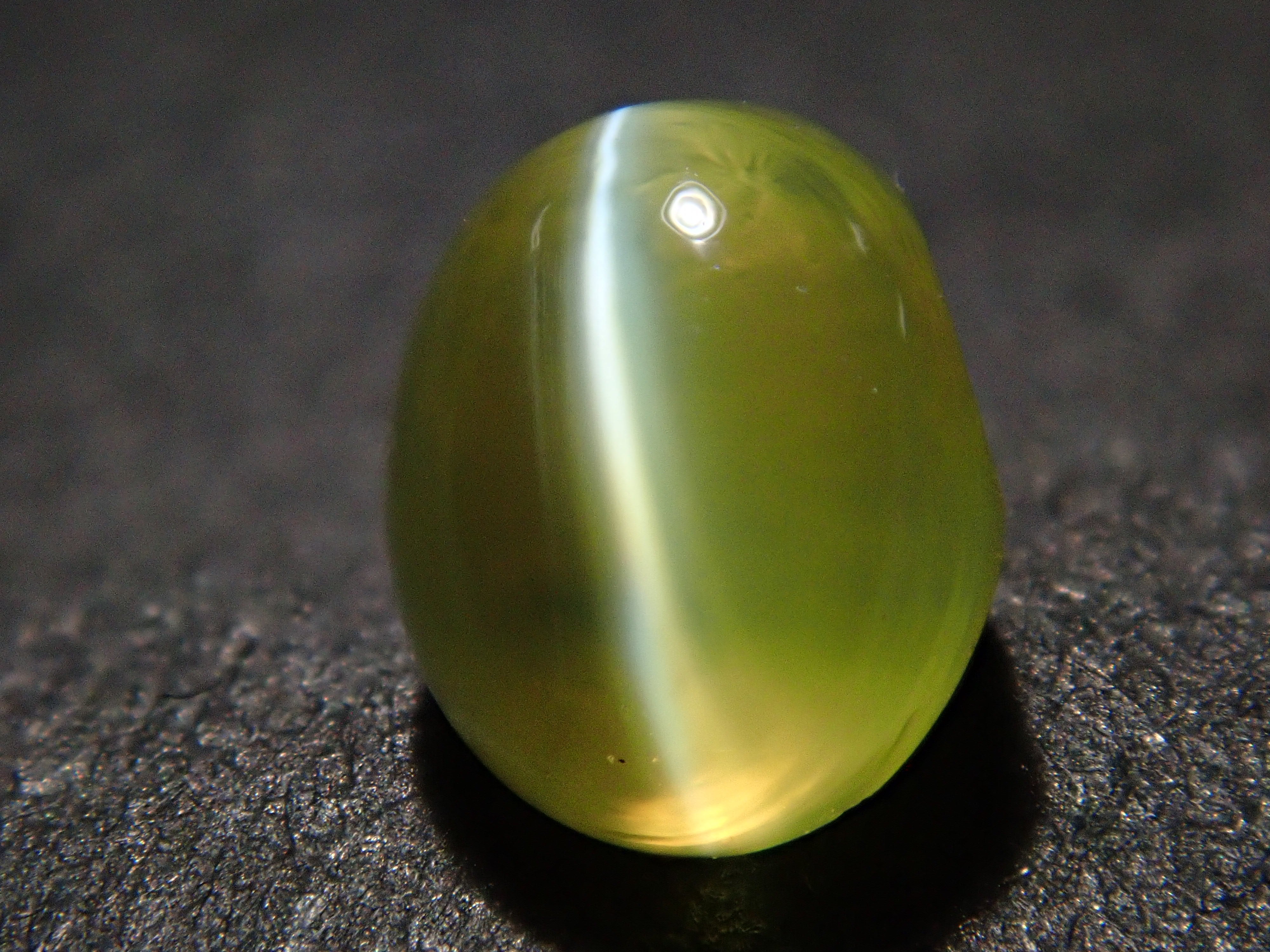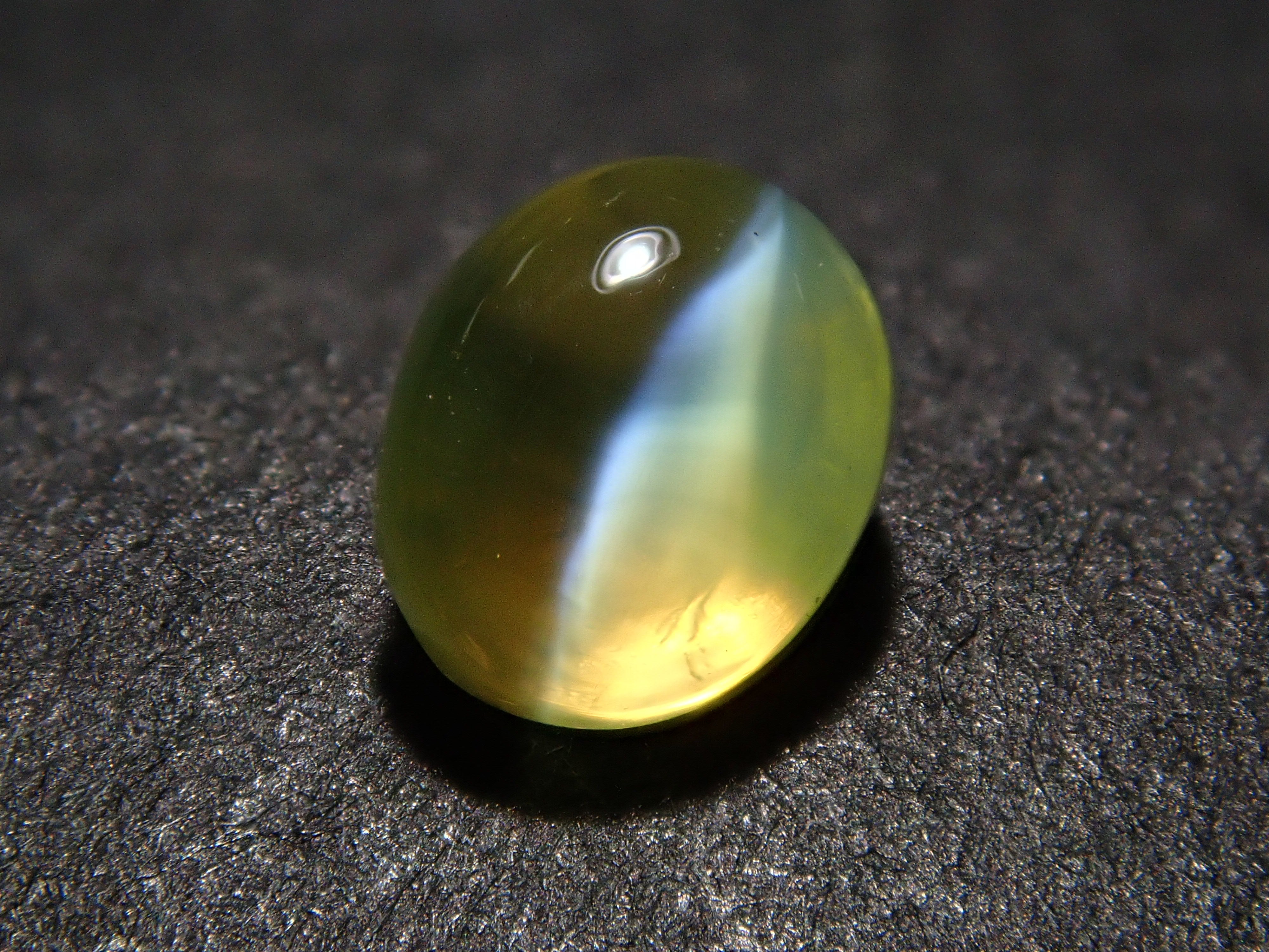 金綠寶石是一種有多種色調的寶石,從淺黃色到綠色再到深棕色。它是一種堅硬耐用的寶石。這是可以看到貓眼效果的類型,使用筆燈拍攝。石頭的背面基本上是未拋光的。金綠寶石貓眼石 0.556 克拉原石,產自斯里蘭卡,透明度高。