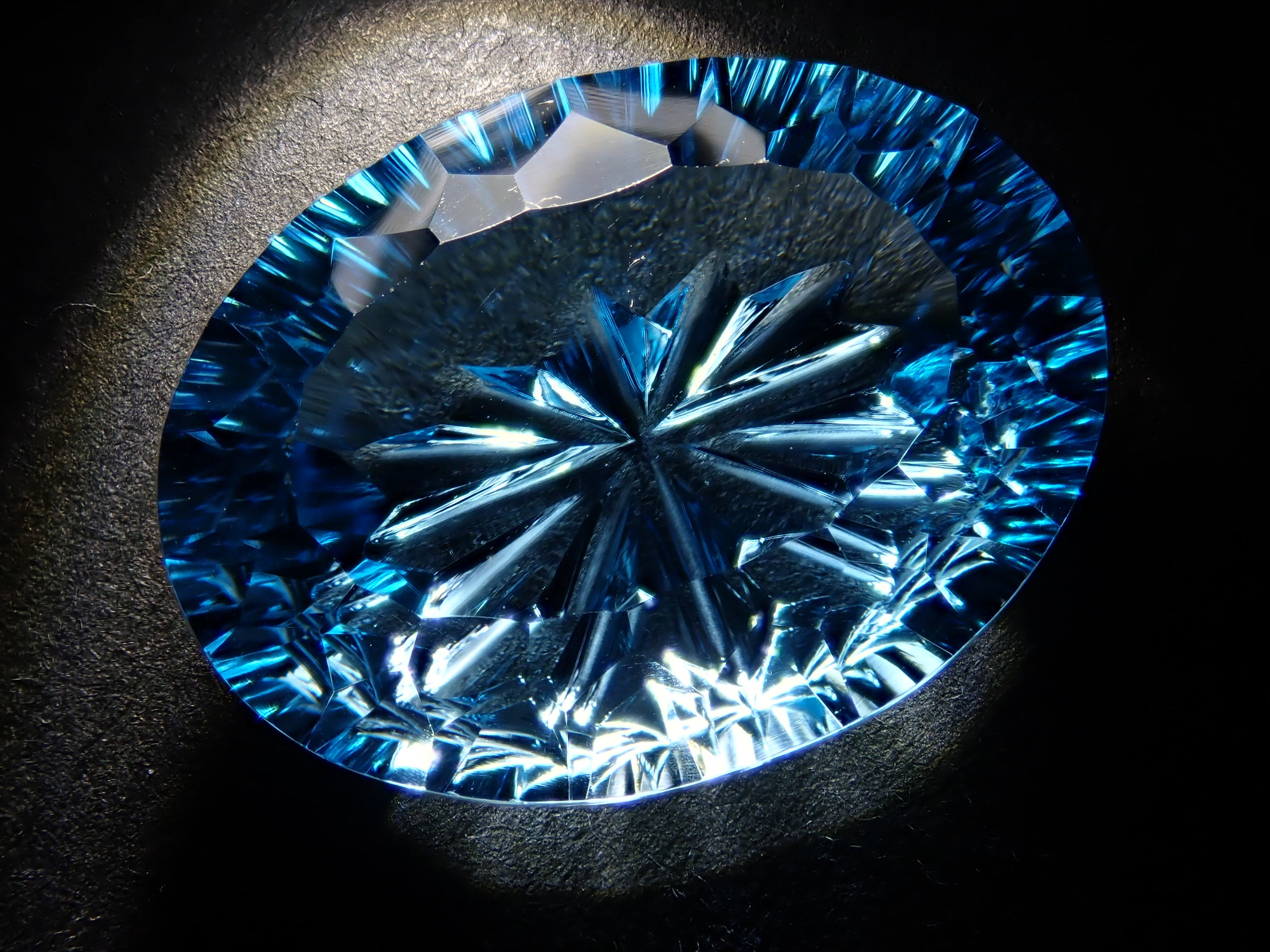 藍色托帕石具有迷人的藍色,是托帕石豐富的顏色變化中最受歡迎的顏色之一。其中,「瑞士藍托帕石」與這塊裸石一樣,是一種深邃而鮮豔的藍色寶石。