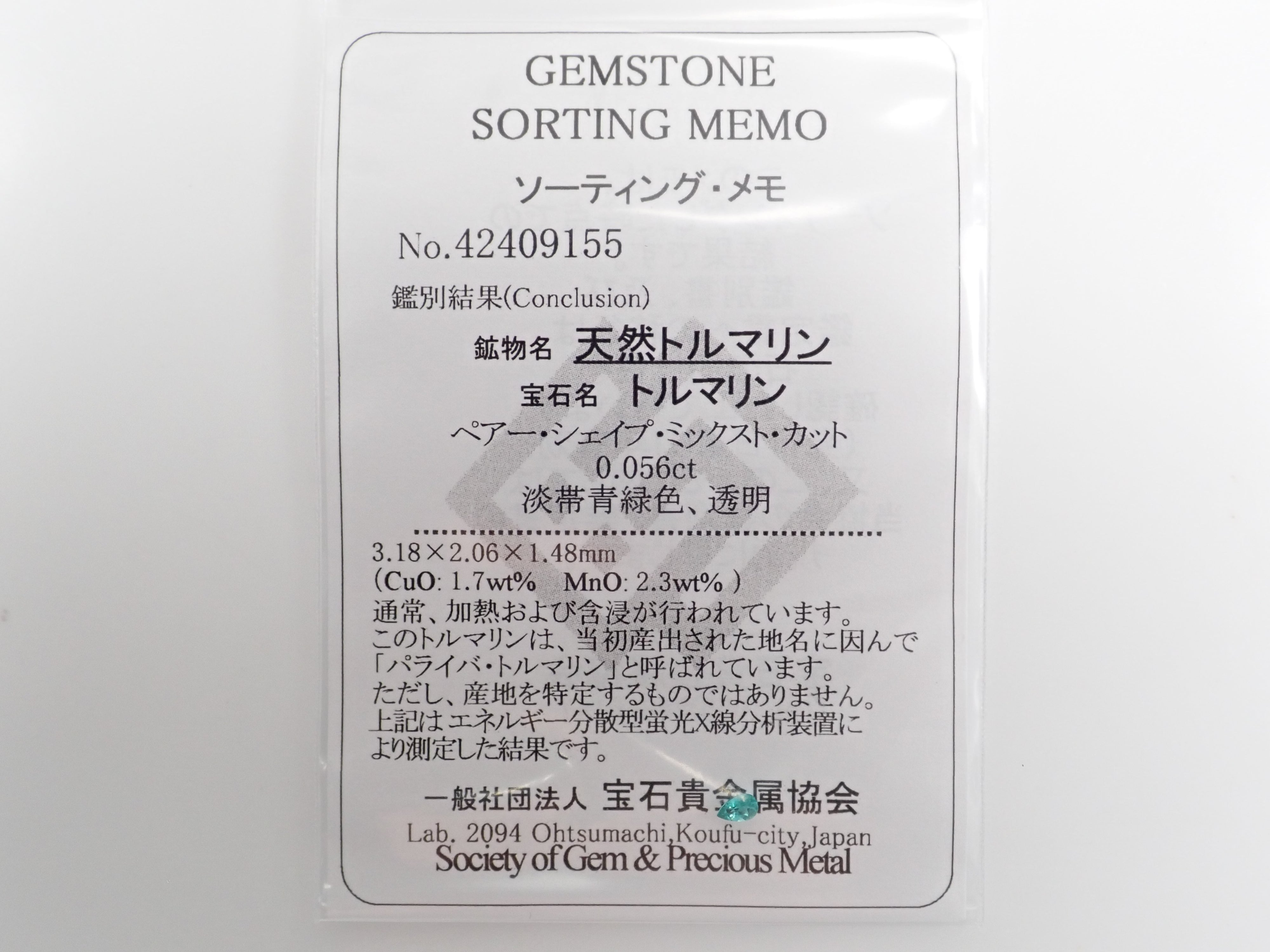 來自巴西的未加熱帕拉伊巴碧璽 0.056 克拉散裝(CuO:1.7%,MnO:2.3%)