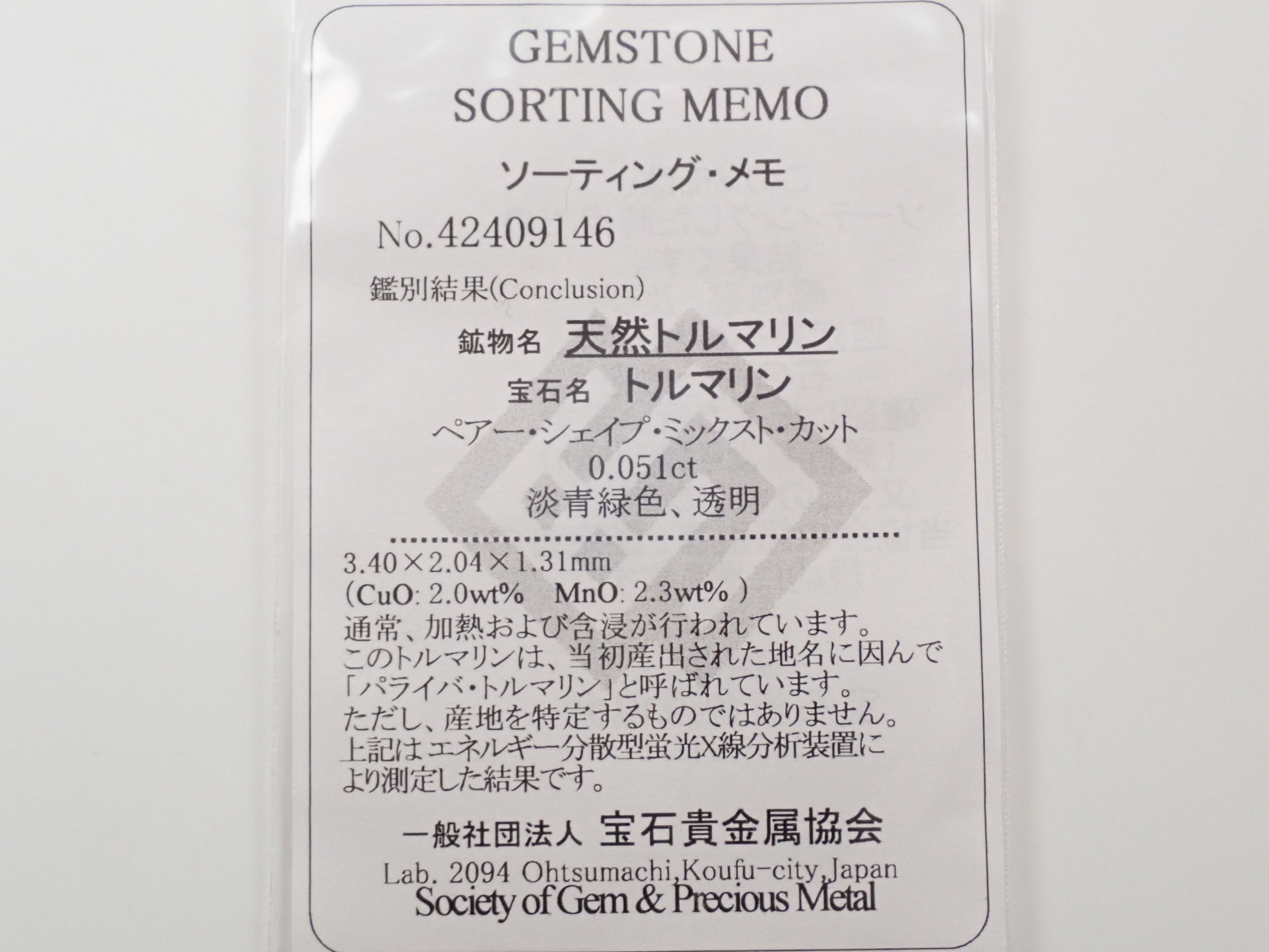 未經加熱的巴西帕拉伊巴碧璽 0.051 克拉散裝(CuO:2.0%,MnO:2.3%)