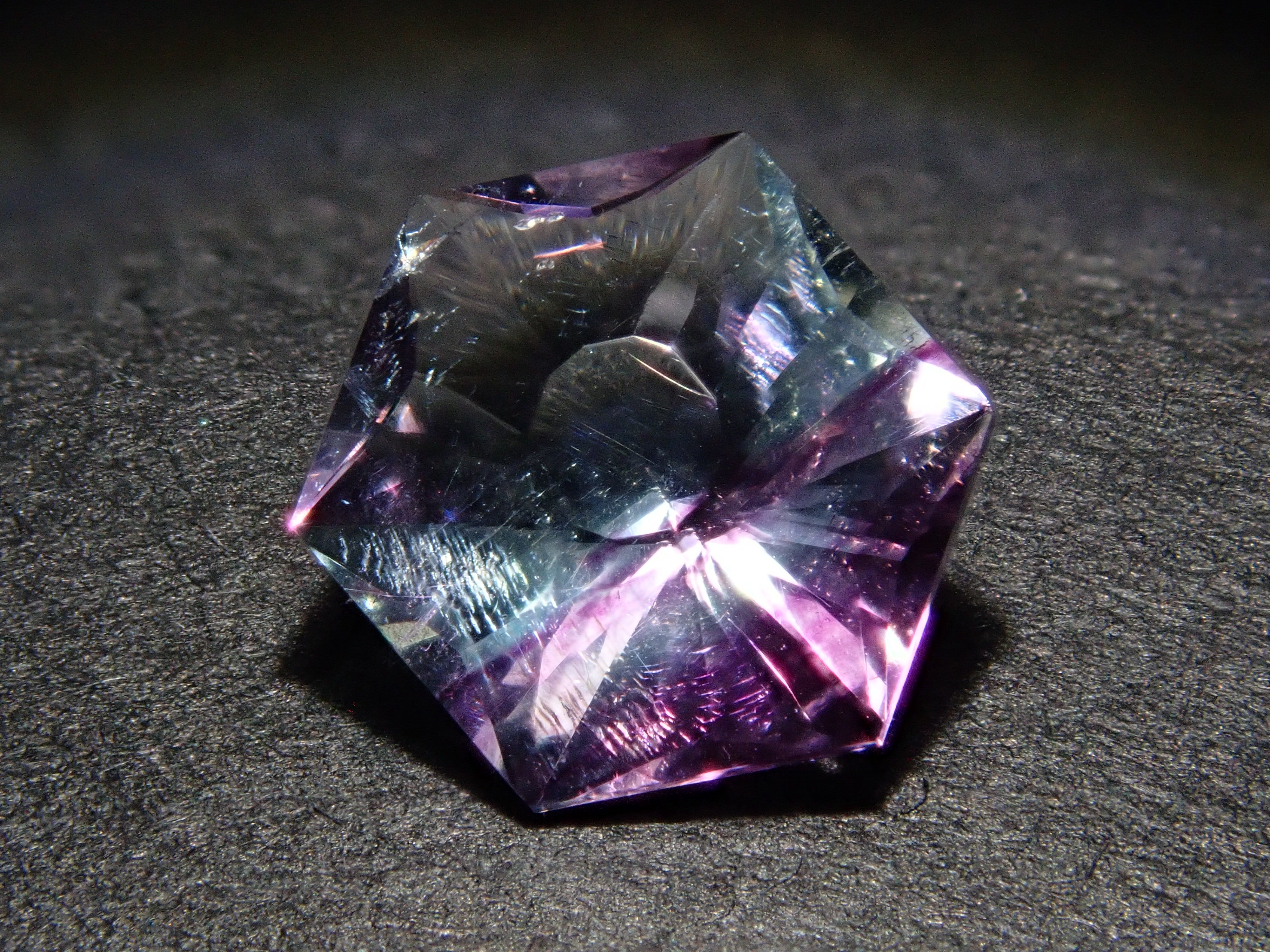 螢石因其豐富的色彩而備受收藏家青睞。這是一種雙色螢石。它的日文名稱為“Fluorite”,源自拉丁語,意為“熔化、流動”。