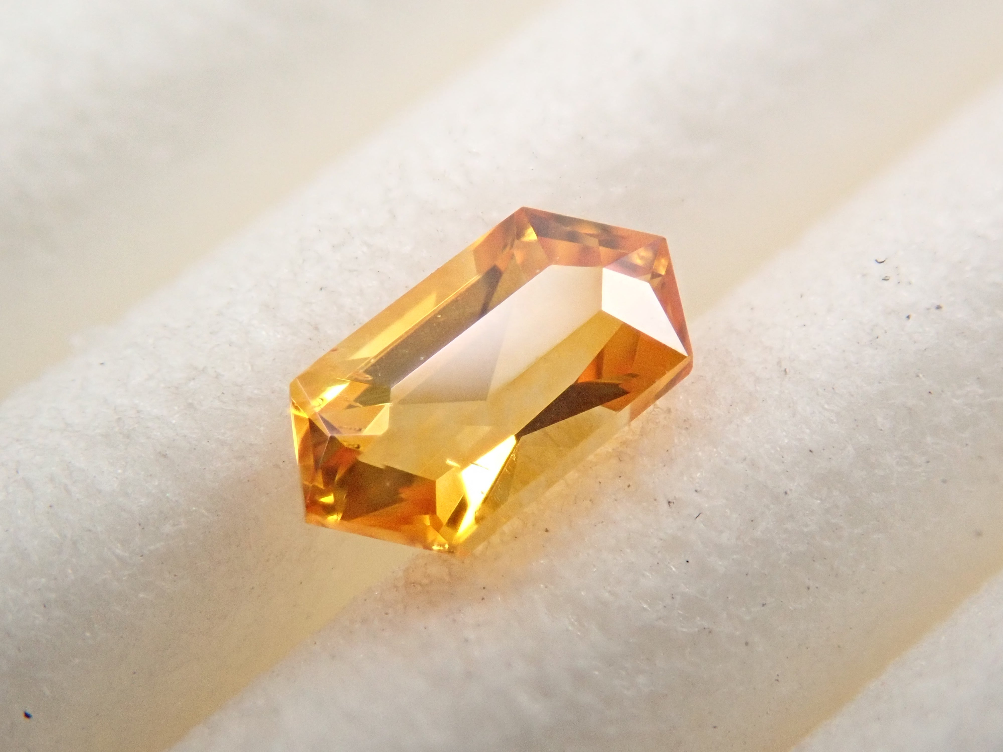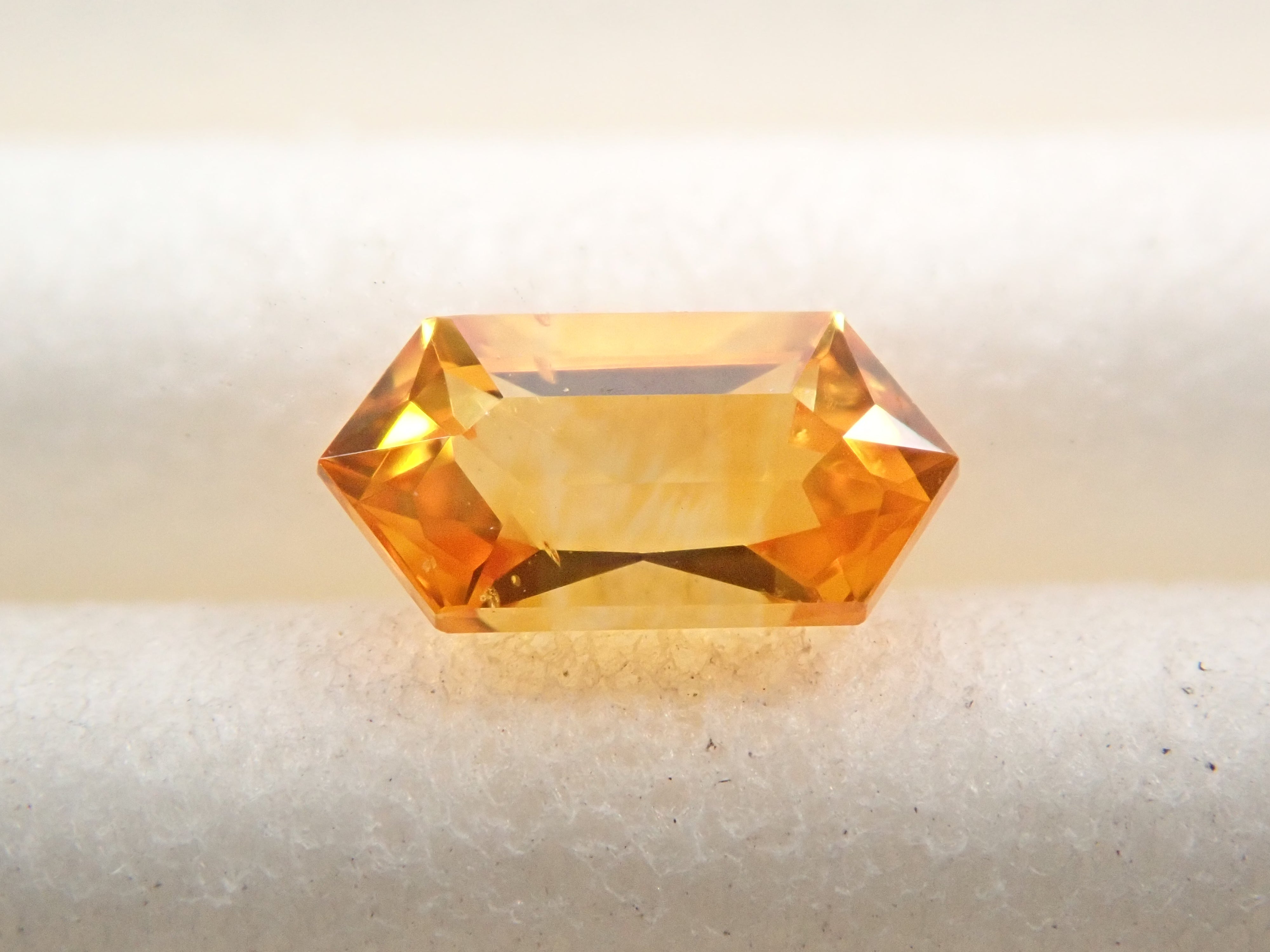 藍寶石是一種著名的寶石。礦物為剛玉,與紅寶石相同,但除紅色以外的所有剛玉稱為藍寶石。這是一顆黃色藍寶石。藍寶石的硬度為 9,是僅次於鑽石的第二硬寶石,是一種高度堅韌、穩定且易於護理的寶石。產自斯里蘭卡的 0.267 克拉黃色藍寶石原石。